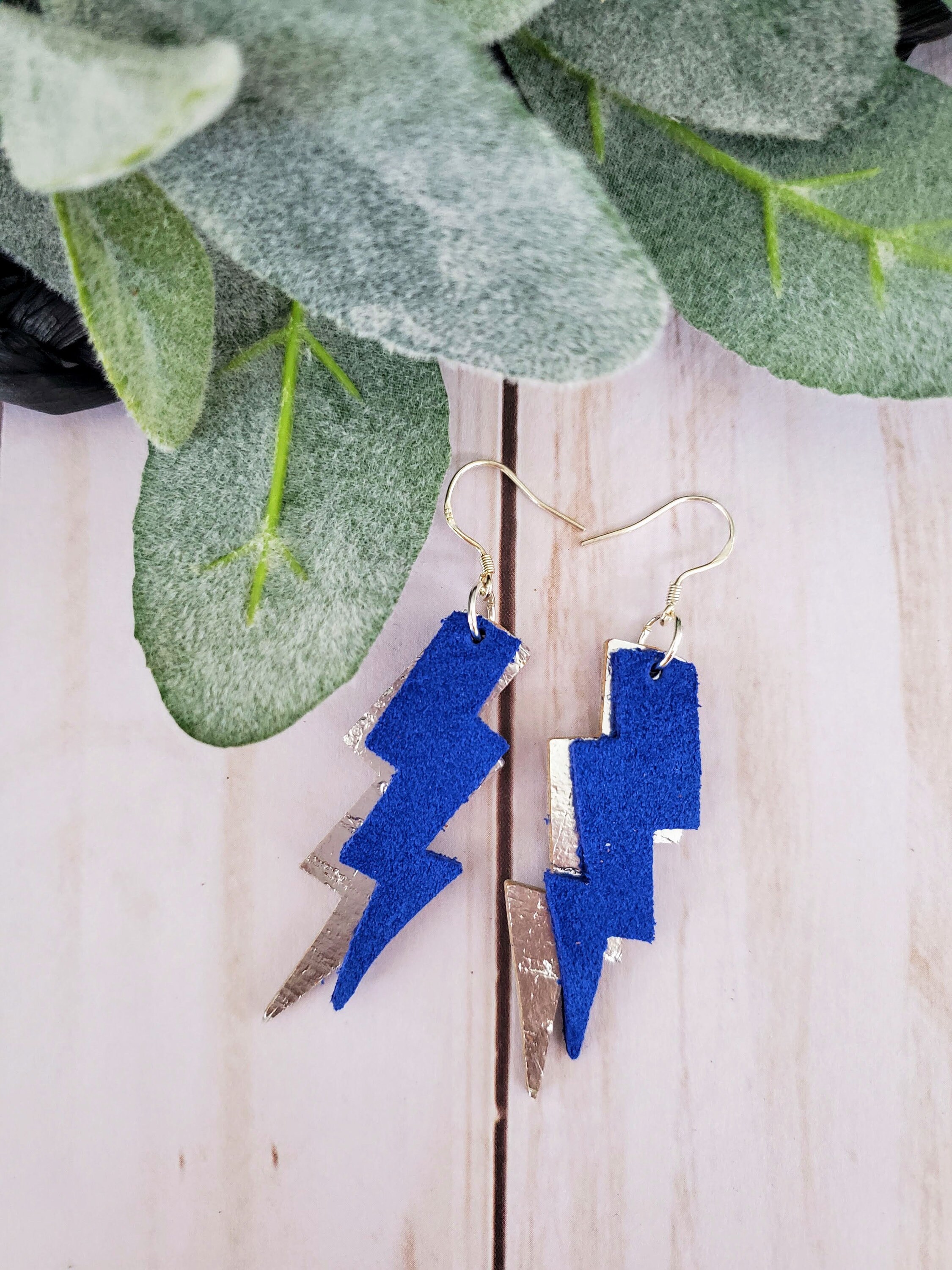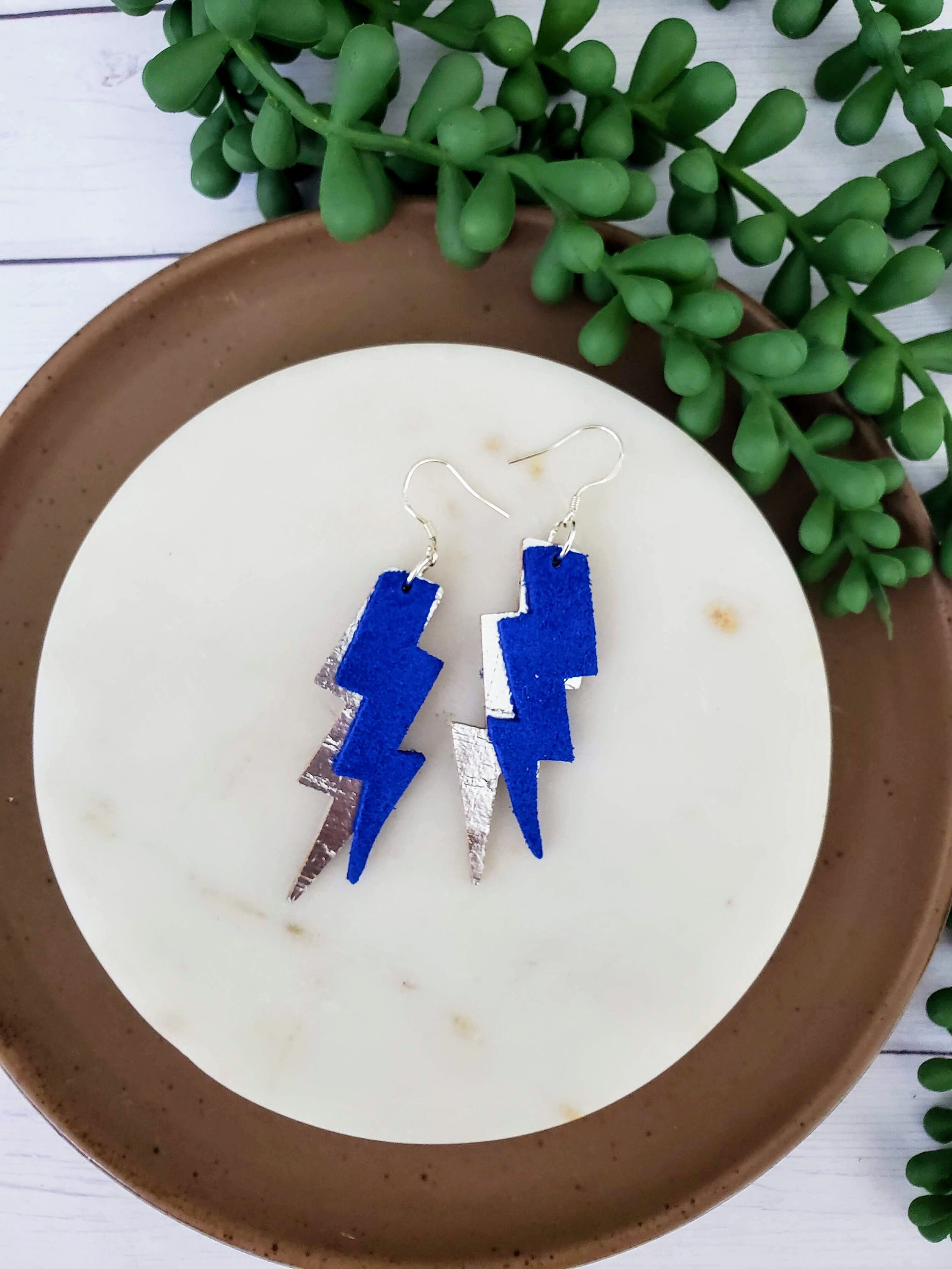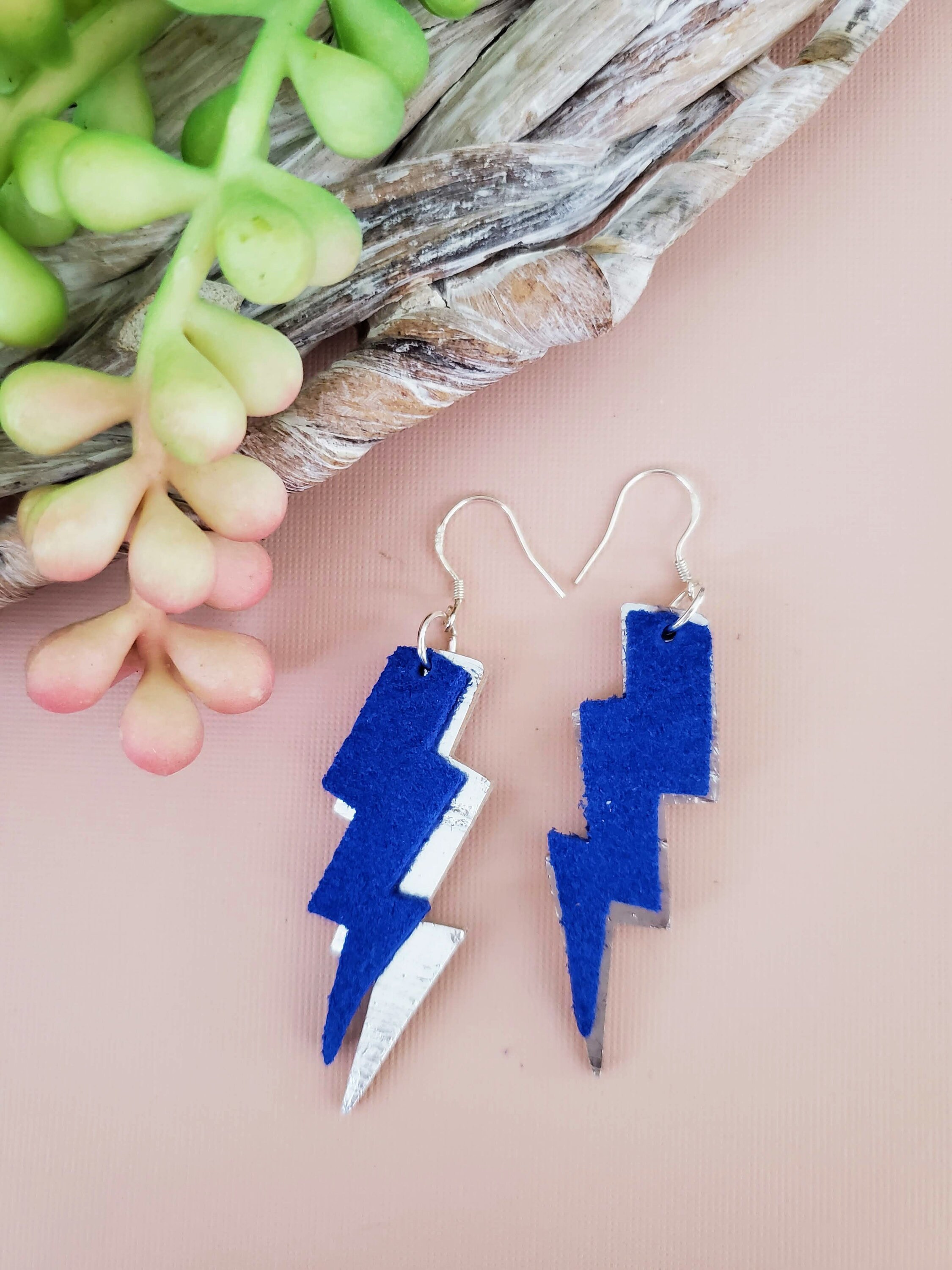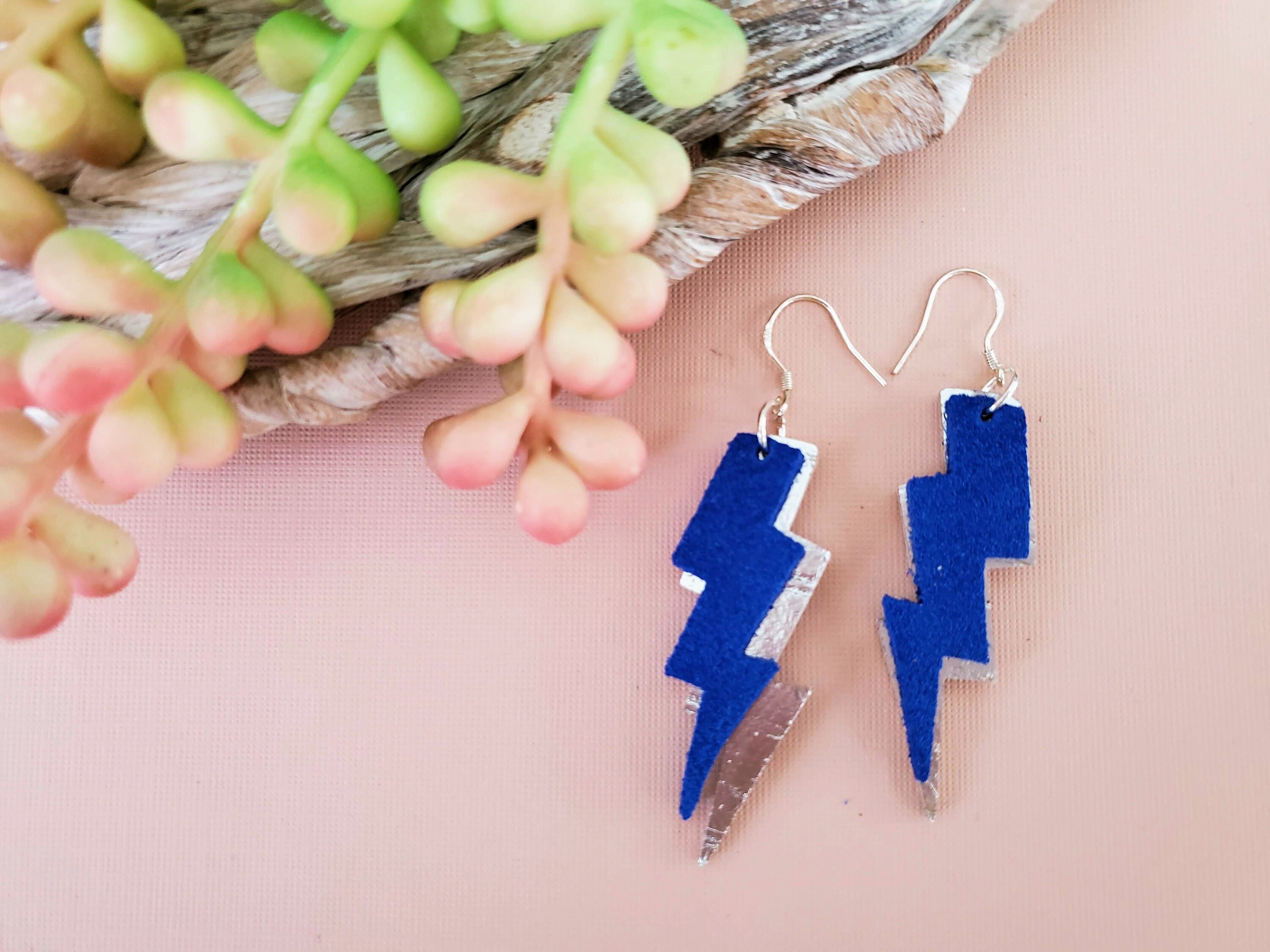 Made with layers of electric royal blue suede and bright metallic silver cork, these earrings capture the essence of fun and excitement. These bold and playful these lightweight earrings are perfect for anyone who loves to make a statement.