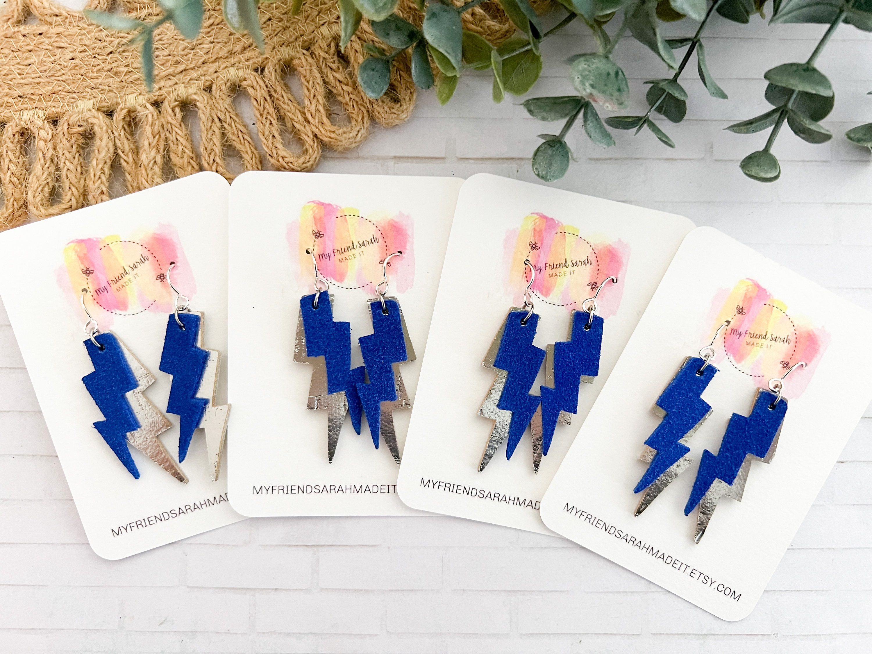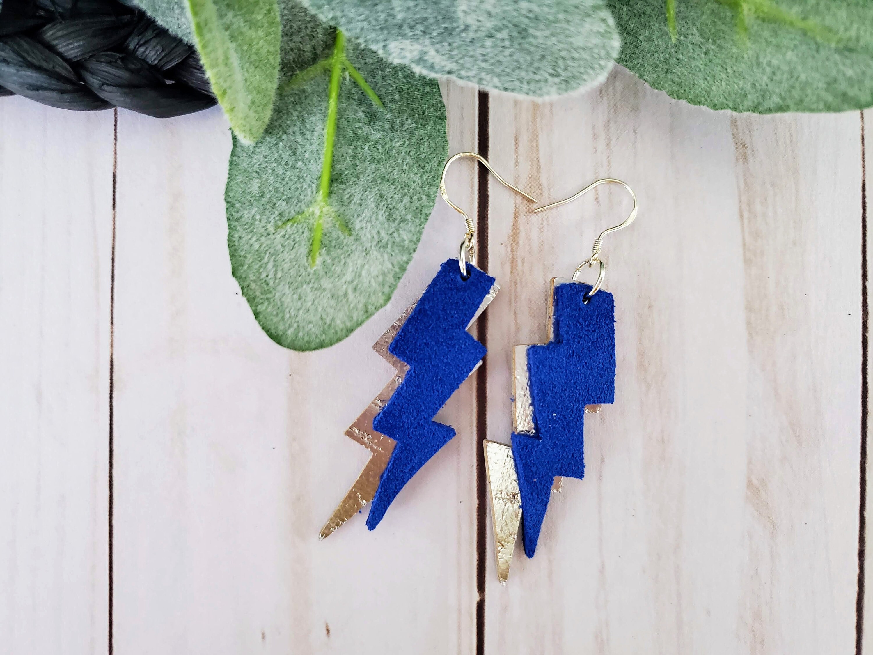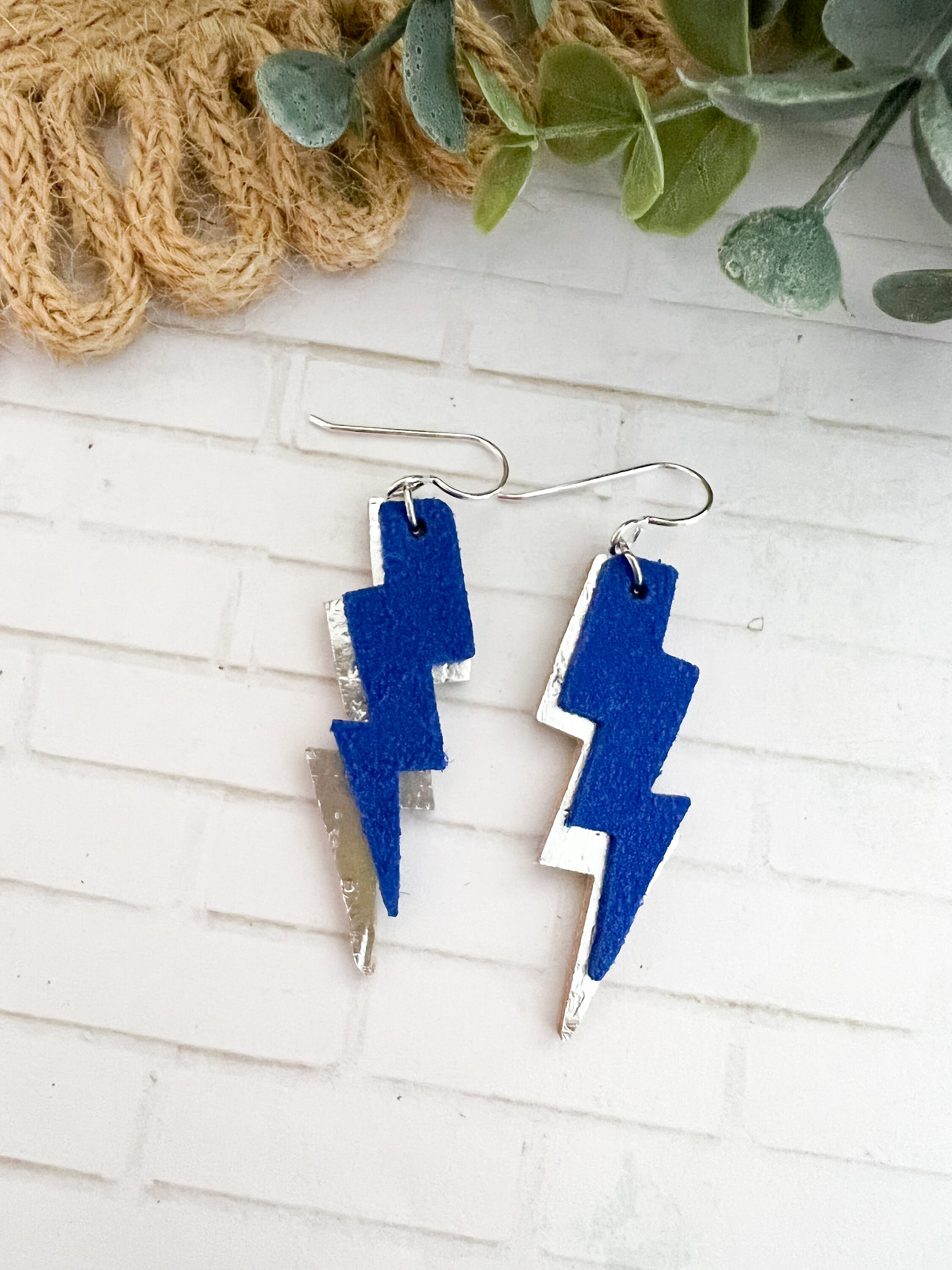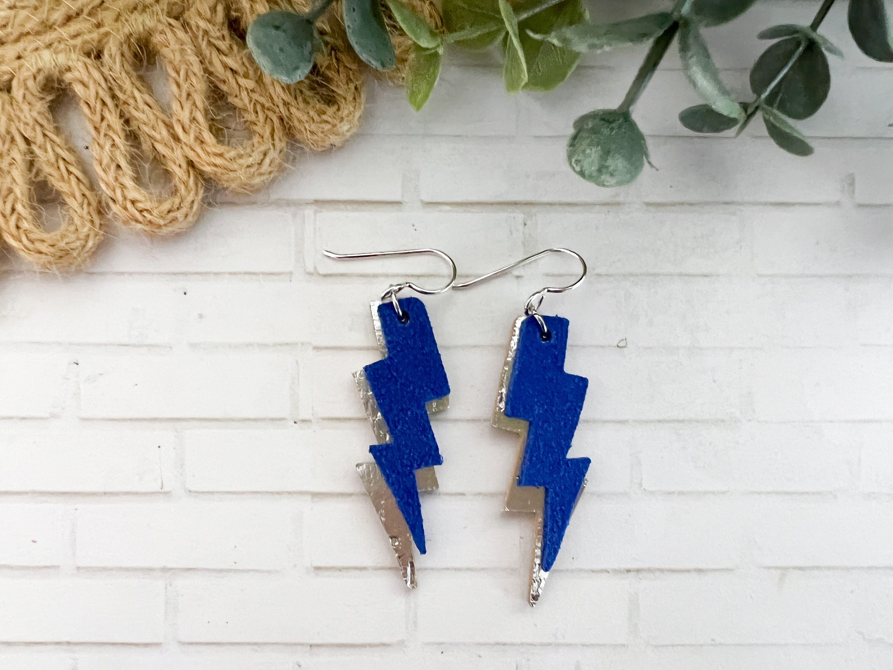 Made with layers of electric royal blue suede and bright metallic silver cork, these earrings capture the essence of fun and excitement. These bold and playful these lightweight earrings are perfect for anyone who loves to make a statement.