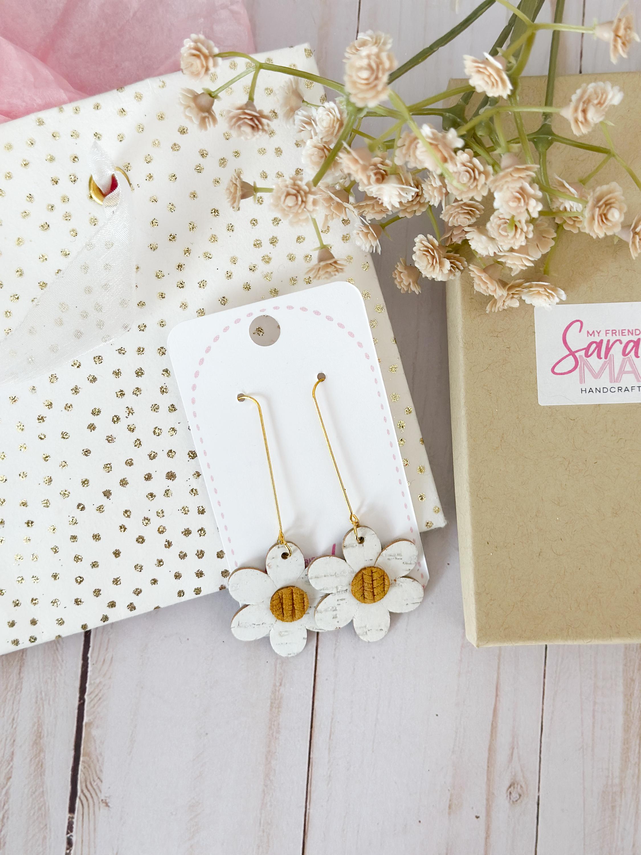 These sweet little daisy earrings are the kind of pair that instantly brightens your day. Made from cork and leather, they’re lightweight, comfortable, and easy to wear from season to season. Soft, neutral, and just the right amount of playful, they’re perfect for spring outfits, weekend brunch, or adding a cheerful touch to your everyday look.