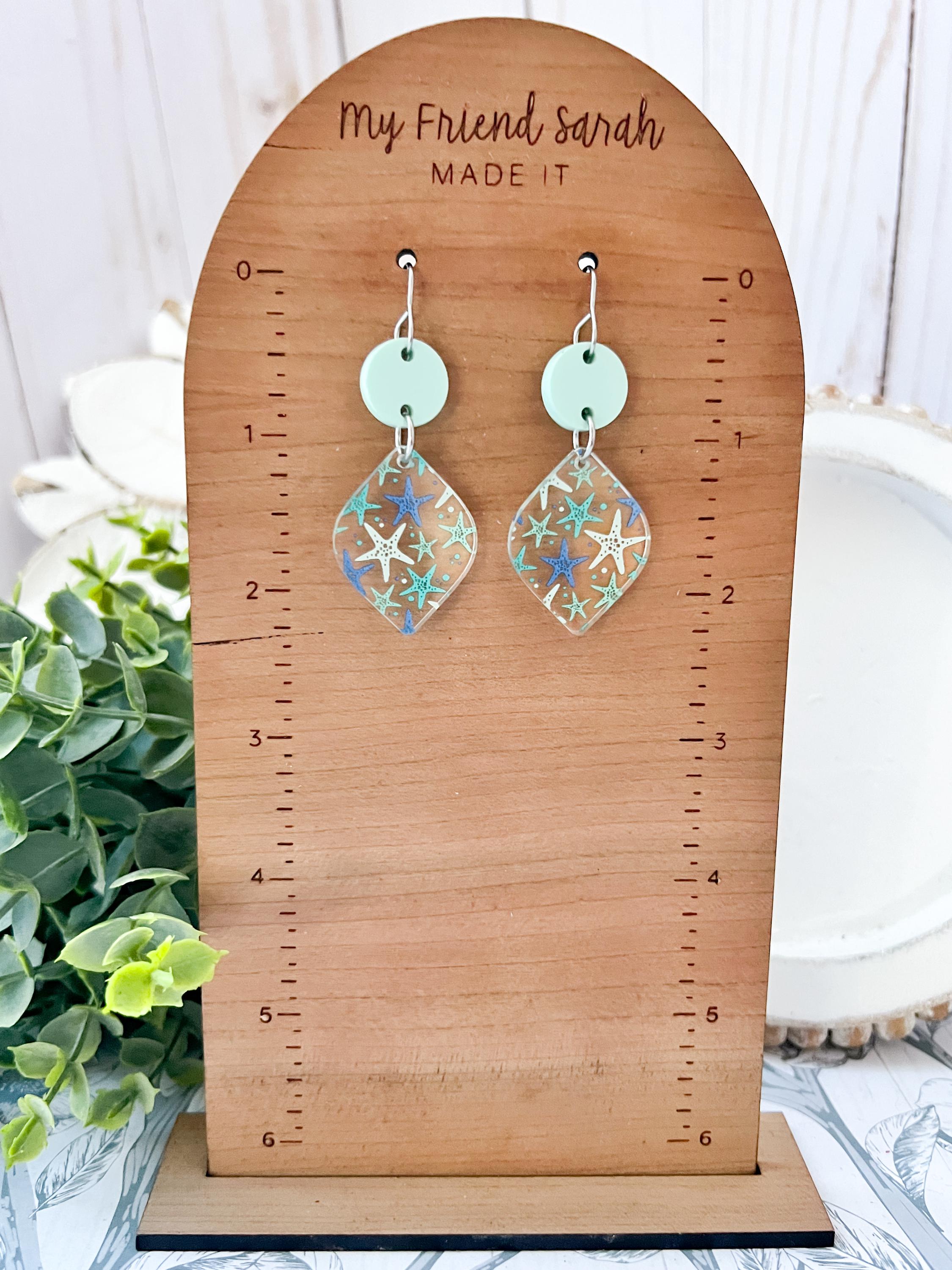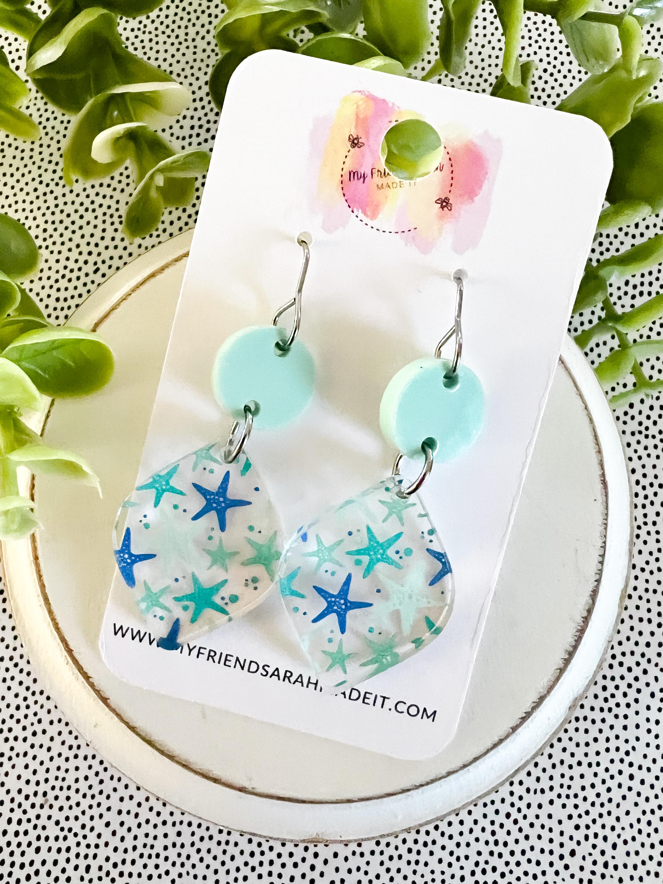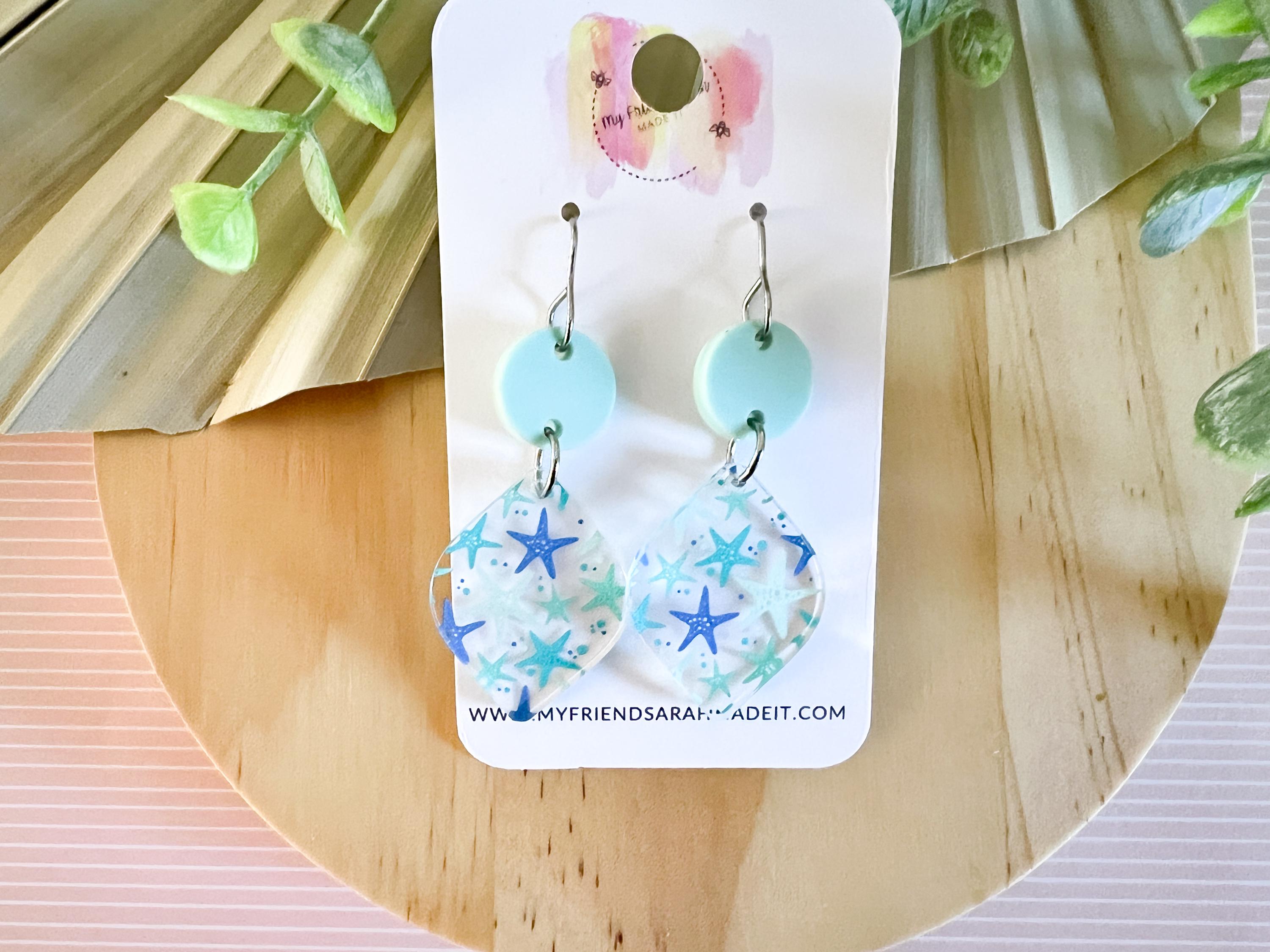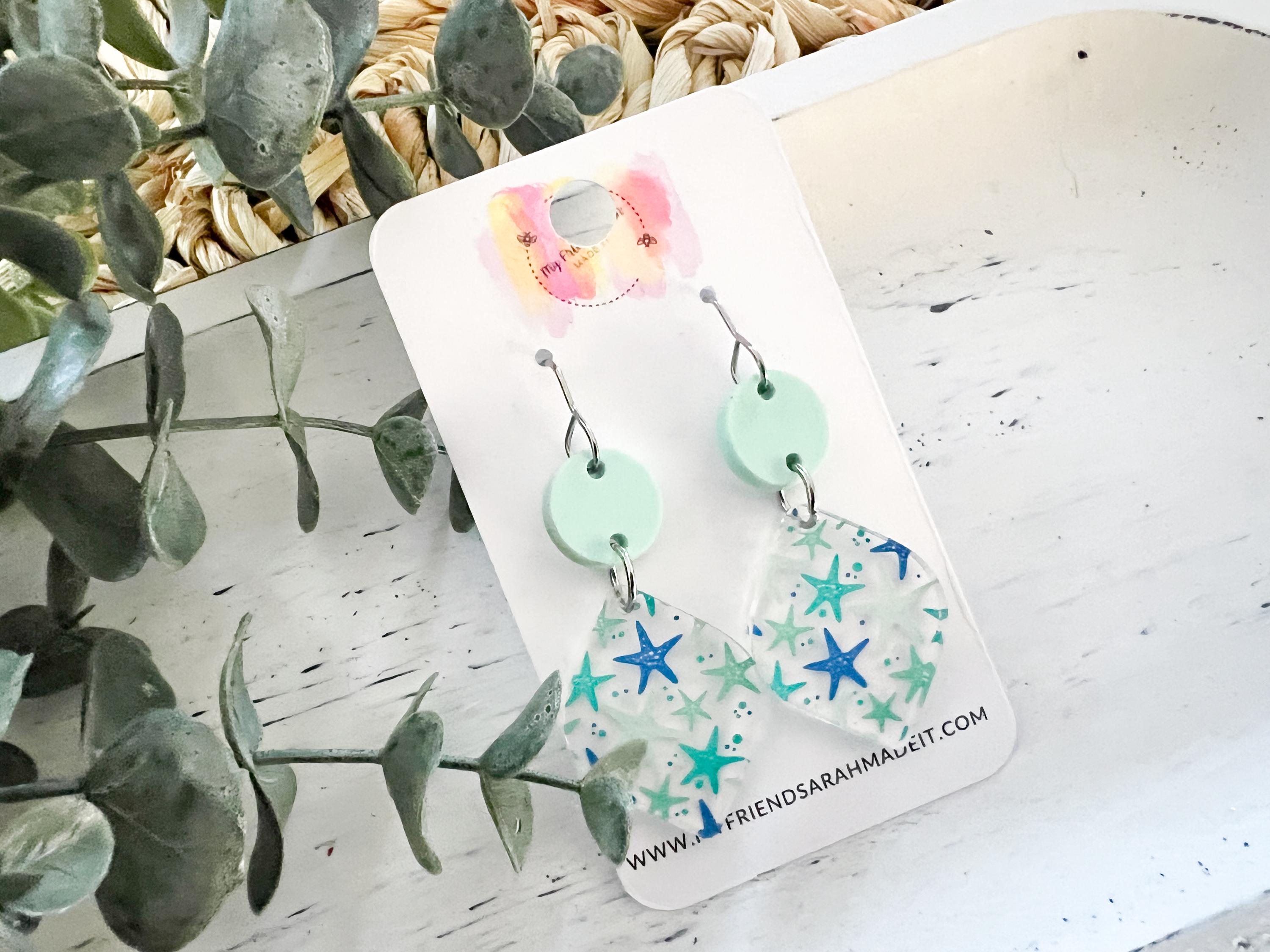 These whimsical starfish drop earrings are perfect for adding a splash of ocean vibes to your look! With playful blue and mint tones, theyβre lightweight and ready to brighten any outfit.