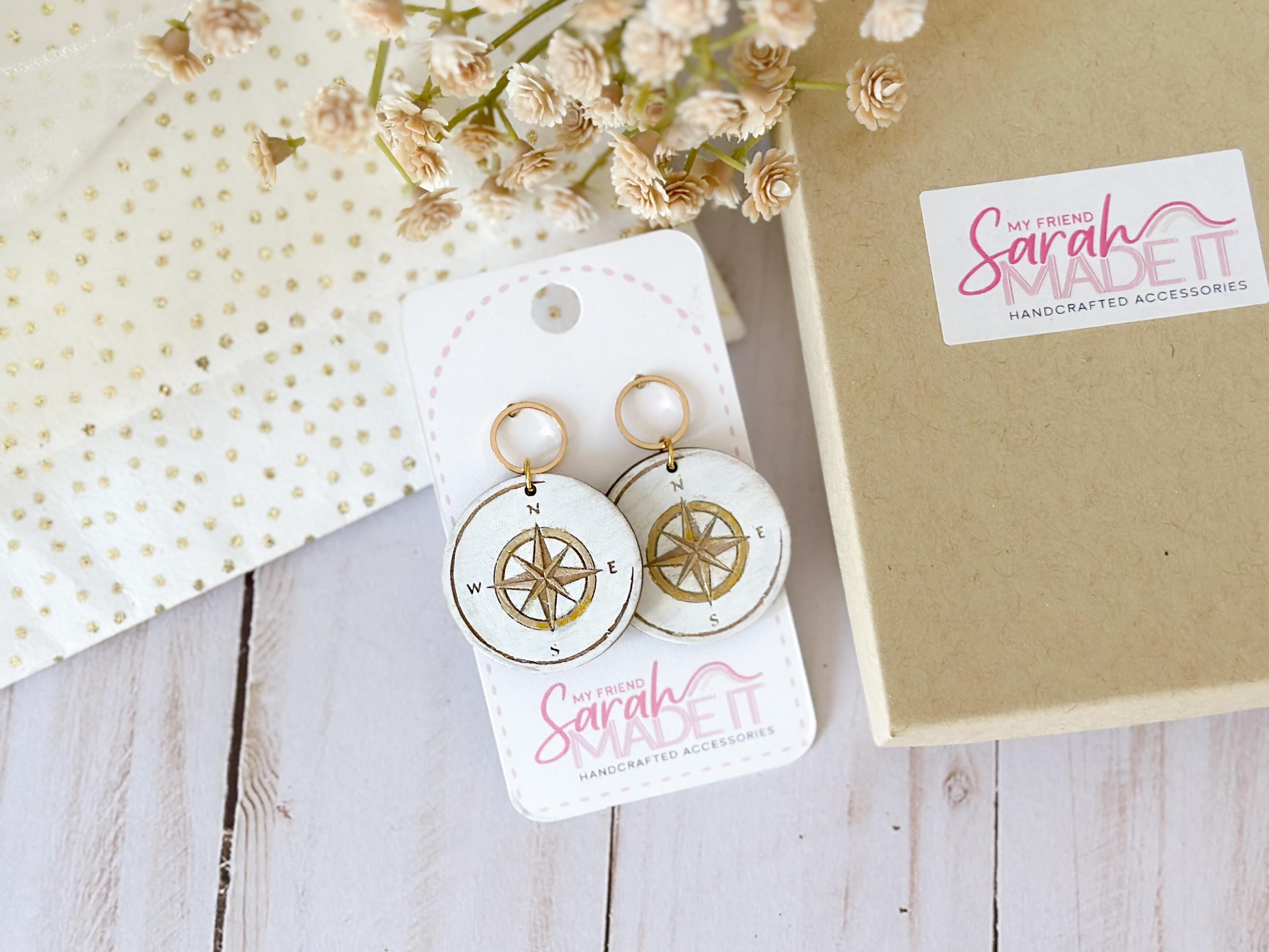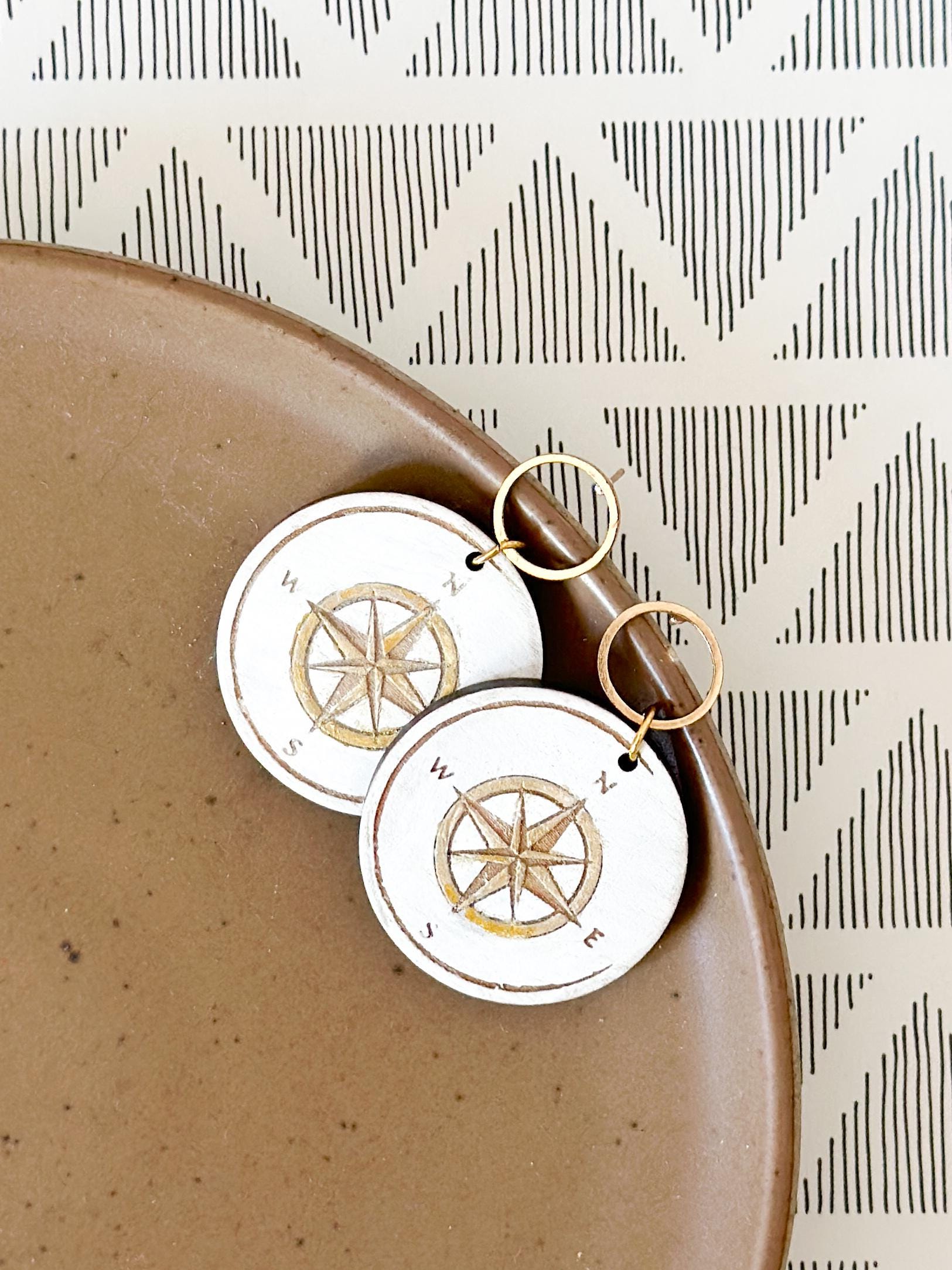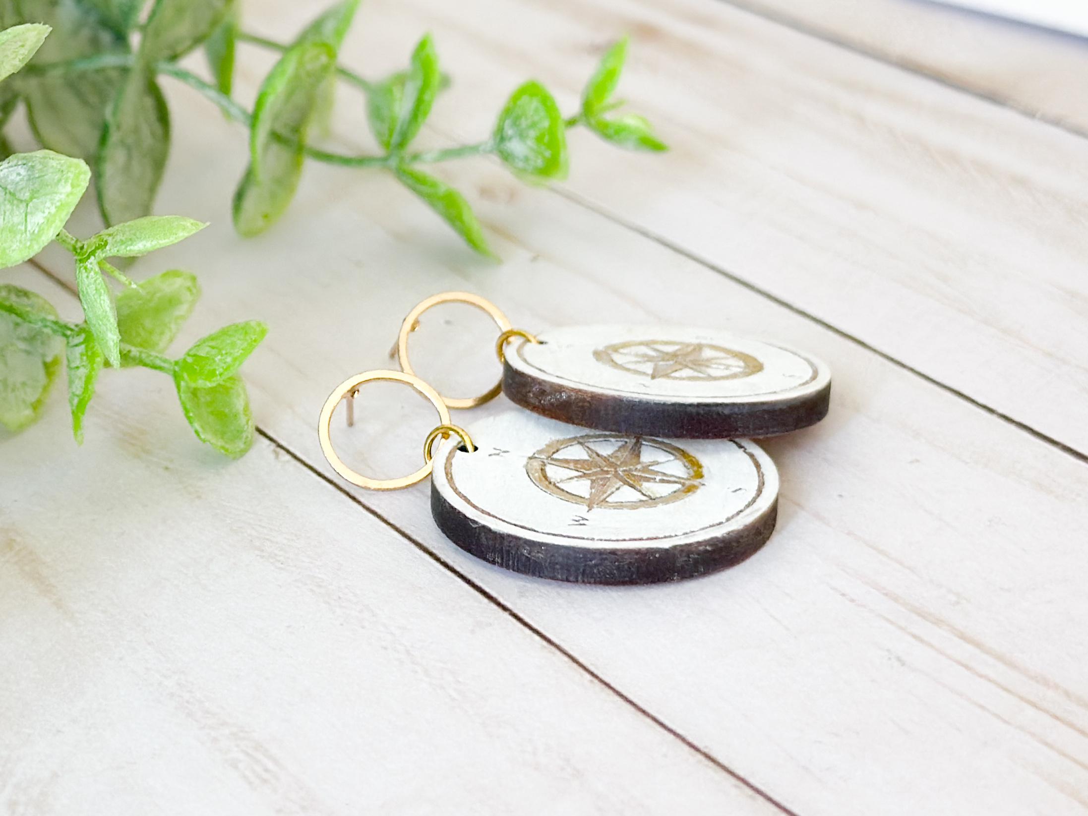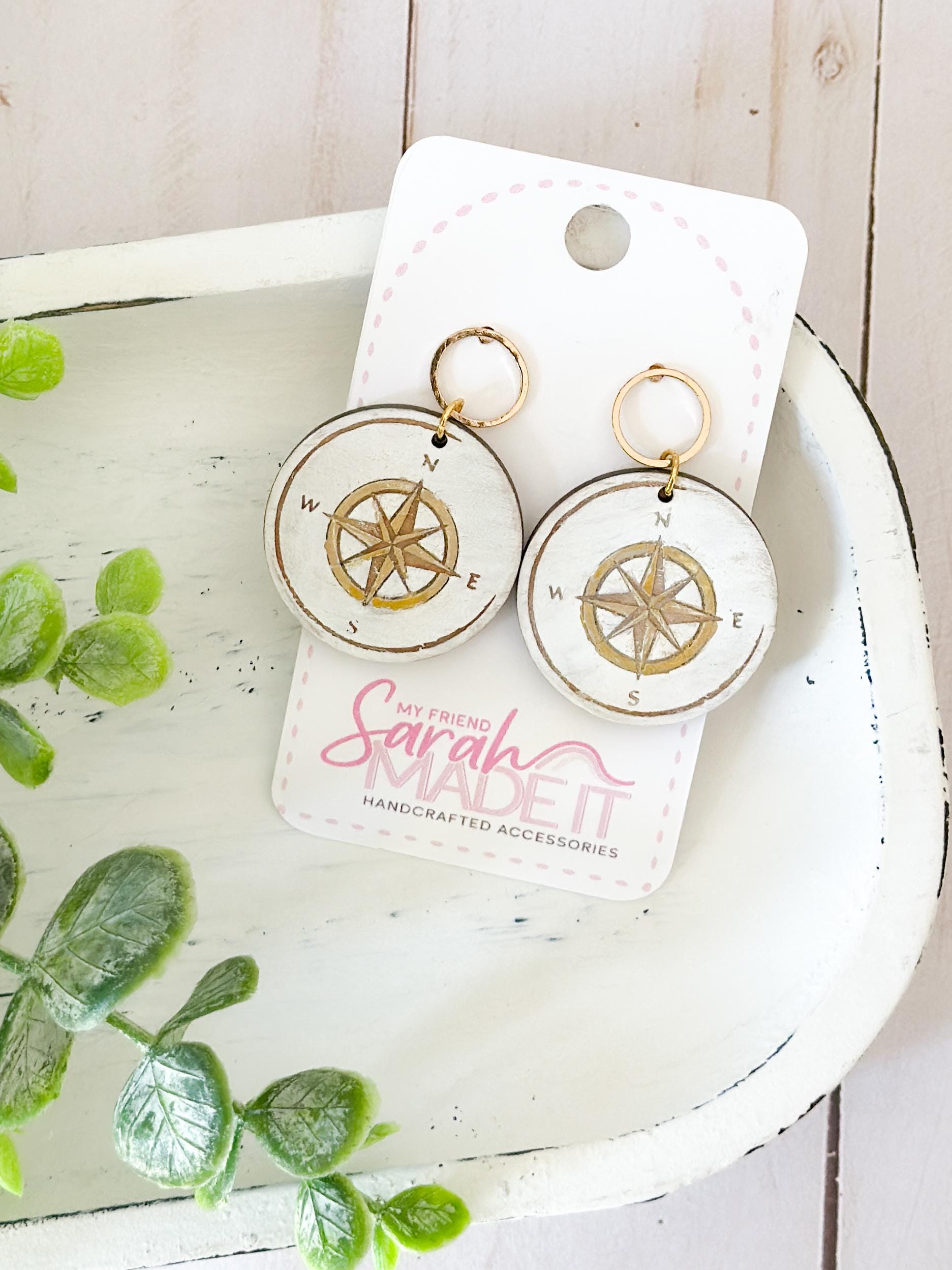 A subtle nod to adventure, these compass earrings feature a hand-painted distressed finish with soft gold accents for a warm, neutral look. Lightweight and easy to wear, they bring a coastal, travel-inspired feel to everyday outfits. An easy choice for beach days, vacations, or anyone who loves a little wanderlust in their style!