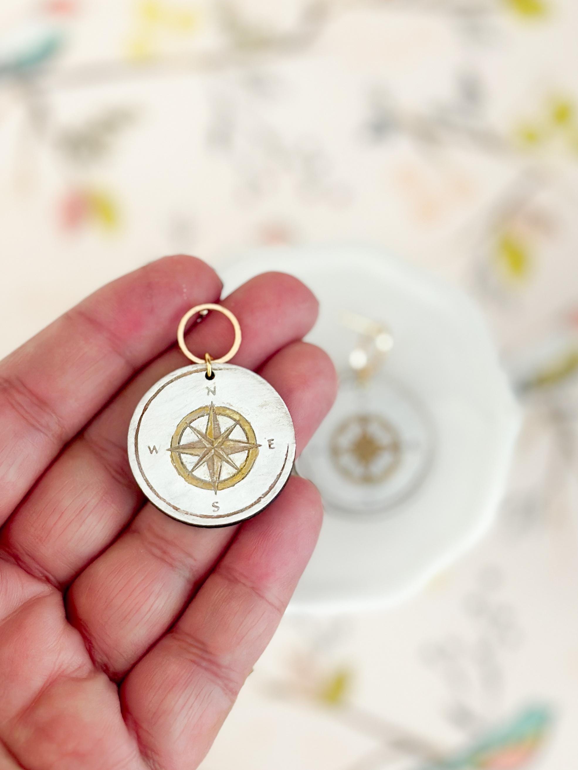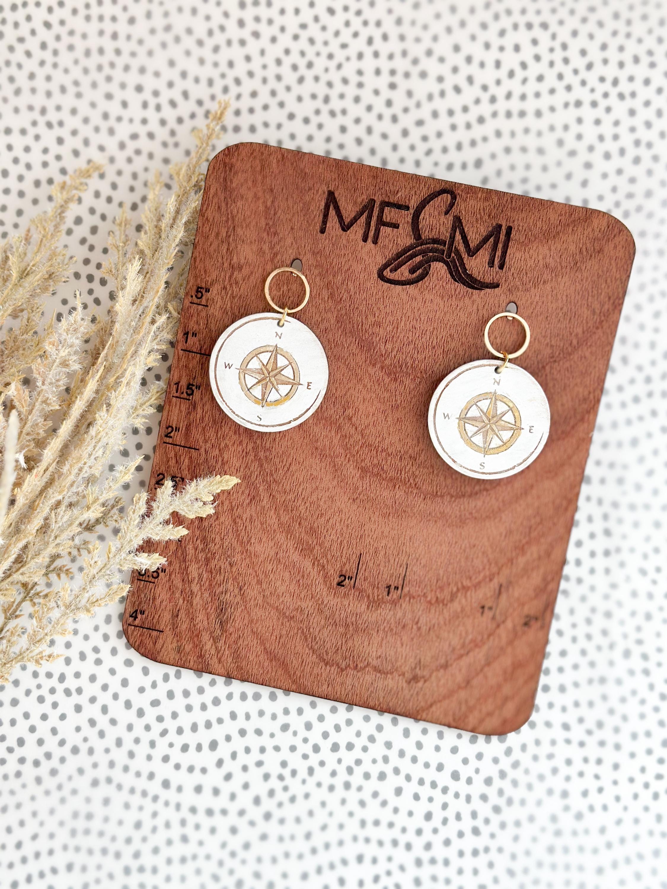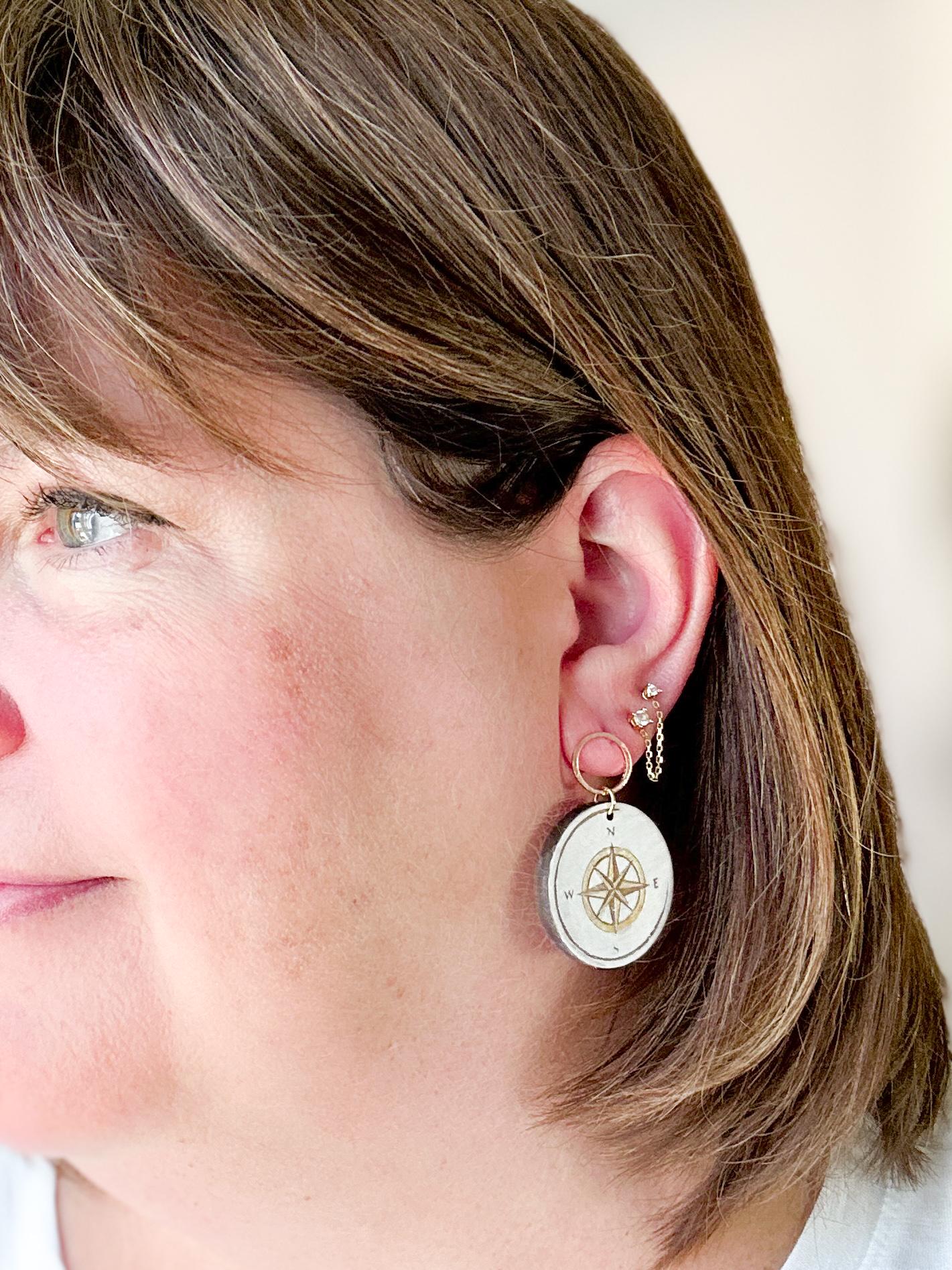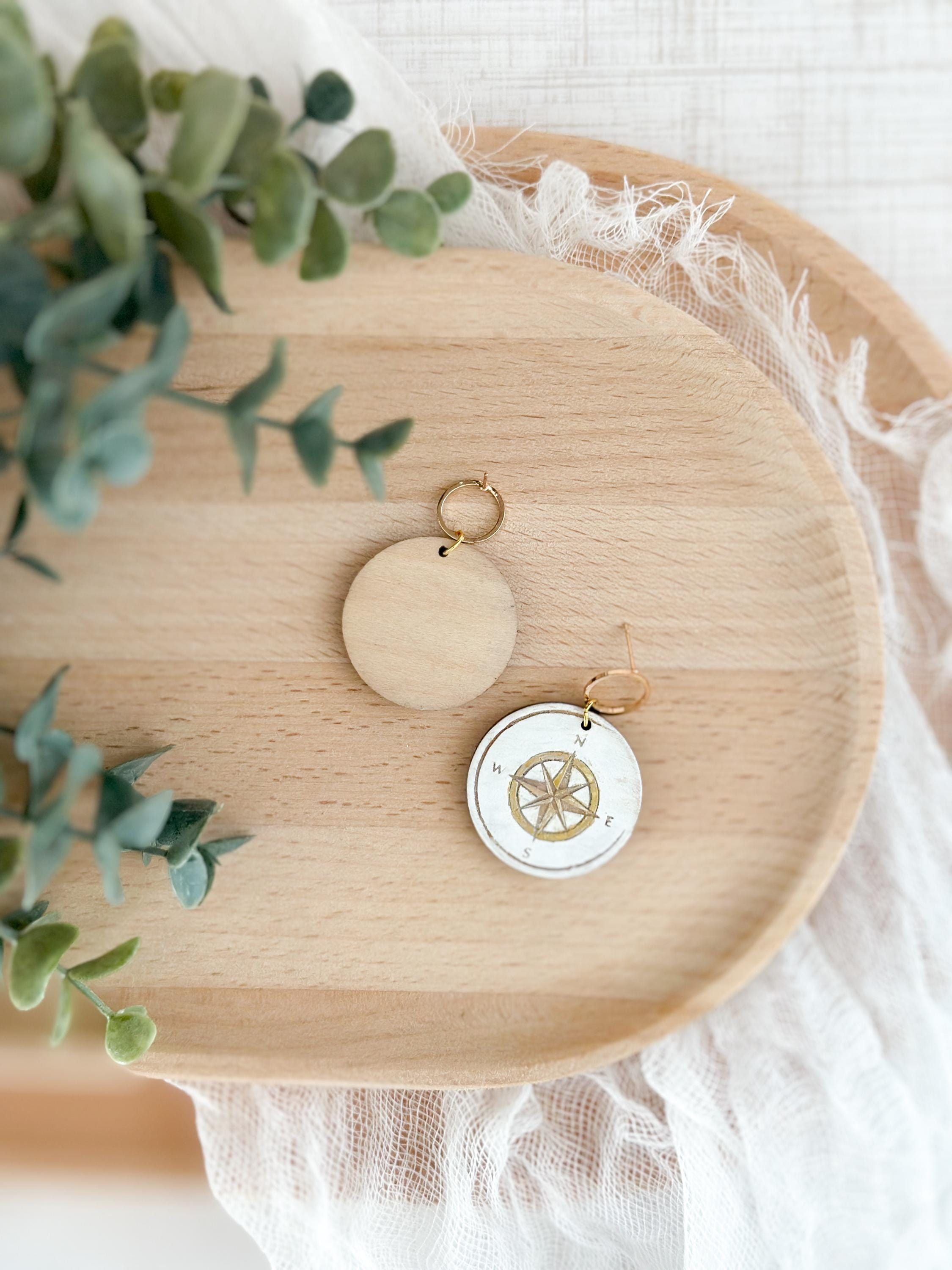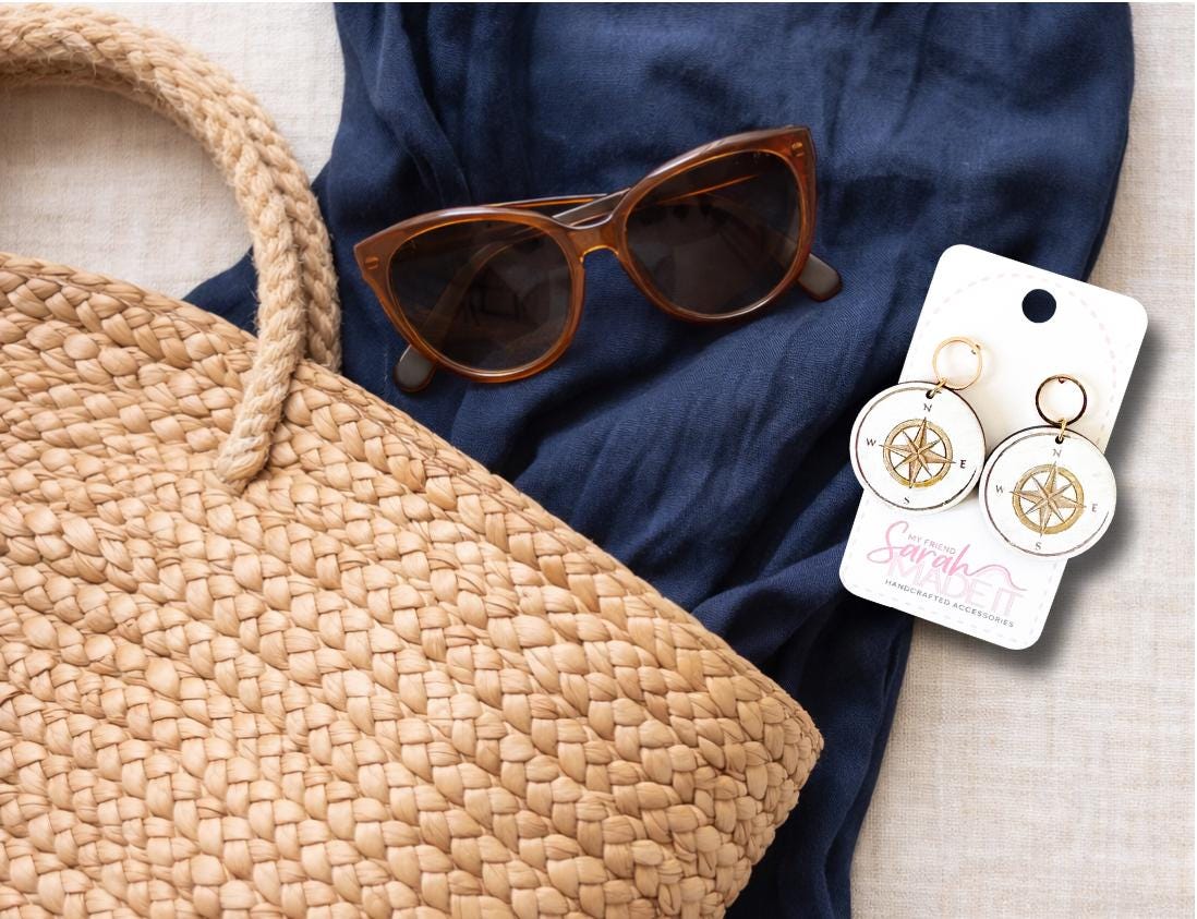A subtle nod to adventure, these compass earrings feature a hand-painted distressed finish with soft gold accents for a warm, neutral look. Lightweight and easy to wear, they bring a coastal, travel-inspired feel to everyday outfits. An easy choice for beach days, vacations, or anyone who loves a little wanderlust in their style!