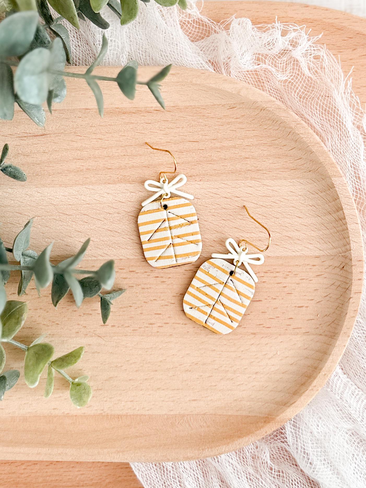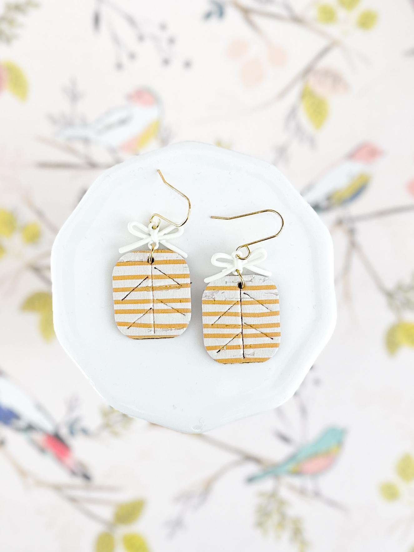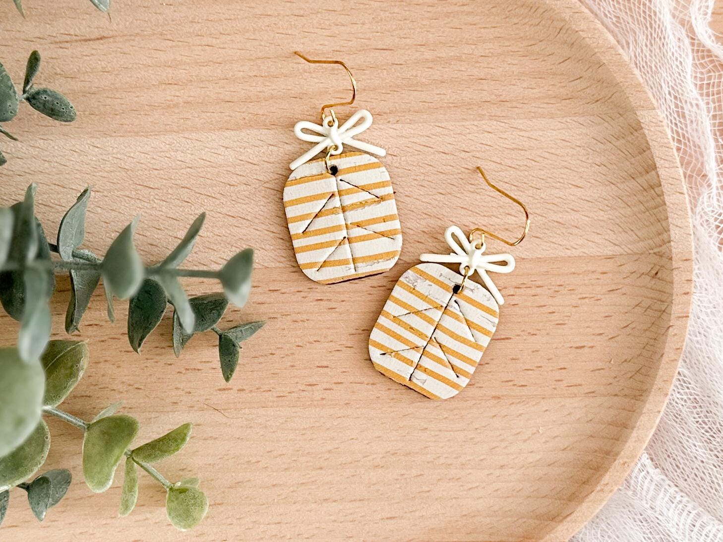 These striped cork earrings bring the perfect mix of playful and polished. Made with cork layered on leather and finished with a sweet little bow detail, they feel like tiny wrapped gifts for your ears.