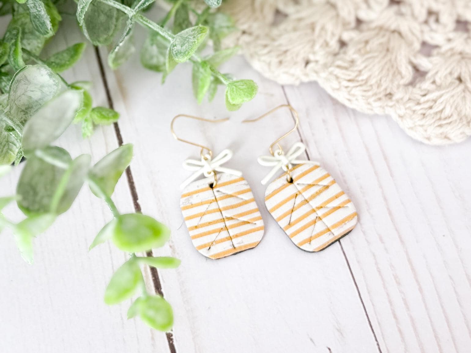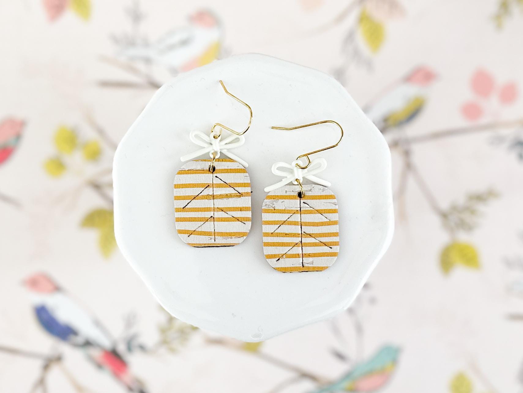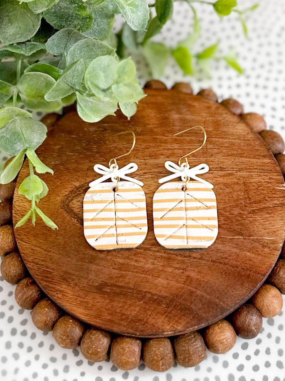 These striped cork earrings bring the perfect mix of playful and polished. Made with cork layered on leather and finished with a sweet little bow detail, they feel like tiny wrapped gifts for your ears.