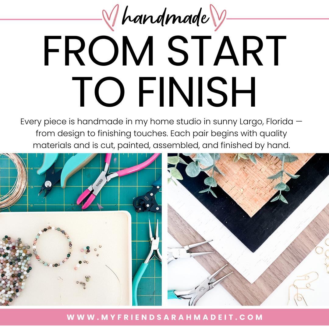 π π¦πππ£π£ππ‘π & π£πππππππ‘π: My Friend Sarah Made It ships quickly! Most items are 'ready to ship,' so your order will be processed and shipped within 1-2 business days of purchase. Each order is carefully packaged in a box to ensure safe delivery. If you purchase multiple items from my shop, these will be shipped together in one larger box. All earrings are presented on branded cards and include backings.