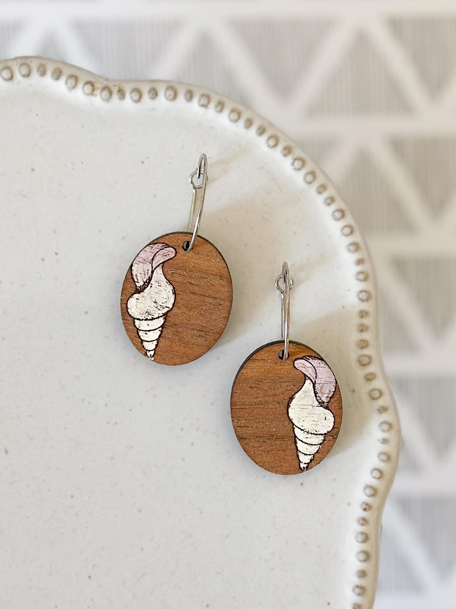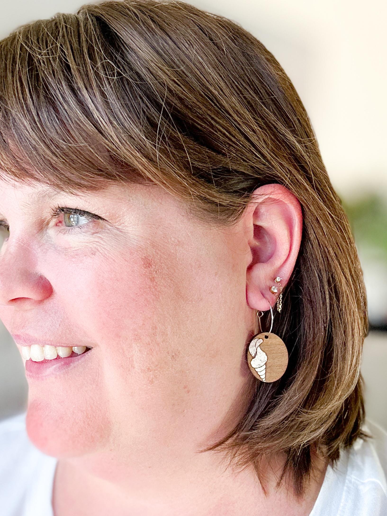 A soft coastal staple, these seashell earrings feature engraved wood discs paired with lightweight hoops for an easy, beachy feel. Neutral tones keep them versatile, making them just as wearable for everyday outfits as they are for vacation days. Simple, lightweight, and ready for sunshine!