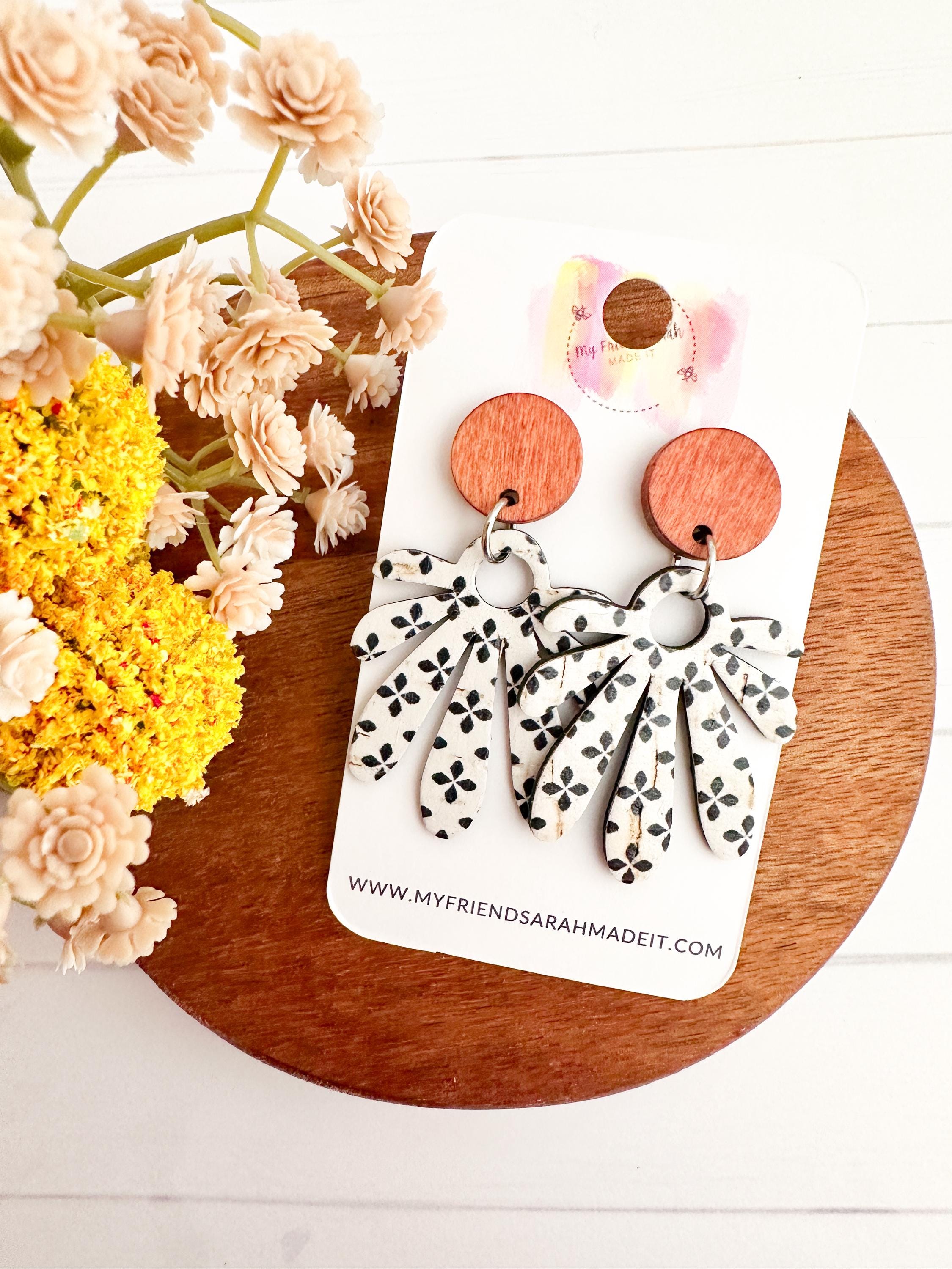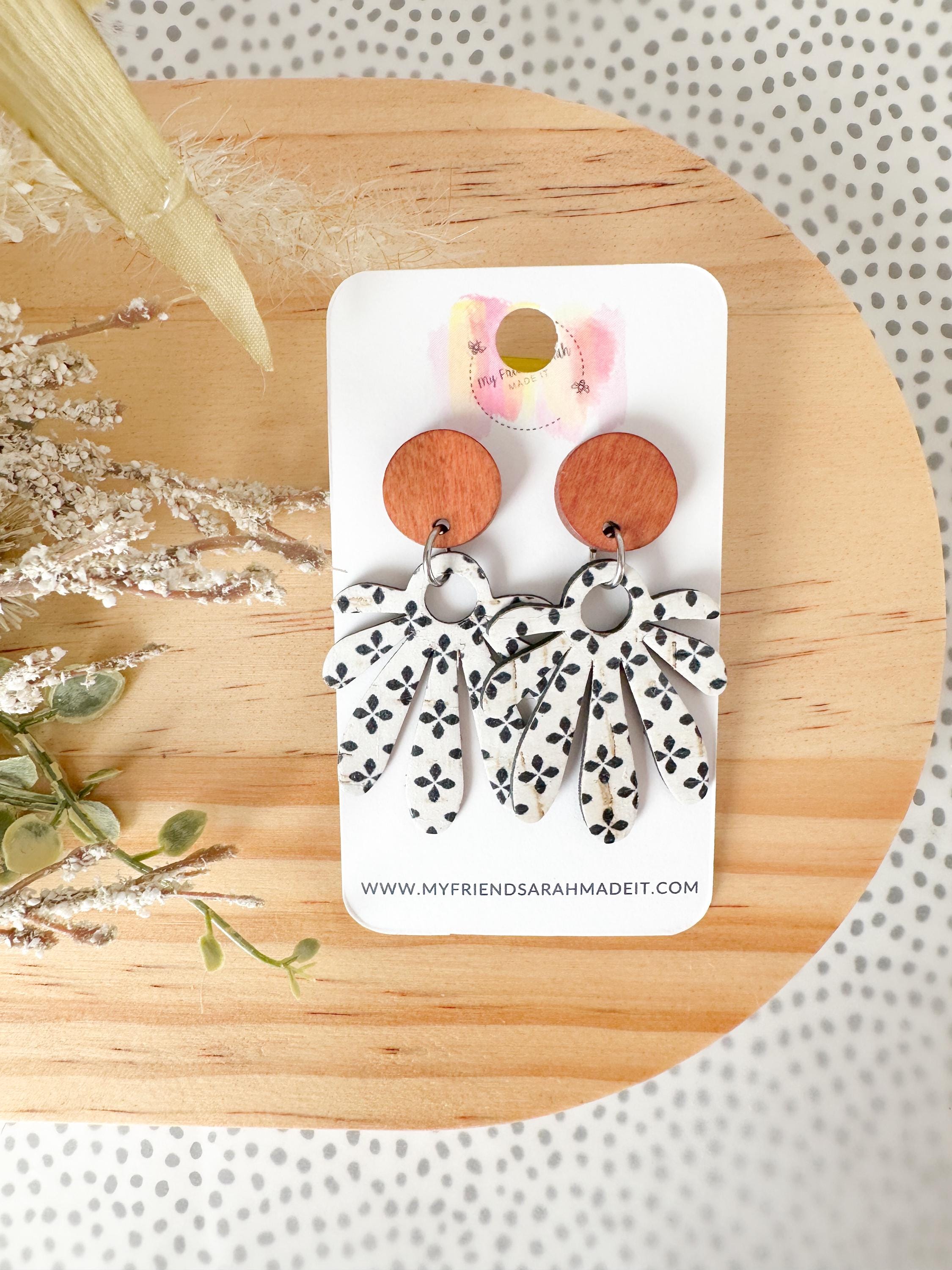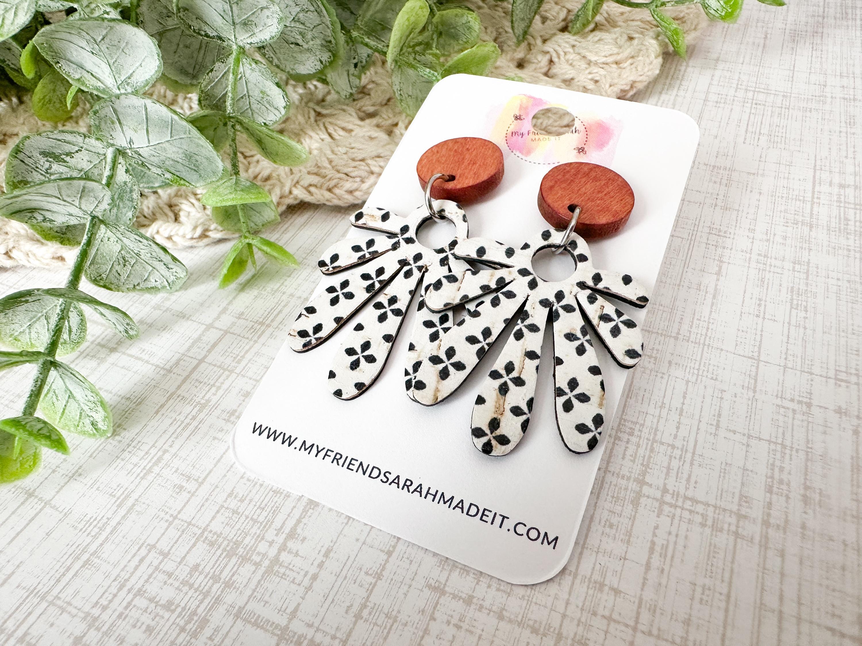 These cuties are insanely lightweight. Handmade from white cork applied to leather for durability, These geometric fan earrings are a fun addition to your outfit while remaining neutral enough to go with almost anything! These are a one of a kind find in my shop!
