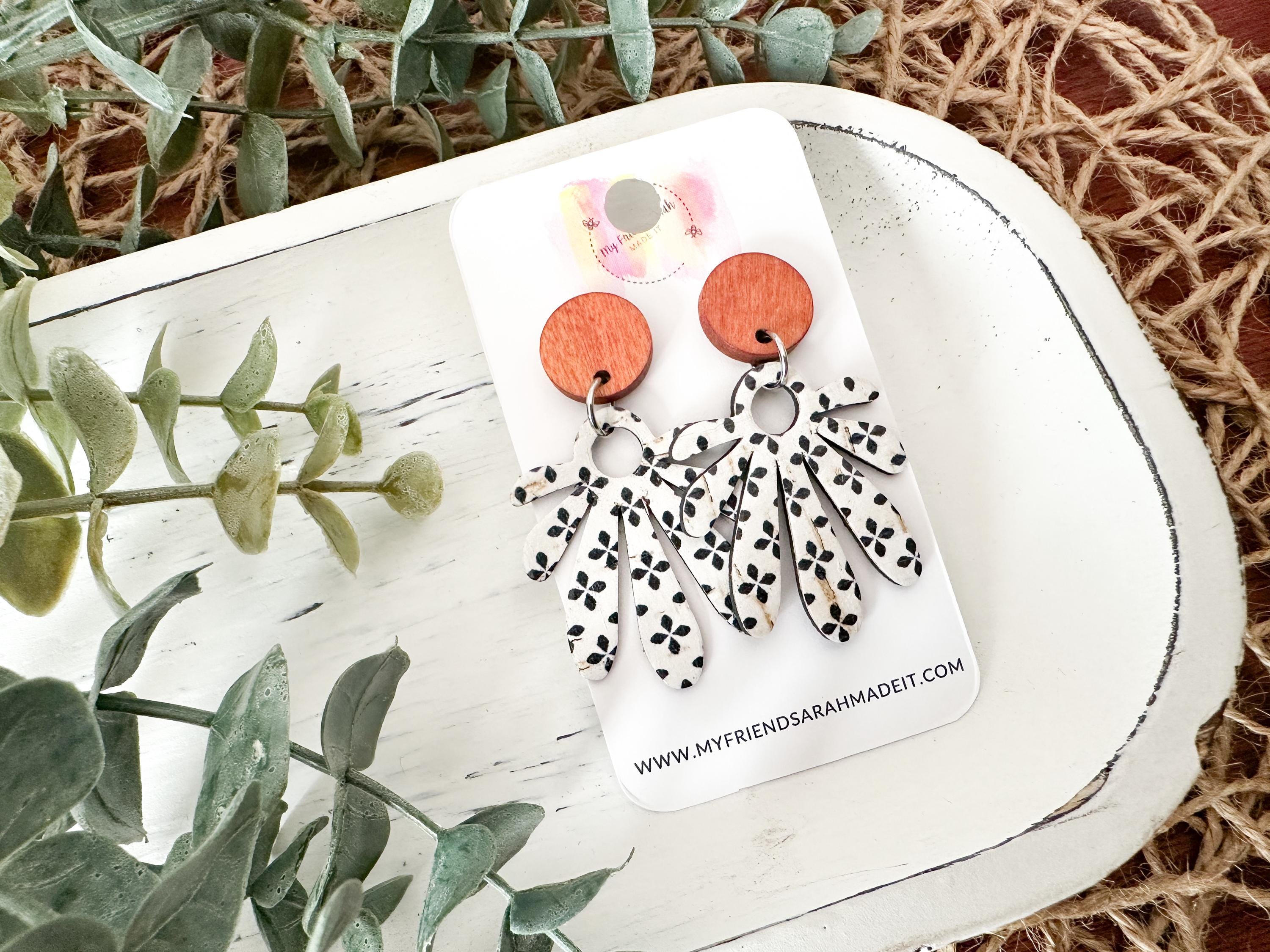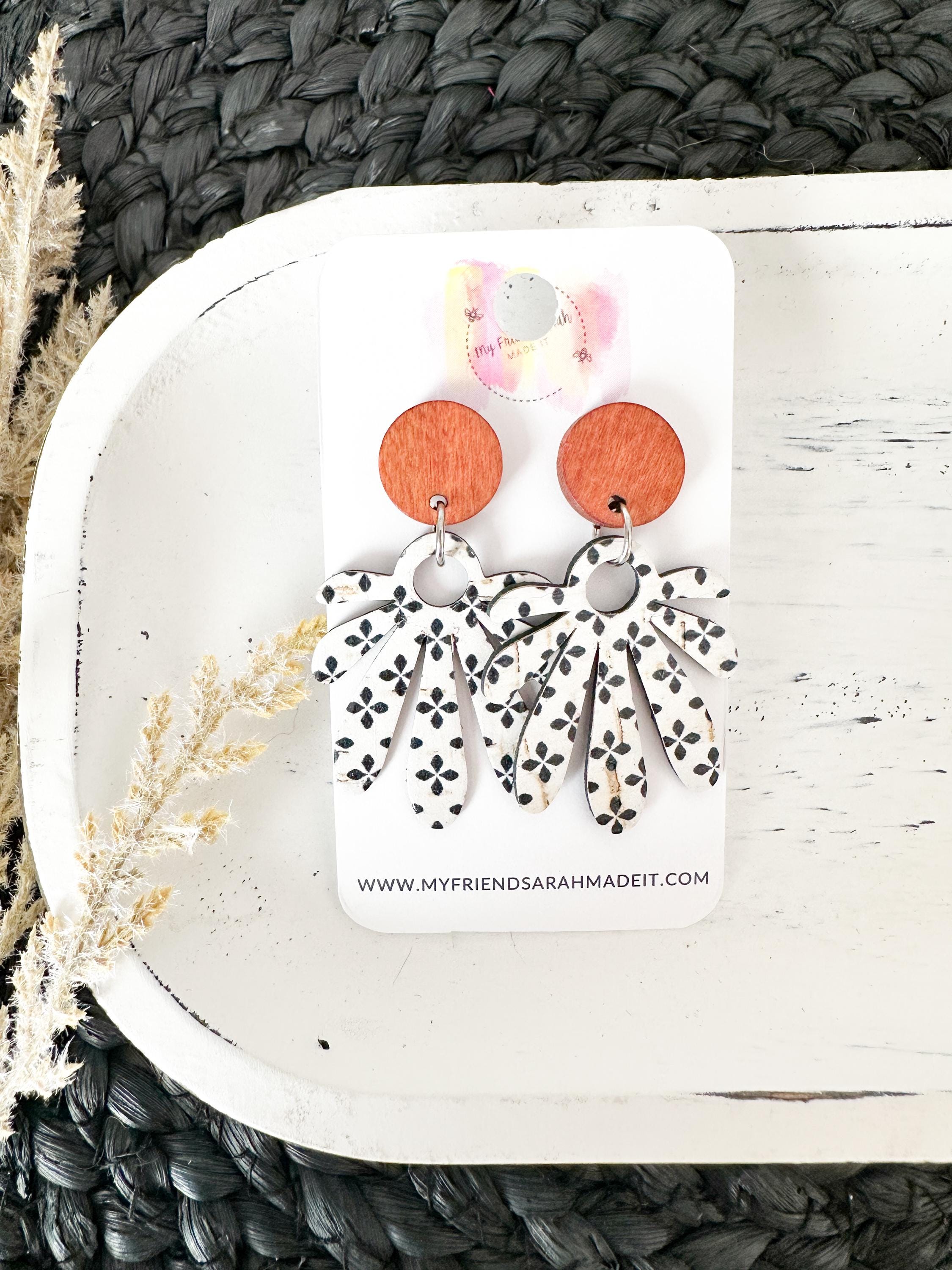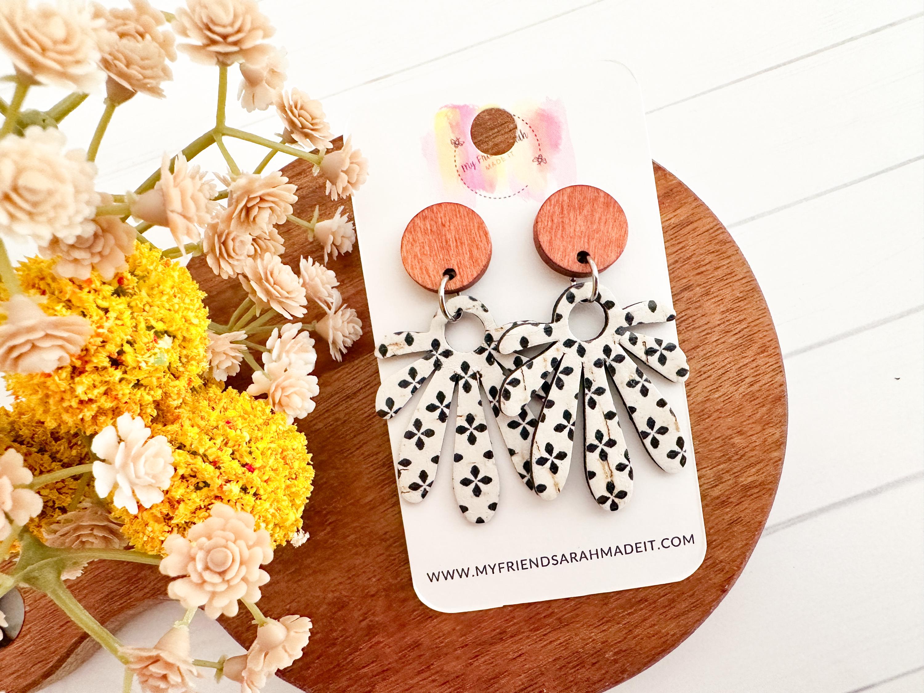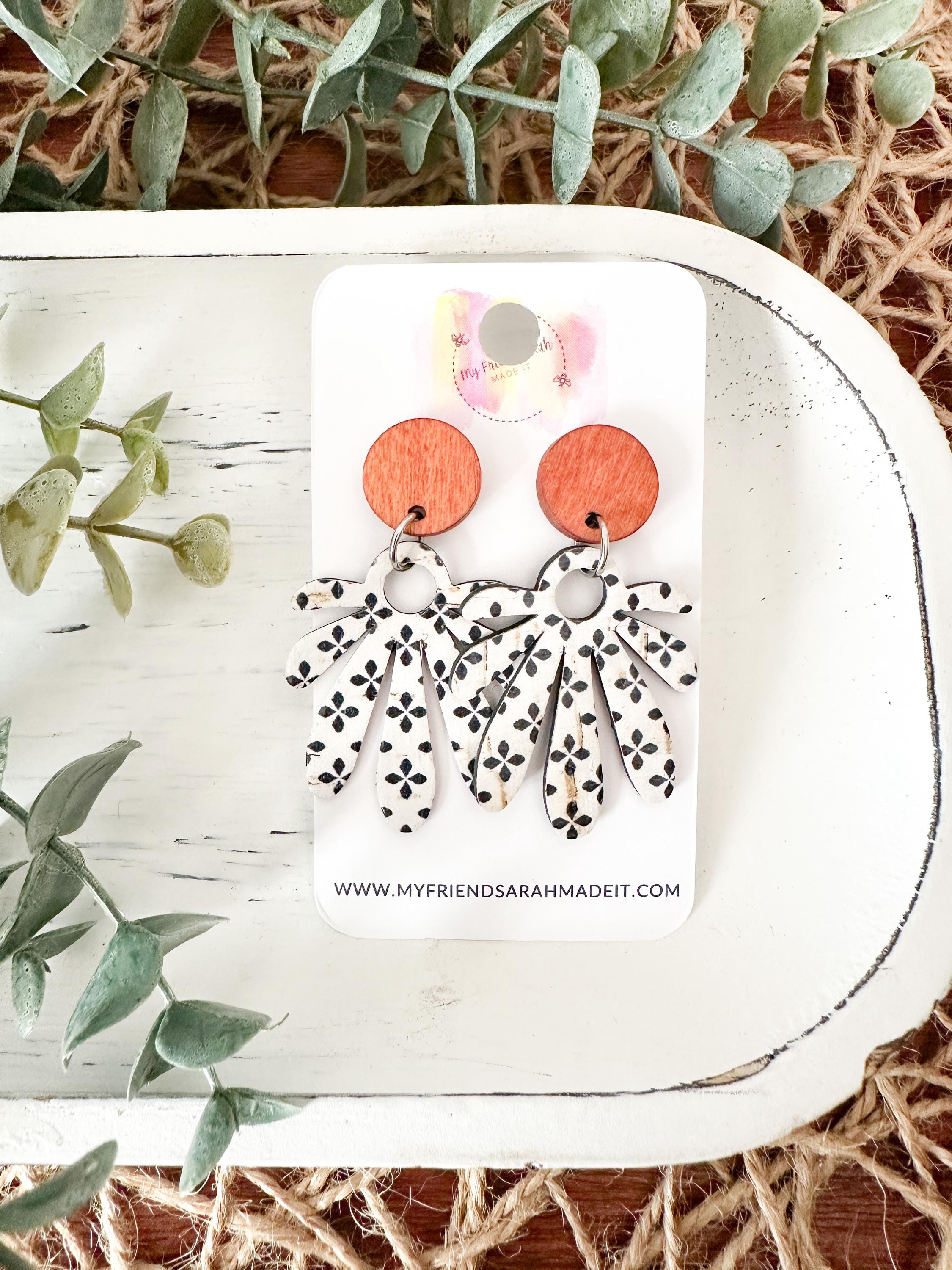 These cuties are insanely lightweight. Handmade from white cork applied to leather for durability, These geometric fan earrings are a fun addition to your outfit while remaining neutral enough to go with almost anything! These are a one of a kind find in my shop!