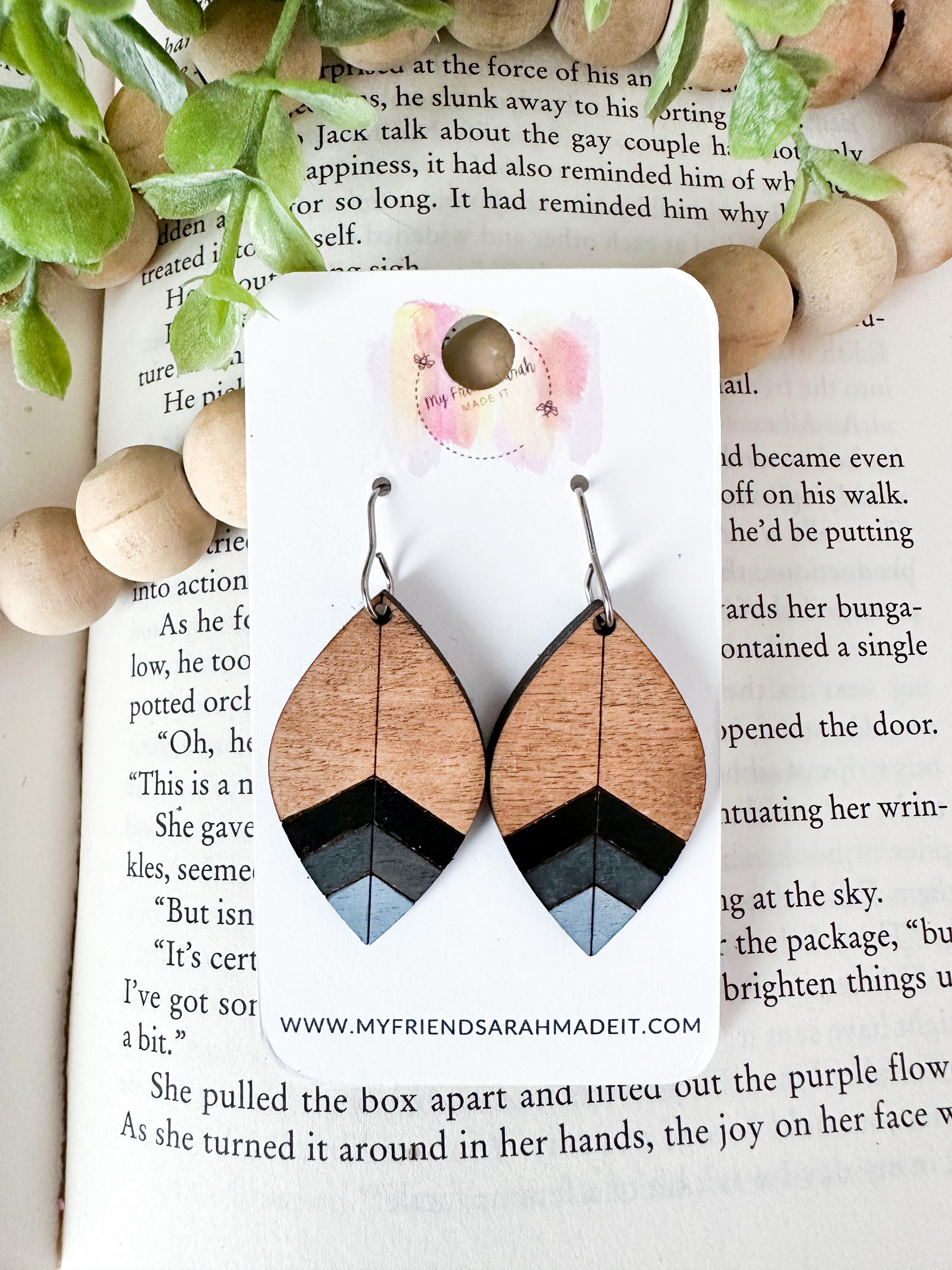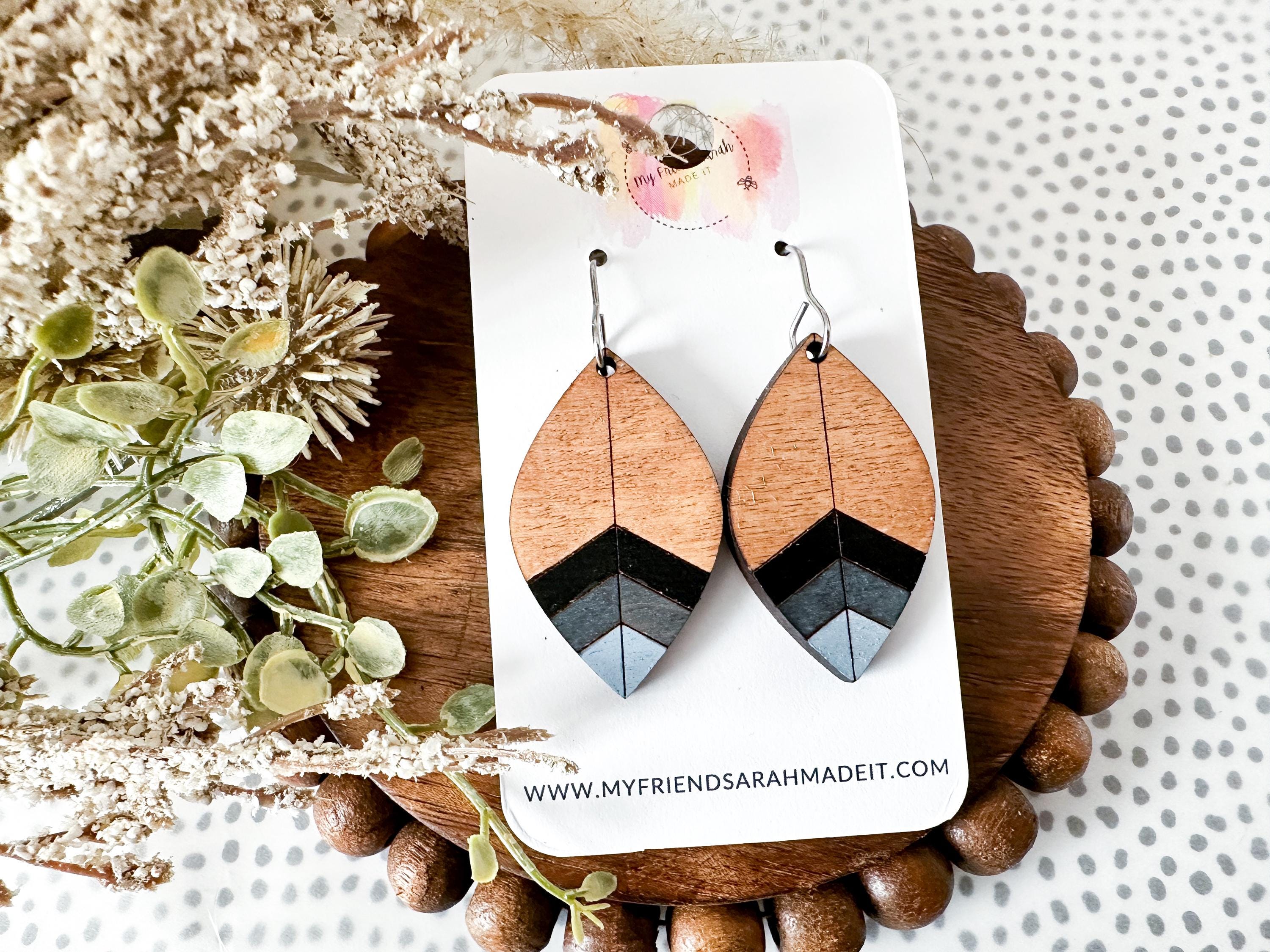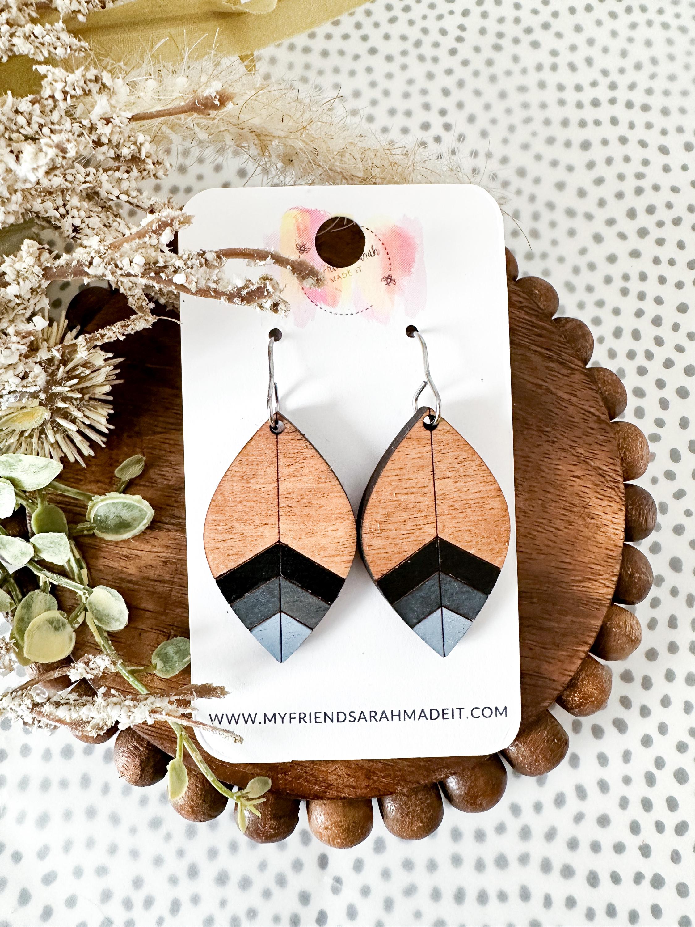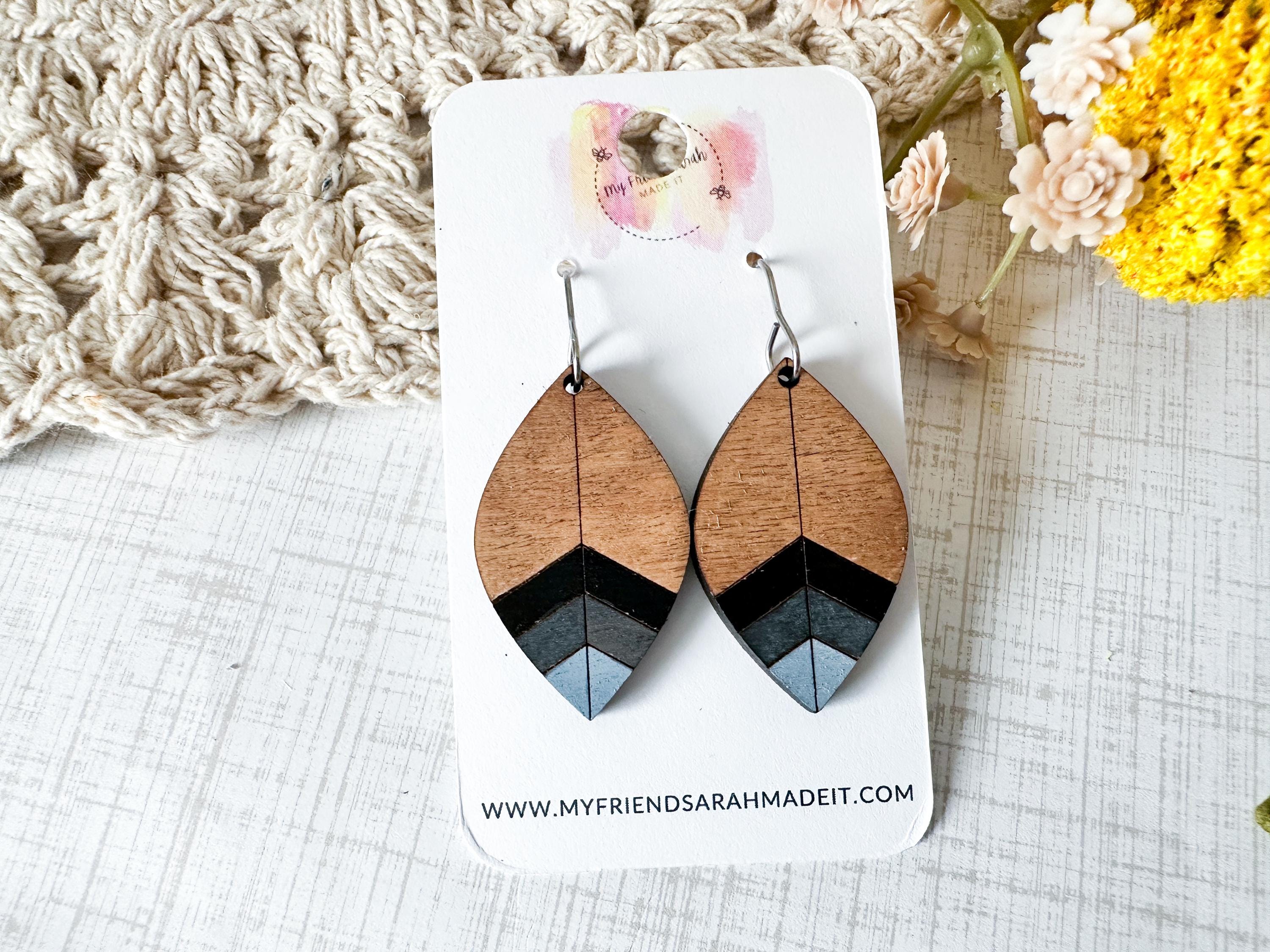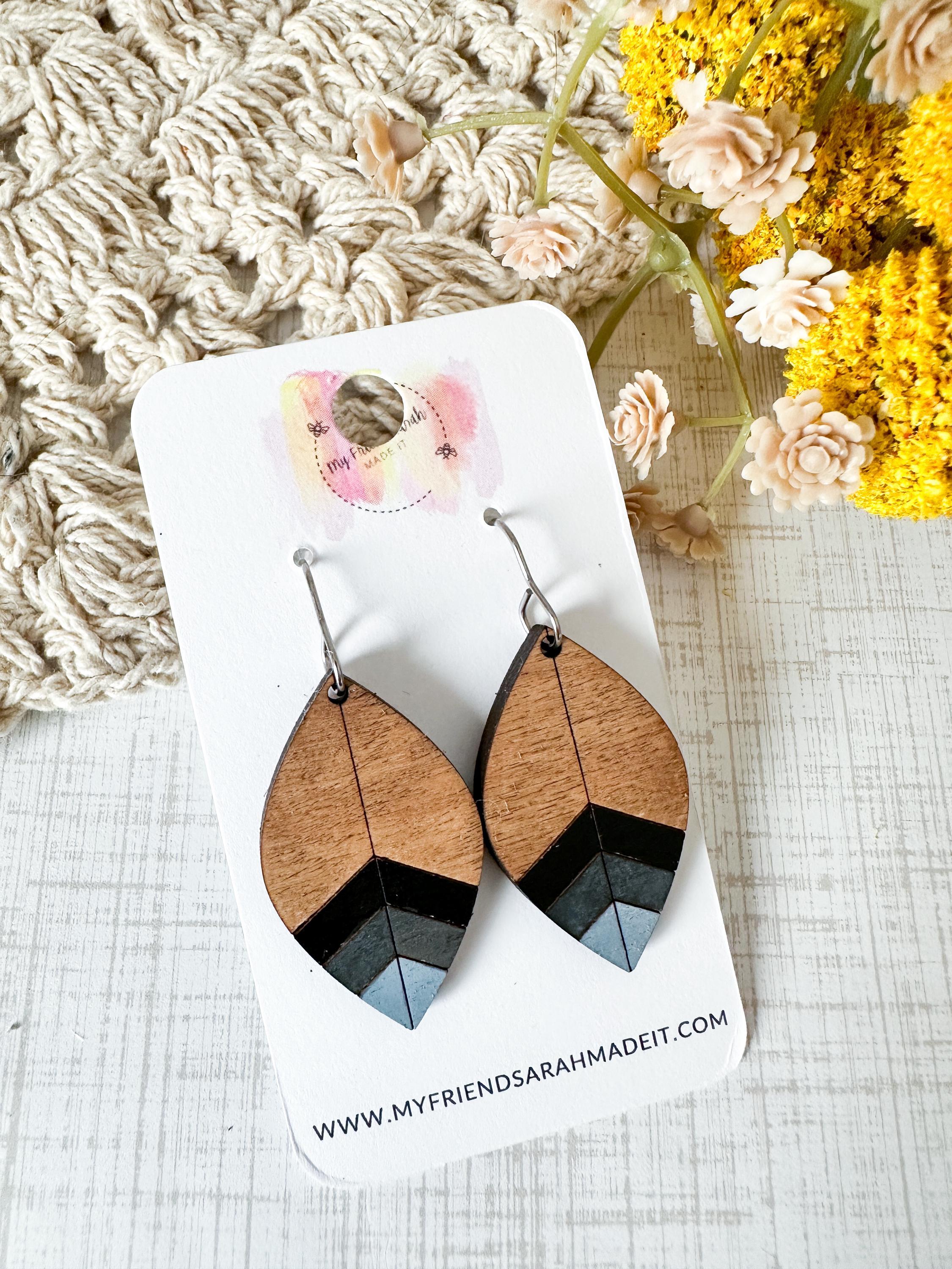 Black & Gray Ombre Chevron Petal Wooden Earrings