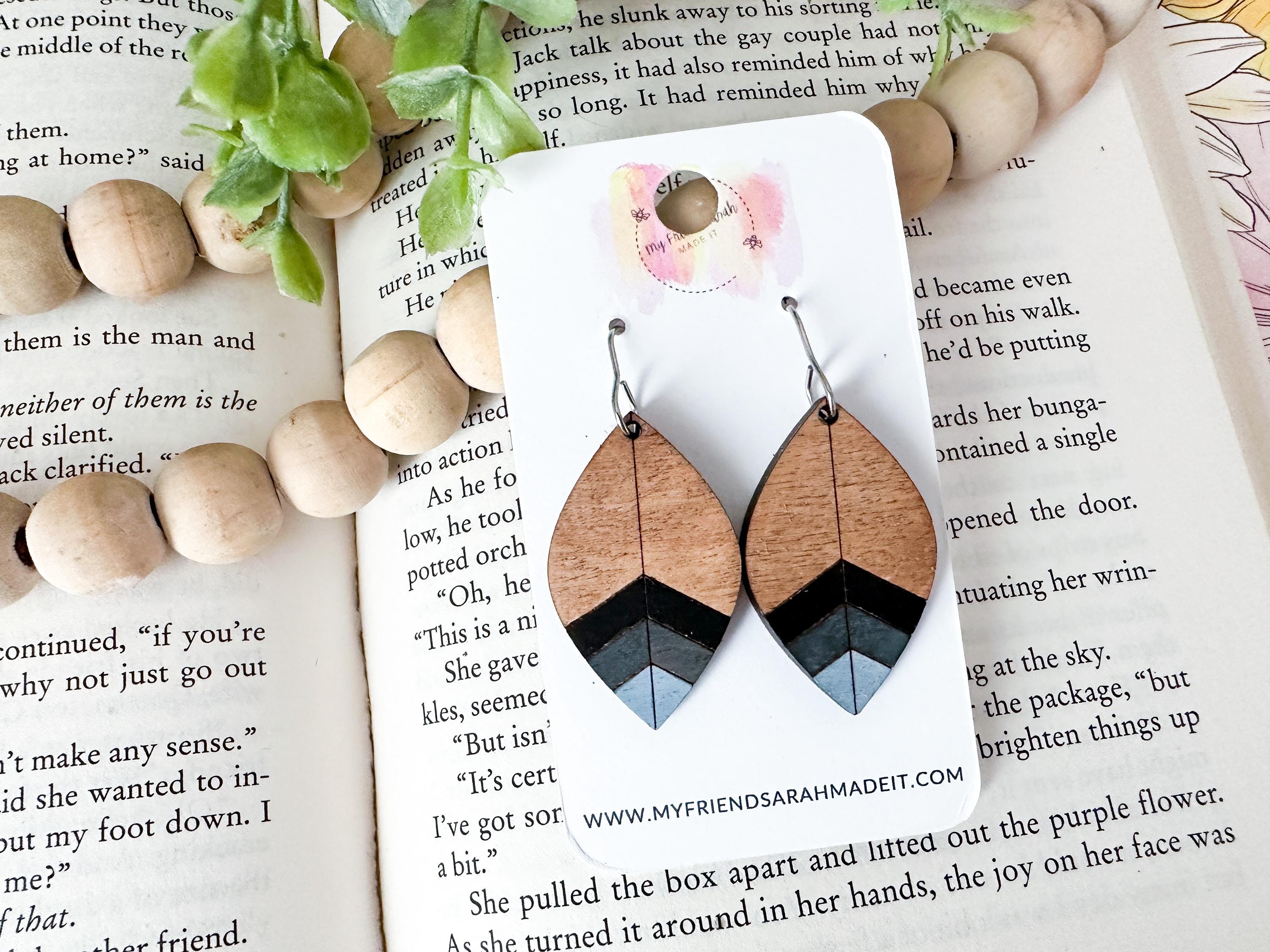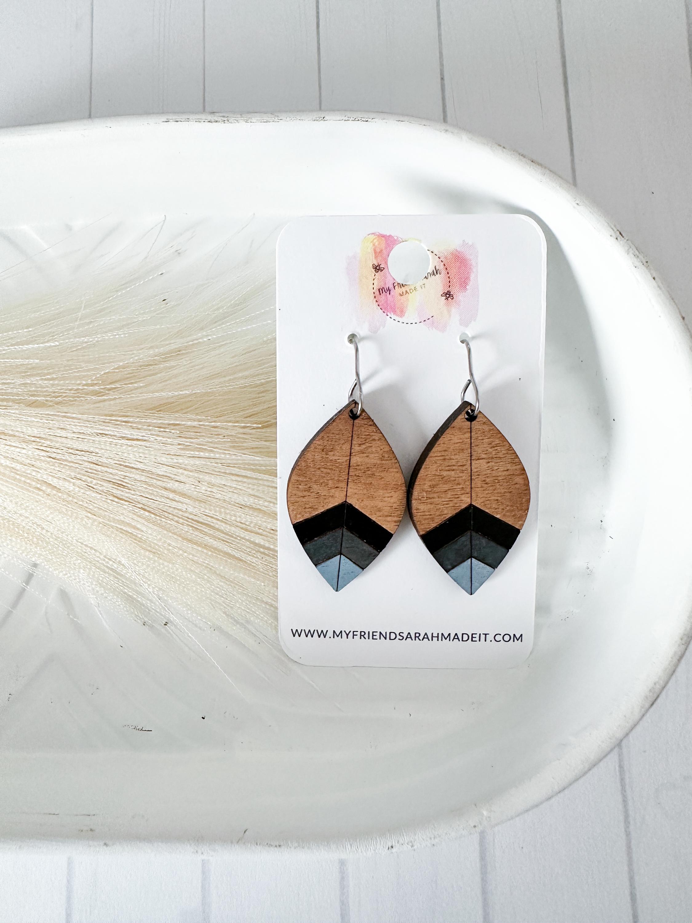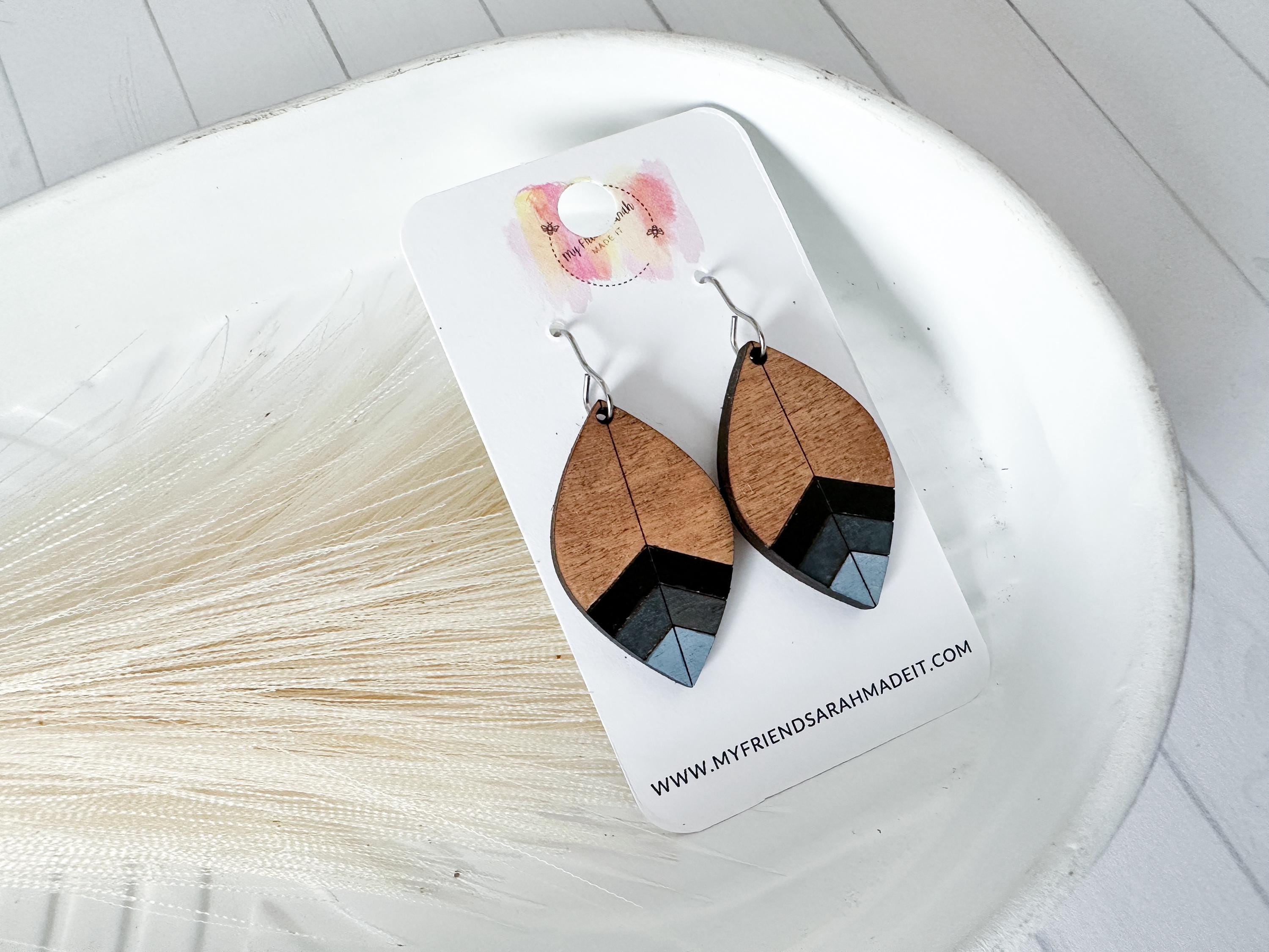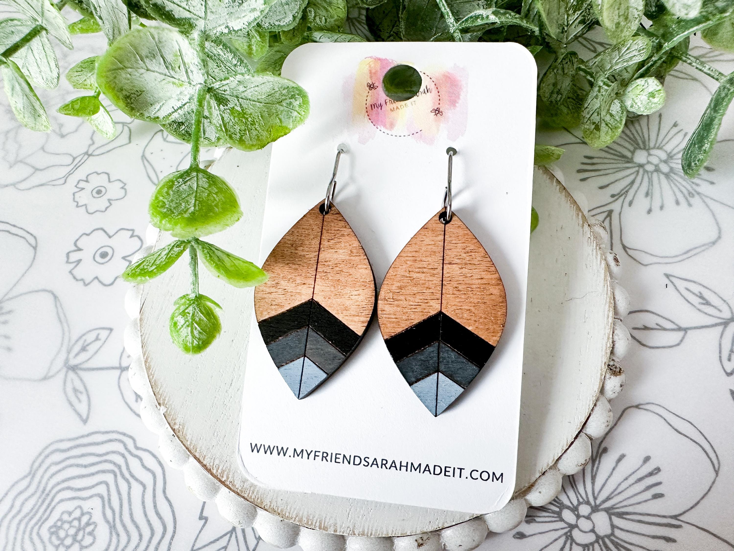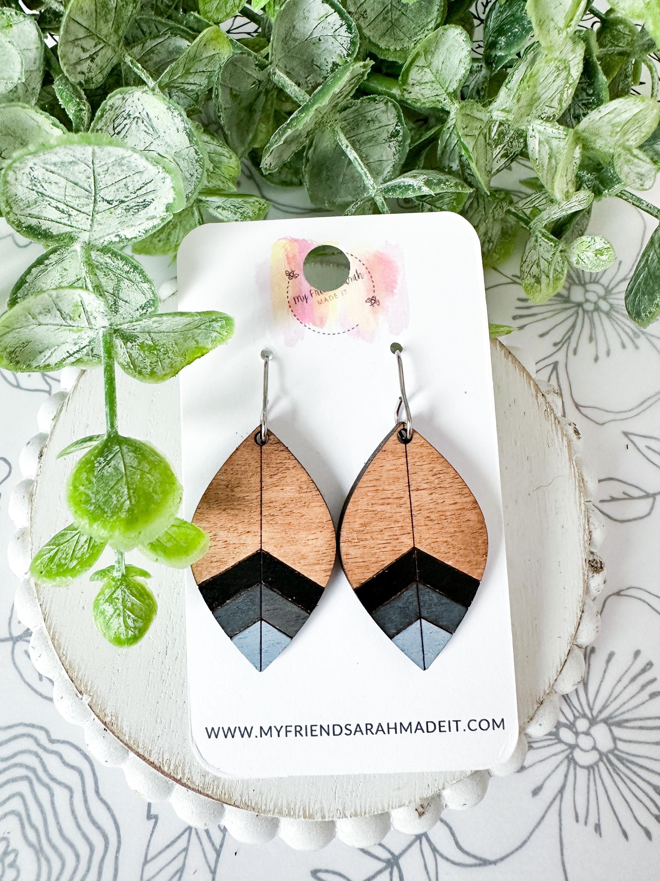 Sleek, lightweight, and a little bold - these wooden petal earrings are the perfect blend of natural and modern. The hand-painted chevron detail adds just enough edge to make them stand out while staying easy to wear every day.