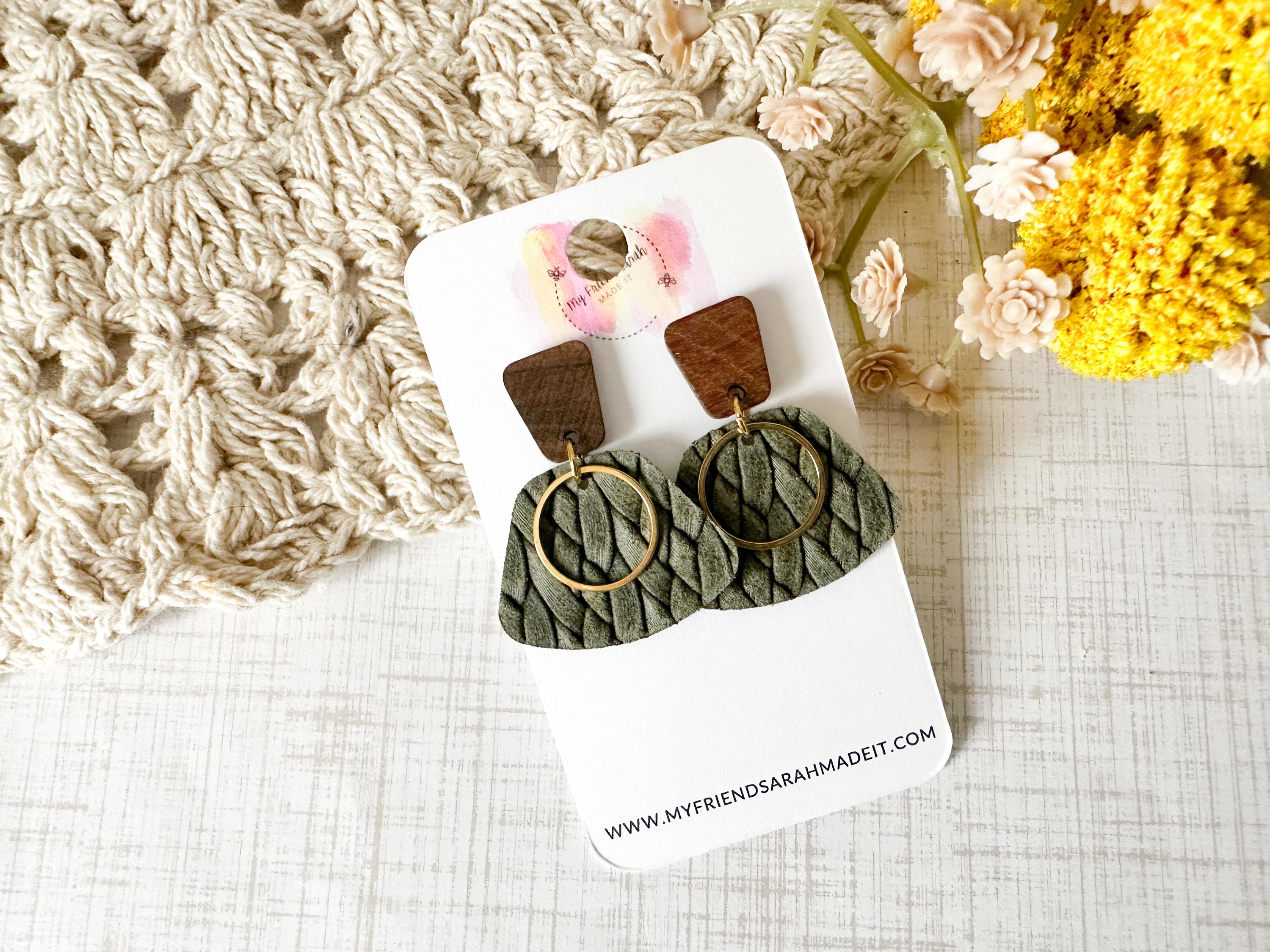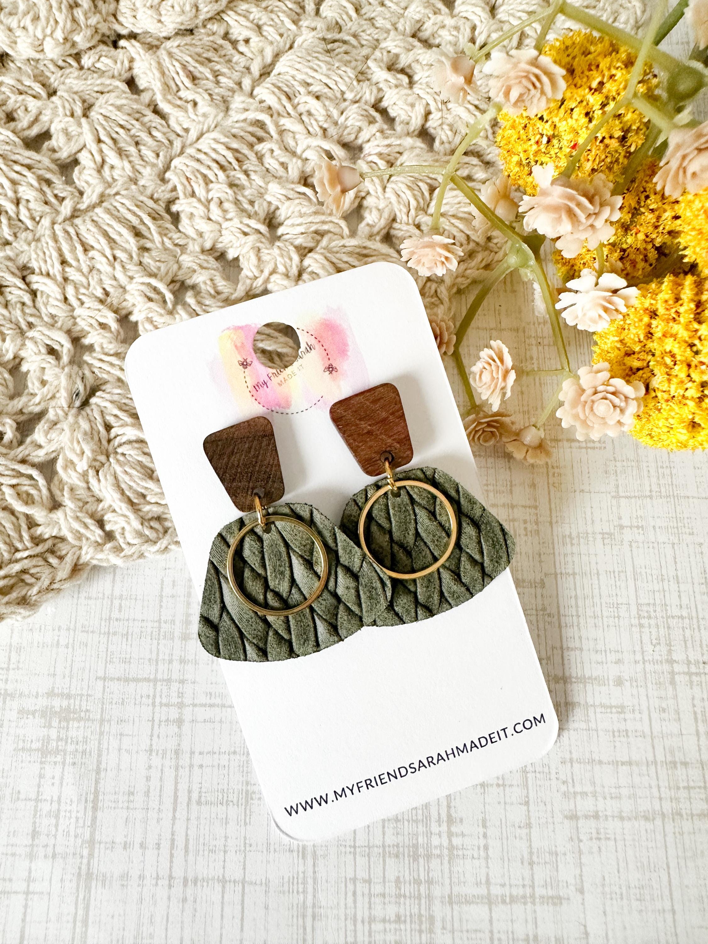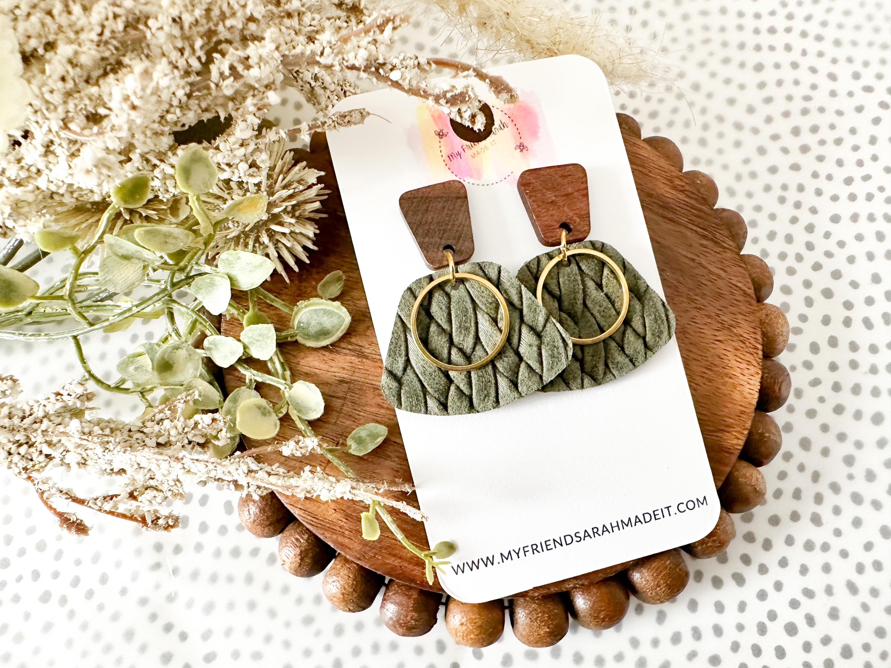 Soft green braided leather, warm wood, and a hint of gold - these earrings feel equal parts earthy and elegant. Lightweight and easy to wear, theyβll add a subtle pop of texture to any outfit.