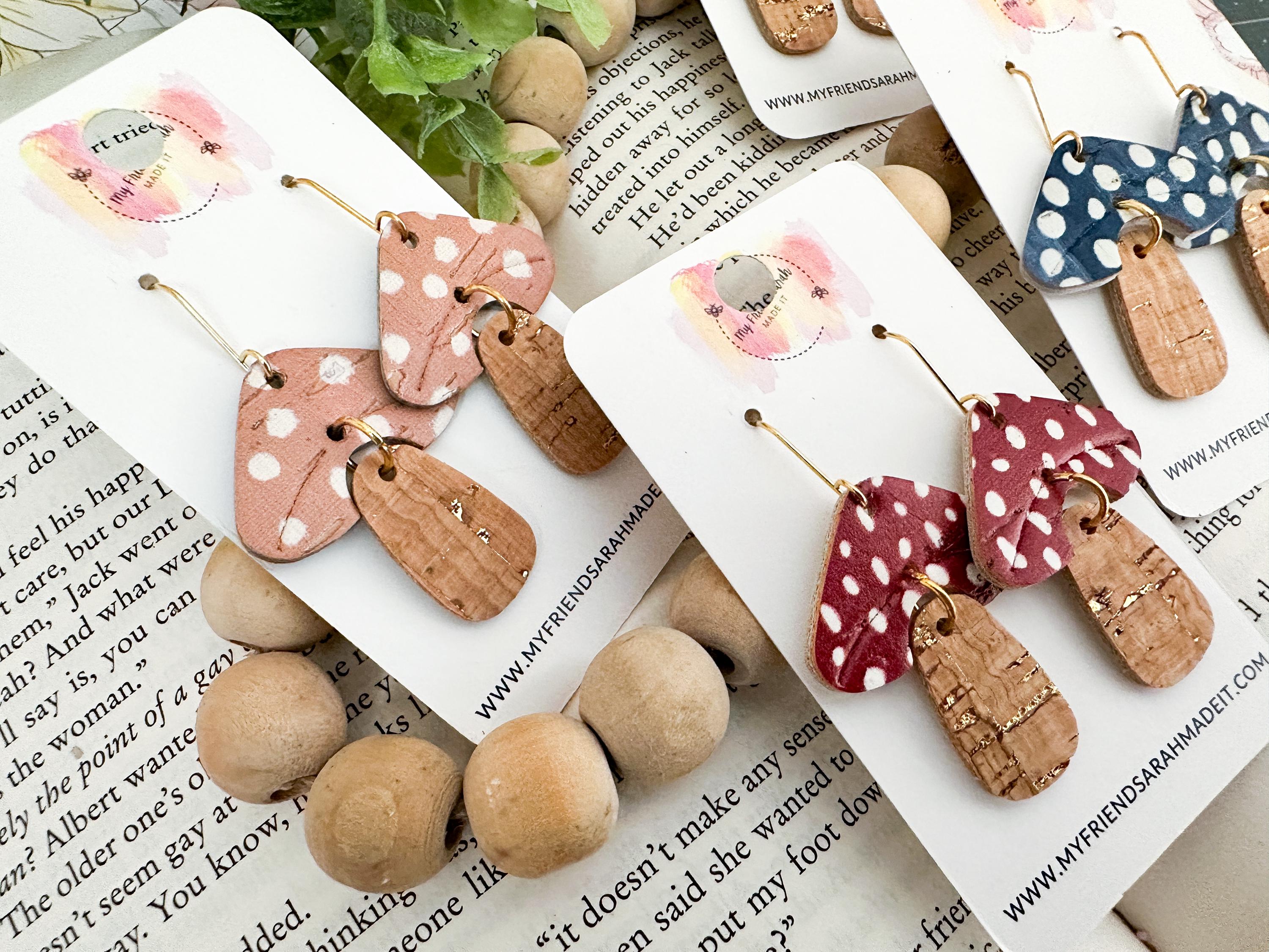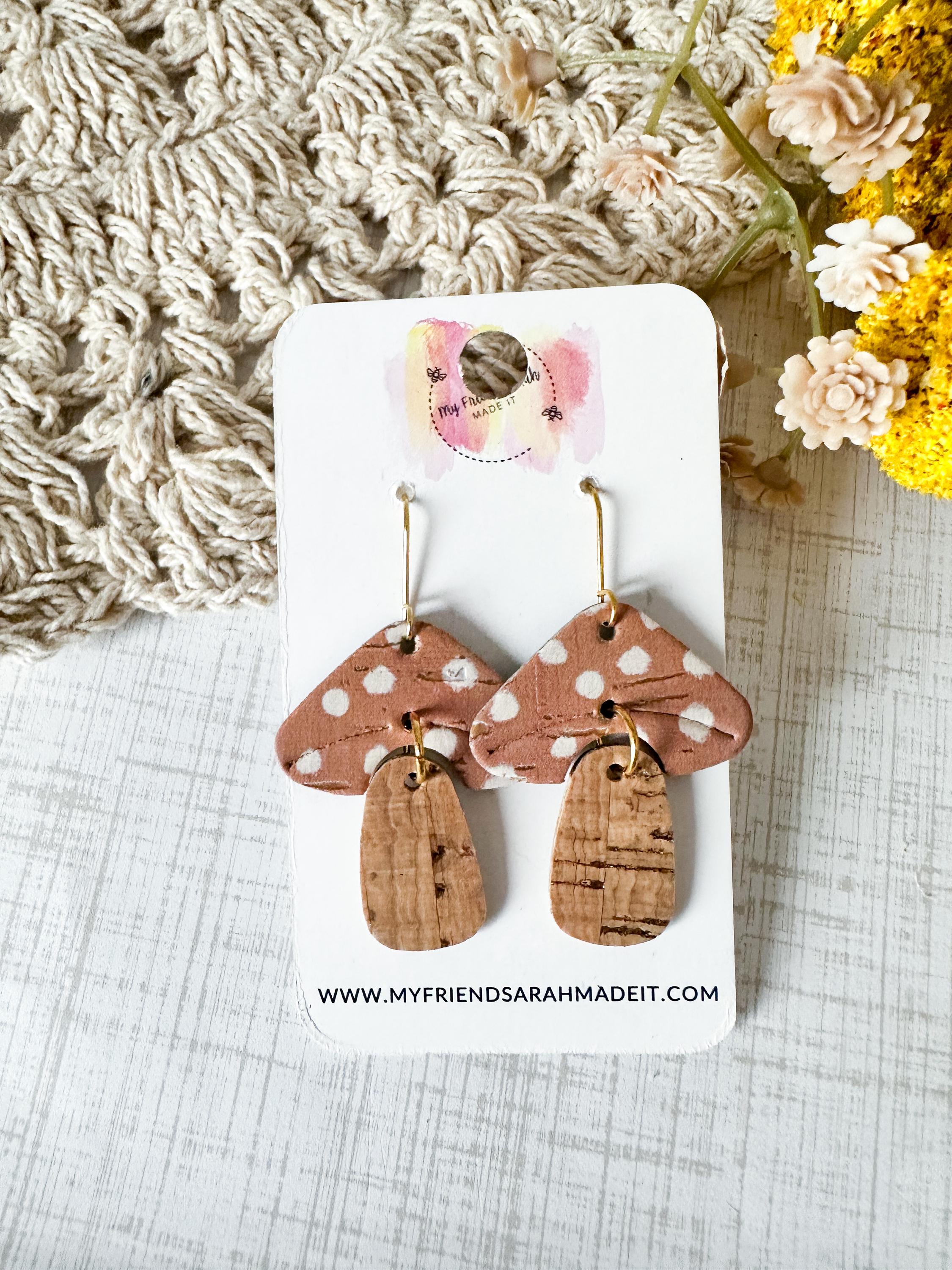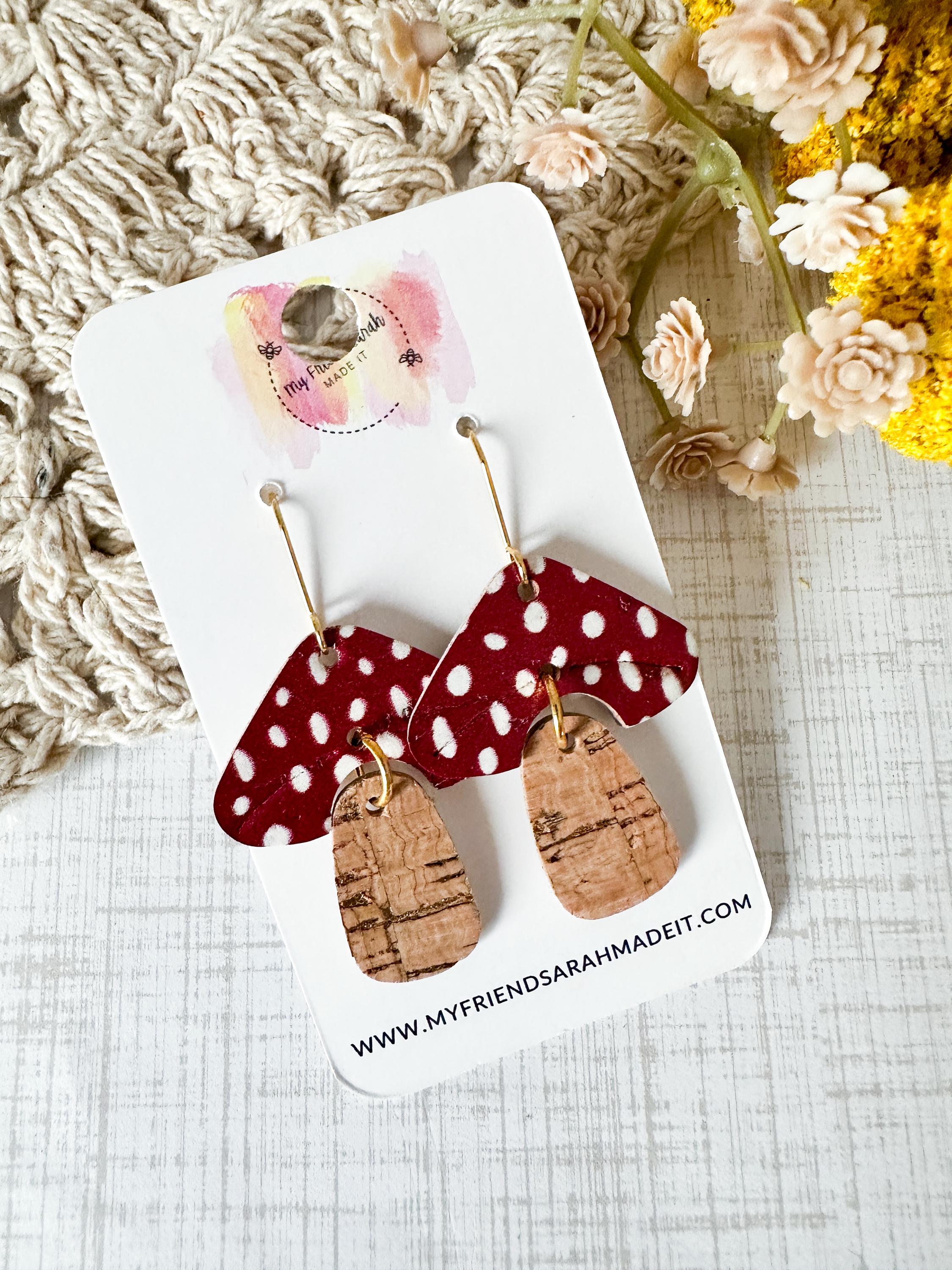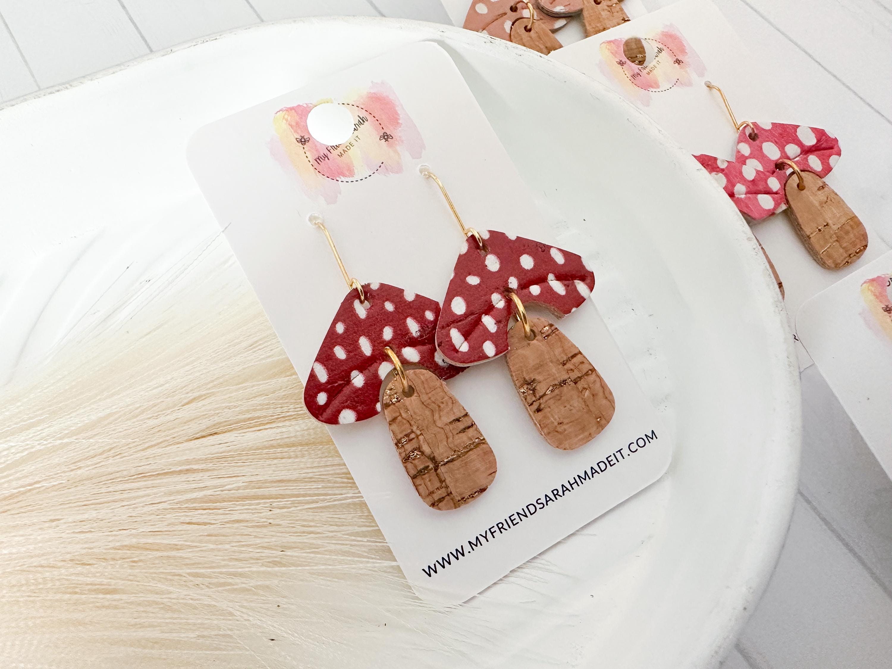 Whimsical and fun, these cork and leather mushroom earrings are the perfect mix of playful and earthy. Each pair features a polka-dotted cap in your choice of red, pink, tan, or navy. Lightweight, full of personality, and guaranteed to make you smile.
