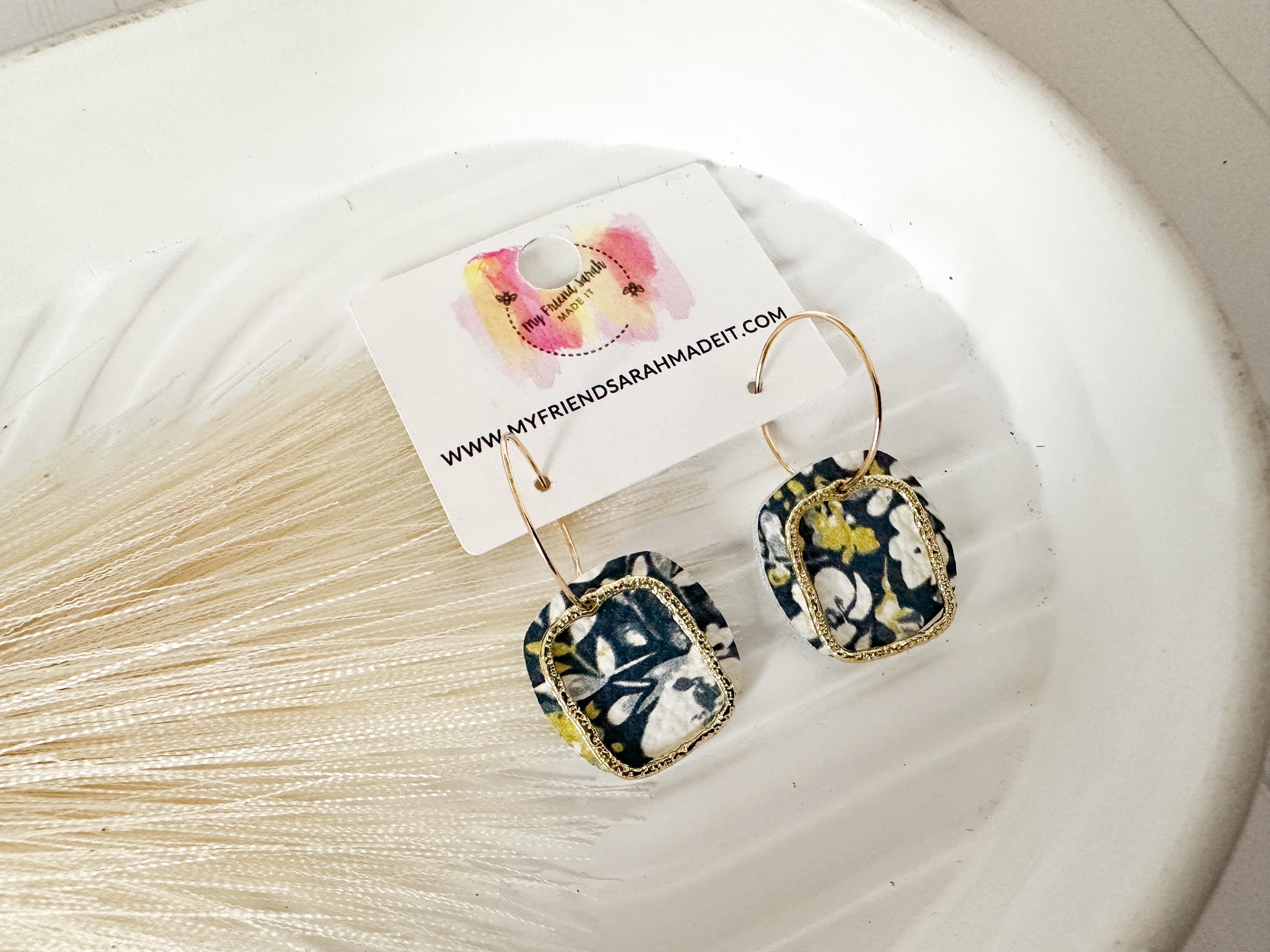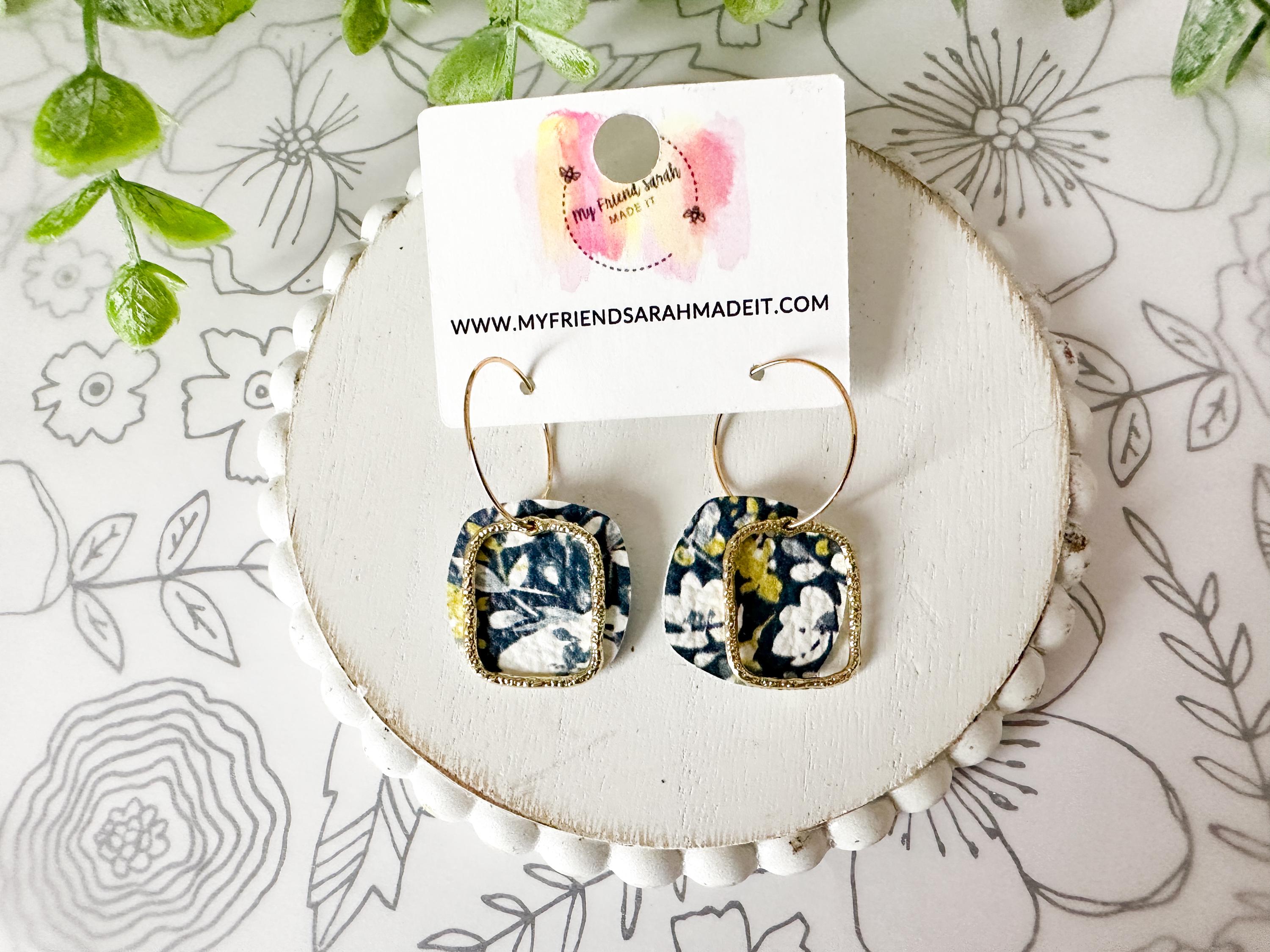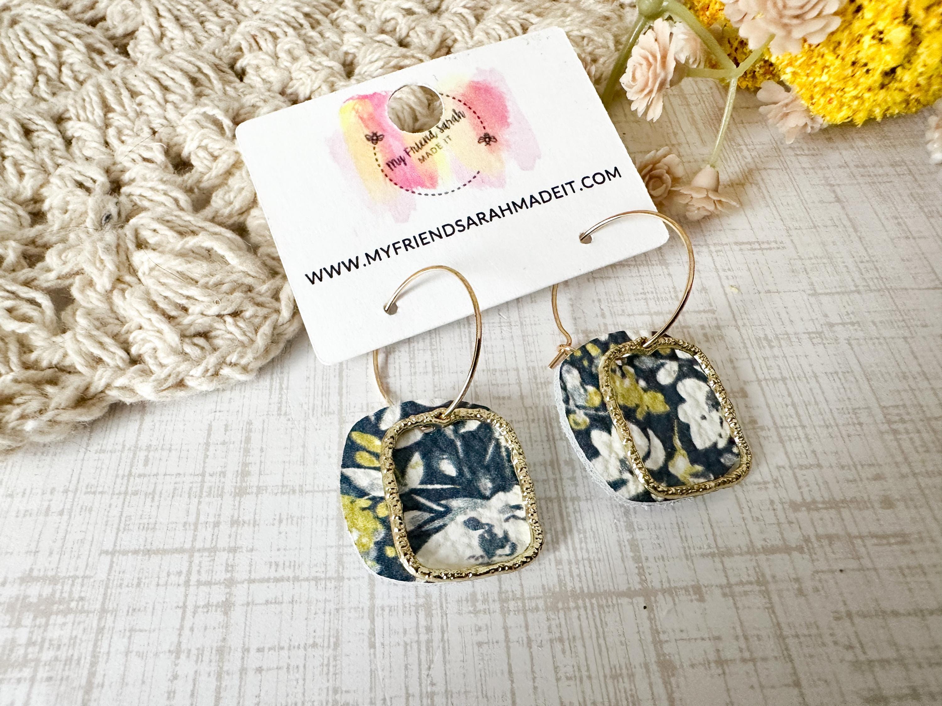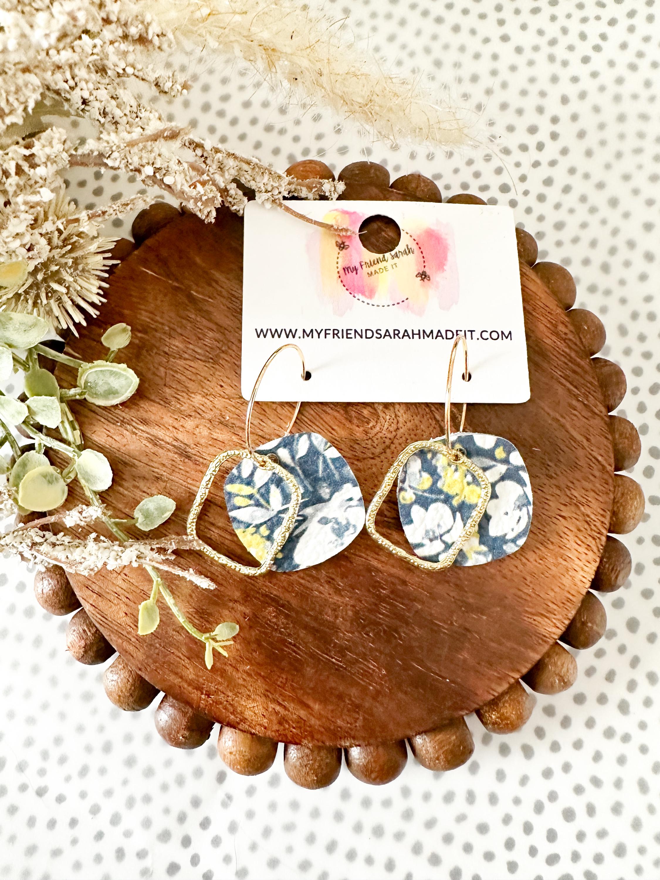 A little floral, a little fancy. These navy leather earrings feature a soft floral print framed in hammered brass - the perfect blend of casual charm and polished style.