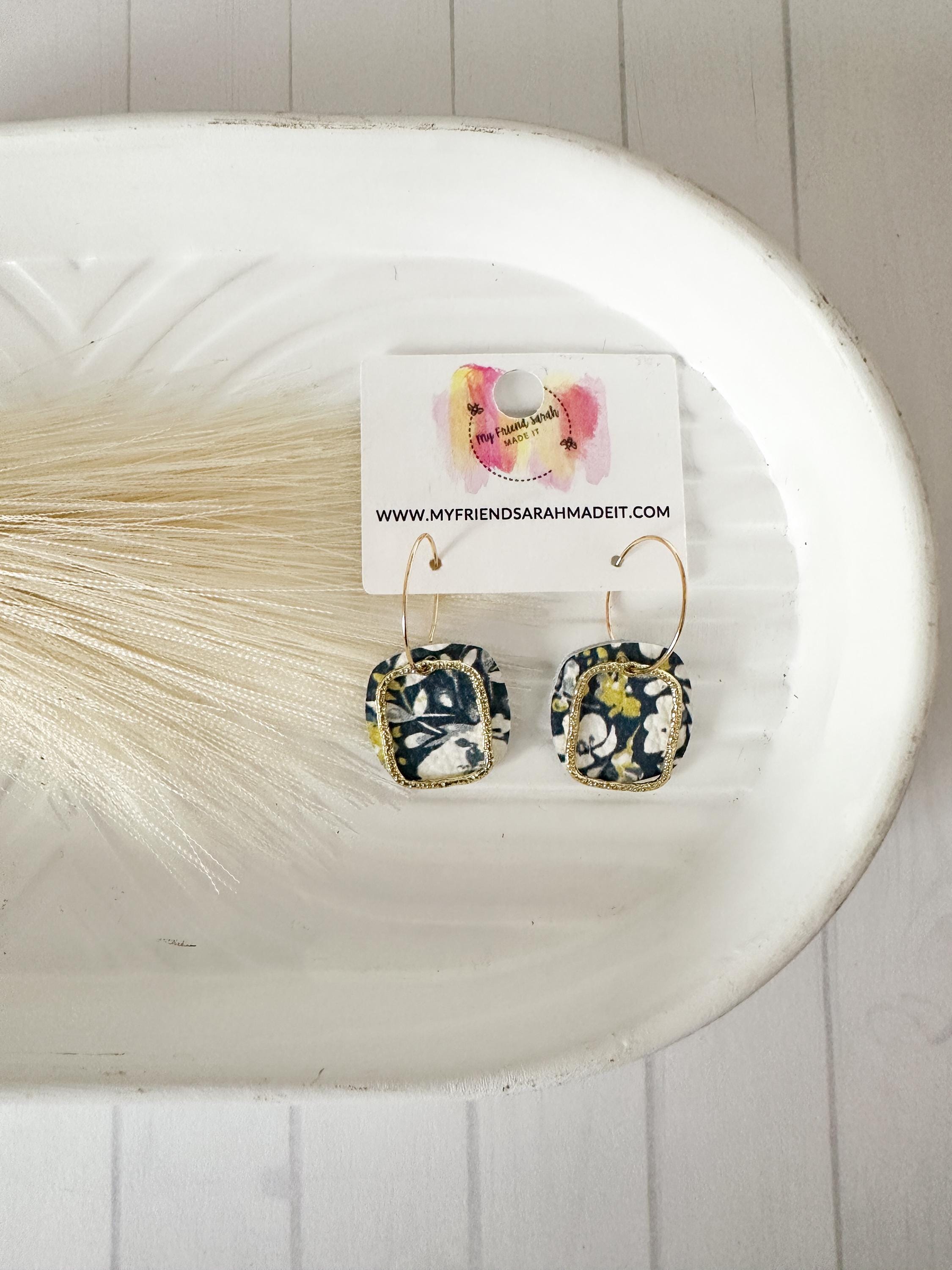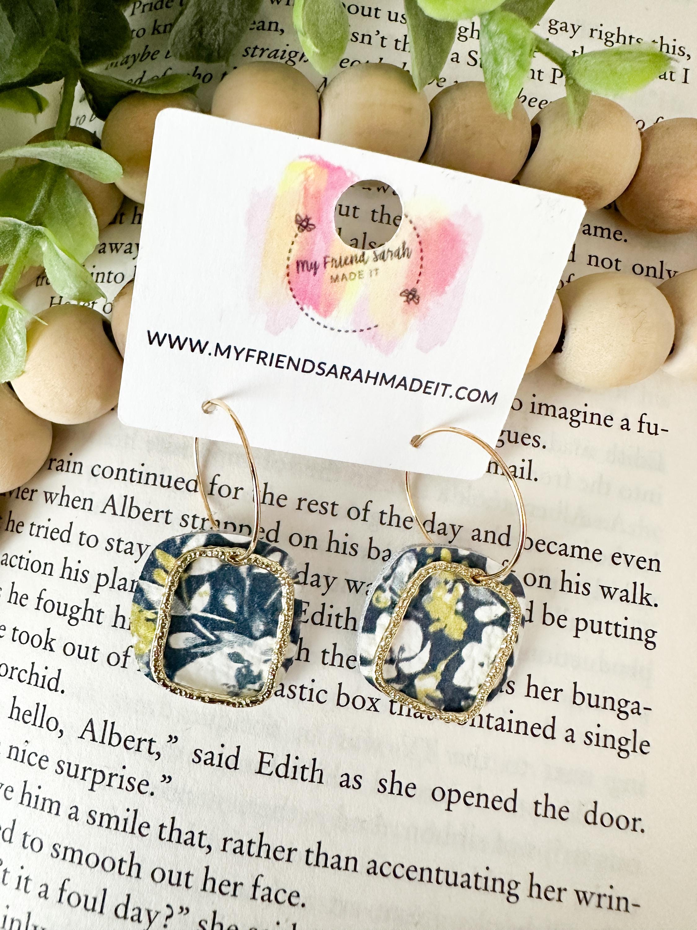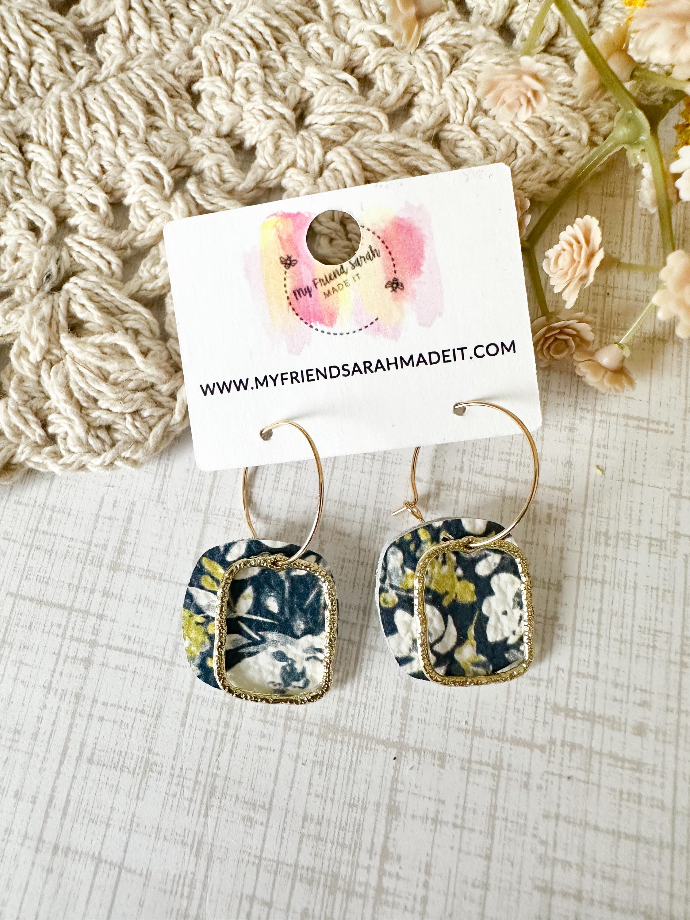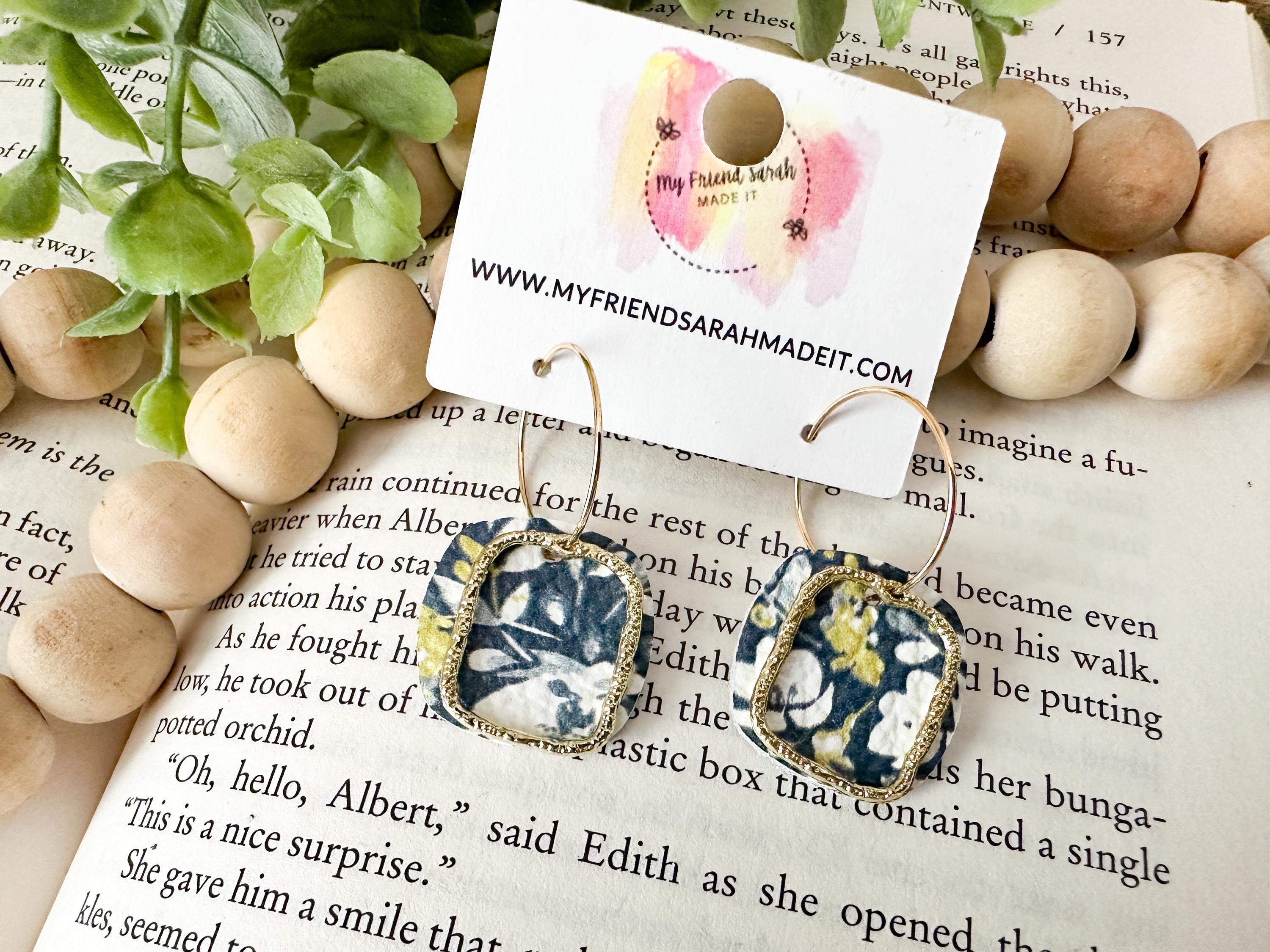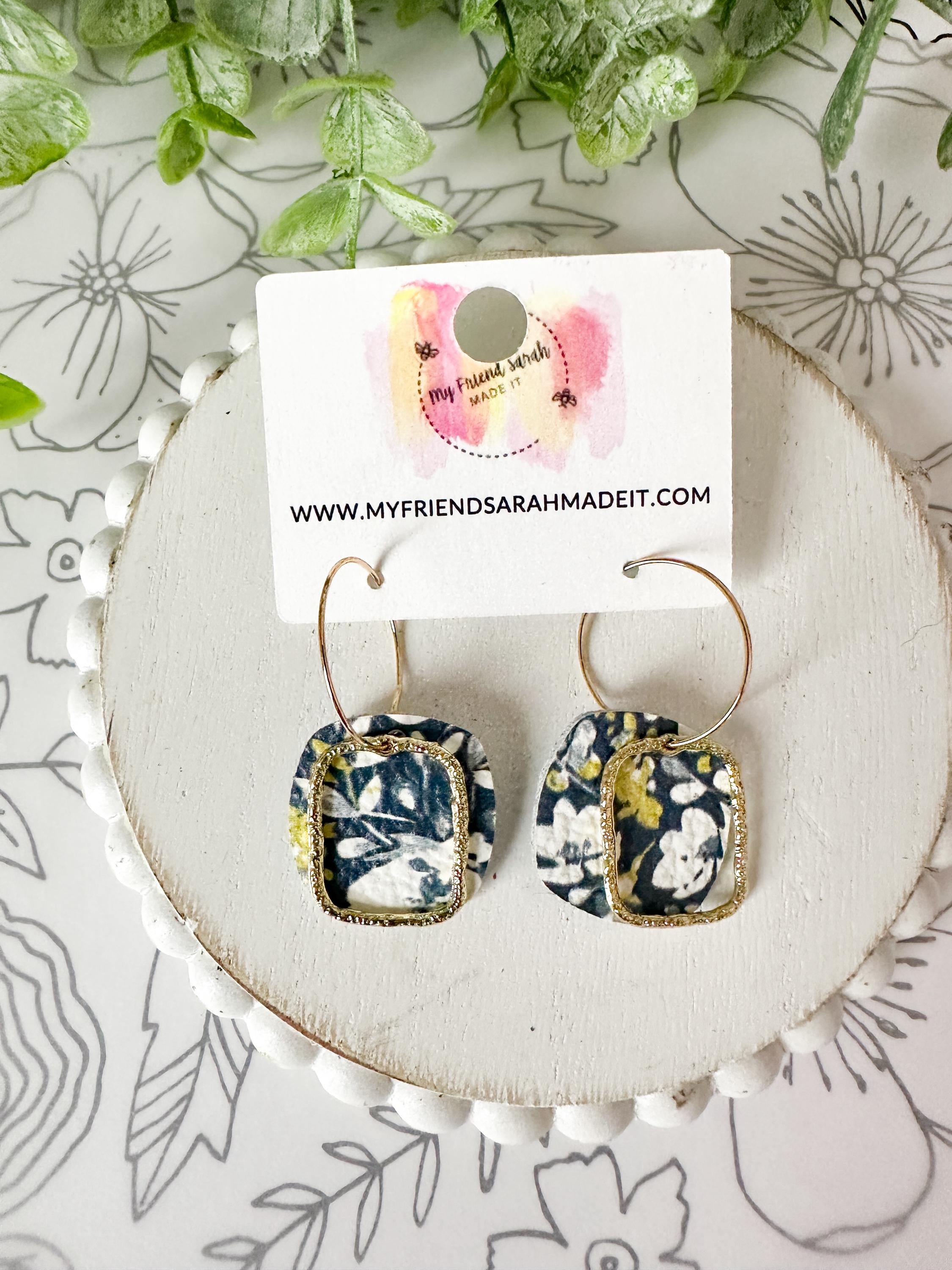 A little floral, a little fancy. These navy leather earrings feature a soft floral print framed in hammered brass - the perfect blend of casual charm and polished style.