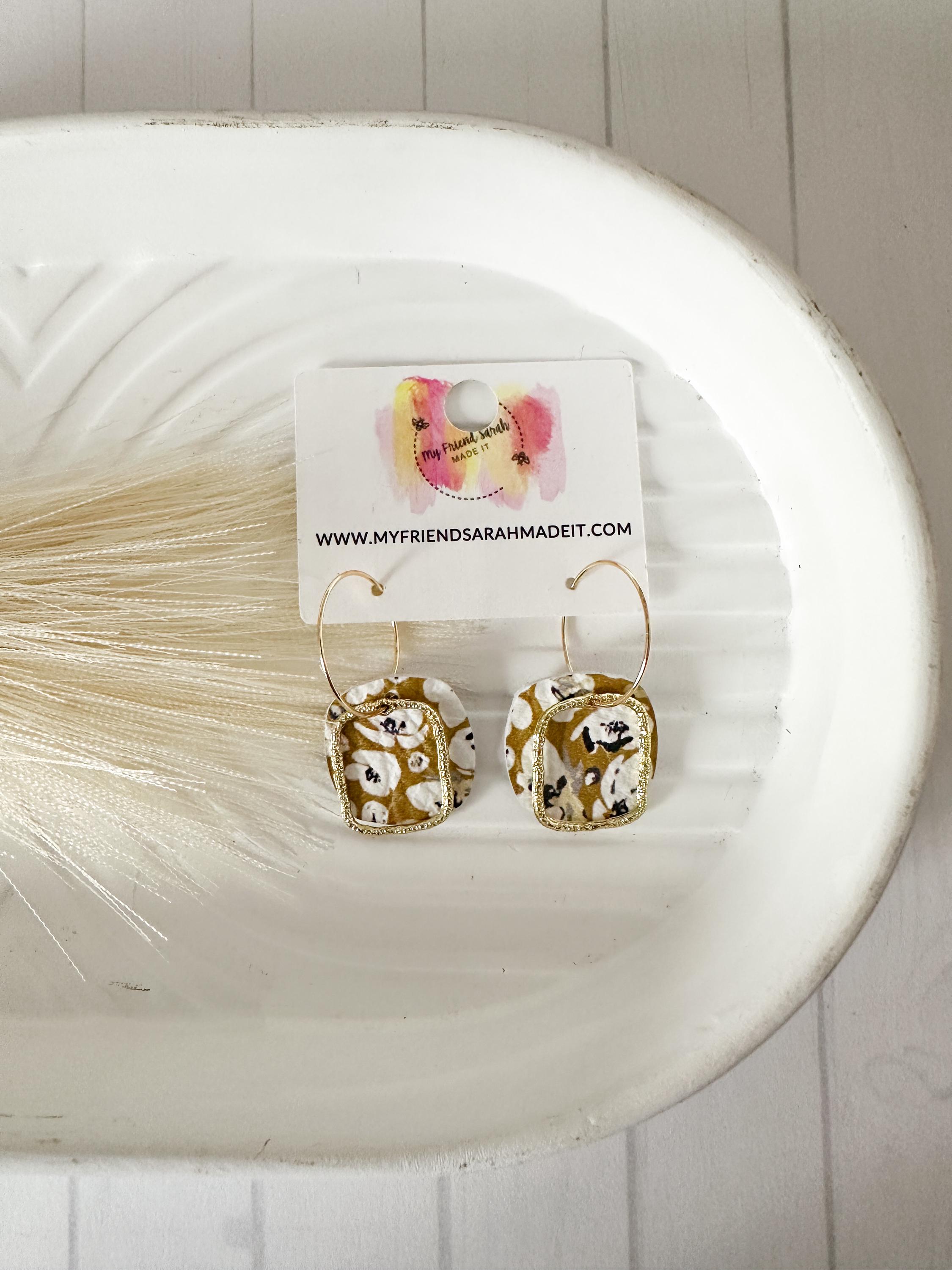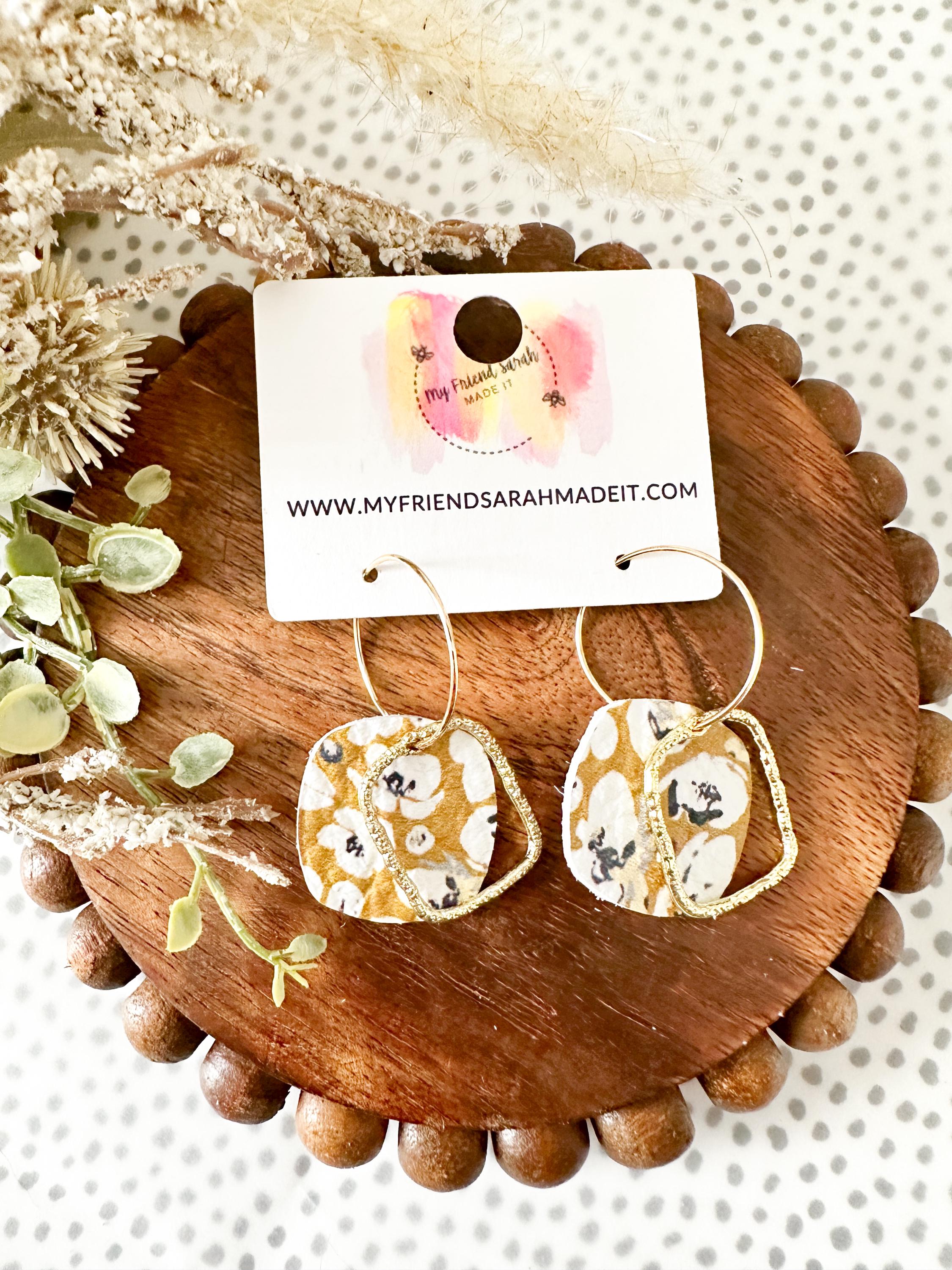 Bright and cheerful, these mustard floral earrings add a pop of sunshine to any outfit. The hammered brass detail gives them a luxe handmade feel thatβs still easy for everyday wear.