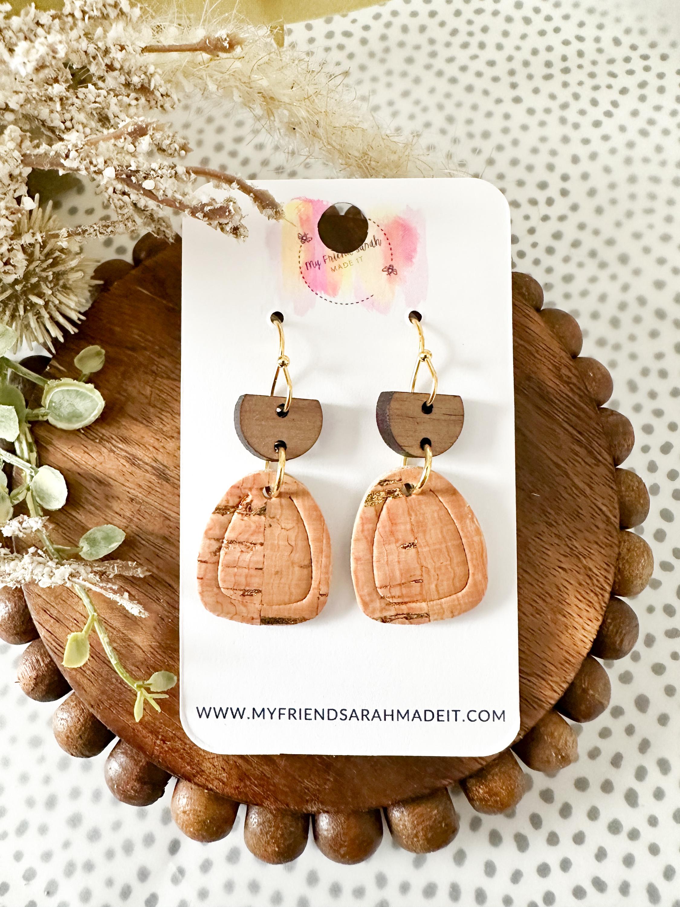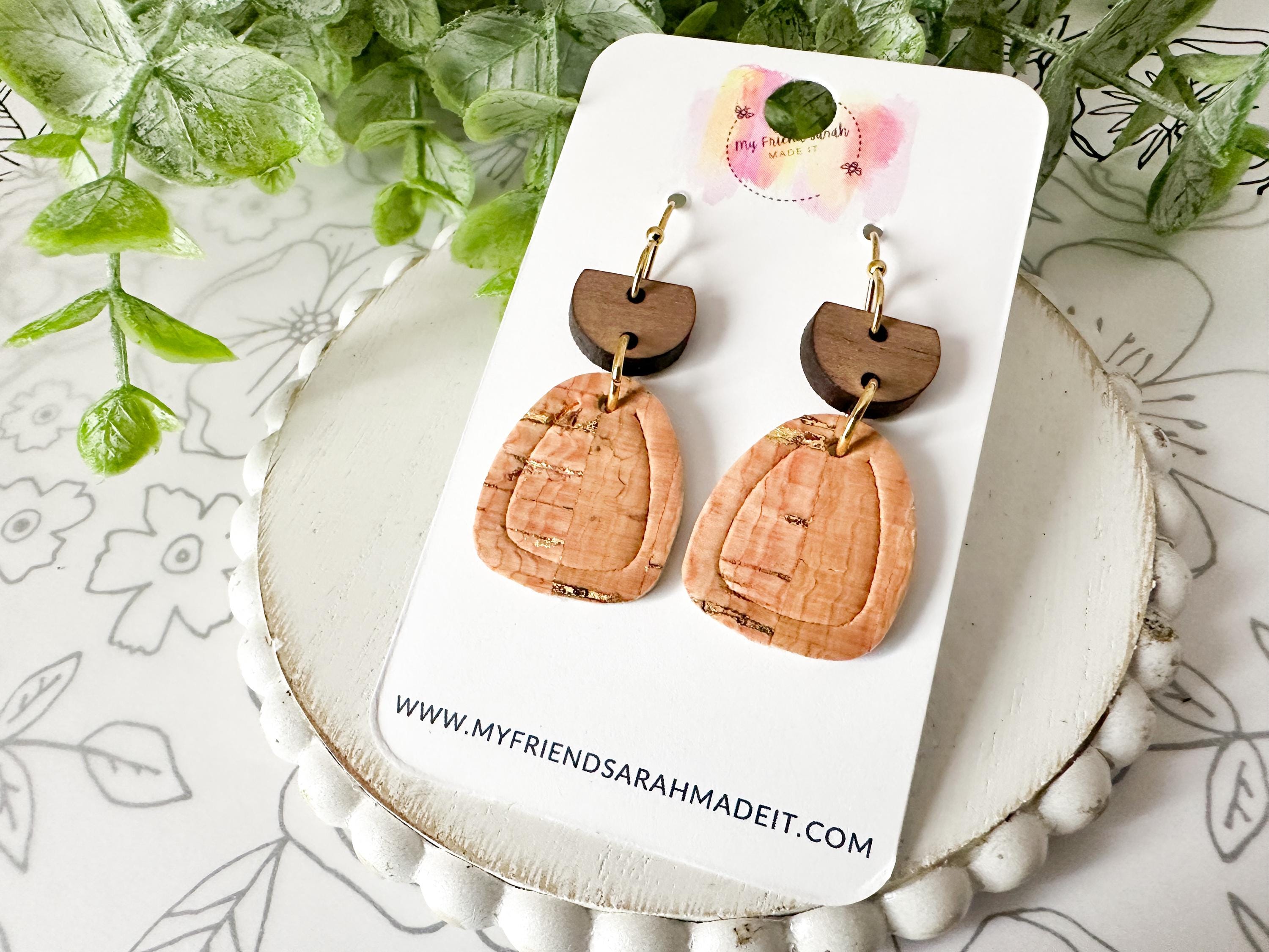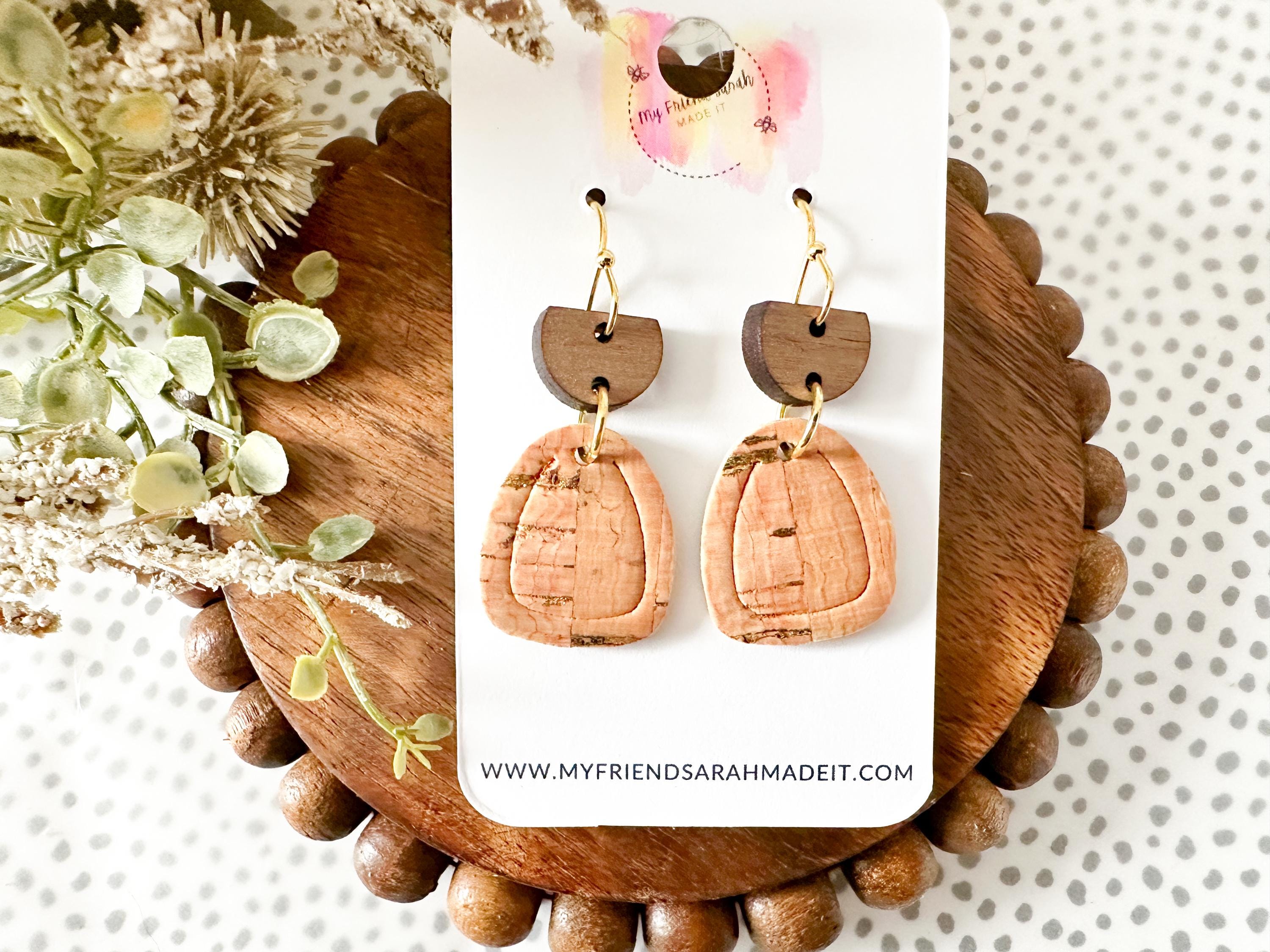 Effortlessly neutral with a hint of sparkle - these cork and leather earrings feature a touch of gold for subtle sparkle. Lightweight, natural, and easy to style with anything from jeans to your favorite cozy sweater.
