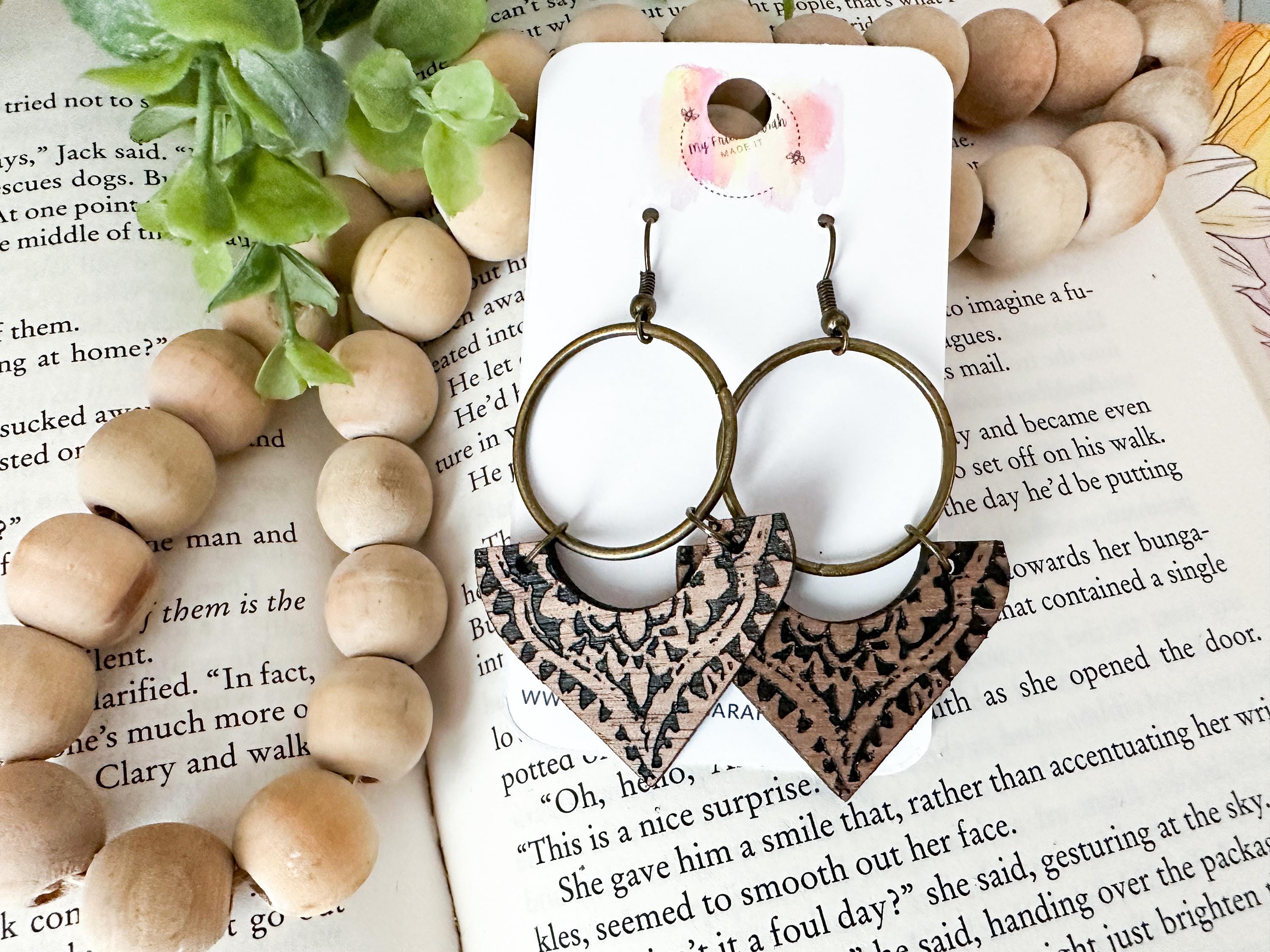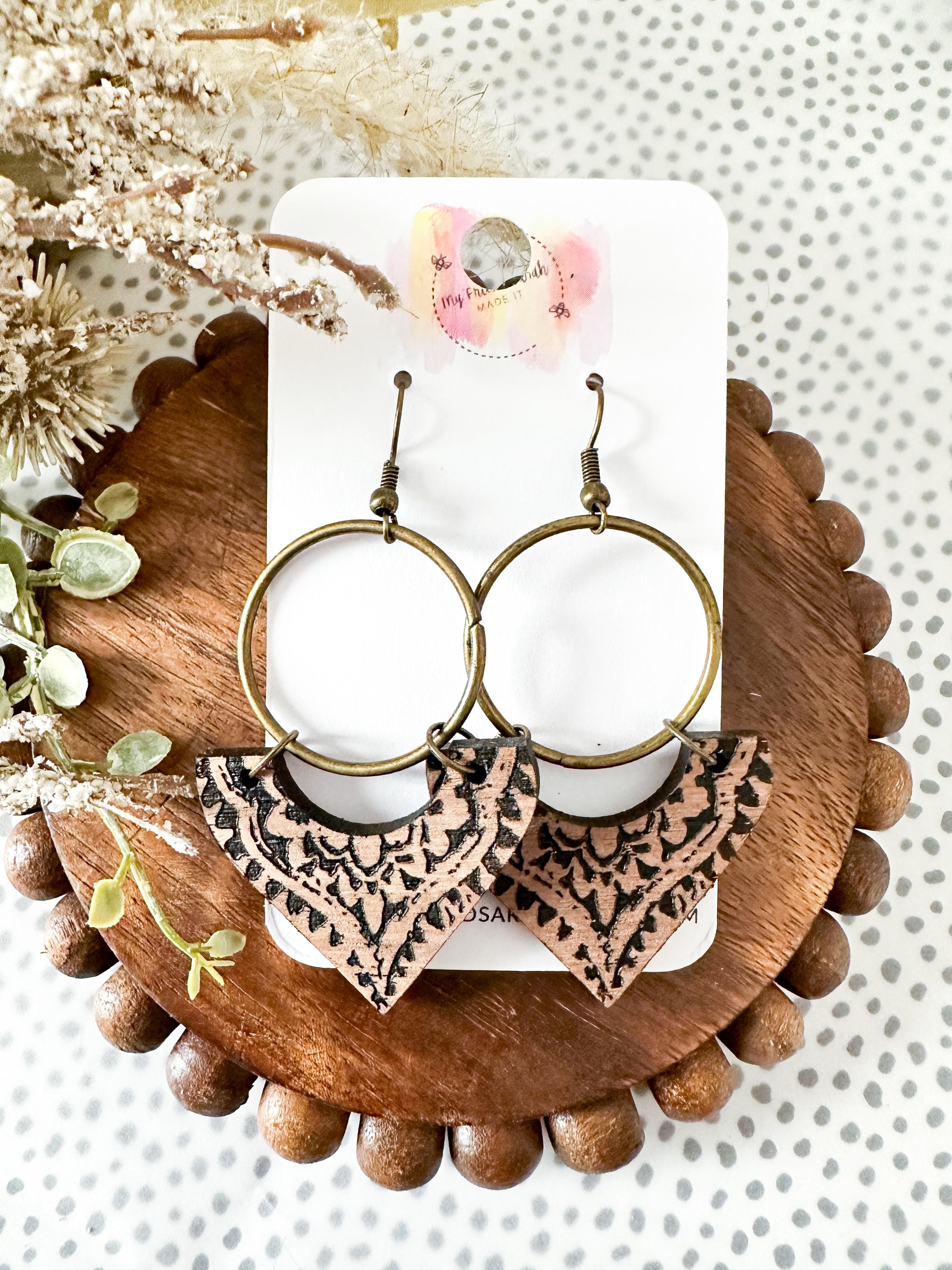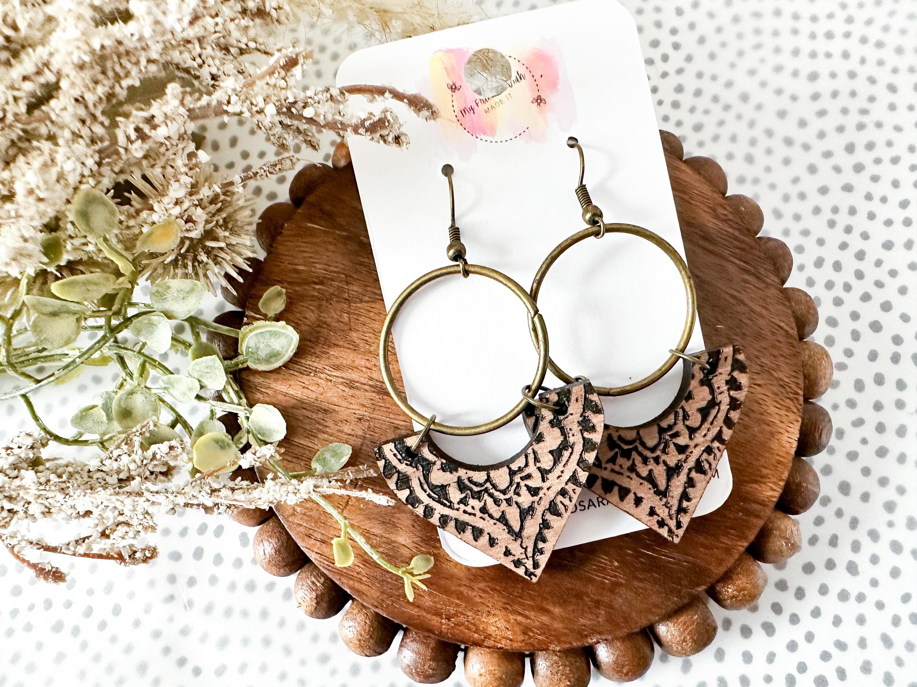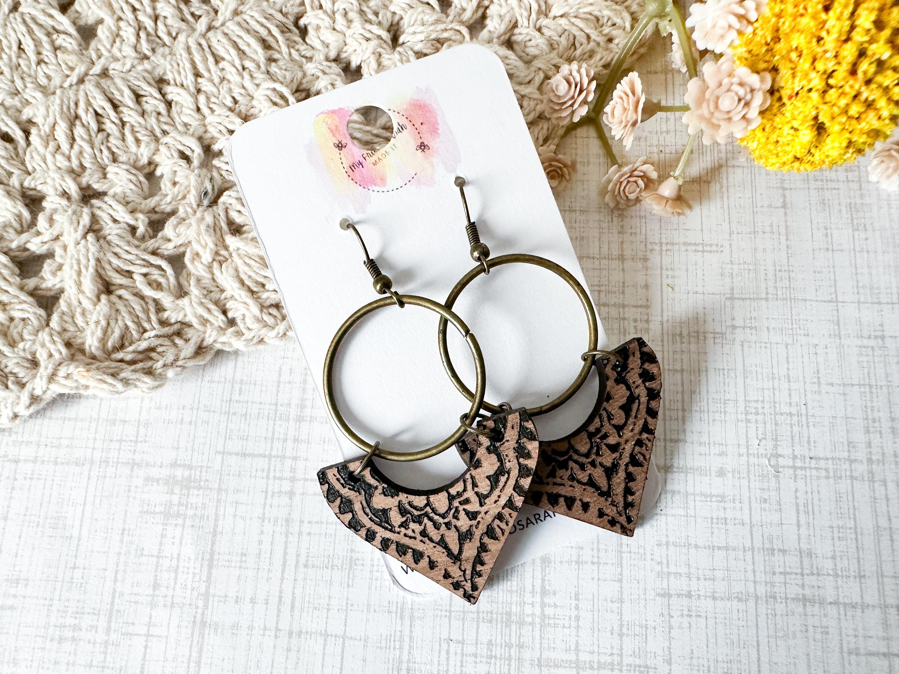 Rich, earthy, and full of texture - these hand-painted wooden earrings bring a boho twist to a classic hoop. The antique bronze finish adds vintage warmth, making them a perfect pick for fall and beyond.