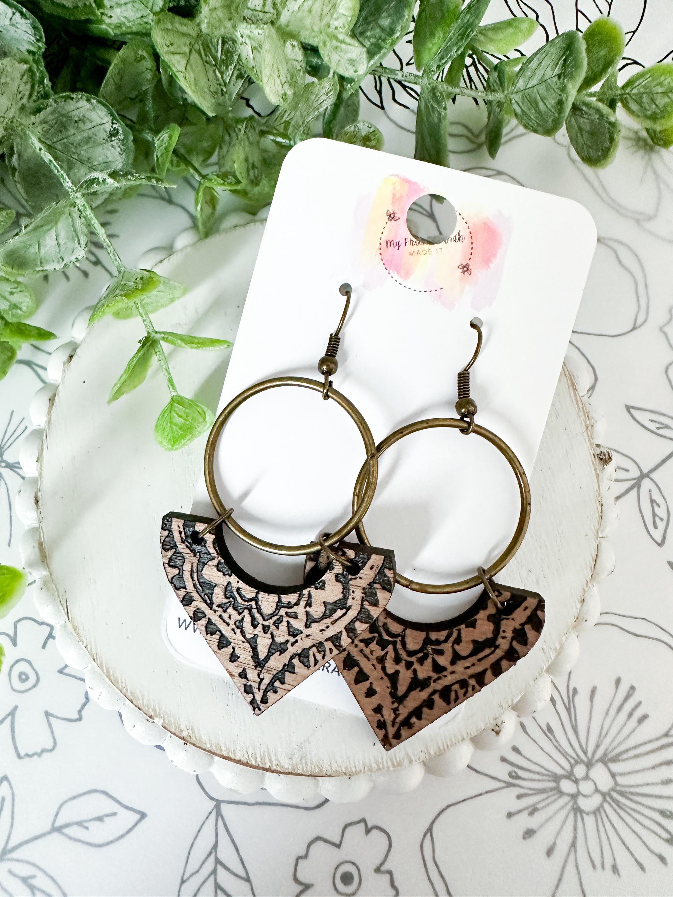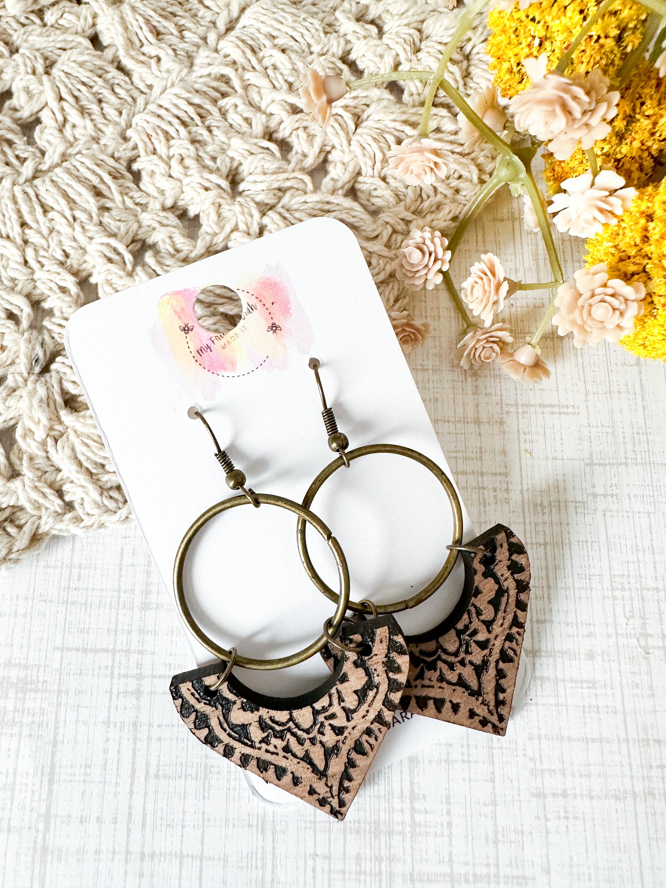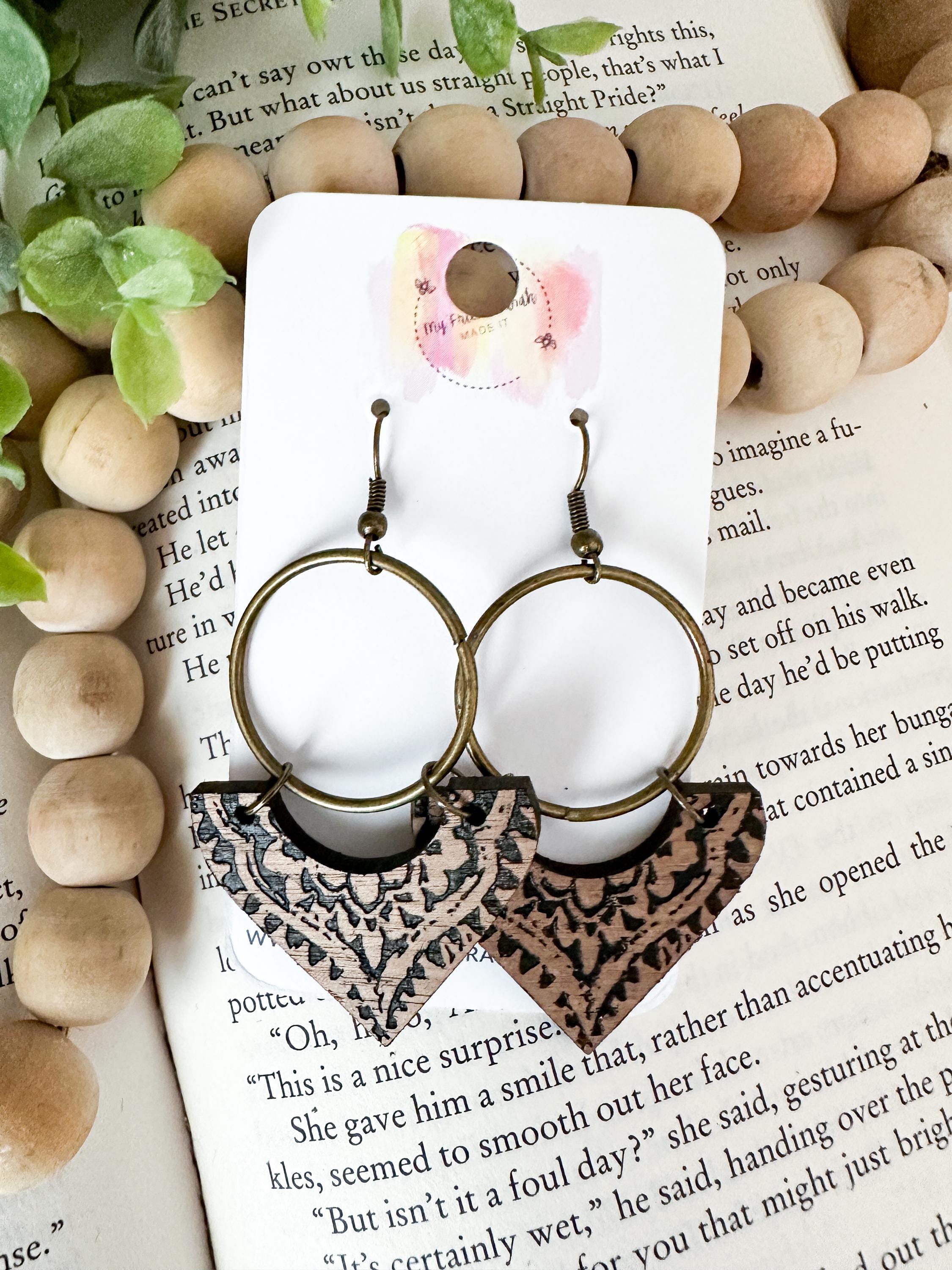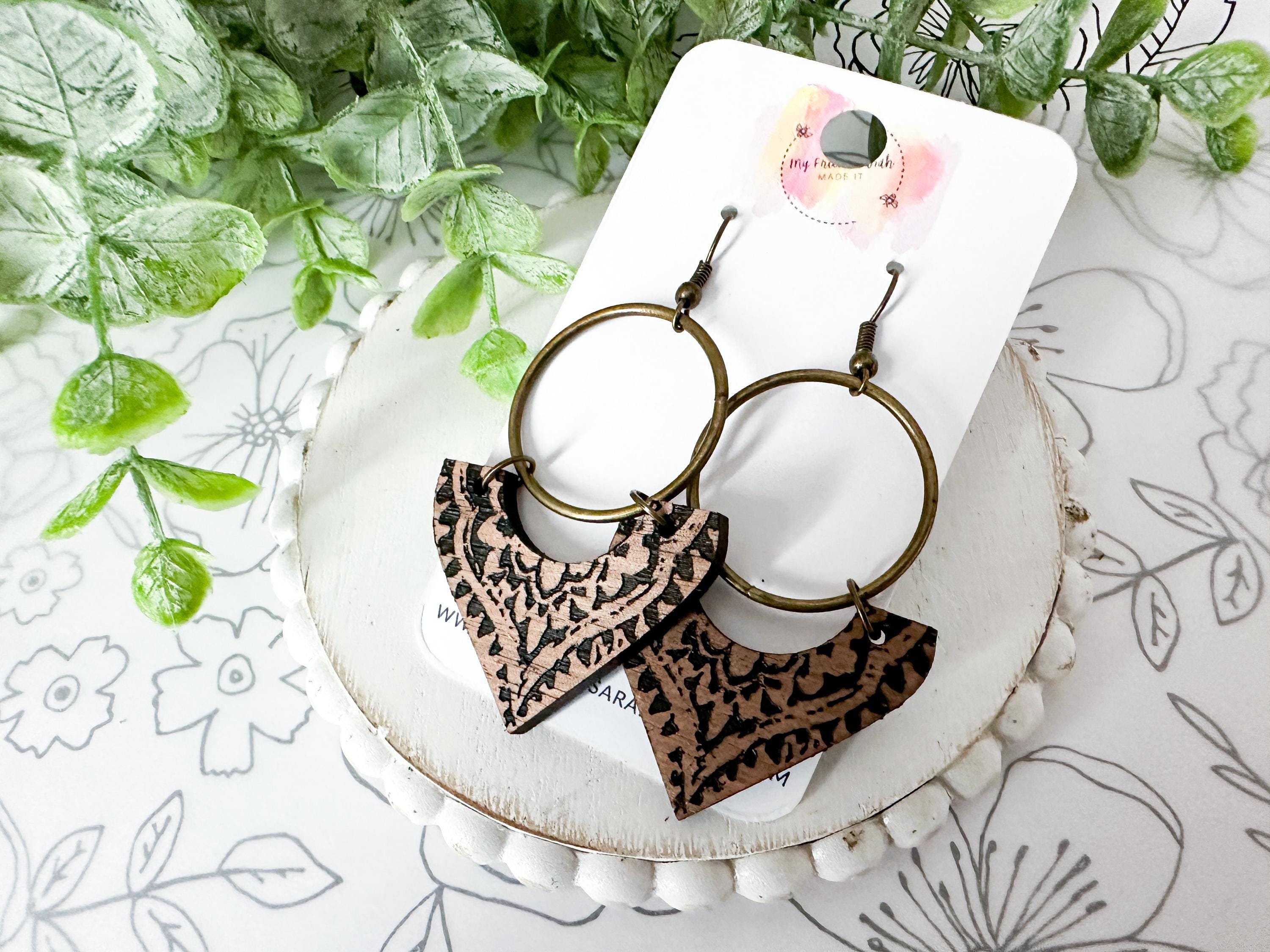 Rich, earthy, and full of texture - these hand-painted wooden earrings bring a boho twist to a classic hoop. The antique bronze finish adds vintage warmth, making them a perfect pick for fall and beyond.