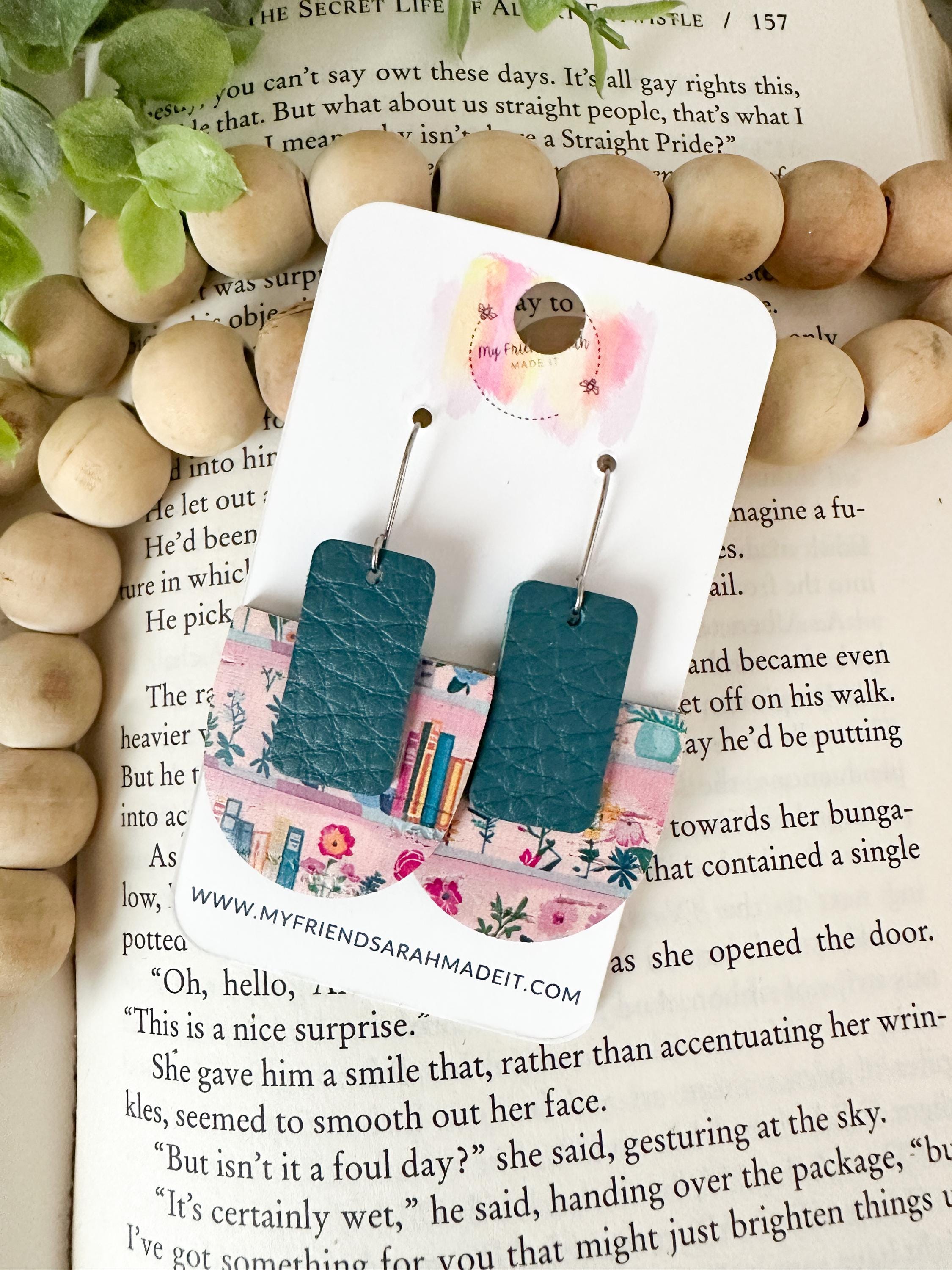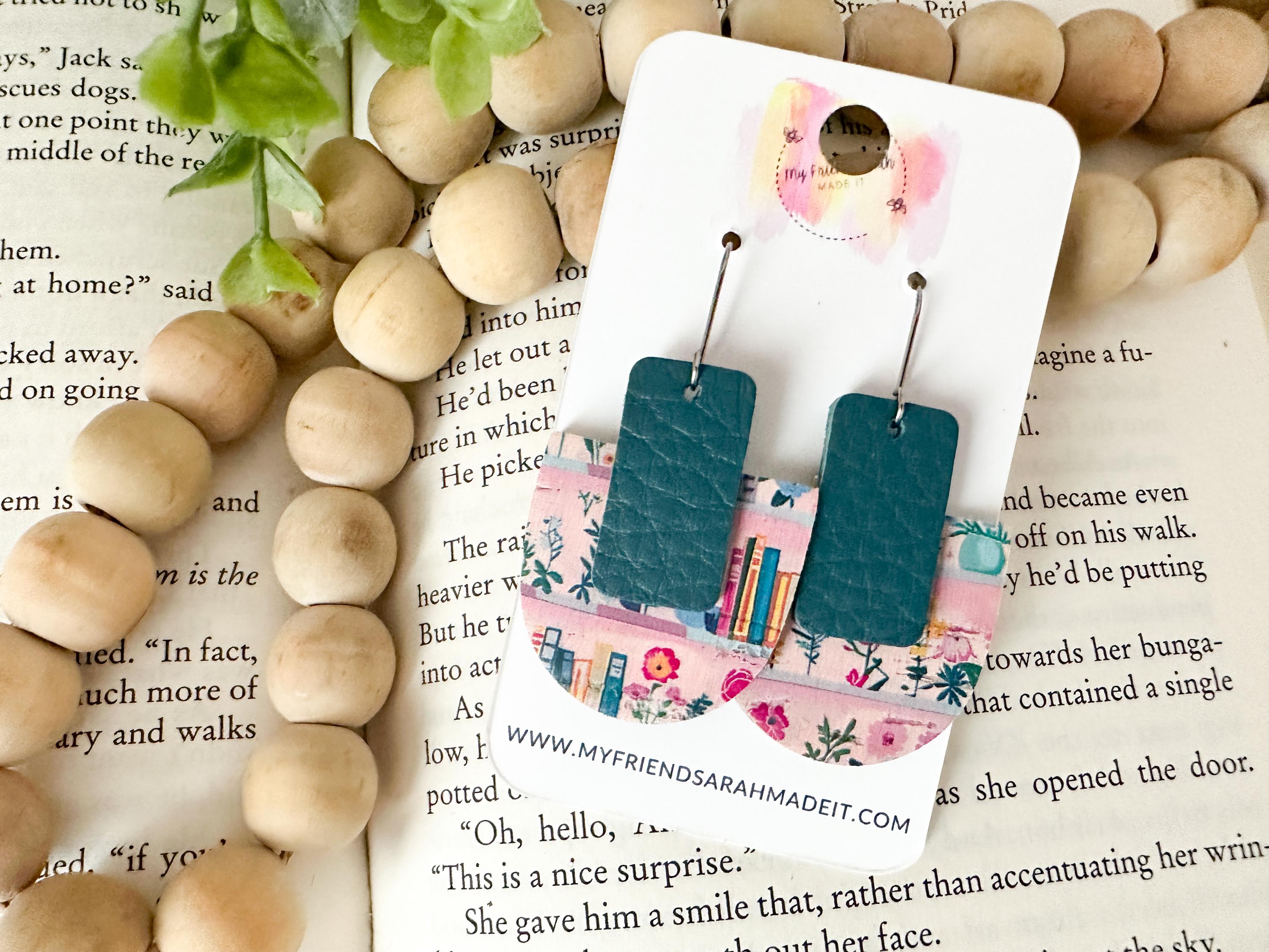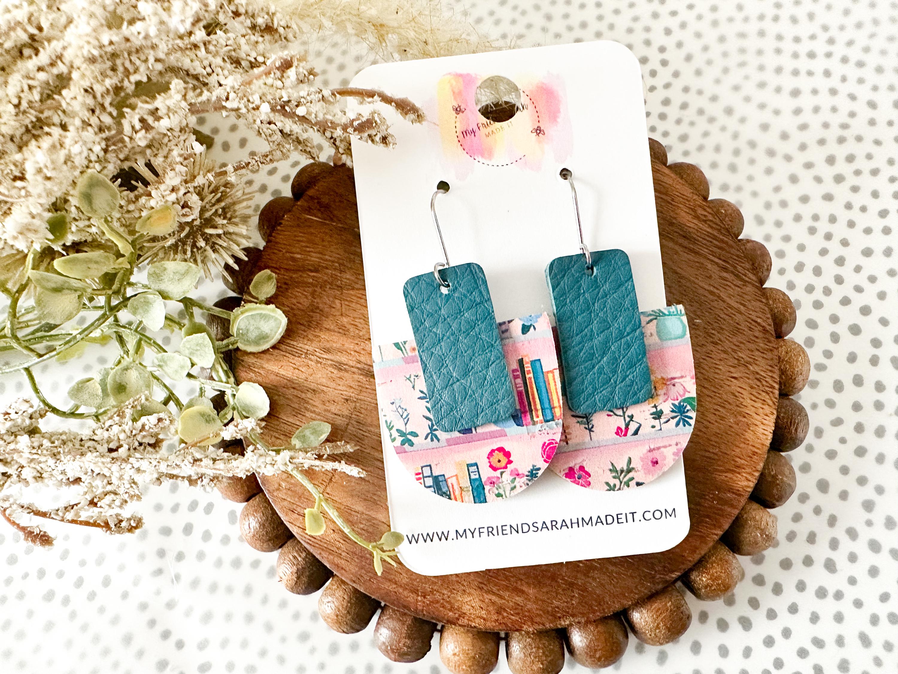 Made for the book-loving bestie - these teal and pink cork earrings feature a charming bookshelf print thatβs equal parts fun and feminine. Lightweight, colorful, and perfect for readers who love a hint of whimsy in their style. Total book lover vibes!