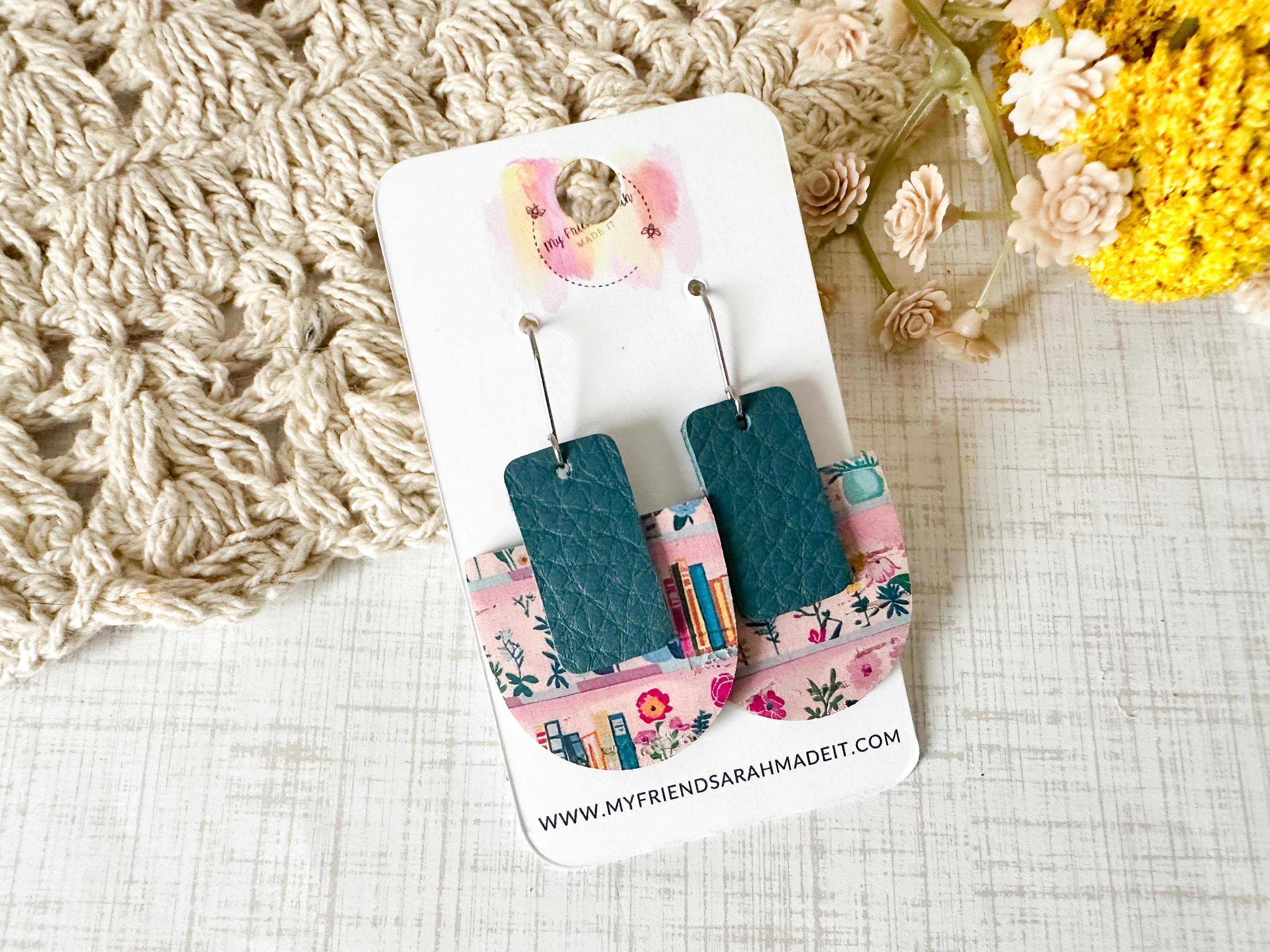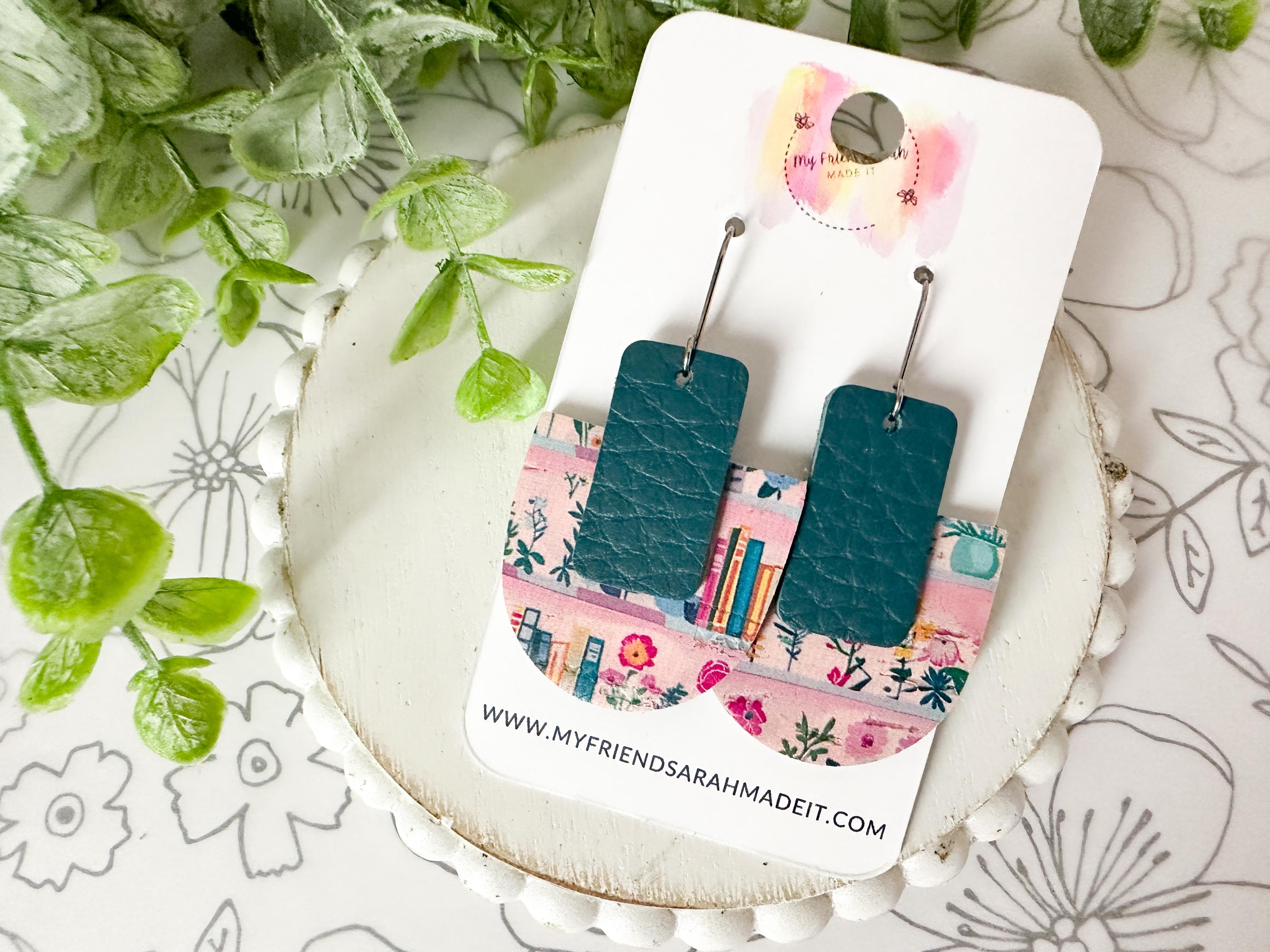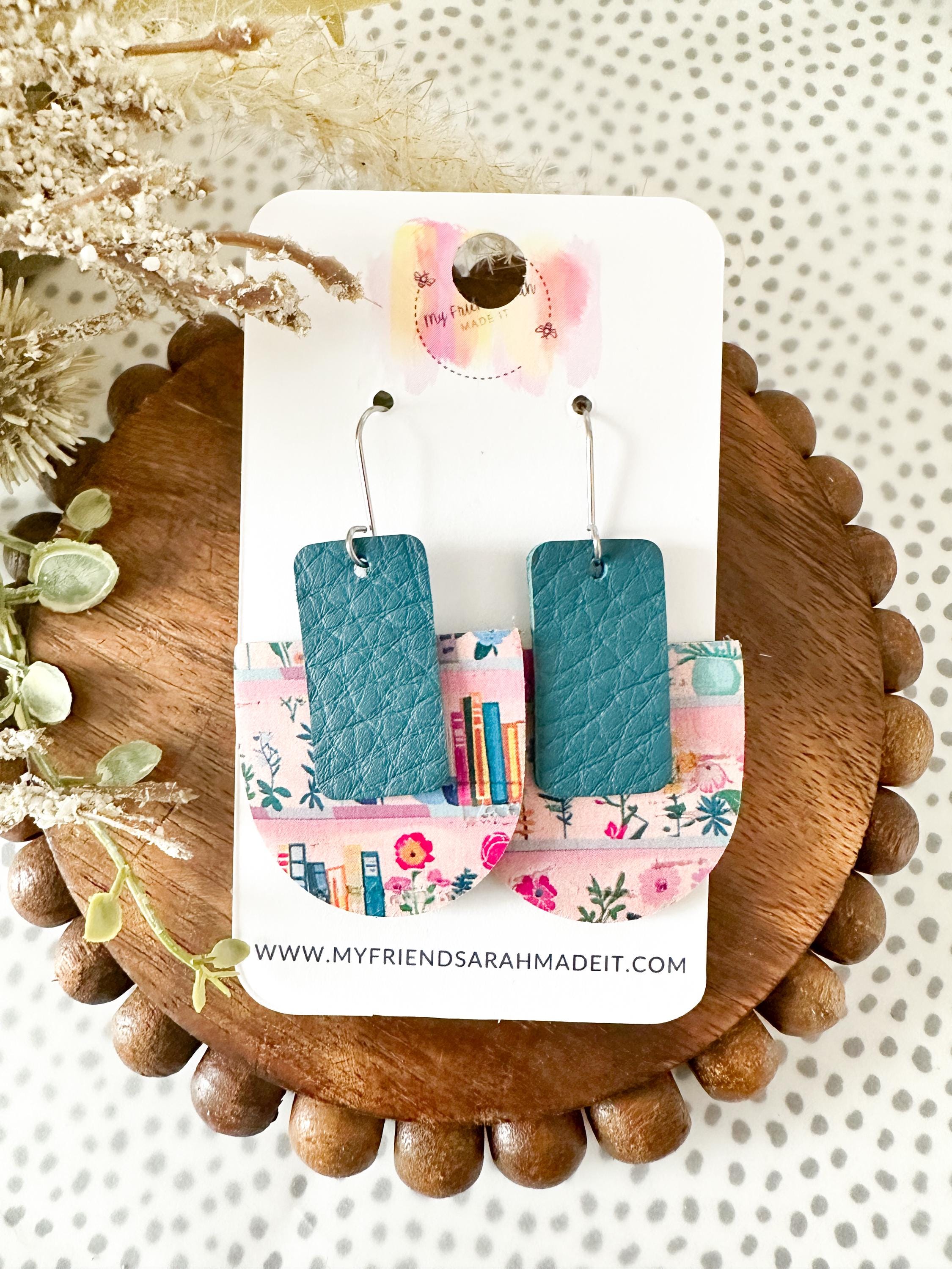 Made for the book-loving bestie - these teal and pink cork earrings feature a charming bookshelf print thatβs equal parts fun and feminine. Lightweight, colorful, and perfect for readers who love a hint of whimsy in their style. Total book lover vibes!