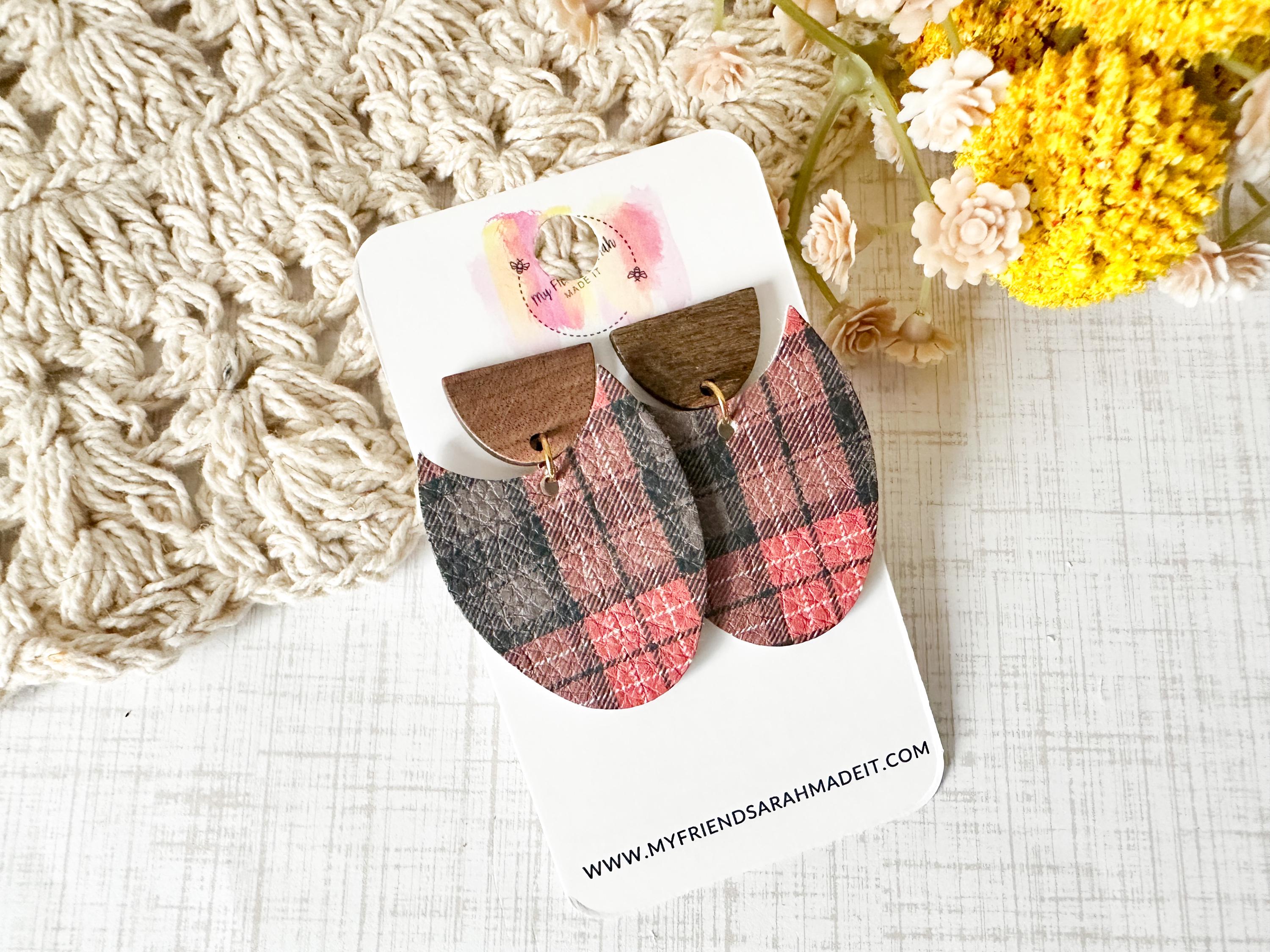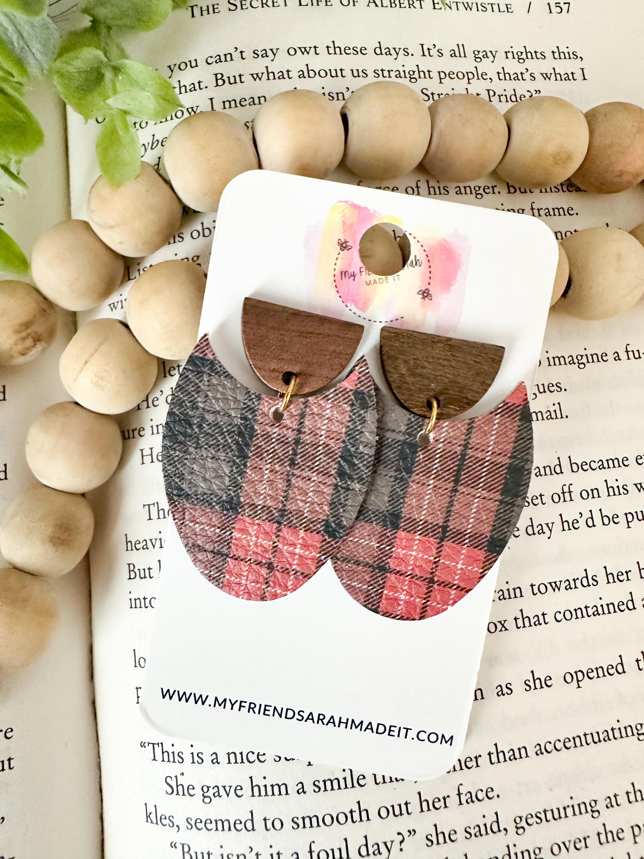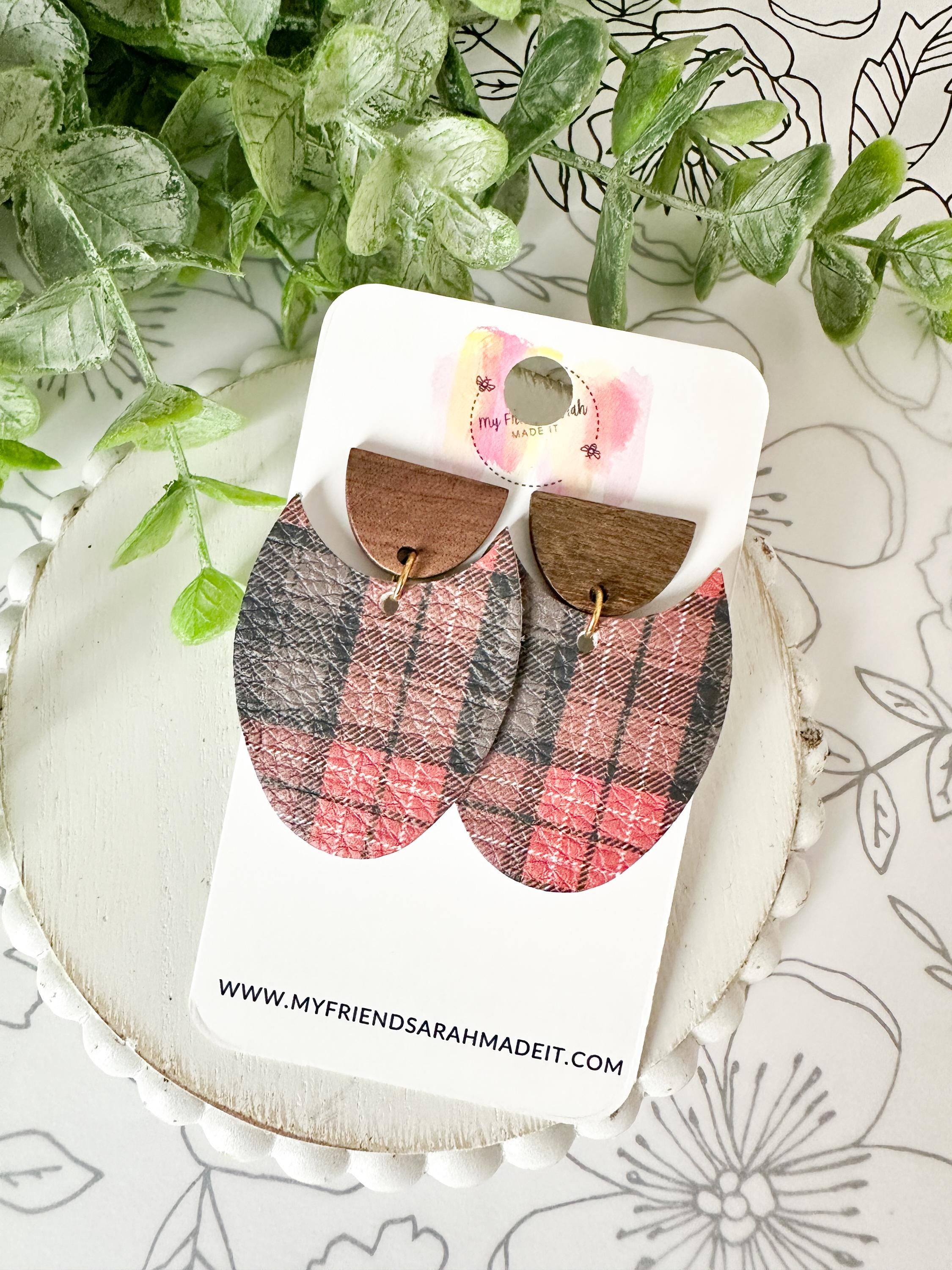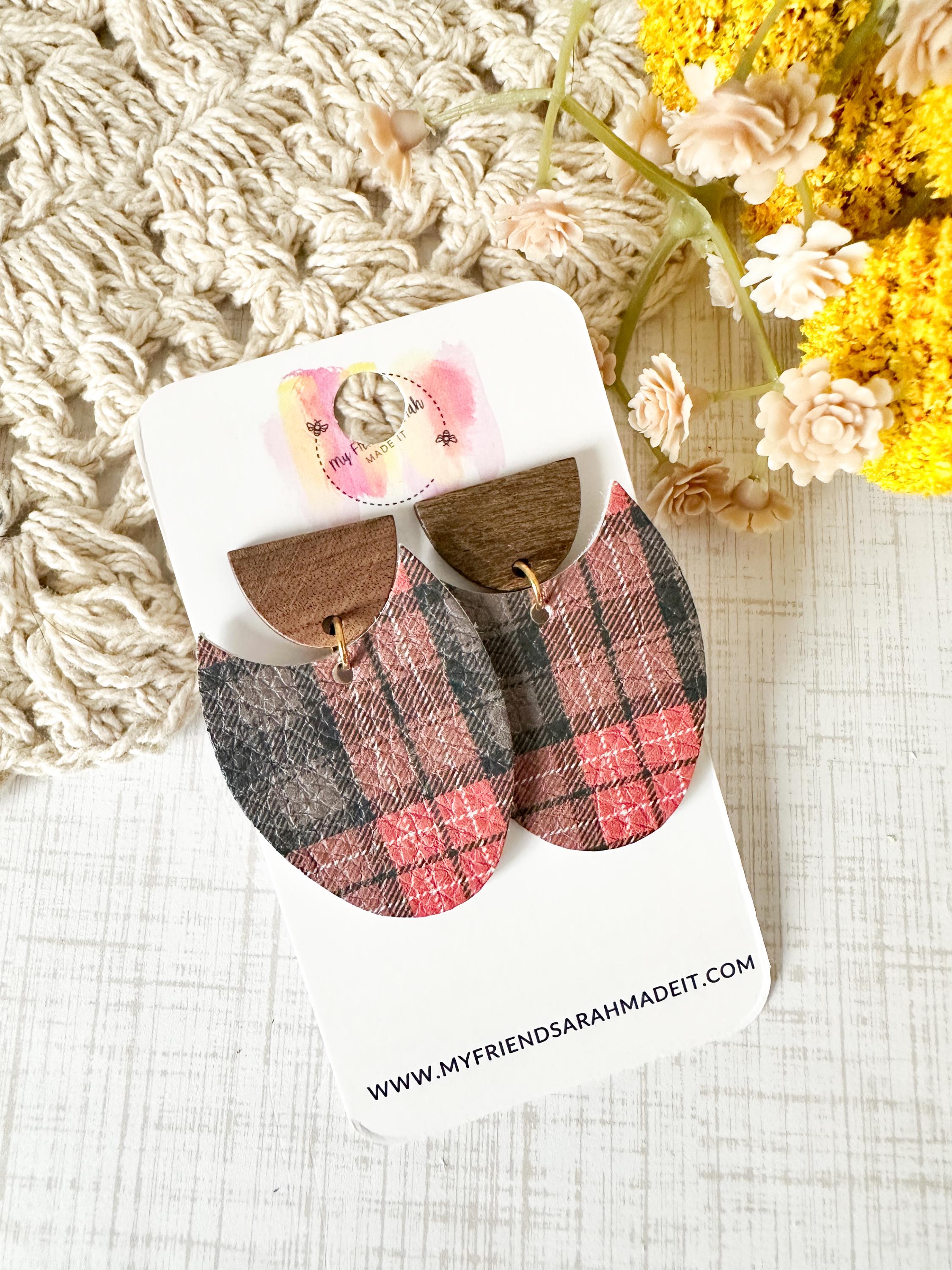 Classic plaid meets modern design in these cork-on-leather teardrop earrings. Finished with warm wooden tops for a rustic yet refined look that pairs perfectly with flannels, sweaters, and winter vibes.