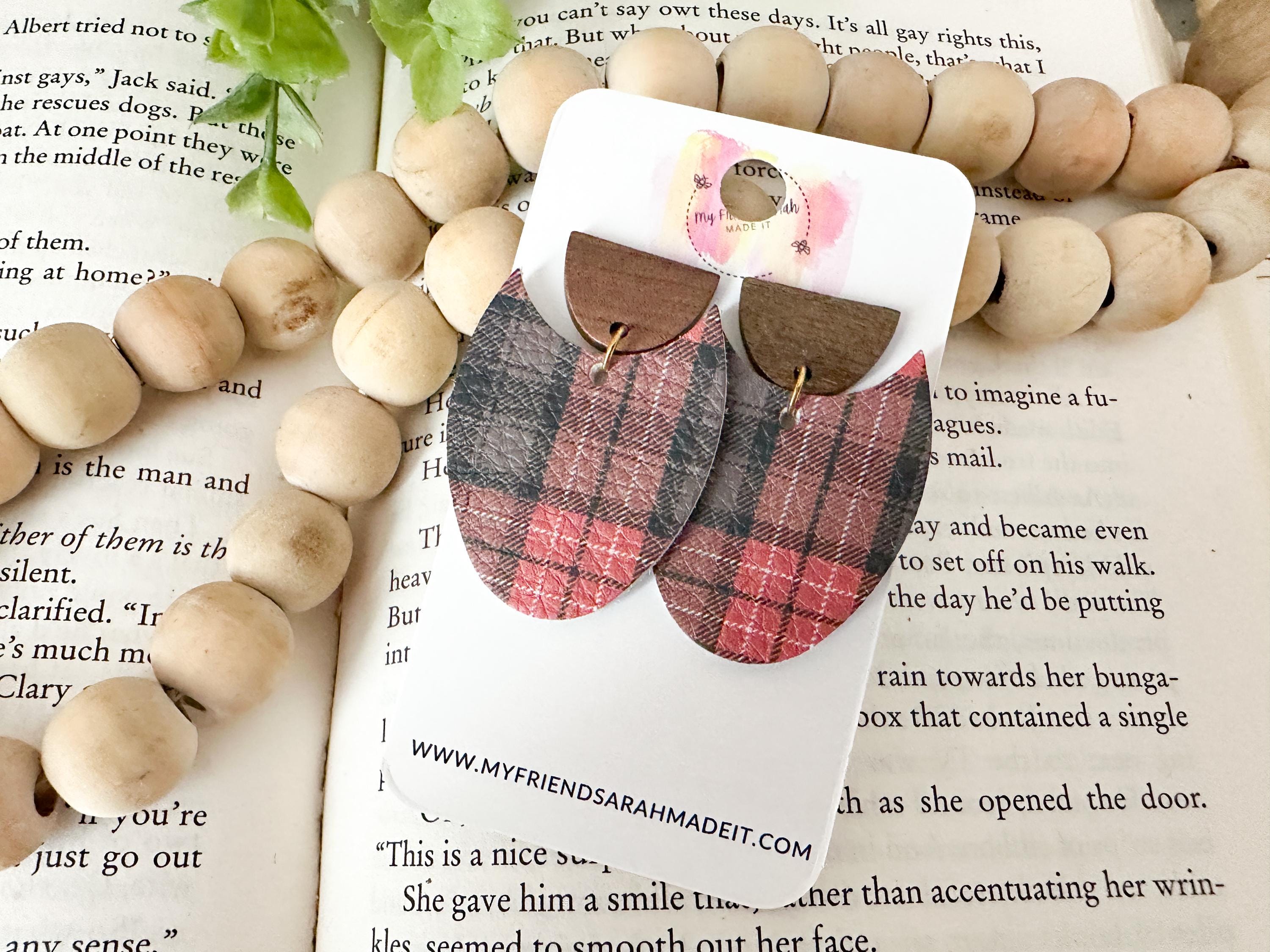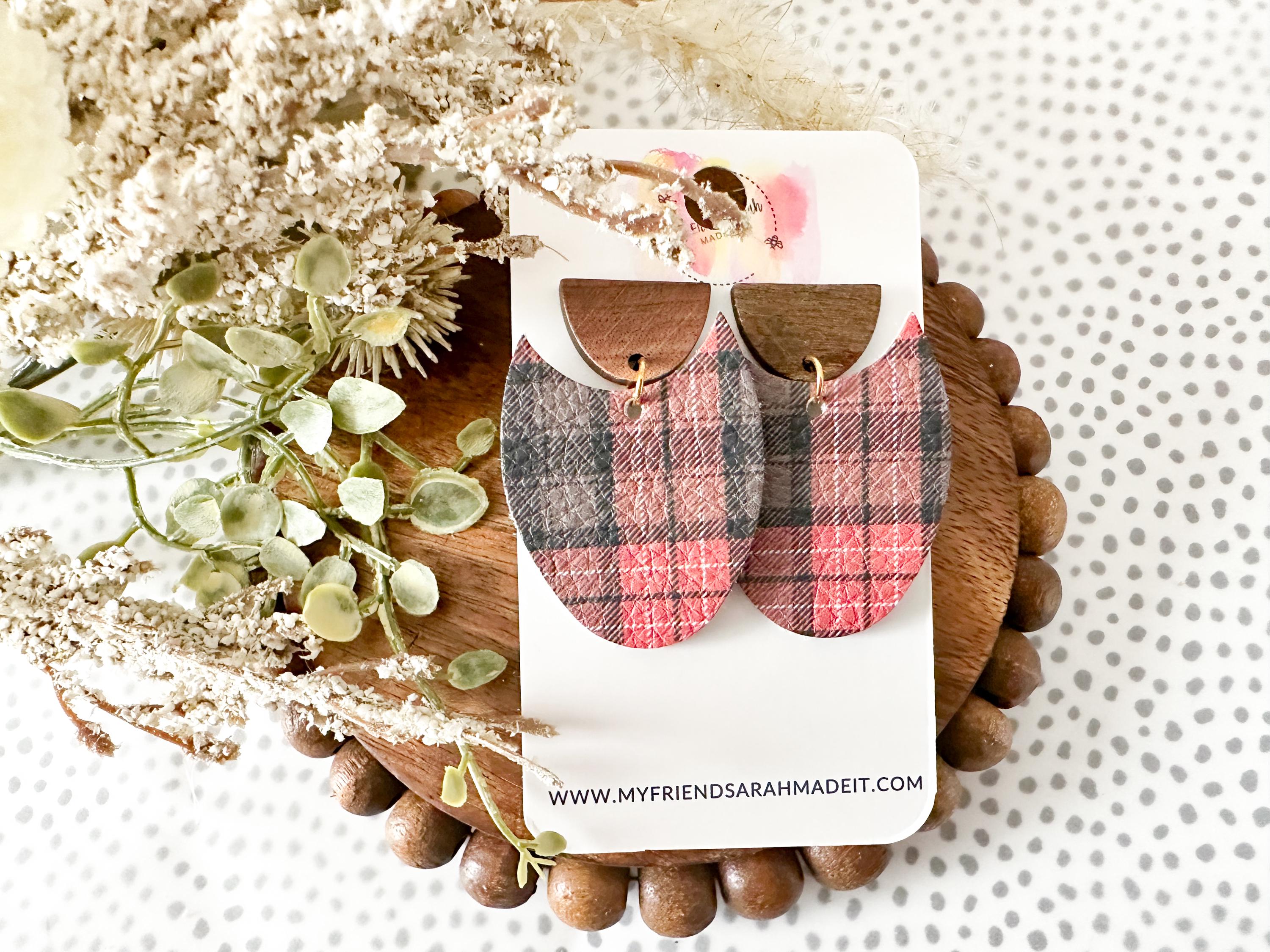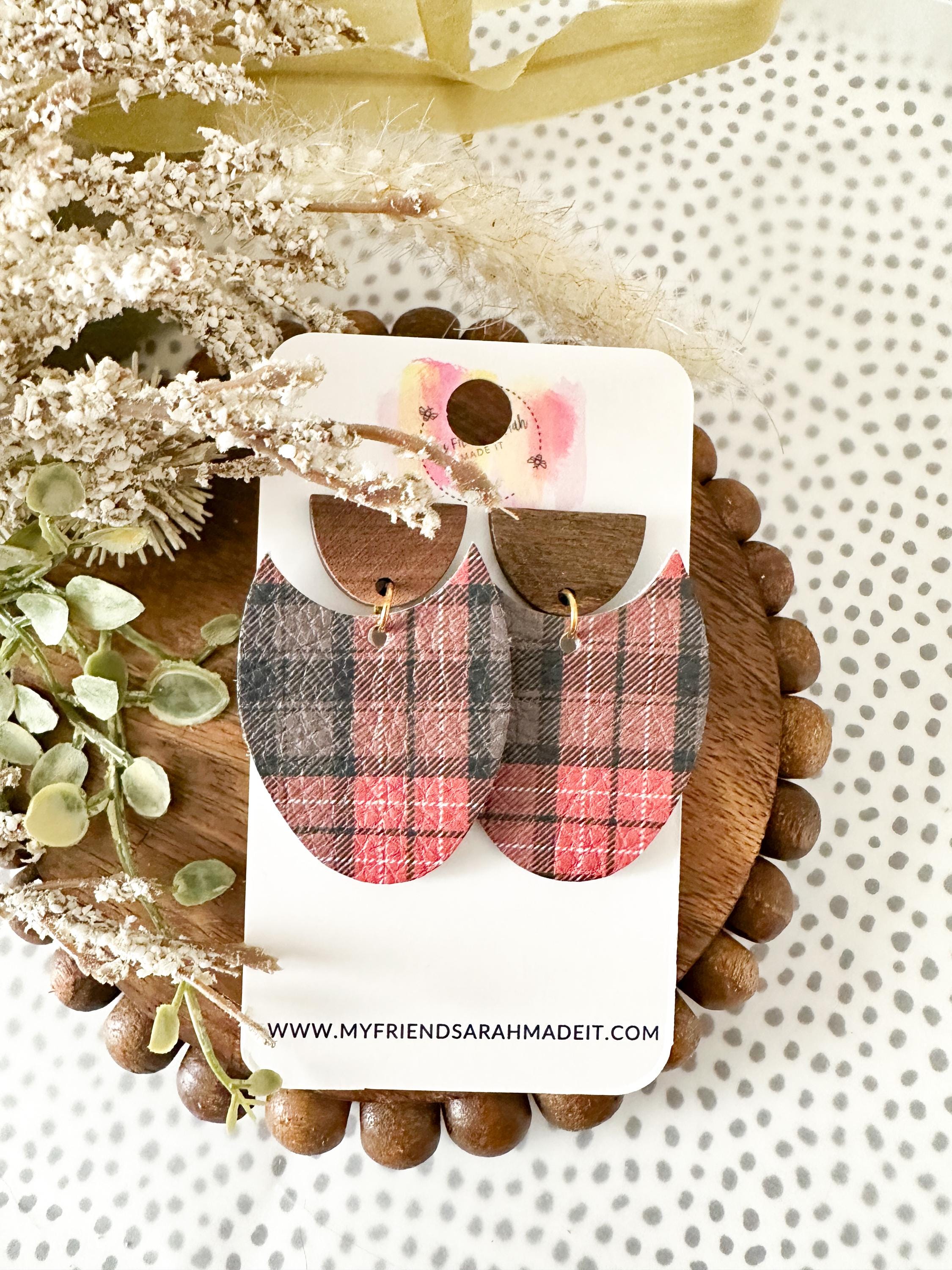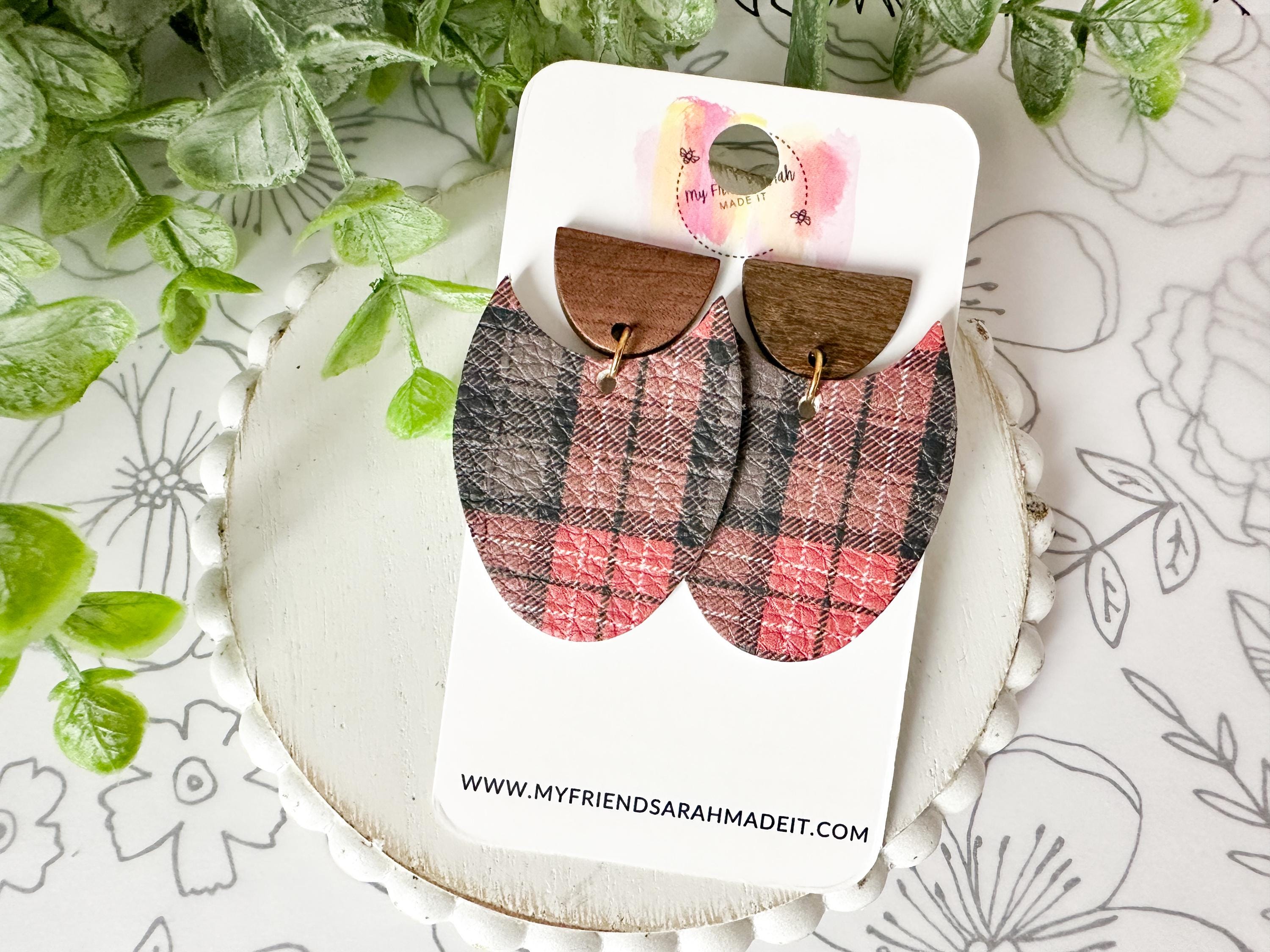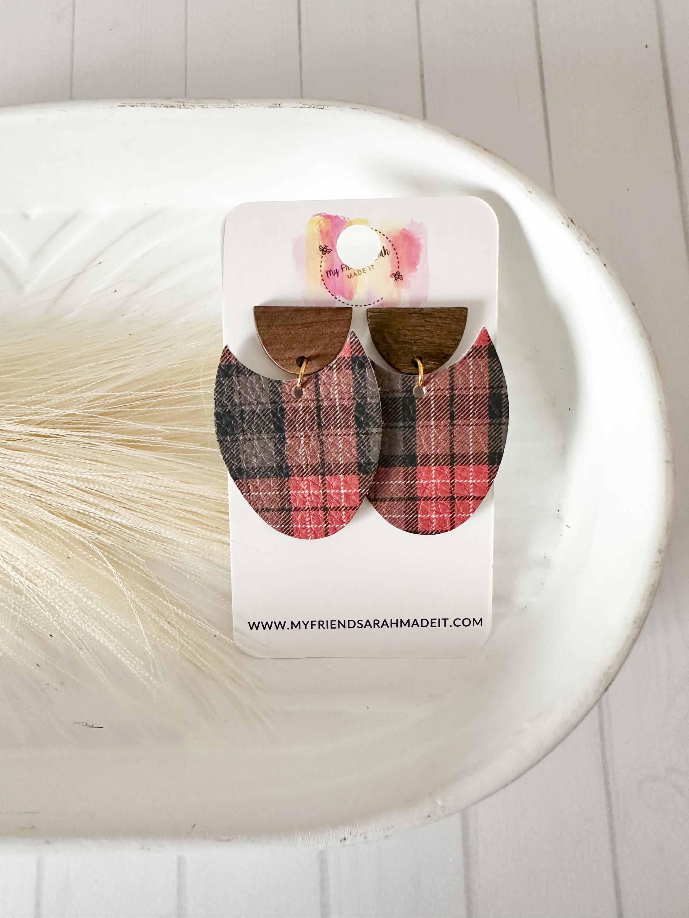 Classic plaid meets modern design in these cork-on-leather teardrop earrings. Finished with warm wooden tops for a rustic yet refined look that pairs perfectly with flannels, sweaters, and winter vibes.