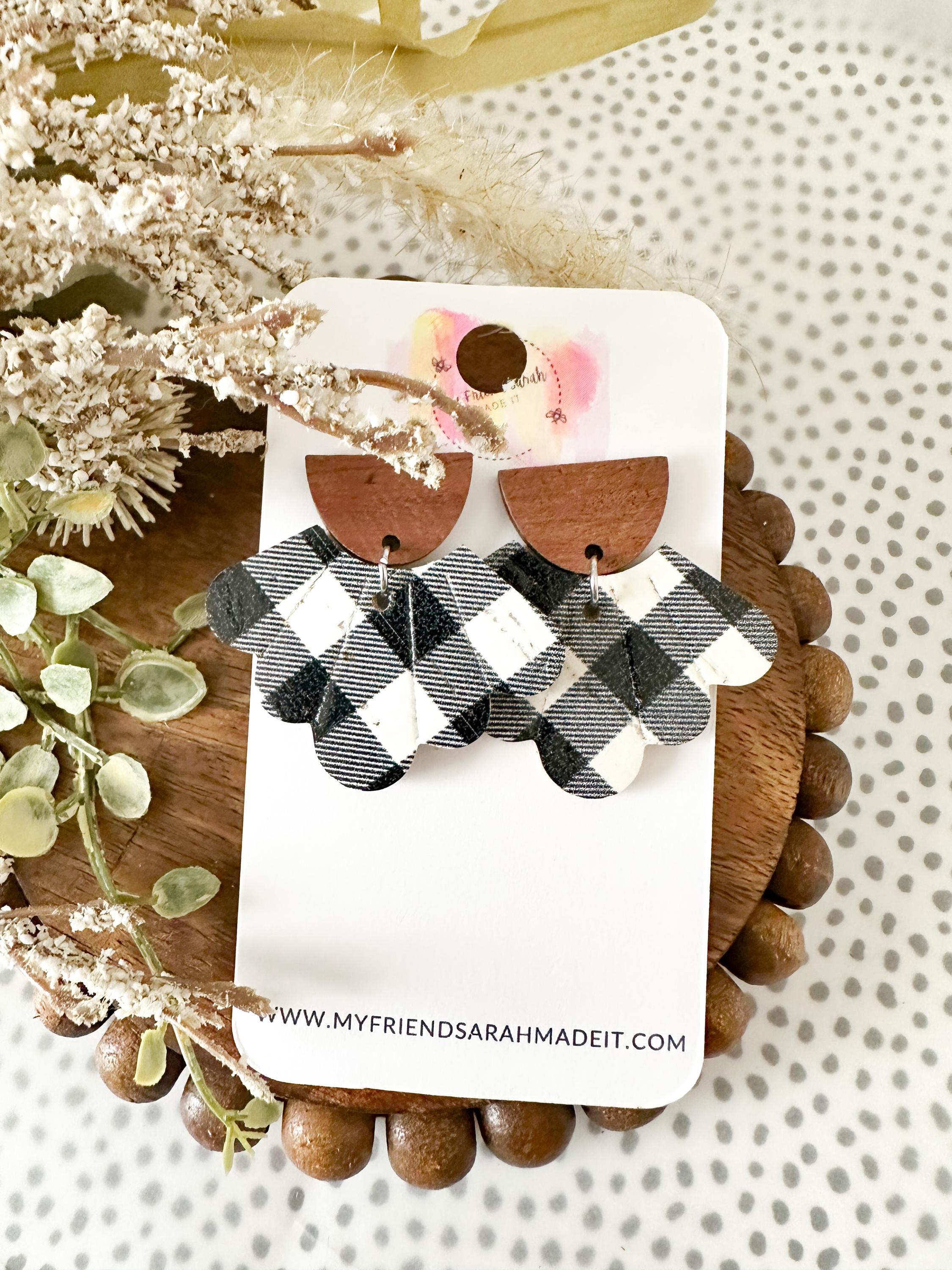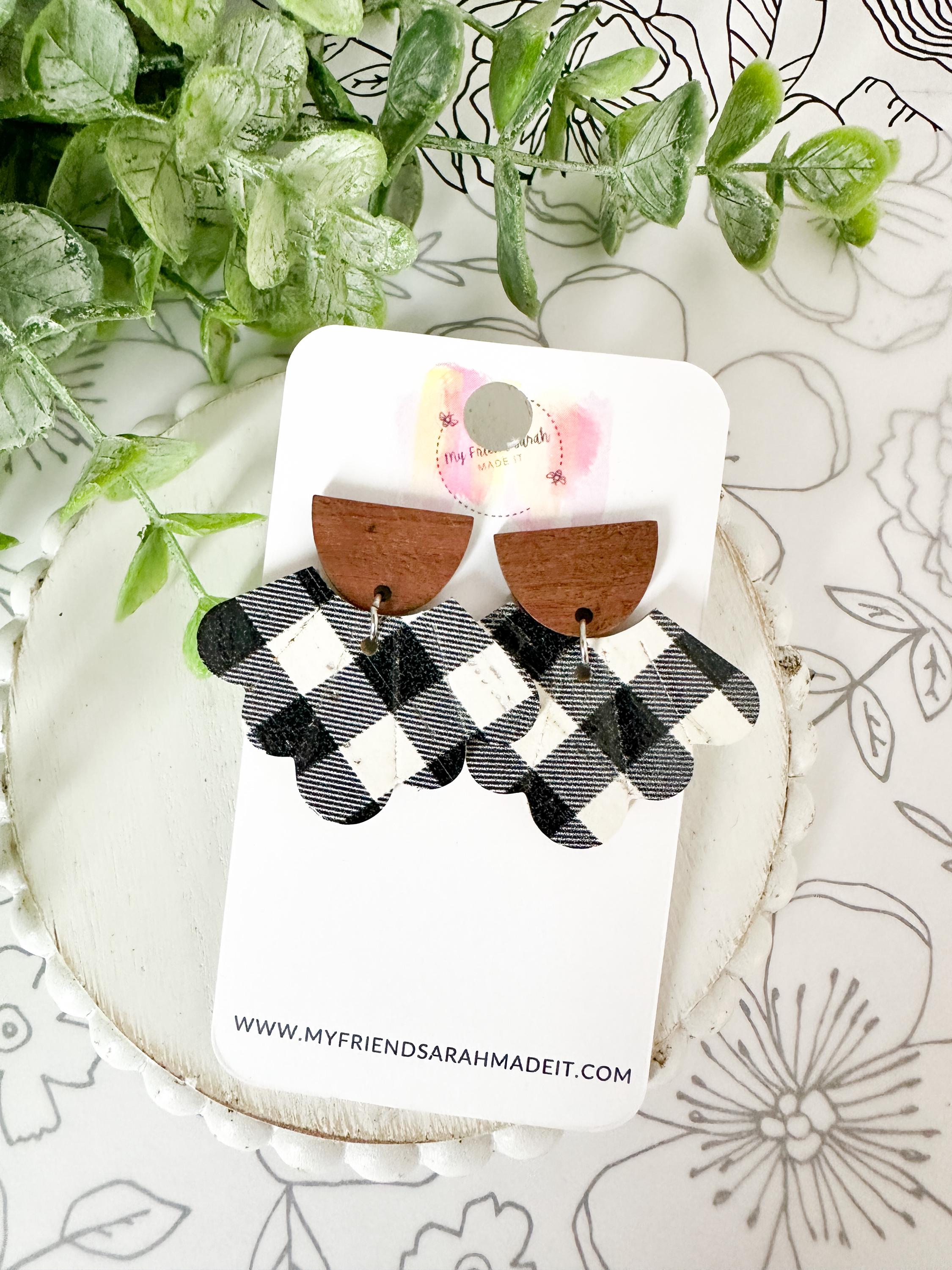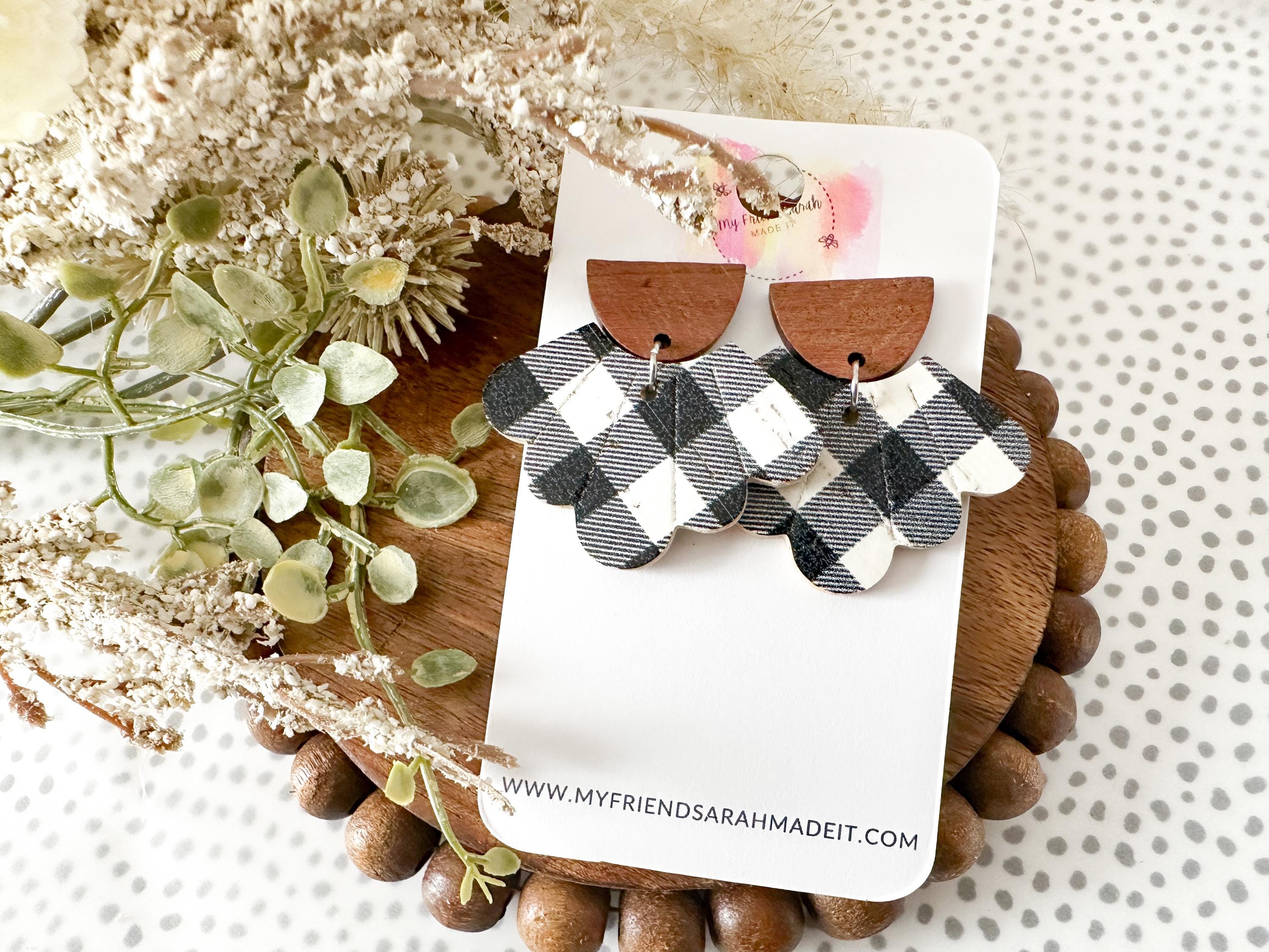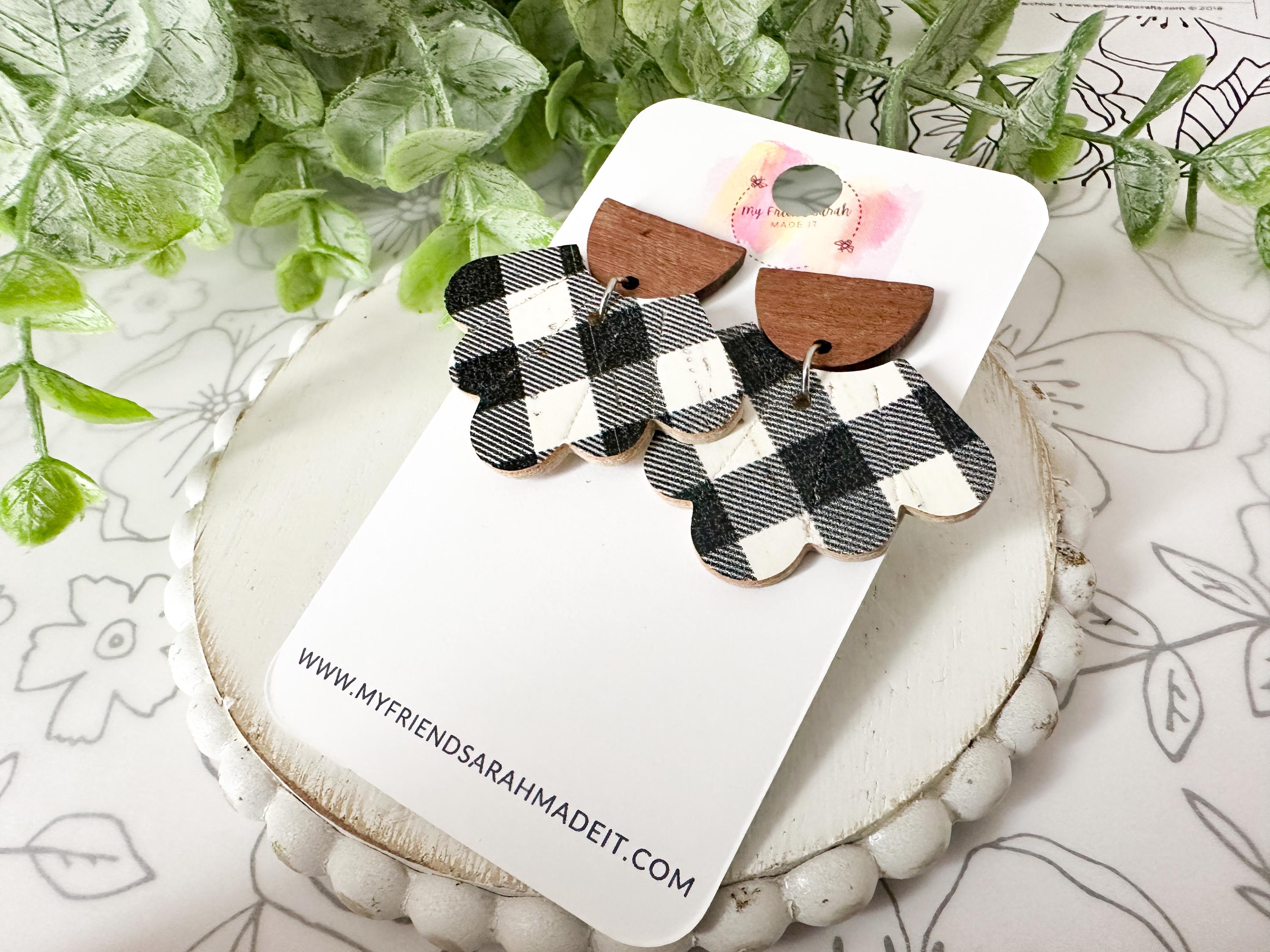 Timeless plaid with a playful twist. These cork scallop earrings pair cozy buffalo check with warm wood for an effortlessly cute and lightweight statement - perfect from fall flannels to winter festivities.