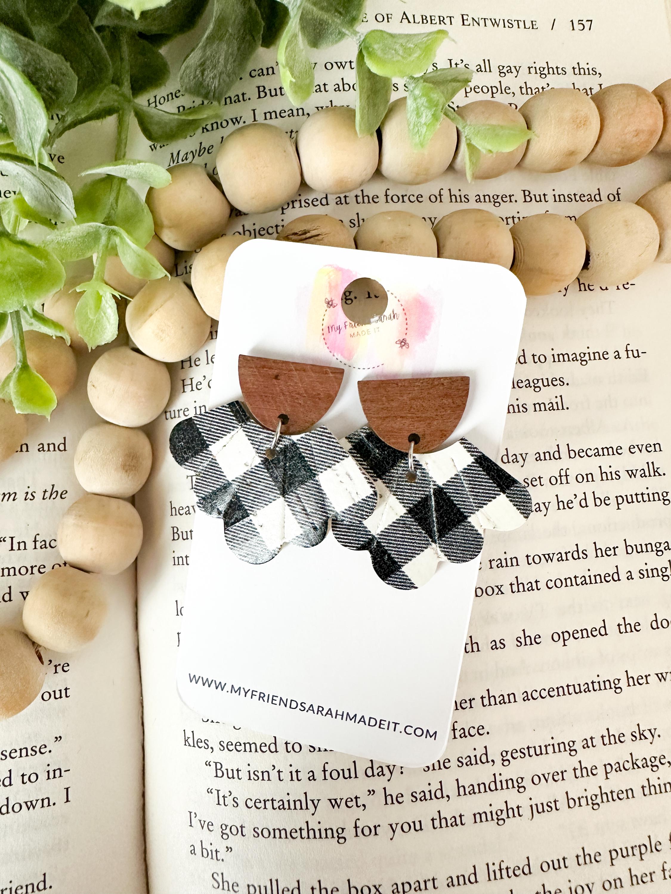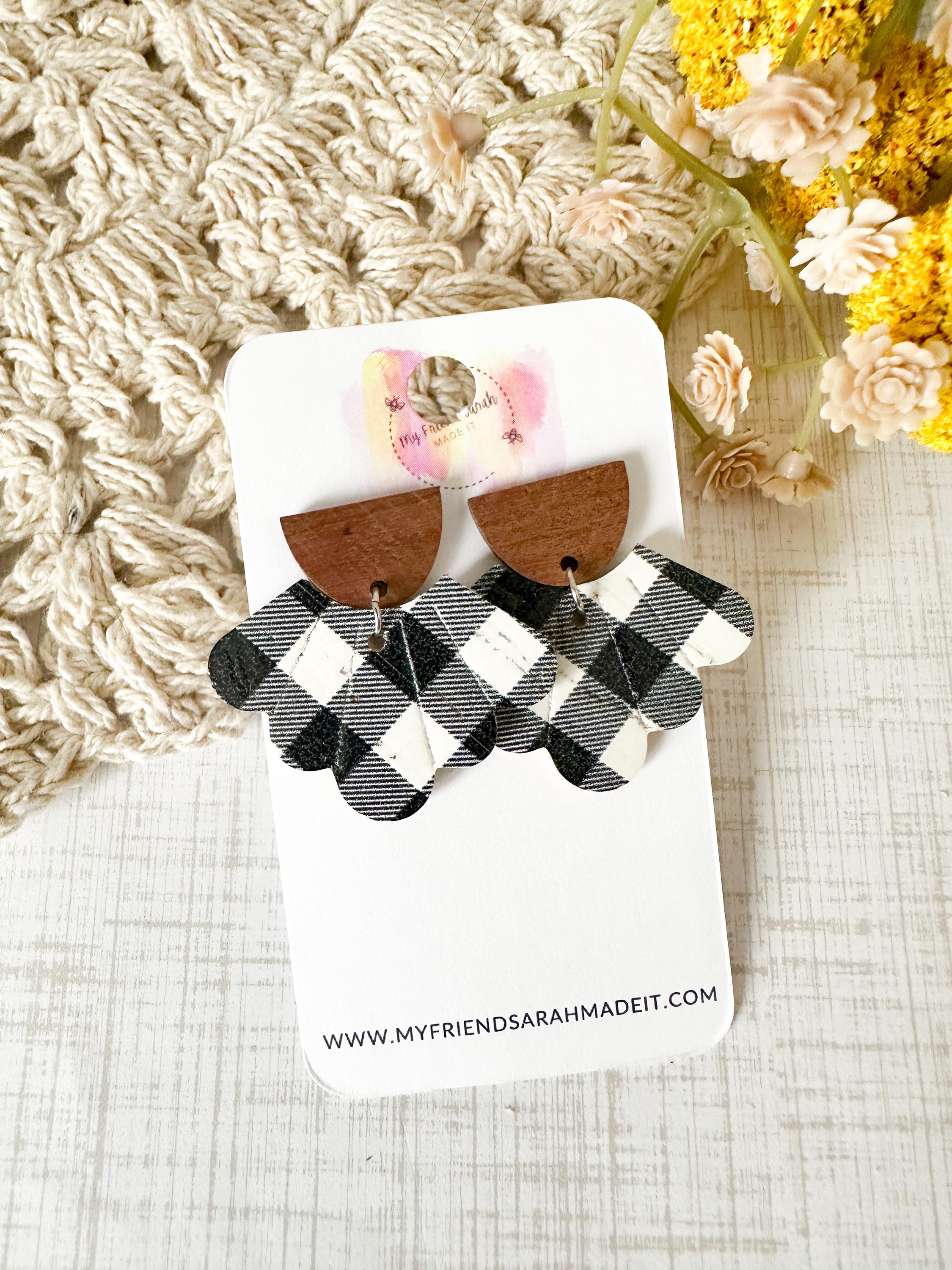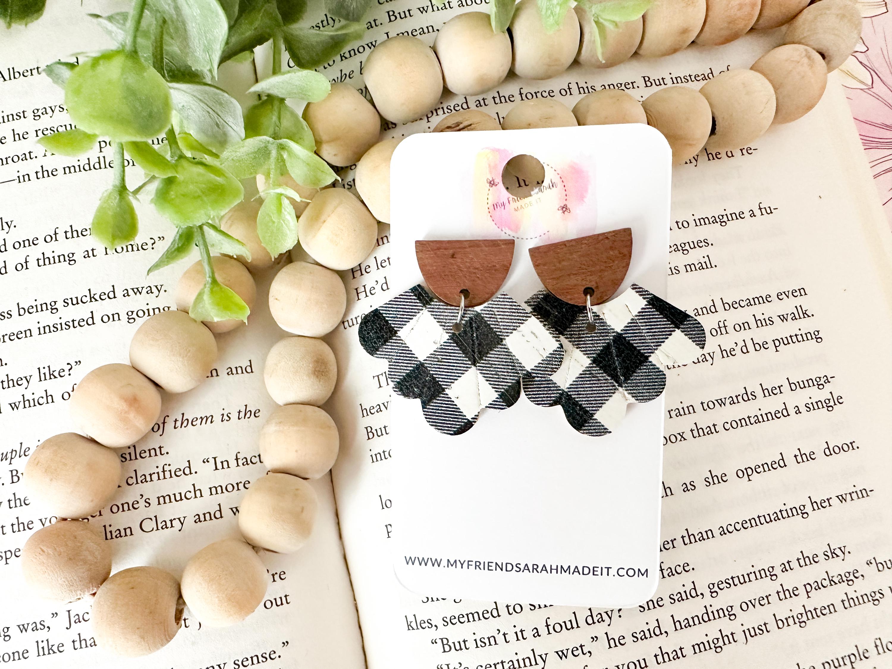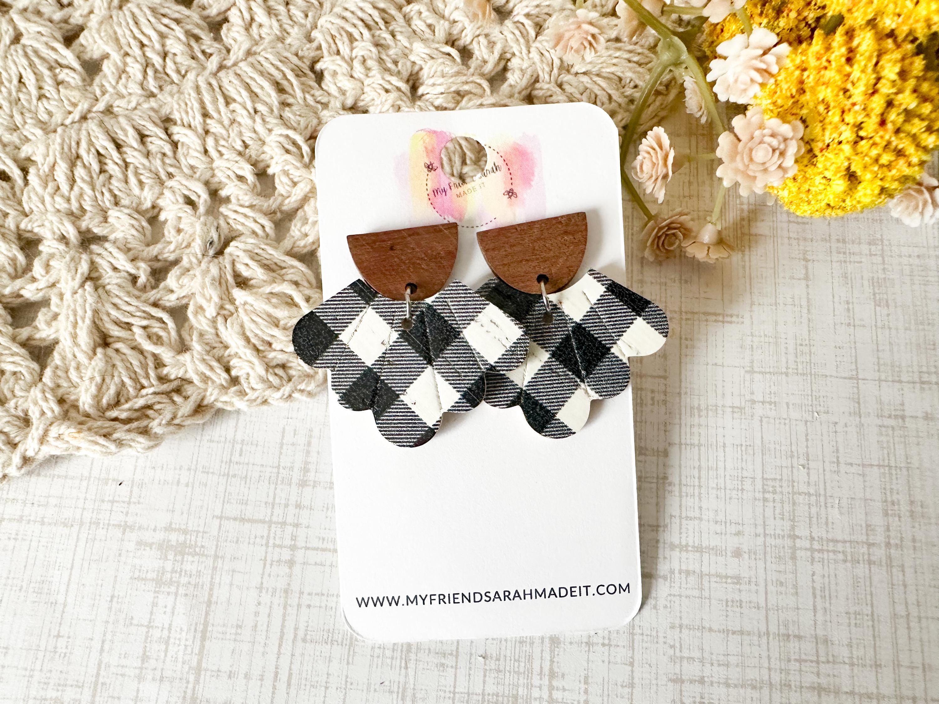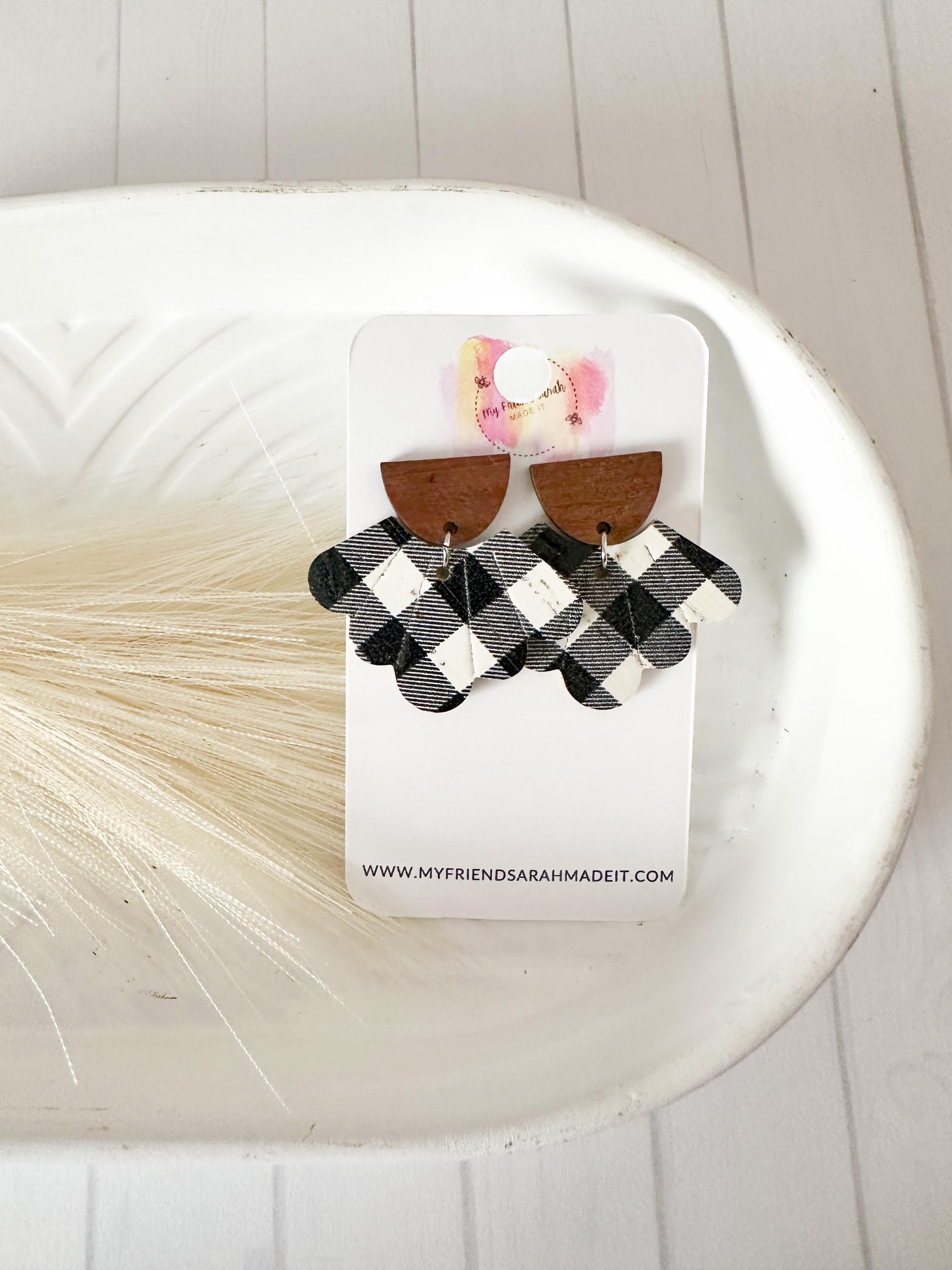 Timeless plaid with a playful twist. These cork scallop earrings pair cozy buffalo check with warm wood for an effortlessly cute and lightweight statement - perfect from fall flannels to winter festivities.