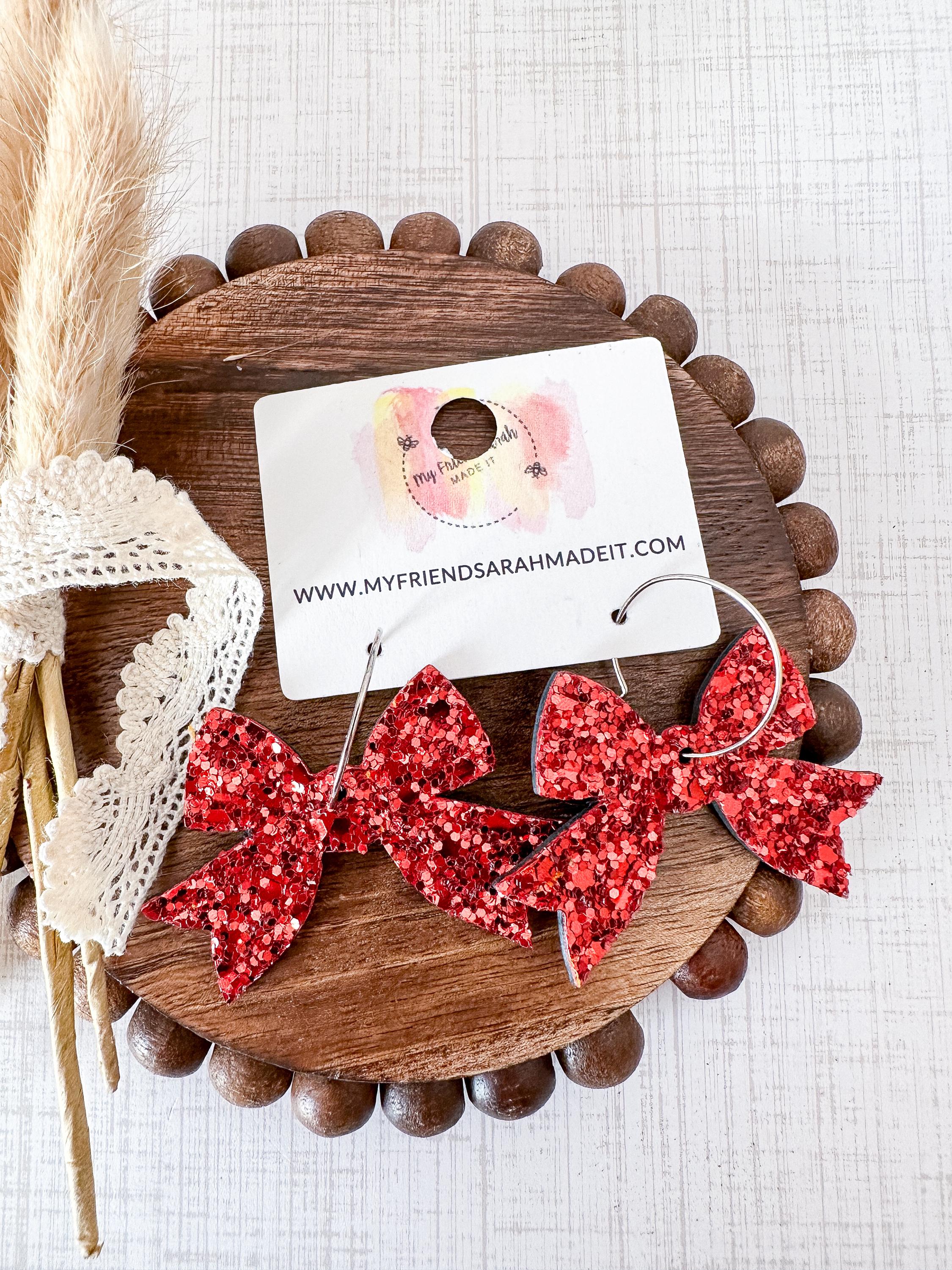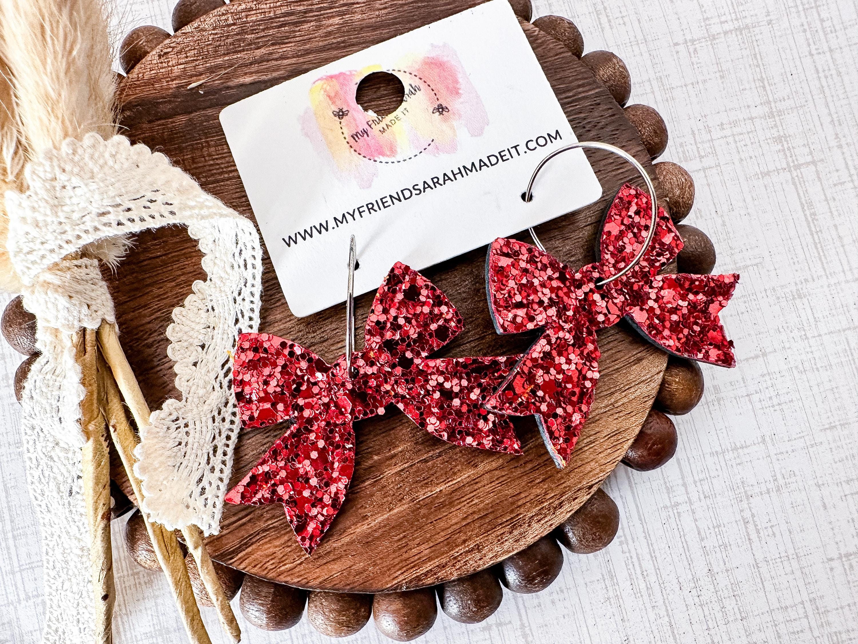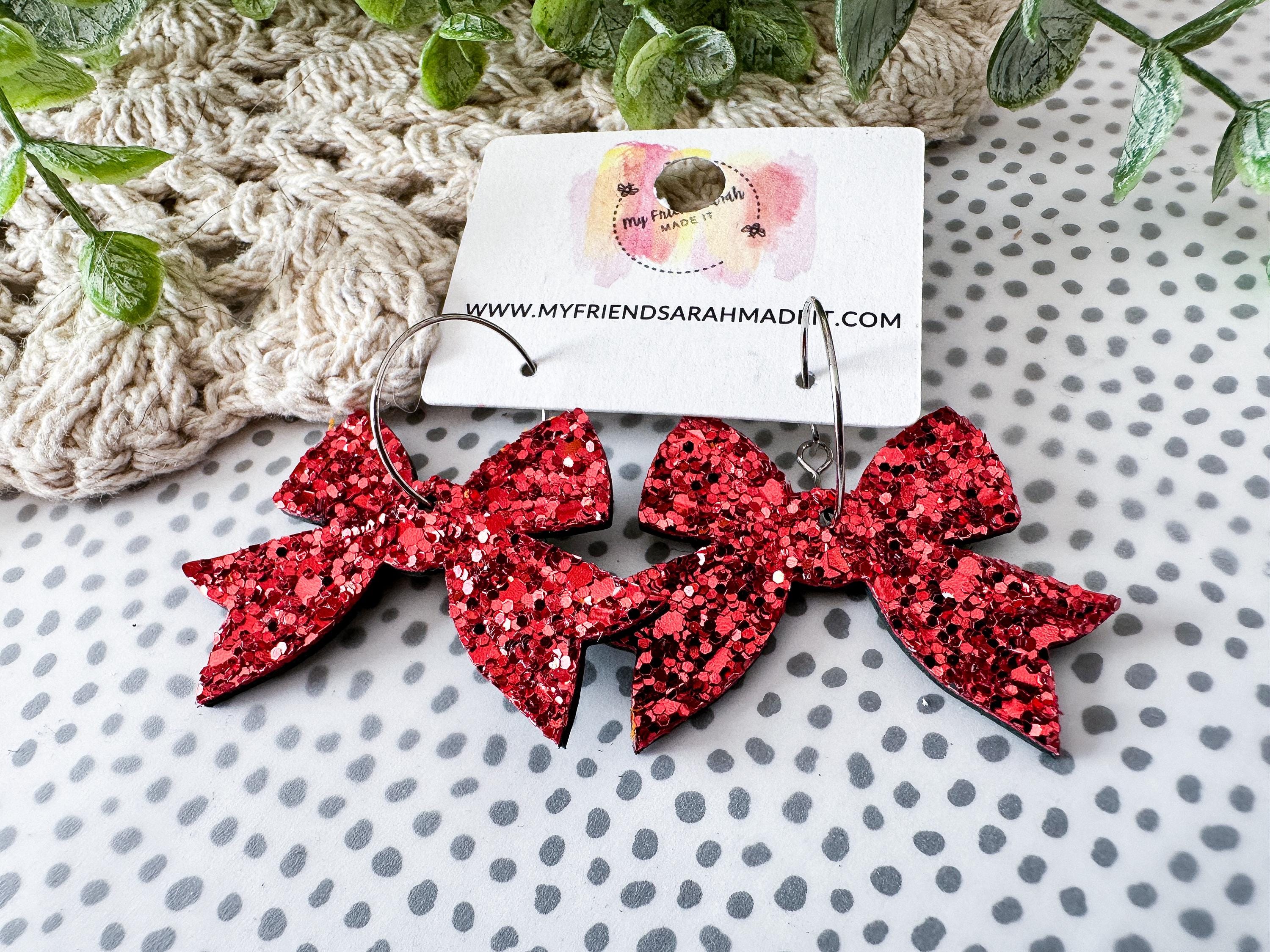 Bold, bright, and beautifully sparkly. These red glitter bow earrings add instant holiday cheer β lightweight, eye-catching, and full of Christmas spirit.