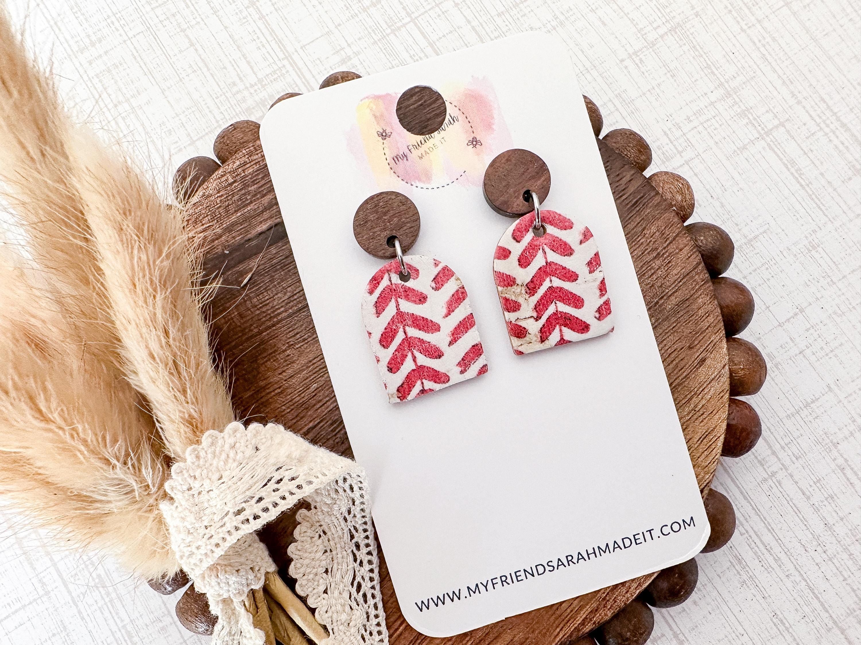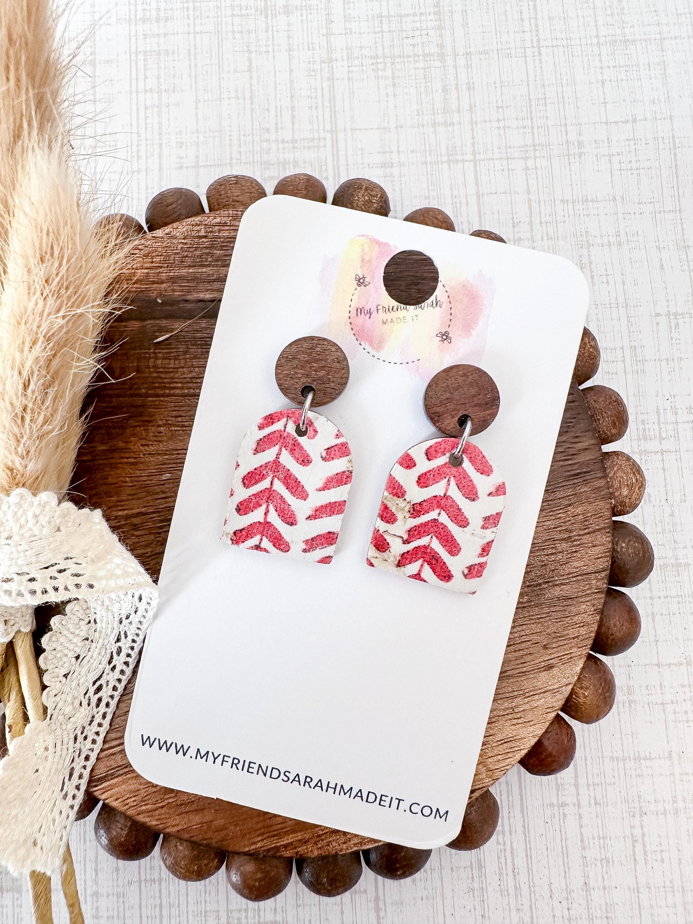 These petite leather arches feature a fun vibrant pink herringbone printed on white cork paired with warm wooden studs. A simple statement for everyday wear!