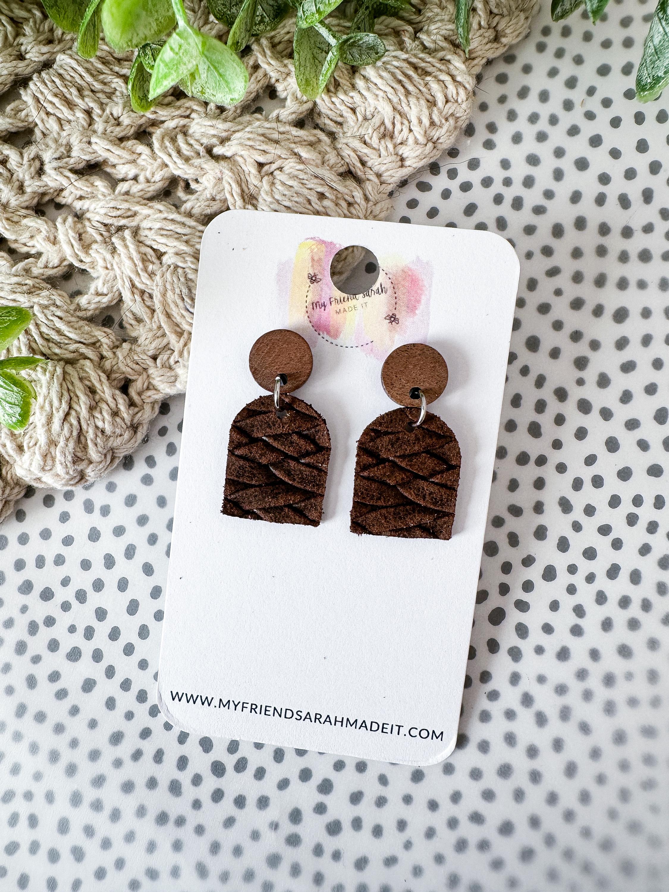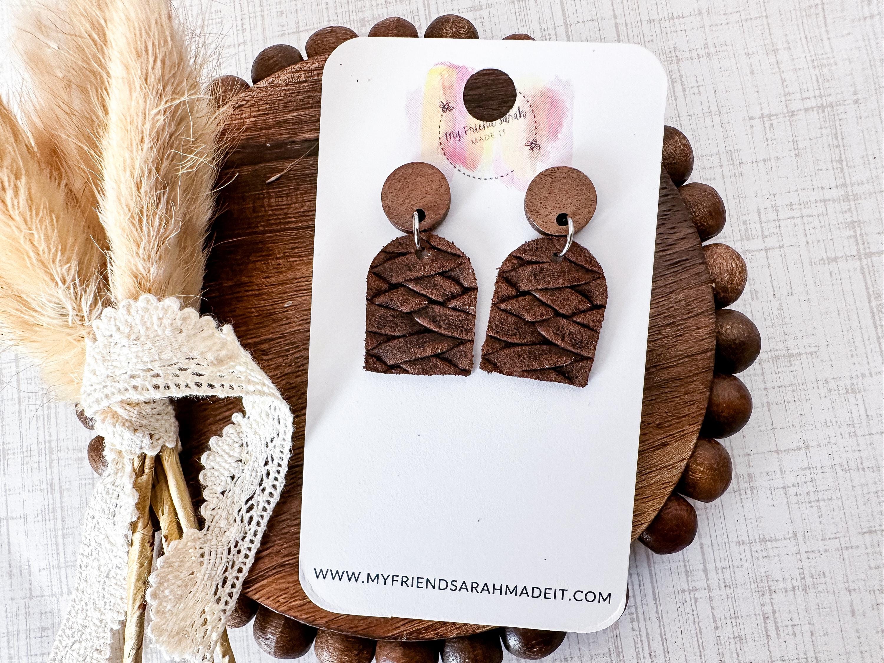 A cozy neutral with tons of texture, these brown braided leather earrings pair perfectly with fall outfits and soft sweaters. Finished with smooth wooden tops for a warm, organic touch.