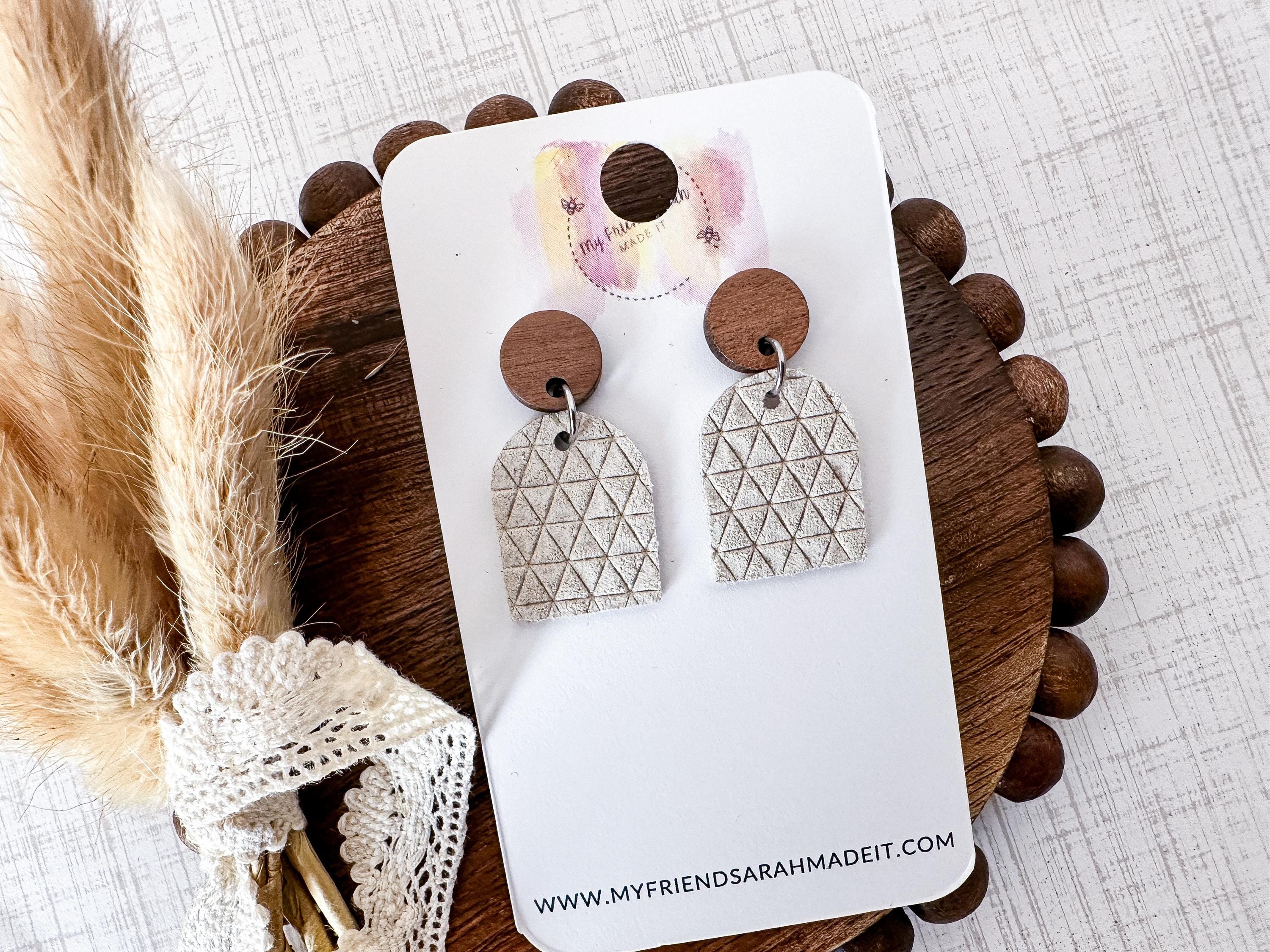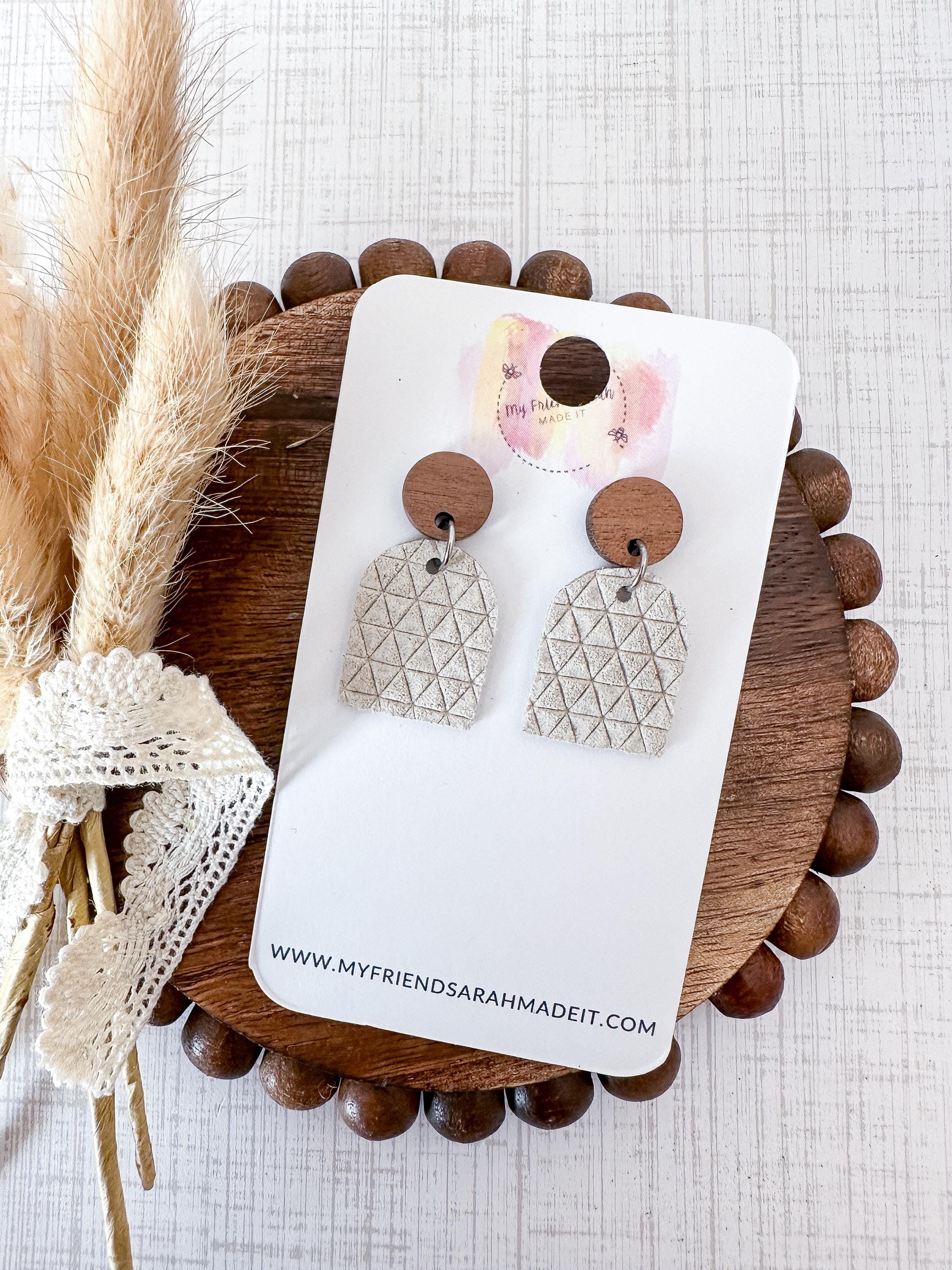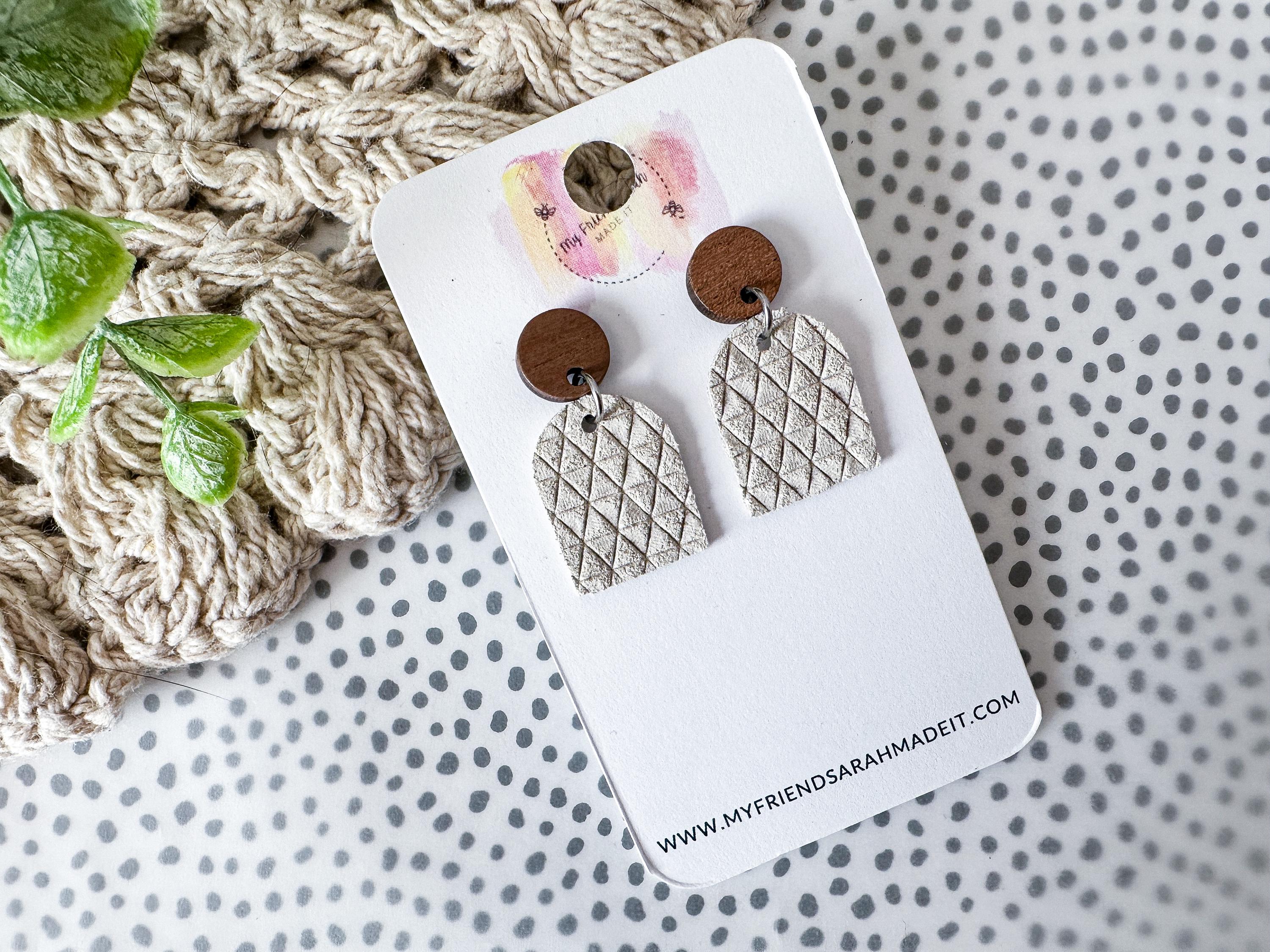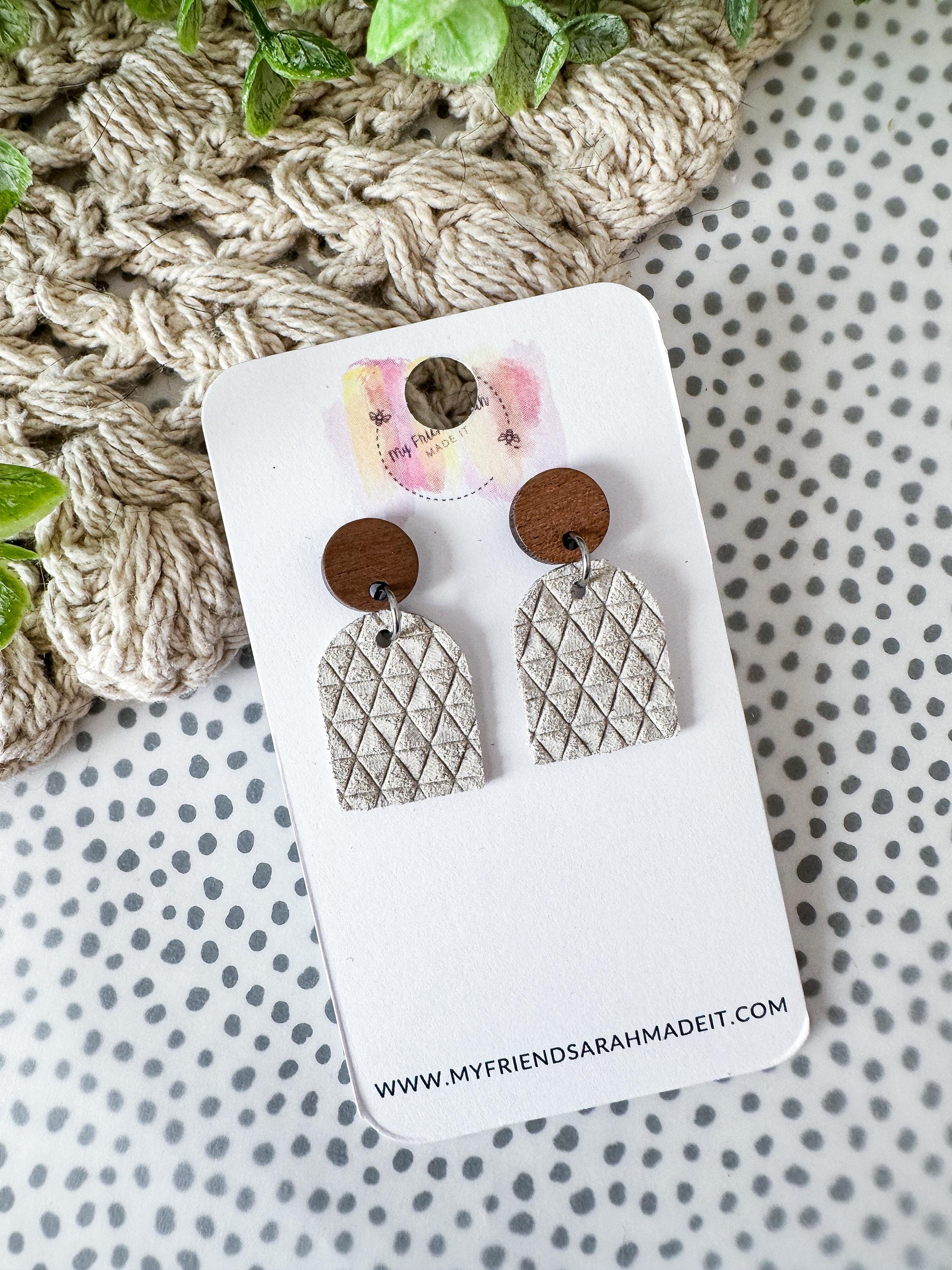 A cozy neutral with tons of texture, these tan quilted leather earrings pair perfectly with fall outfits and soft sweaters. Finished with smooth wooden tops for a warm, organic touch.