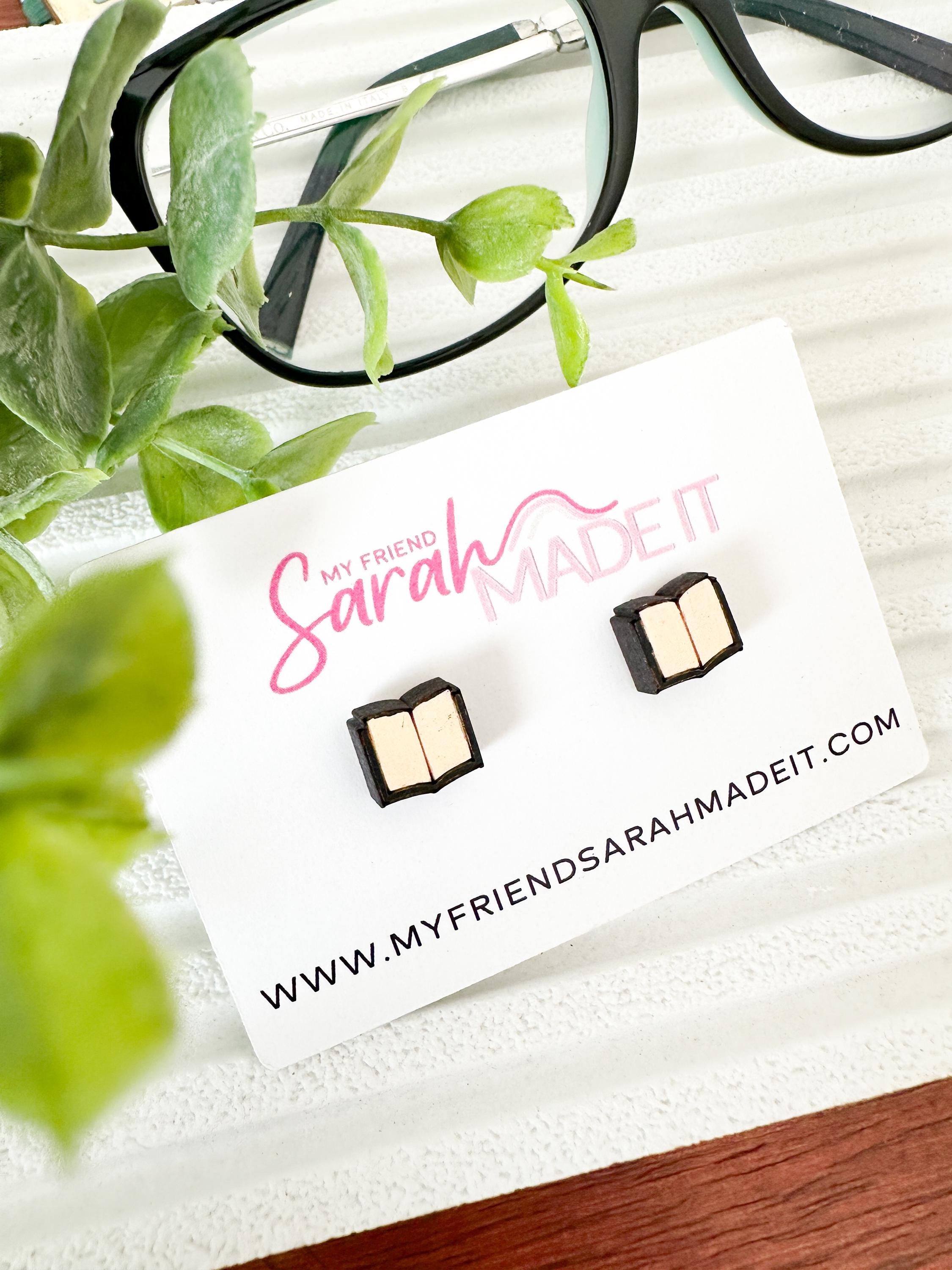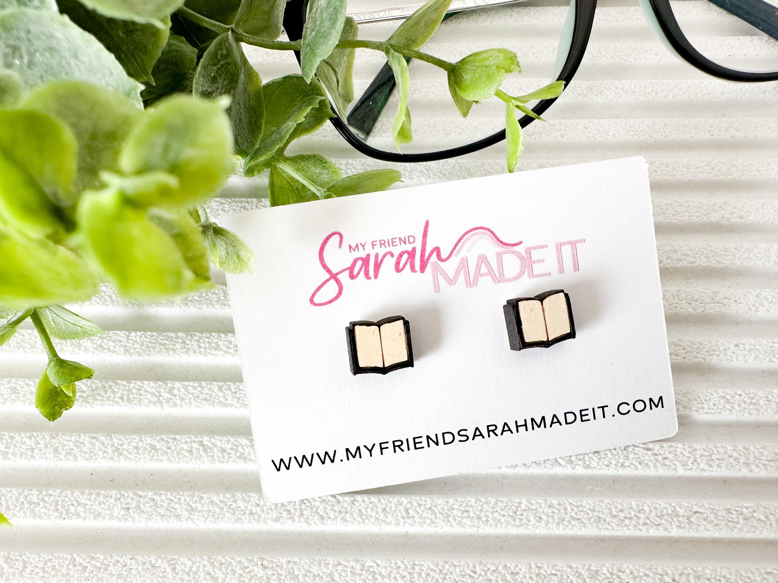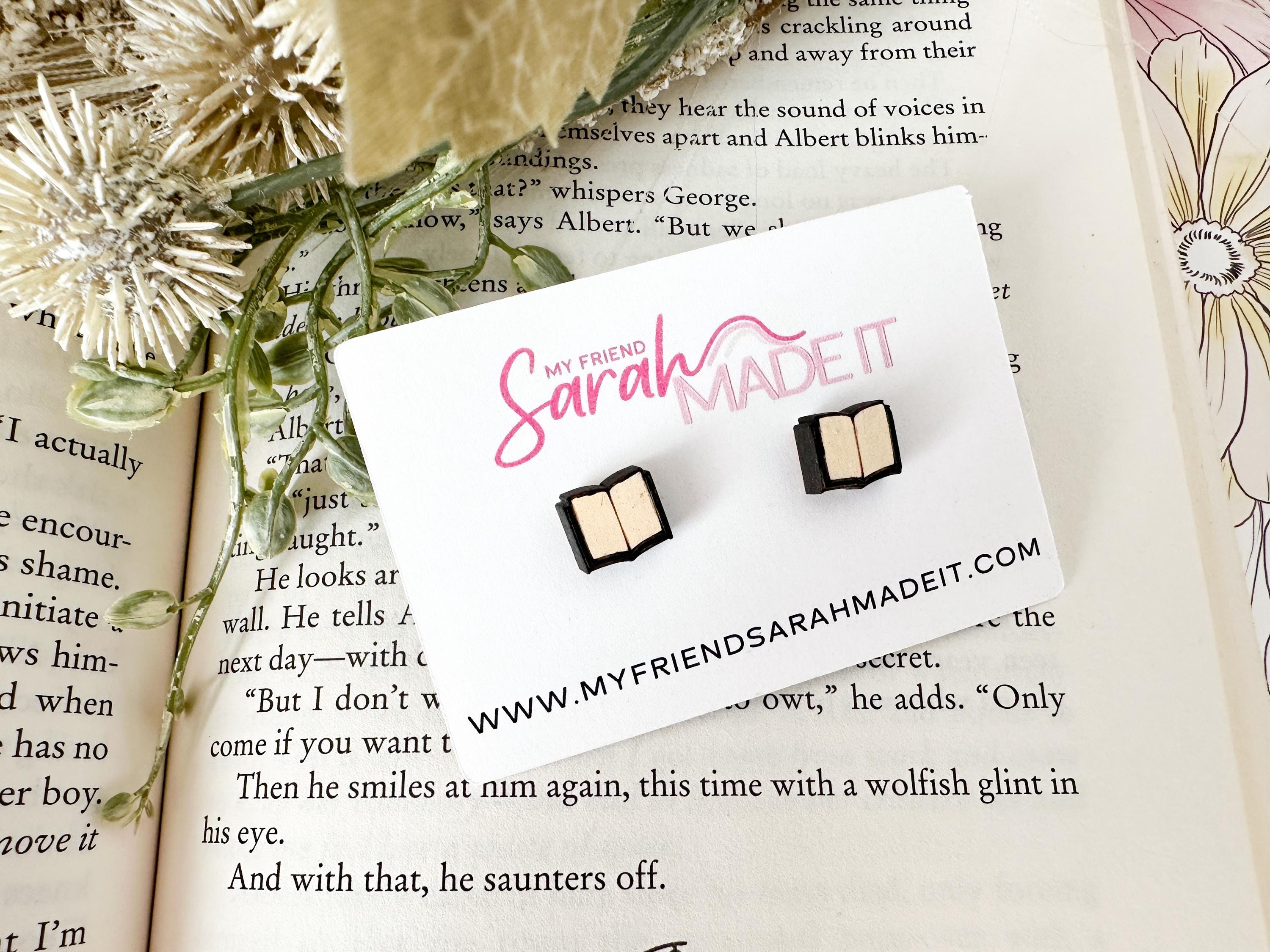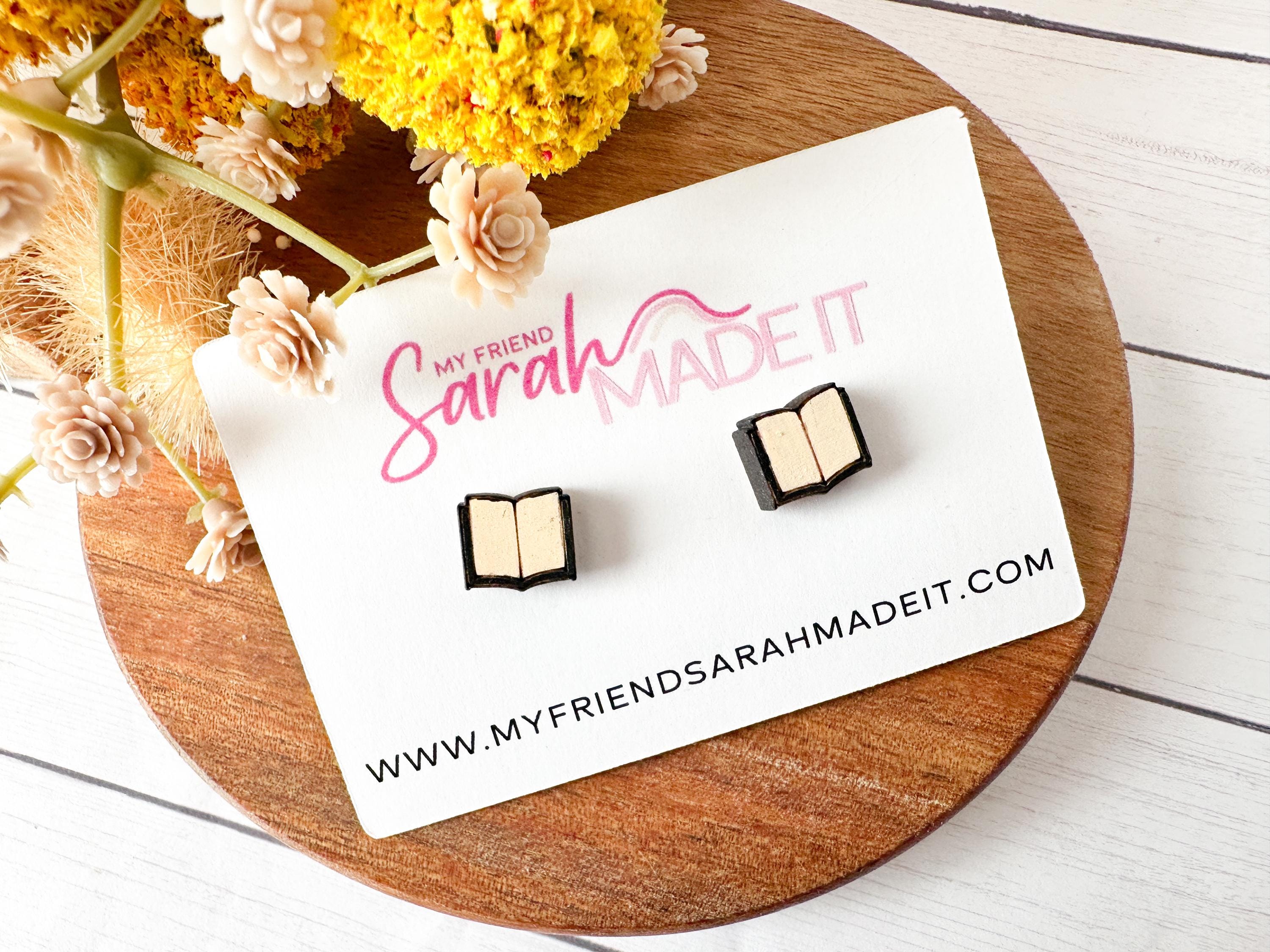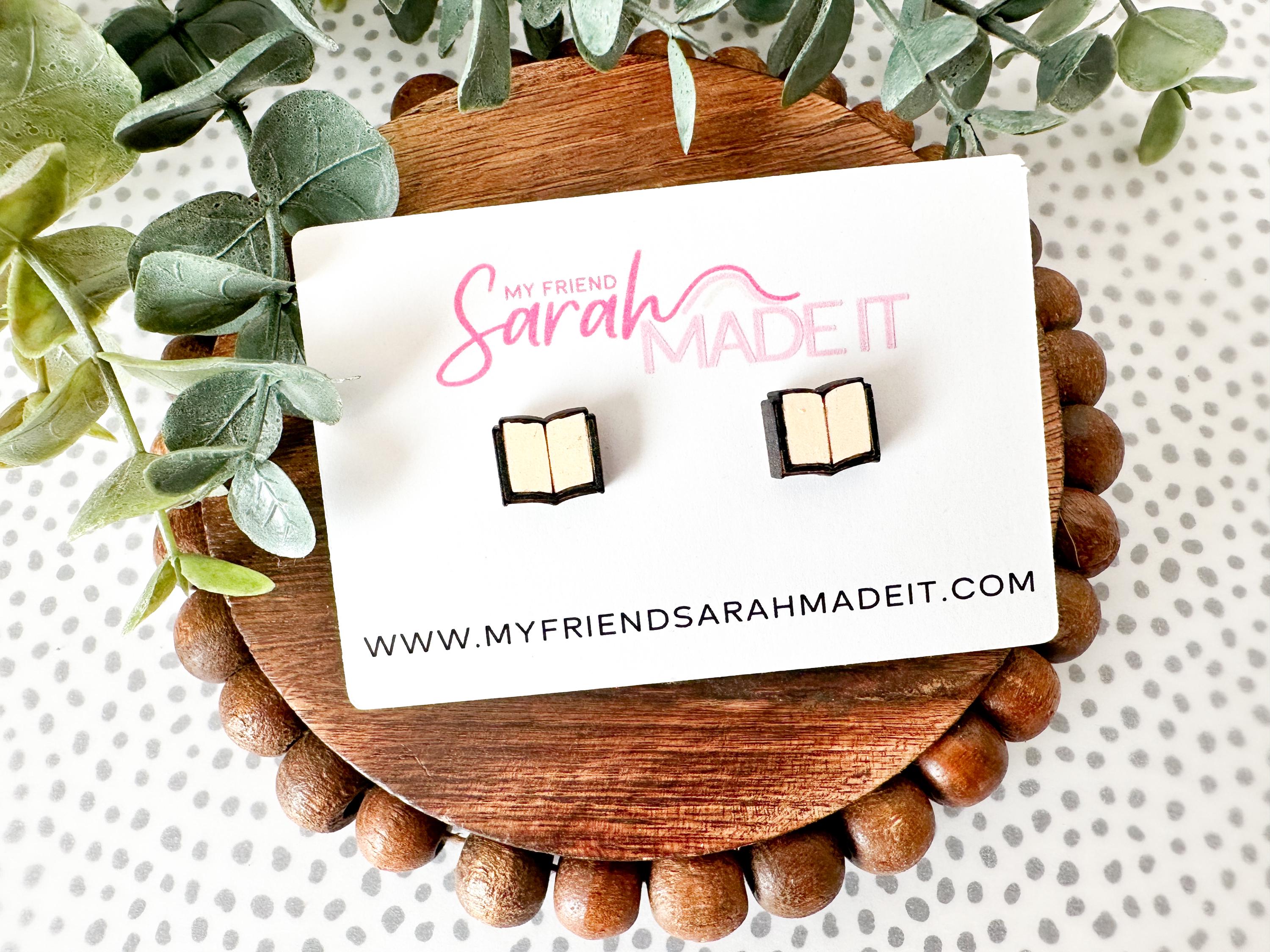 These open book stud earrings are a sweet, subtle nod to your love of reading. Laser cut from wood and hand painted in warm, neutral tones, they’re finished with stainless steel posts for all-day comfort -- even on sensitive ears. Lightweight and versatile, they’re perfect for everyday wear or as a thoughtful gift for your favorite bookworm.