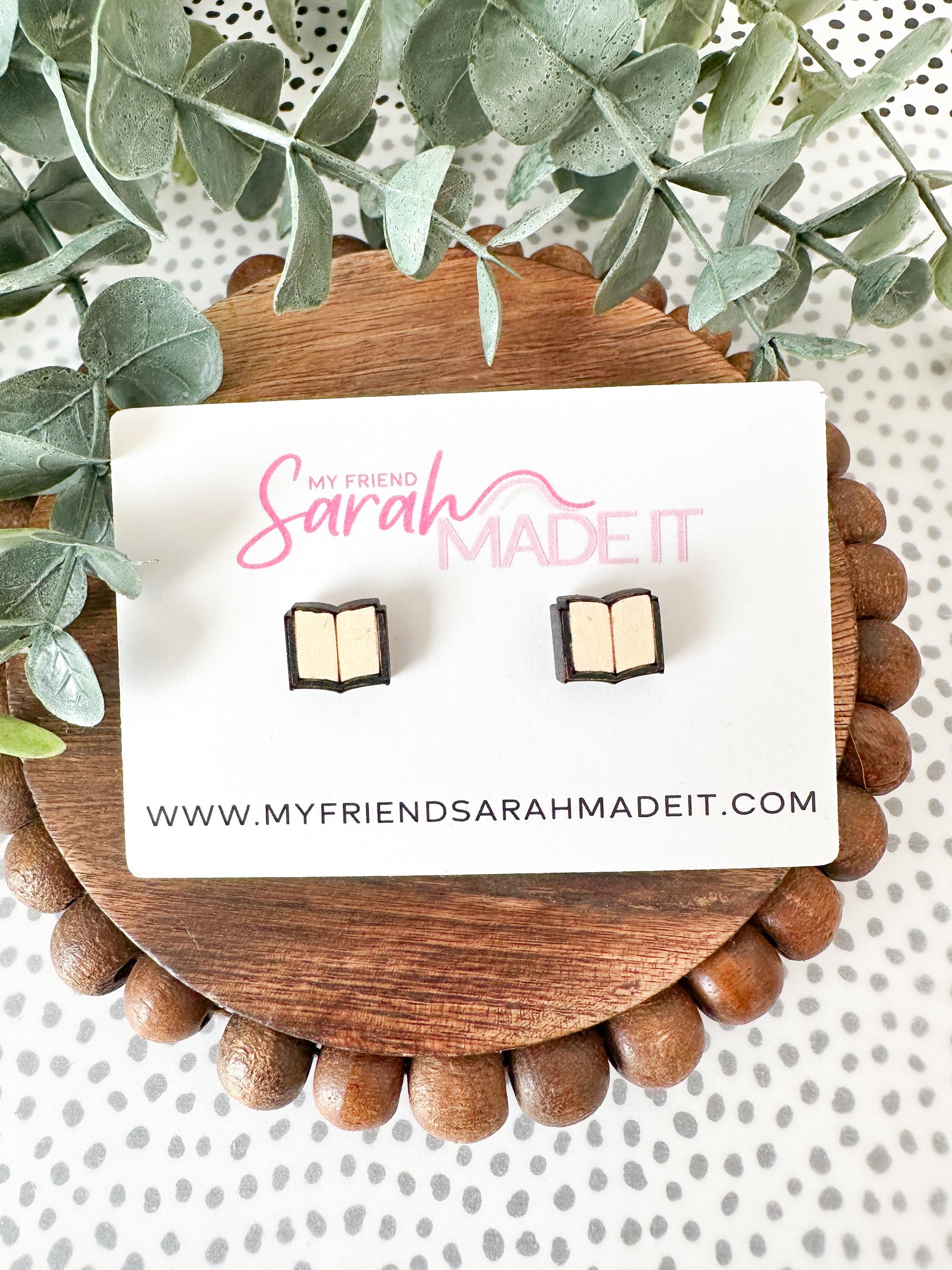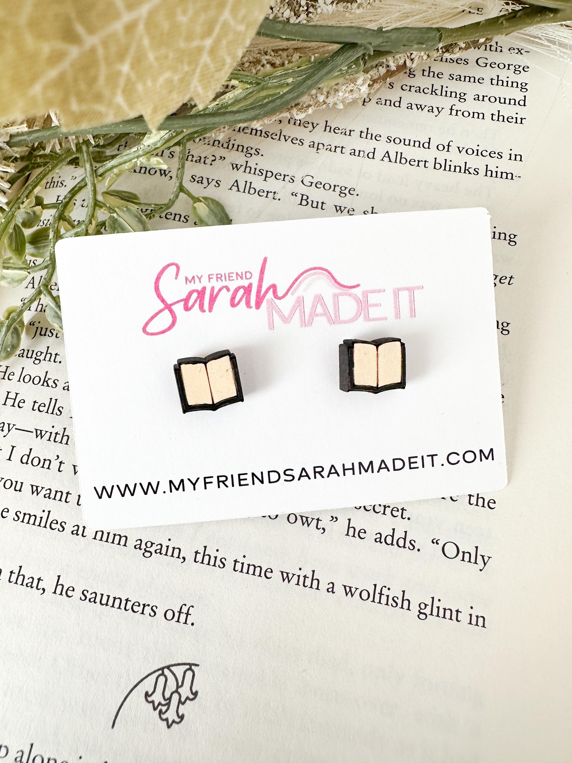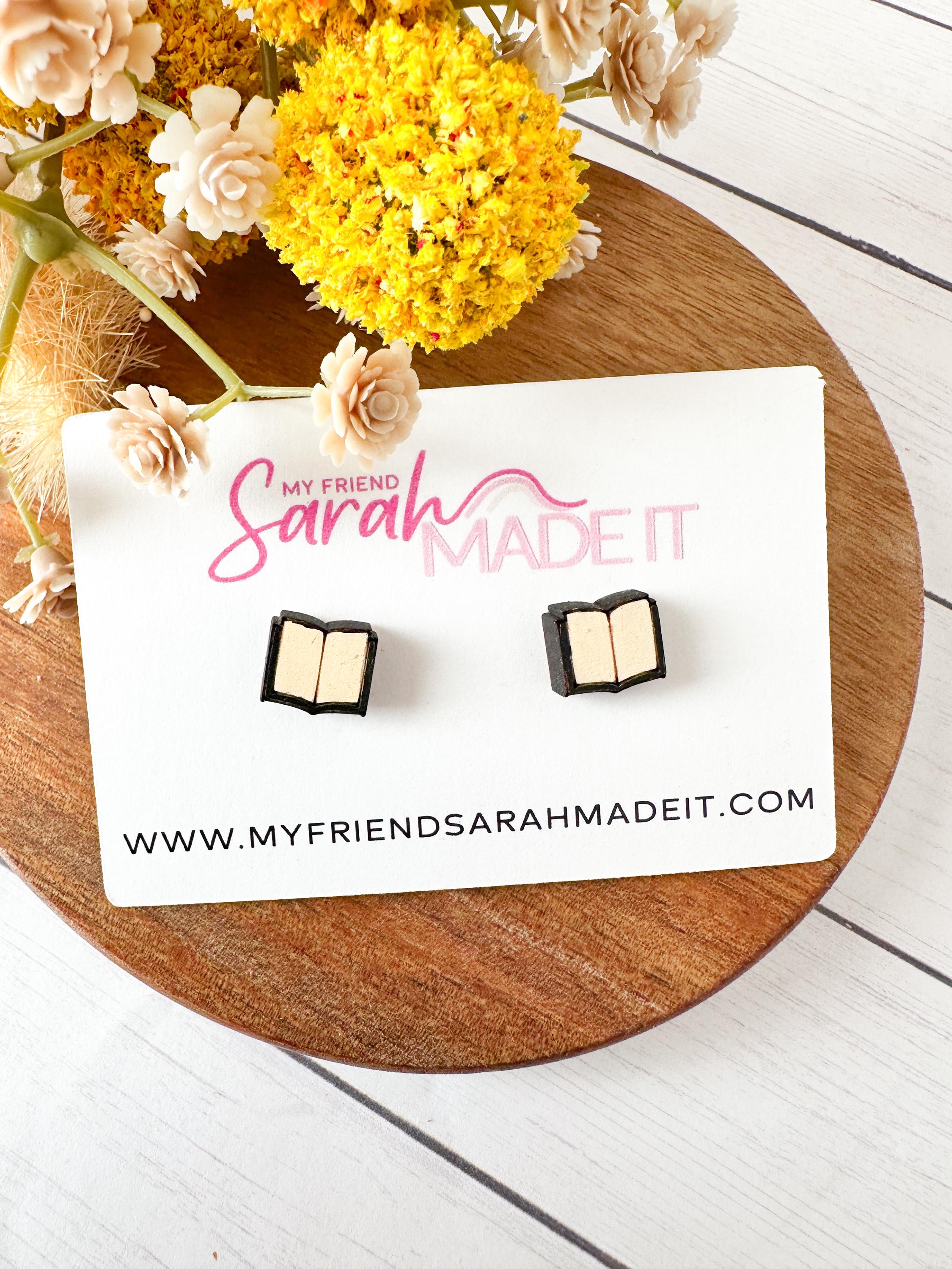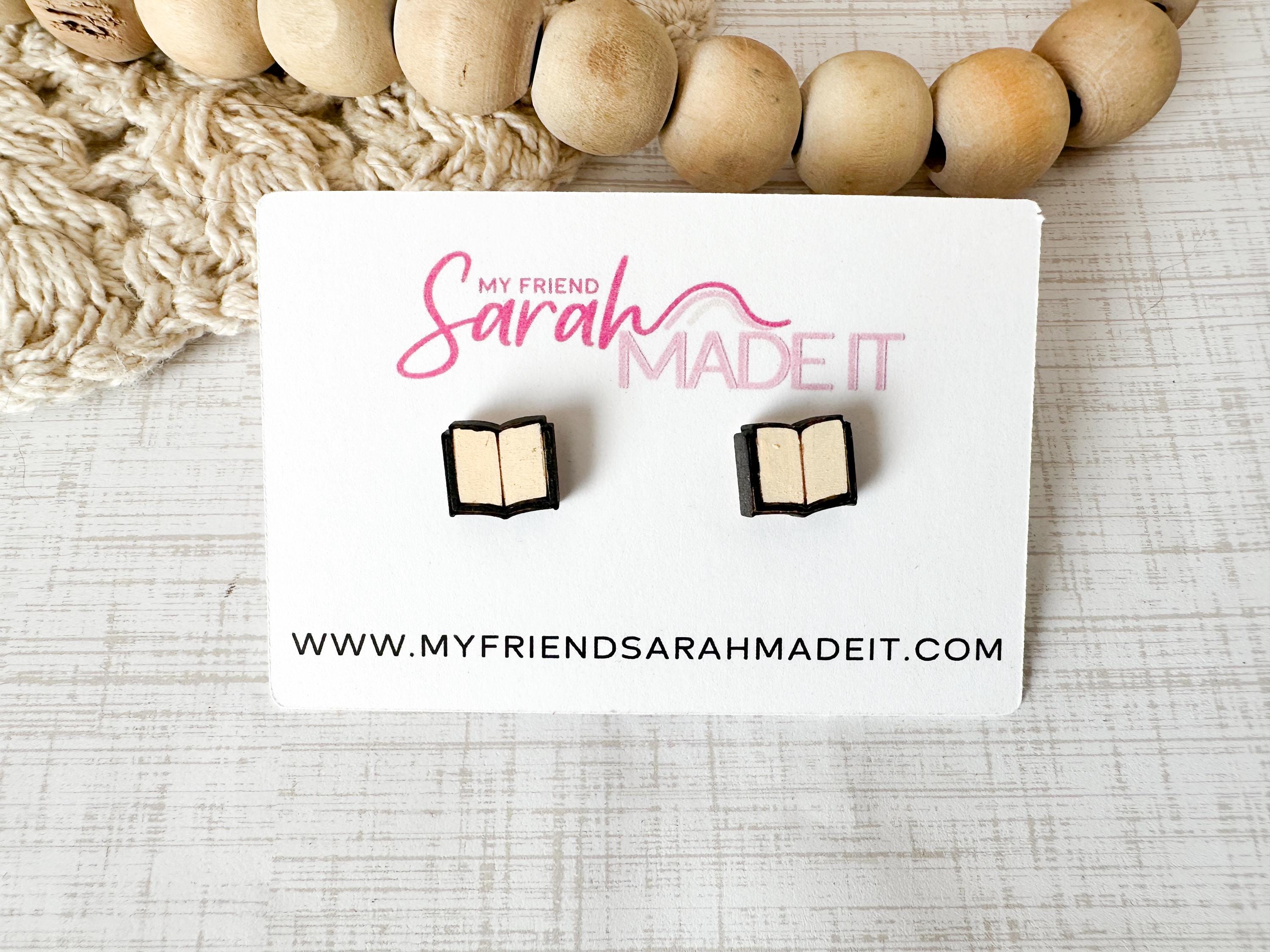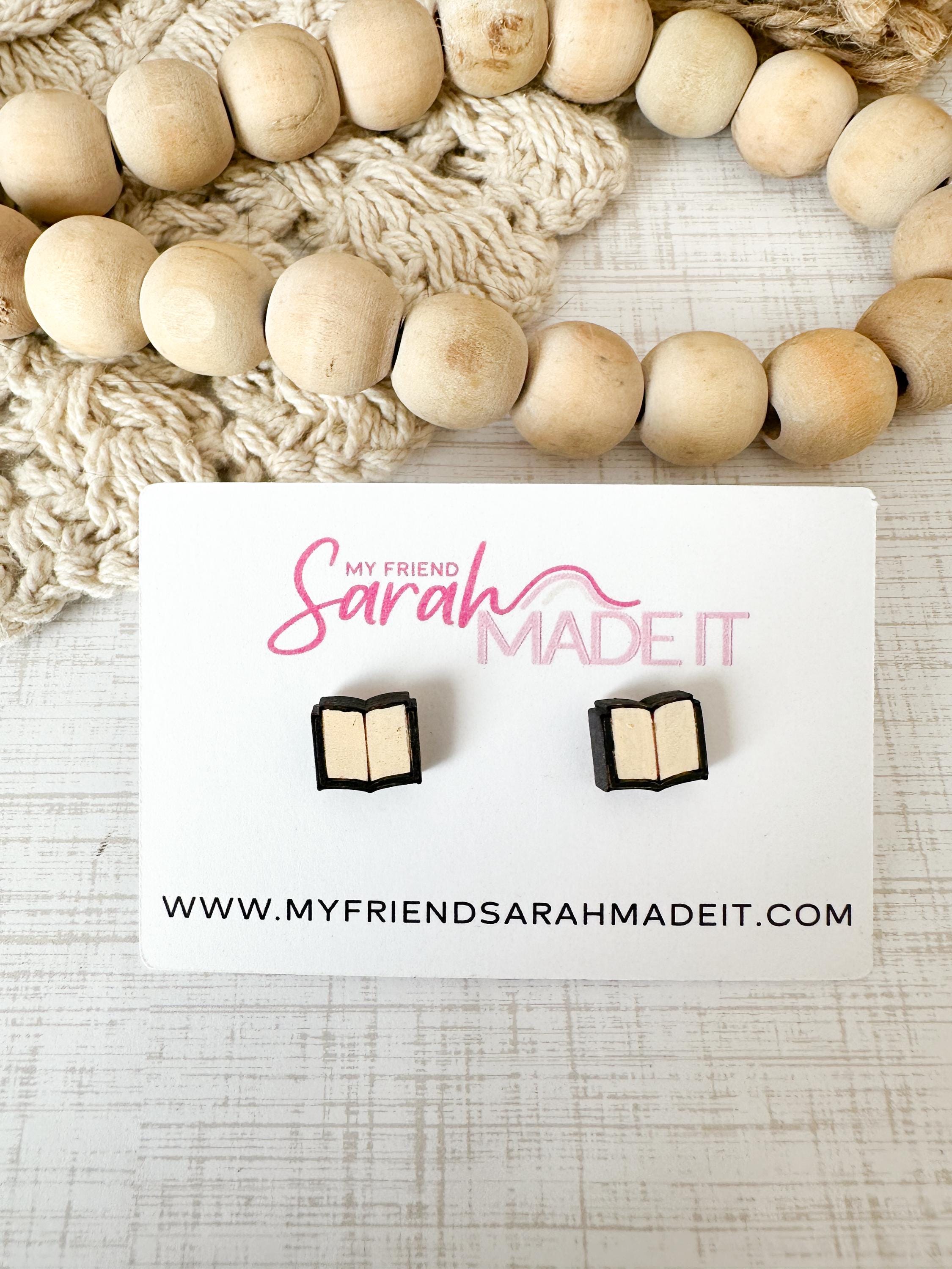 These open book stud earrings are a sweet, subtle nod to your love of reading. Laser cut from wood and hand painted in warm, neutral tones, they’re finished with stainless steel posts for all-day comfort -- even on sensitive ears. Lightweight and versatile, they’re perfect for everyday wear or as a thoughtful gift for your favorite bookworm.