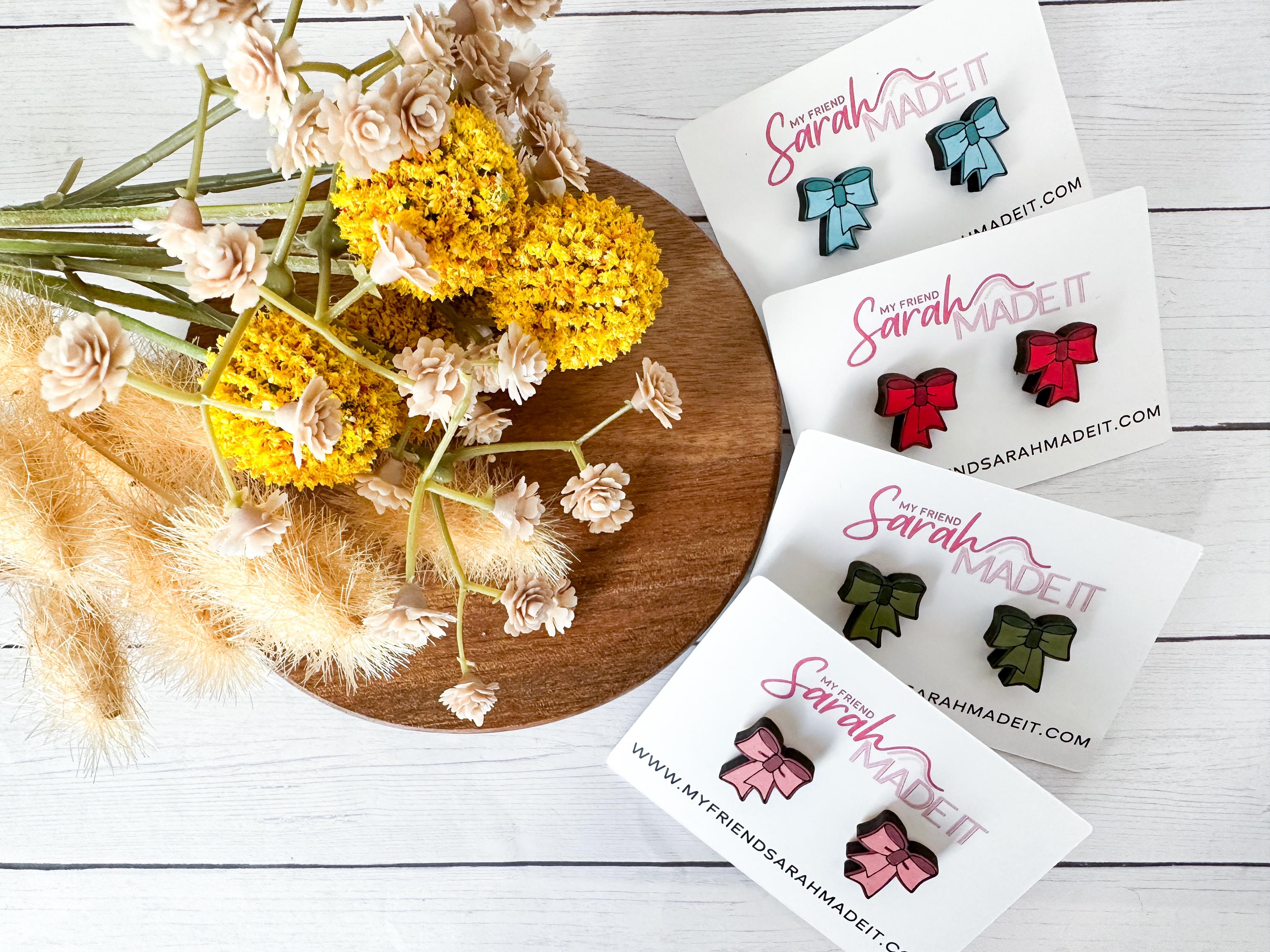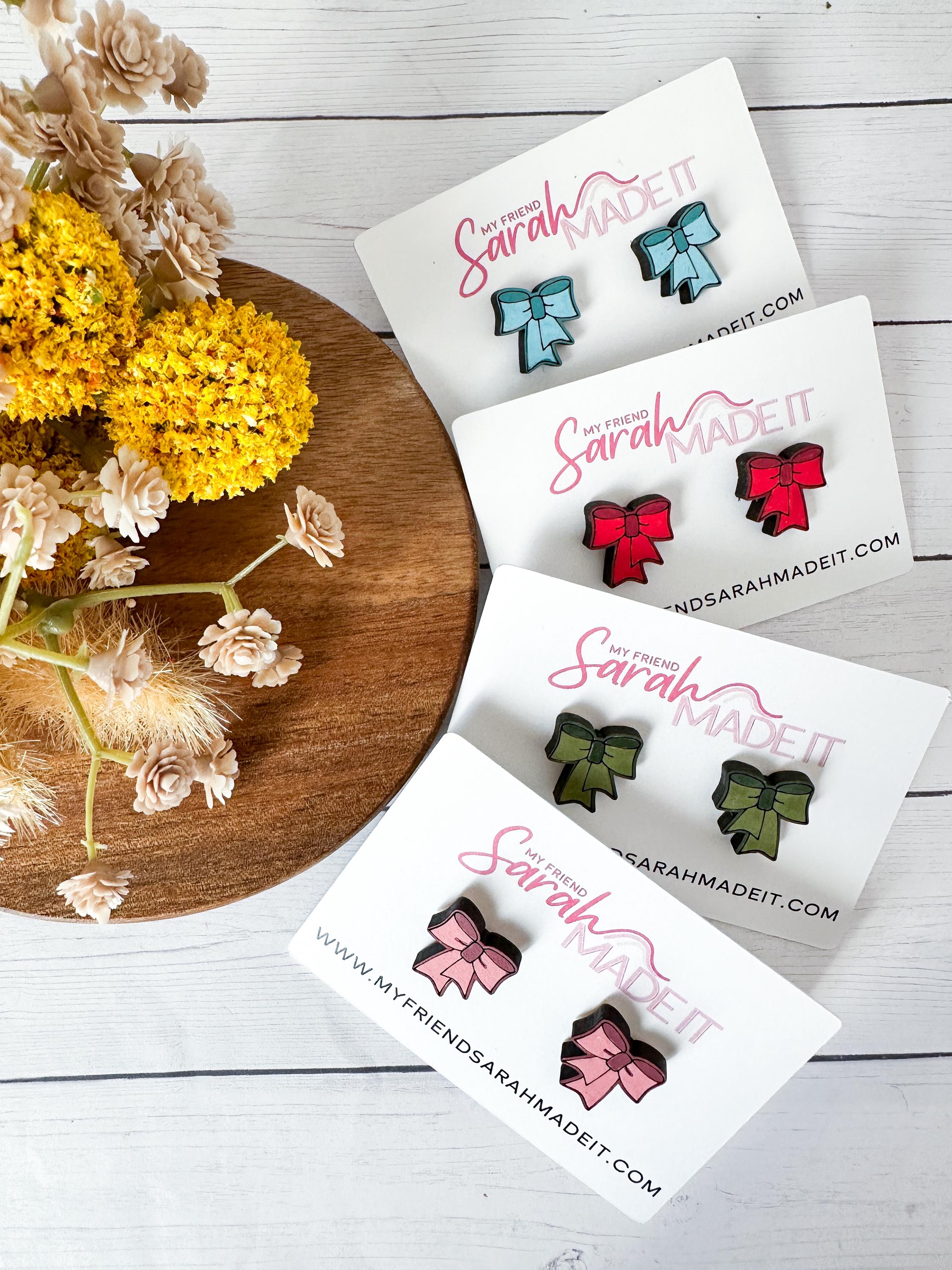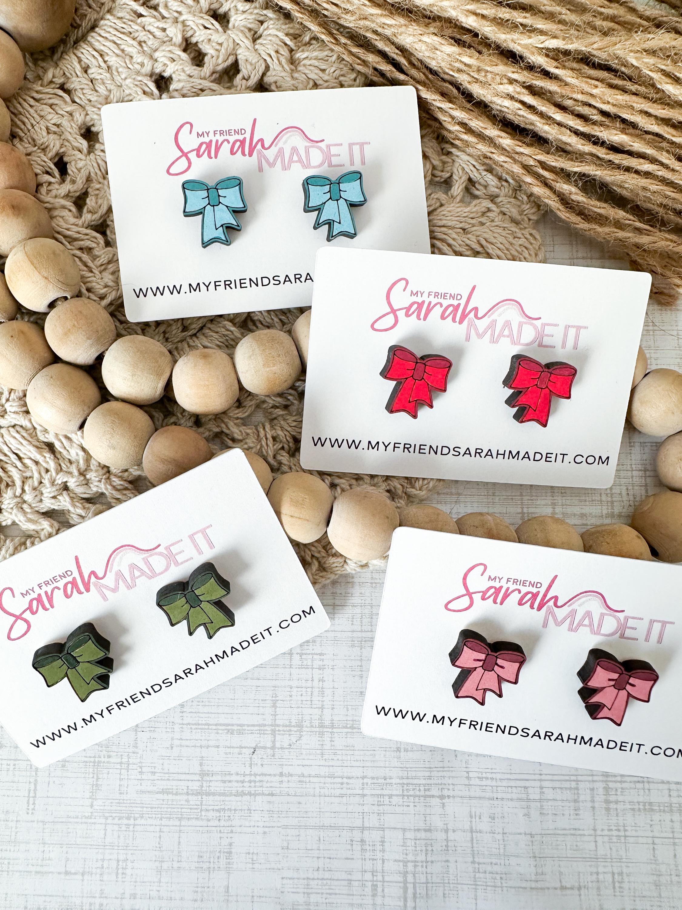 Each pair is laser-cut from lightweight wood, carefully hand-painted, and sealed for a smooth finish. Choose from four festive colors - perfect for the holidays or year-round wear! These tiny bows are full of personality β wear them to holiday parties, festive markets, or anytime you want a dash of cheer!