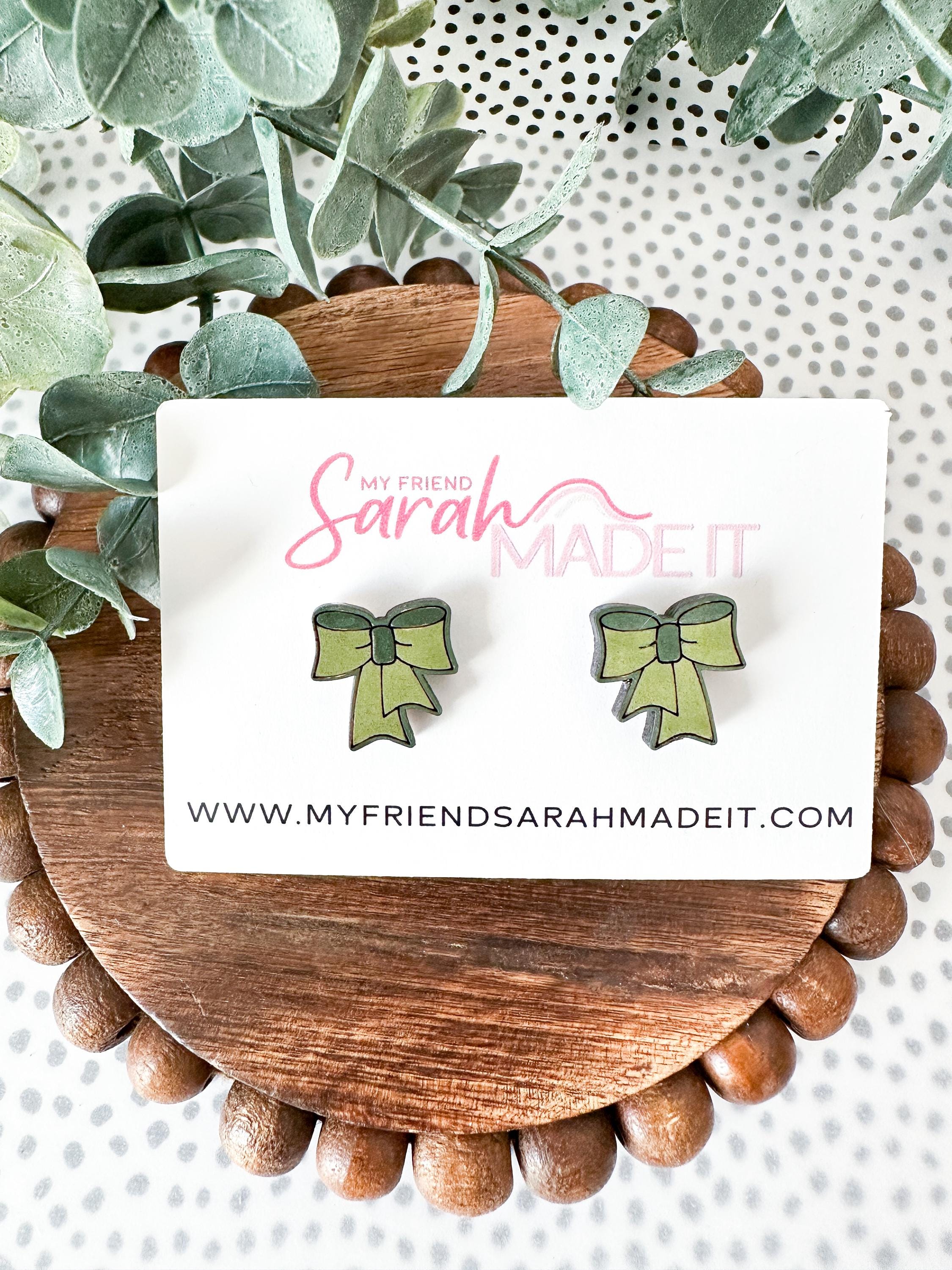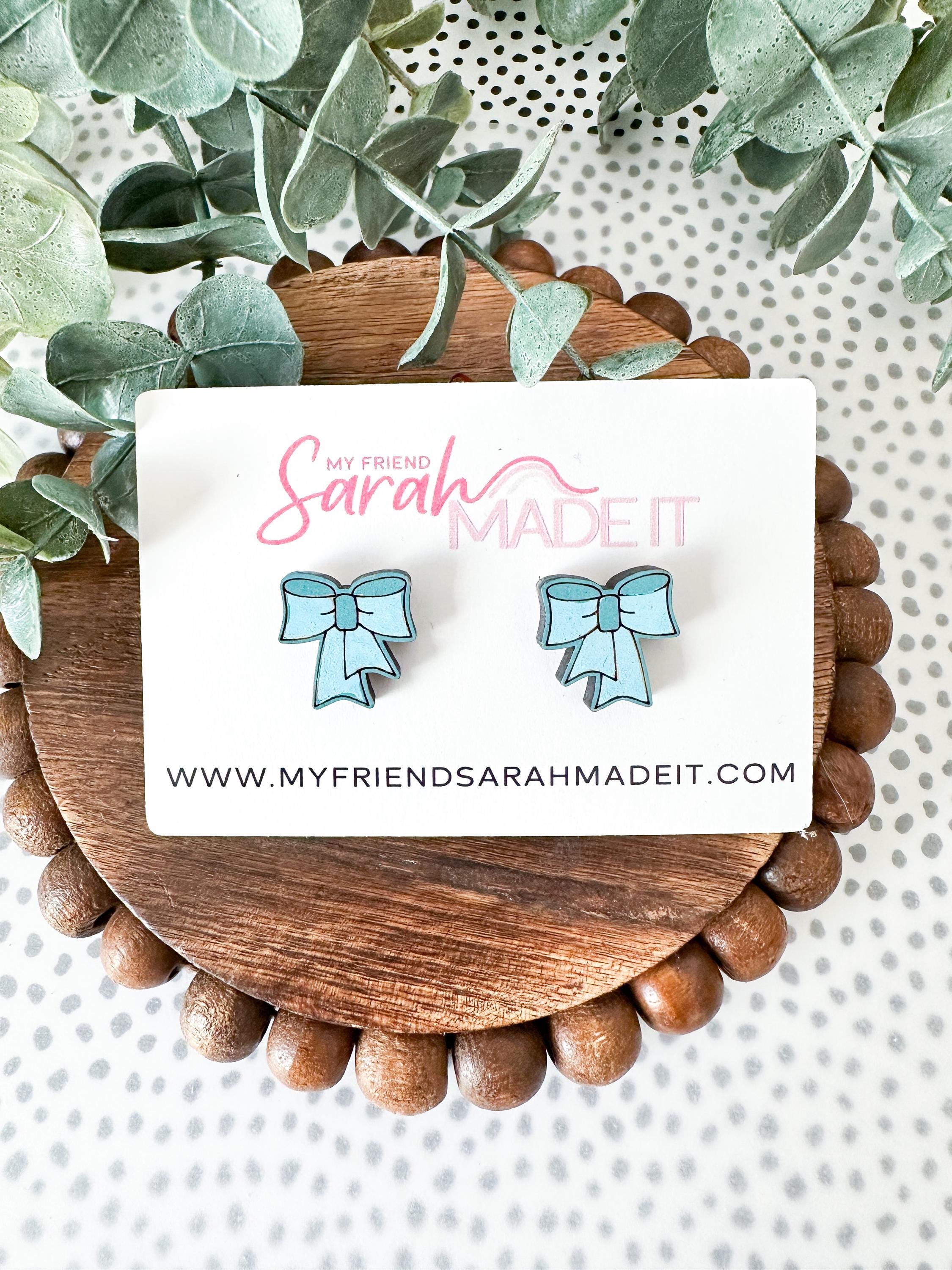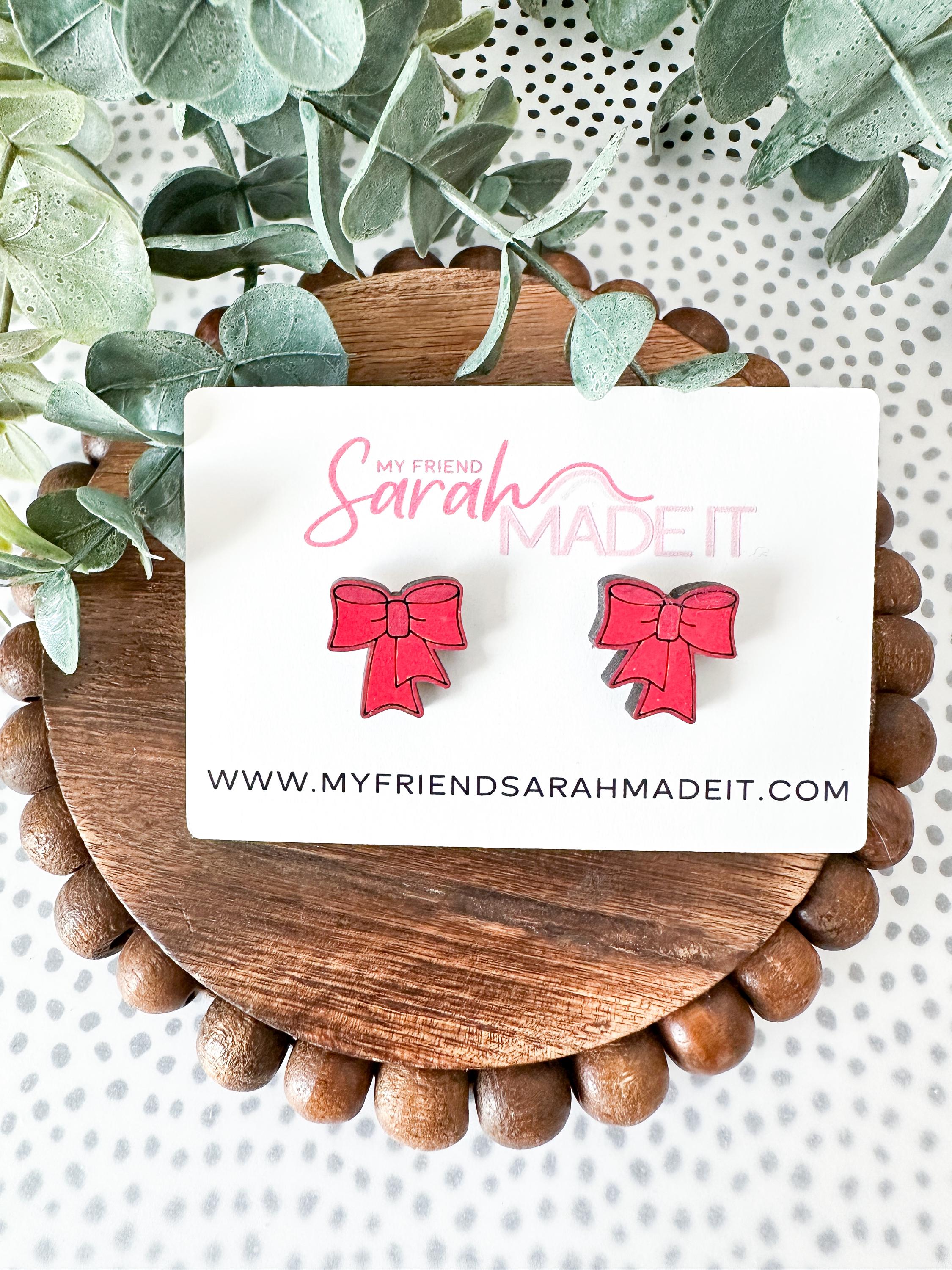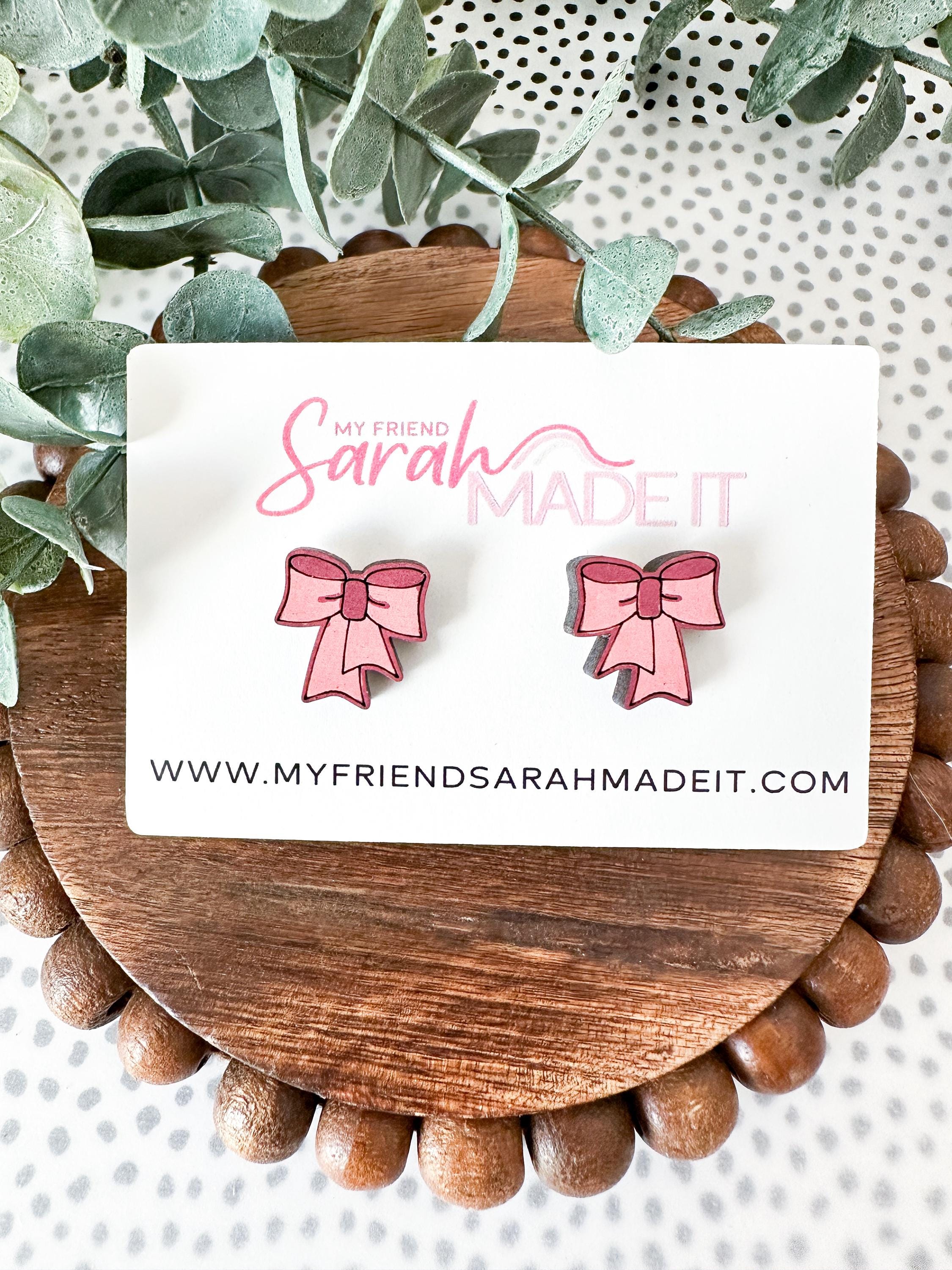Add a sweet finishing touch to any outfit with these charming hand-painted wooden bow stud earrings. π