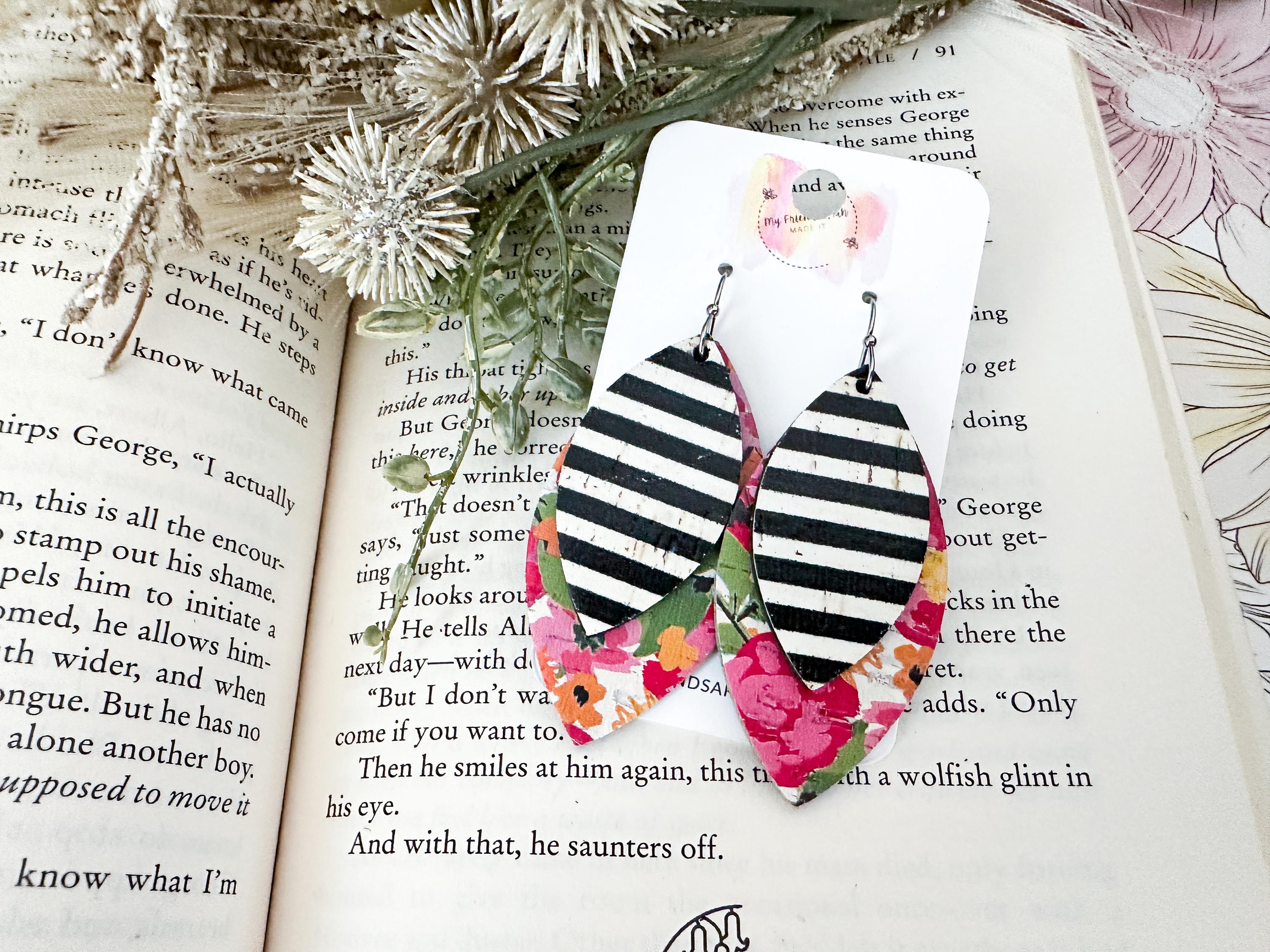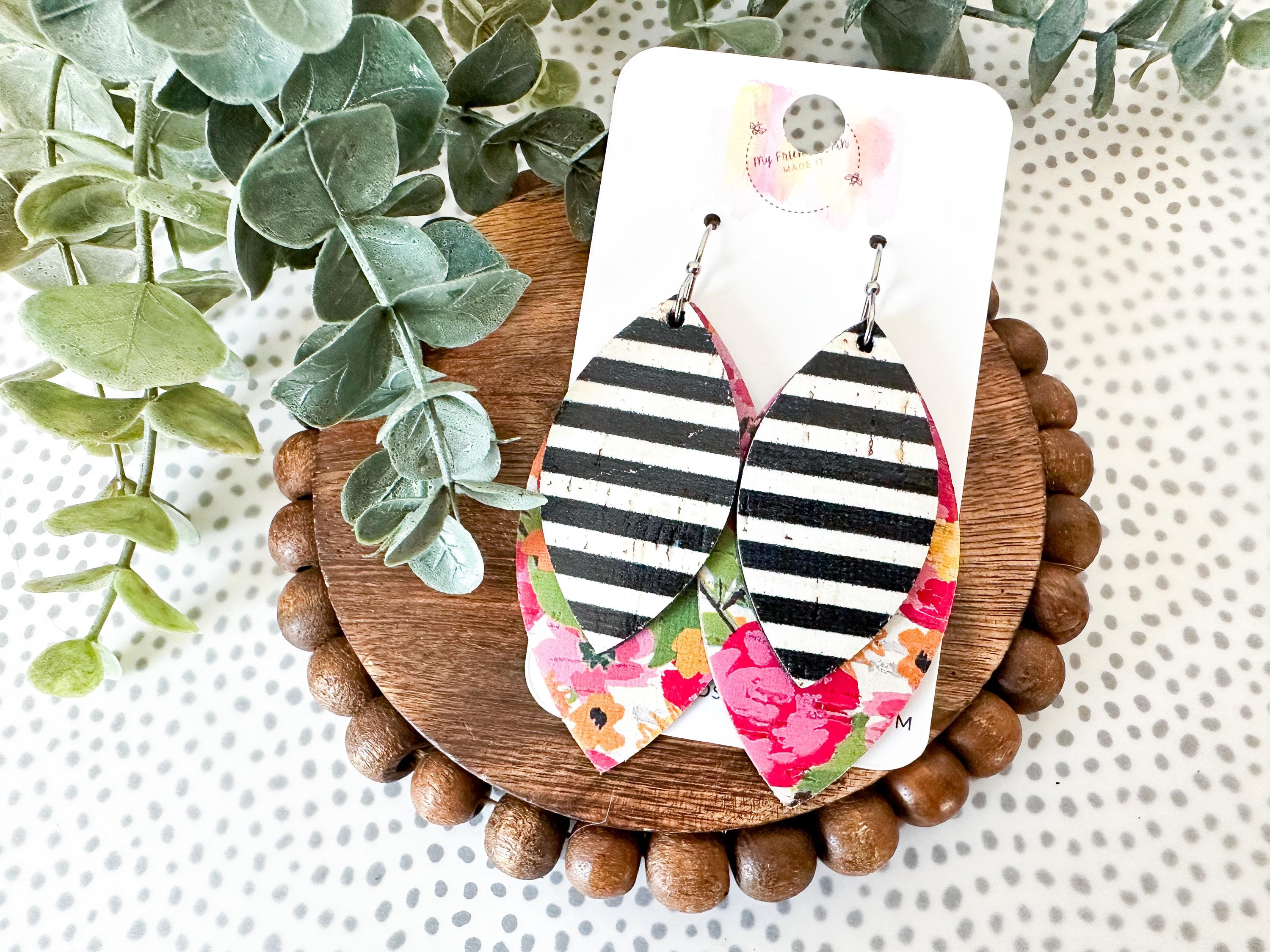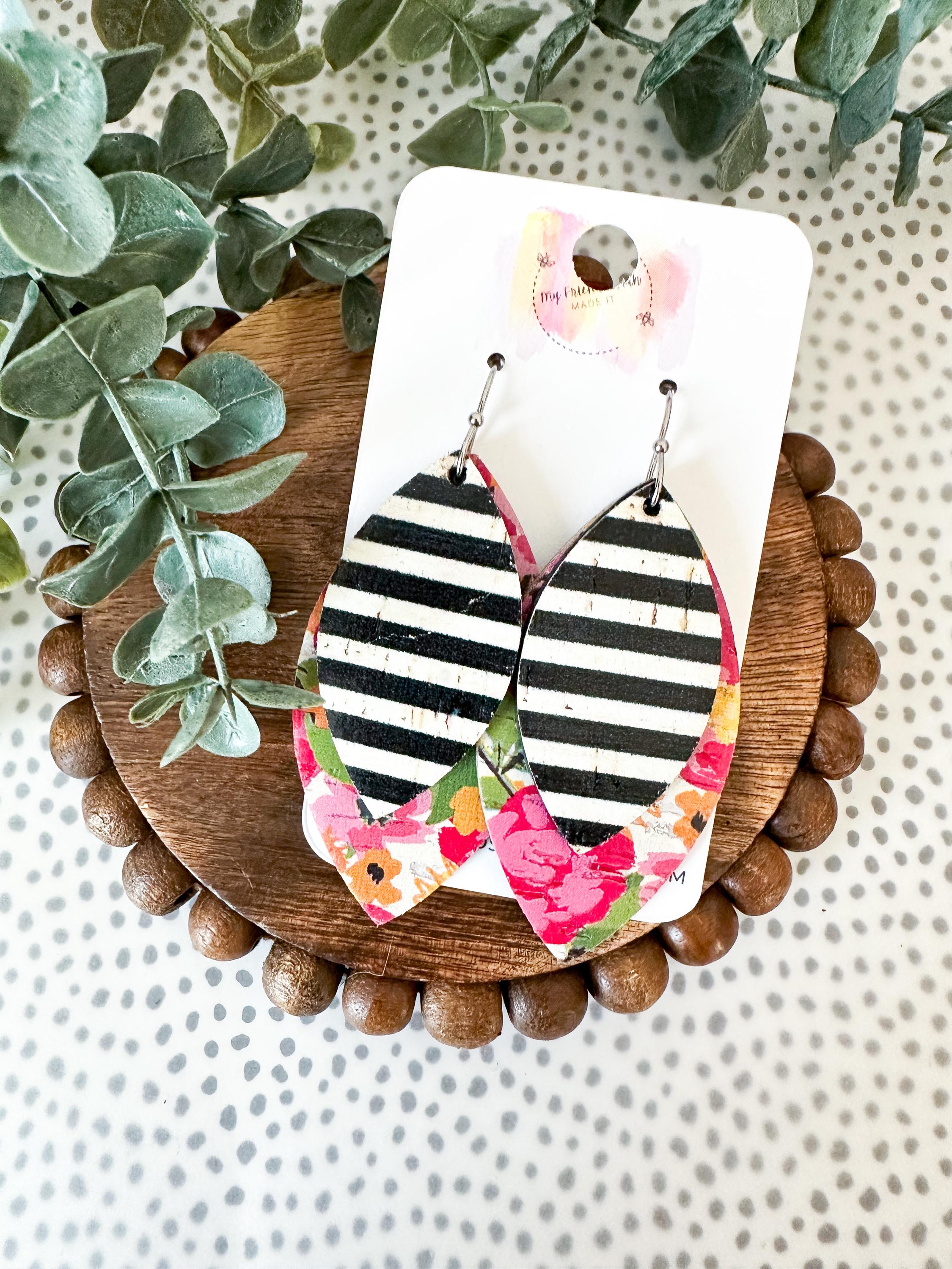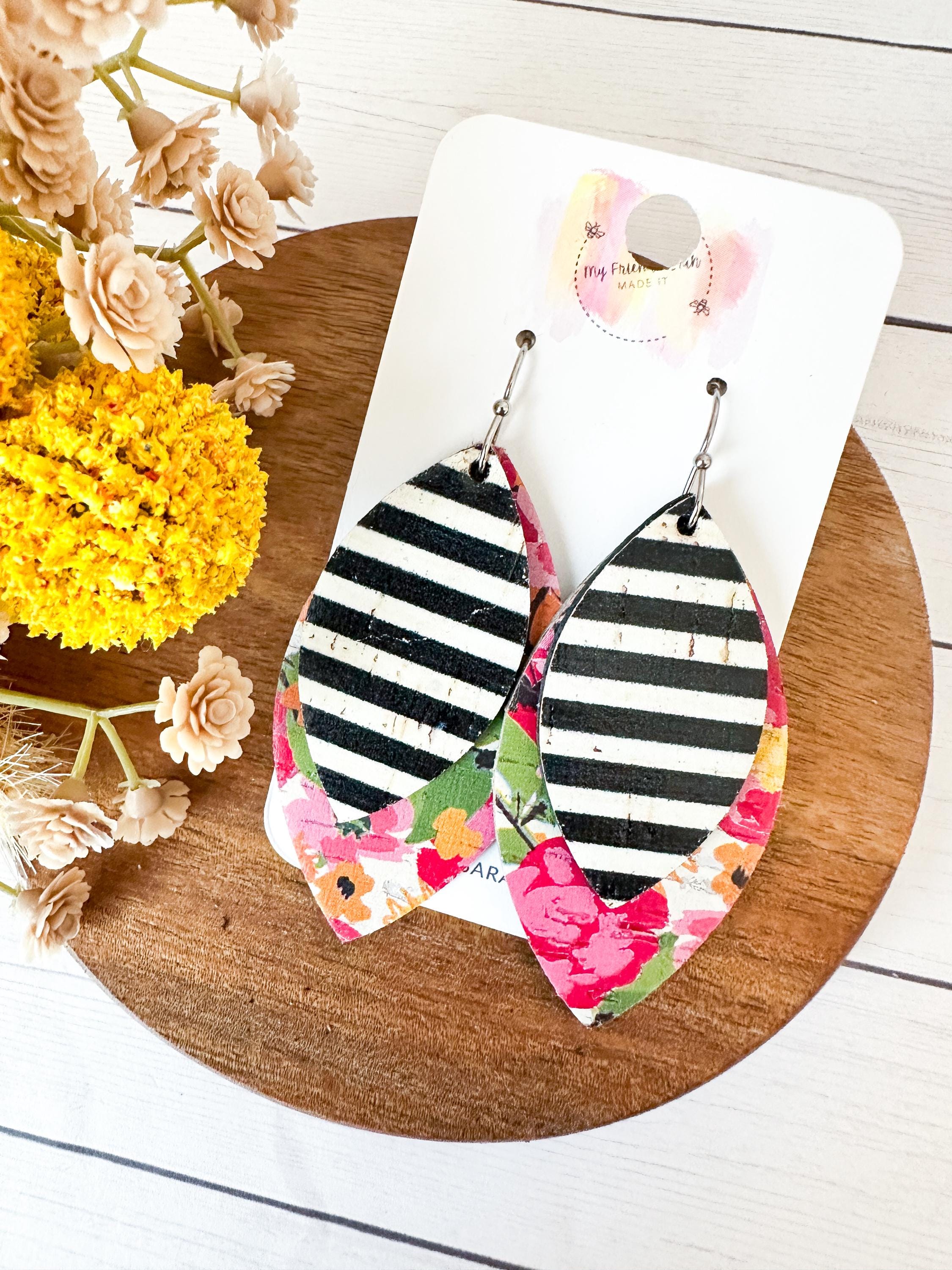 If you love a good pattern mash-up, these earrings are your moment. Bold black + white stripes up top, vibrant florals peeking through underneath - it’s basically the jewelry version of mixing your favorite prints and somehow looking effortlessly pulled together. They’re playful, bold, and guaranteed to get compliments from strangers in checkout lines.