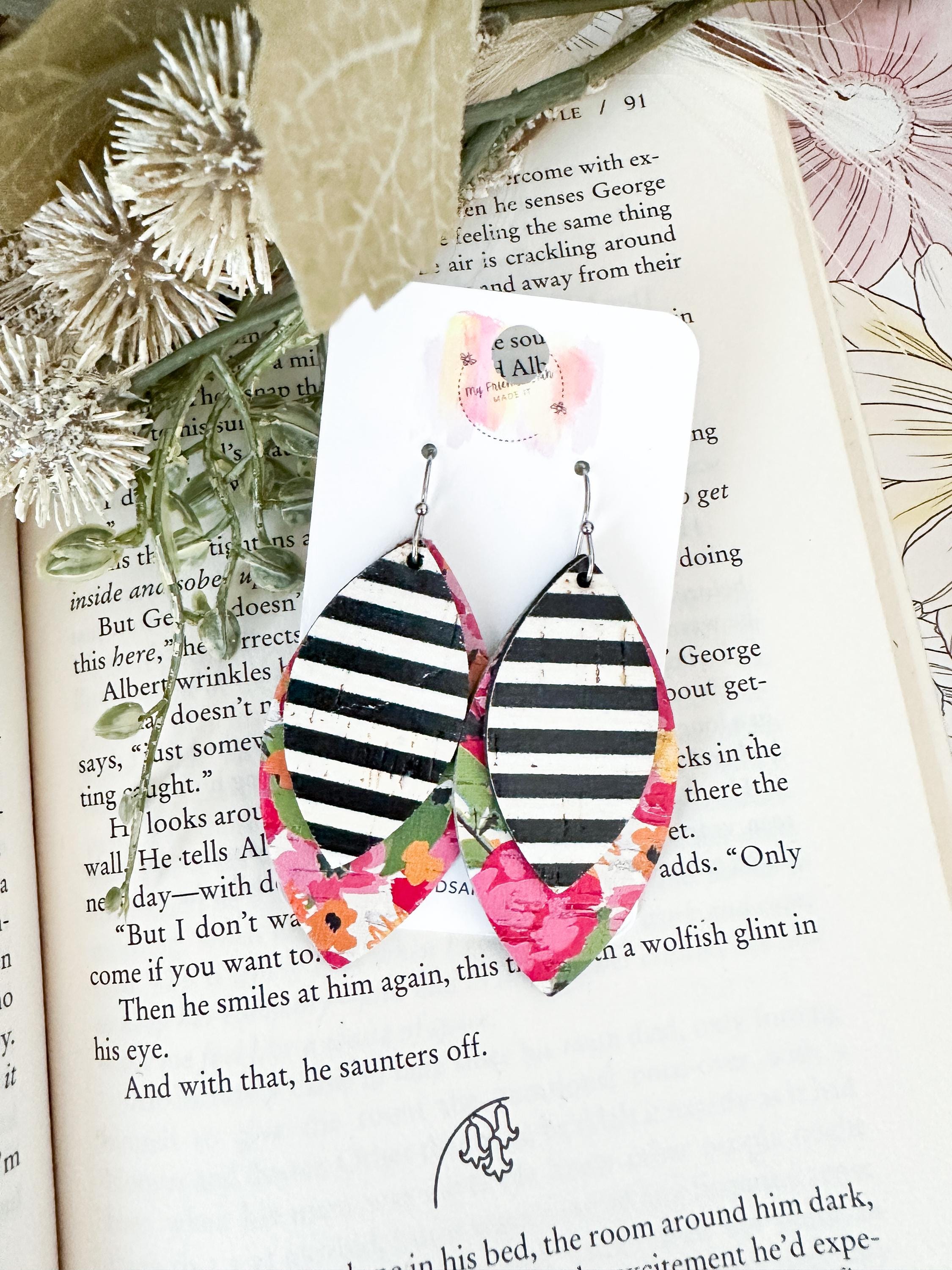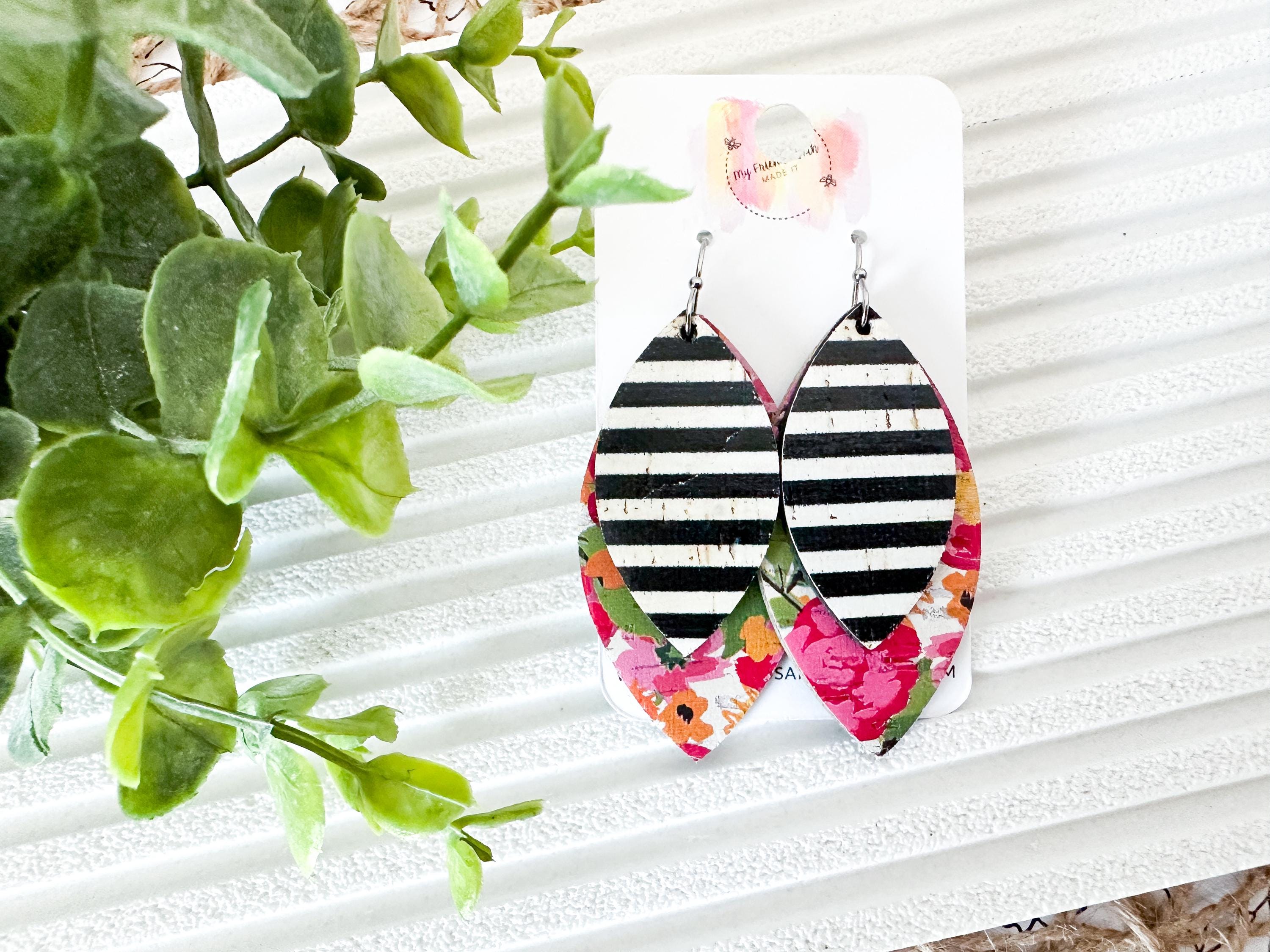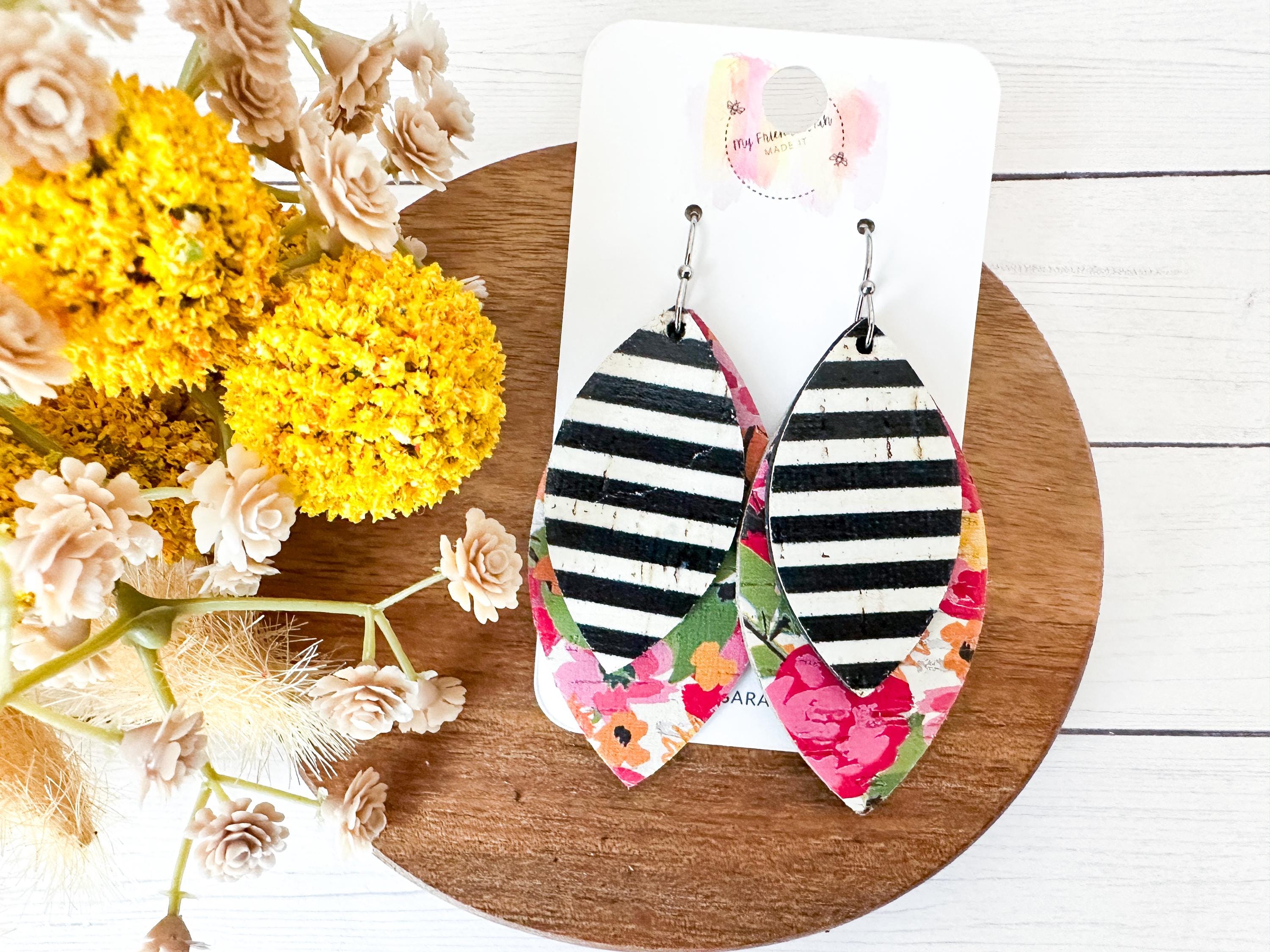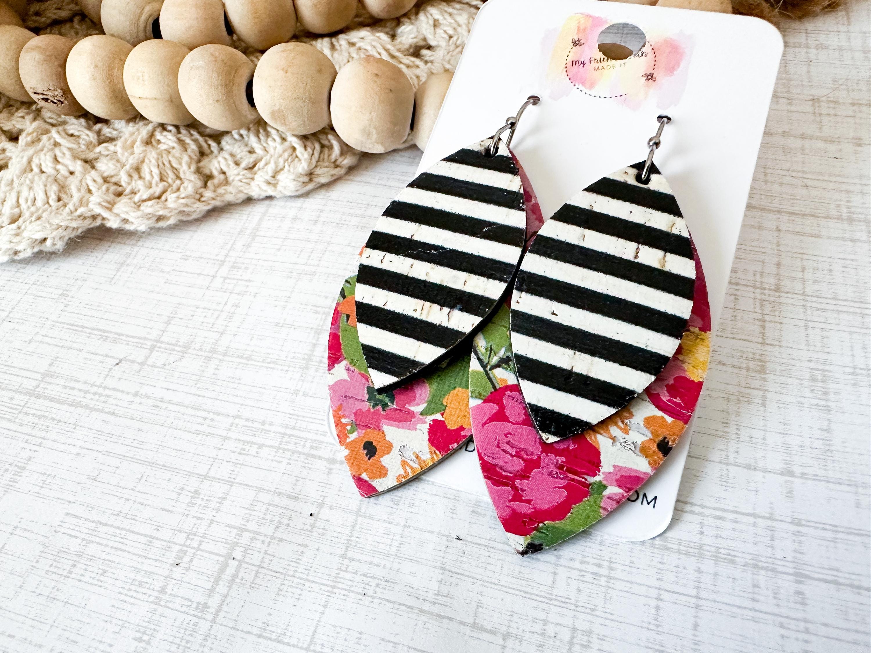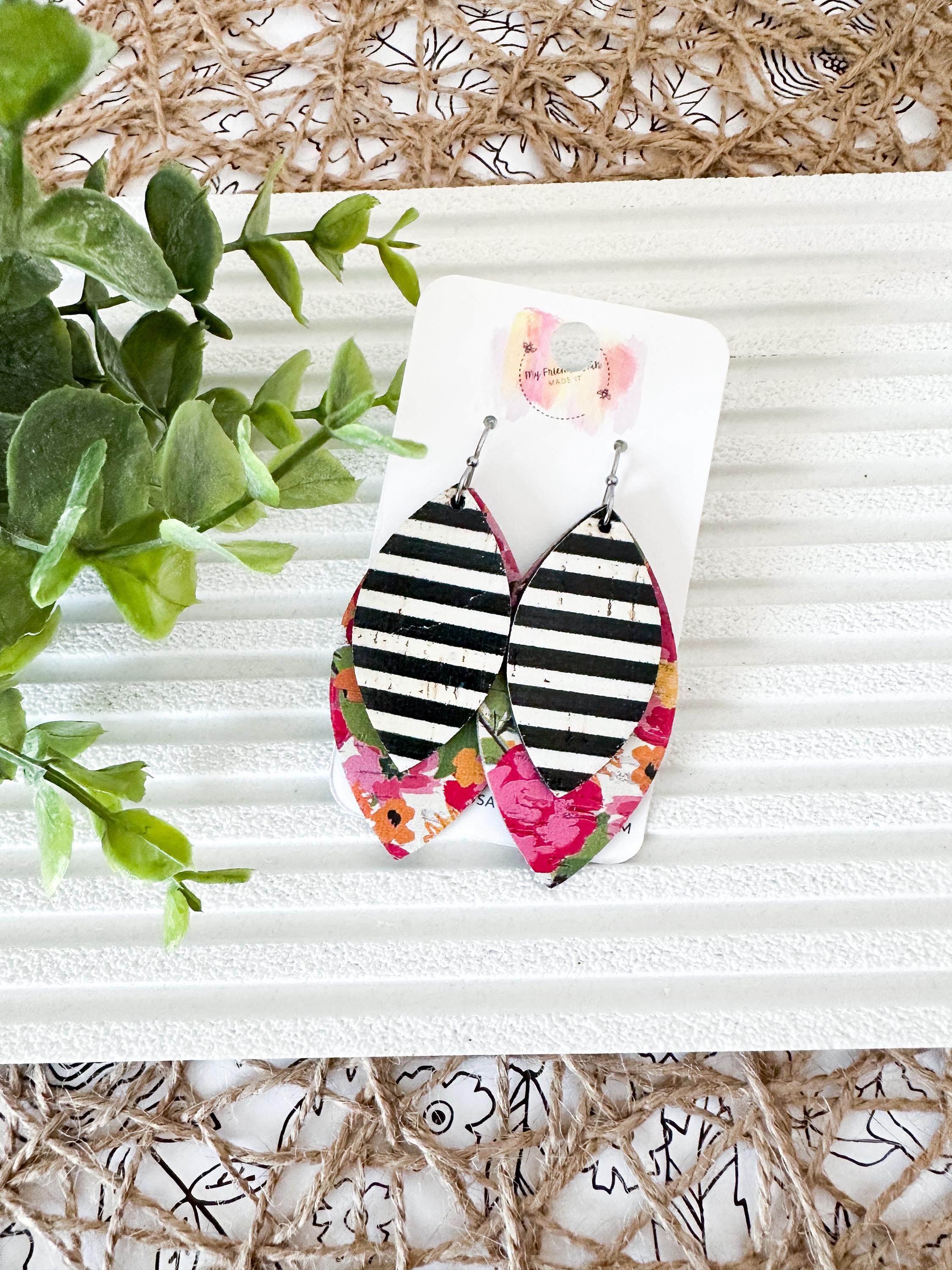 If you love a good pattern mash-up, these earrings are your moment. Bold black + white stripes up top, vibrant florals peeking through underneath - it’s basically the jewelry version of mixing your favorite prints and somehow looking effortlessly pulled together. They’re playful, bold, and guaranteed to get compliments from strangers in checkout lines.