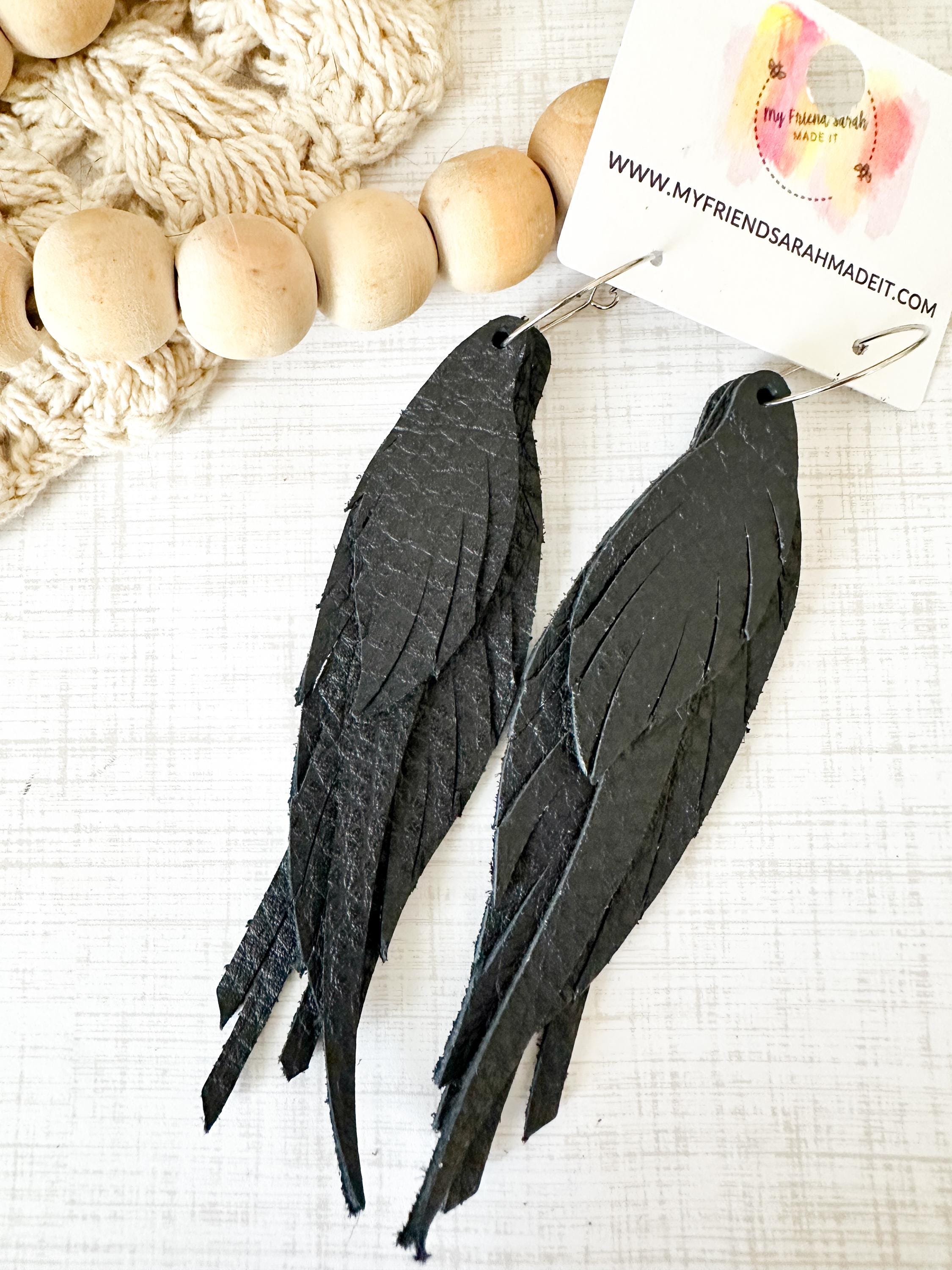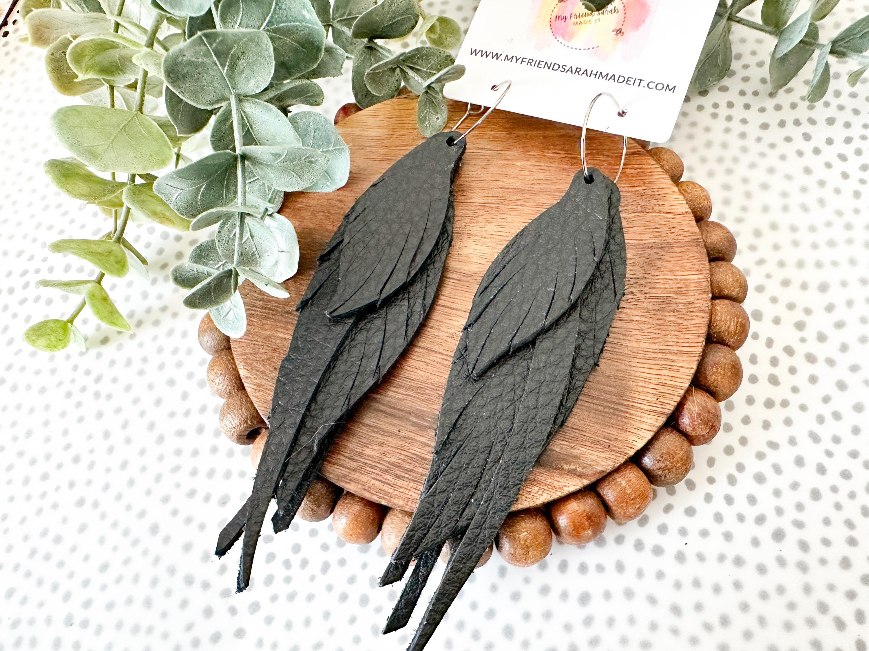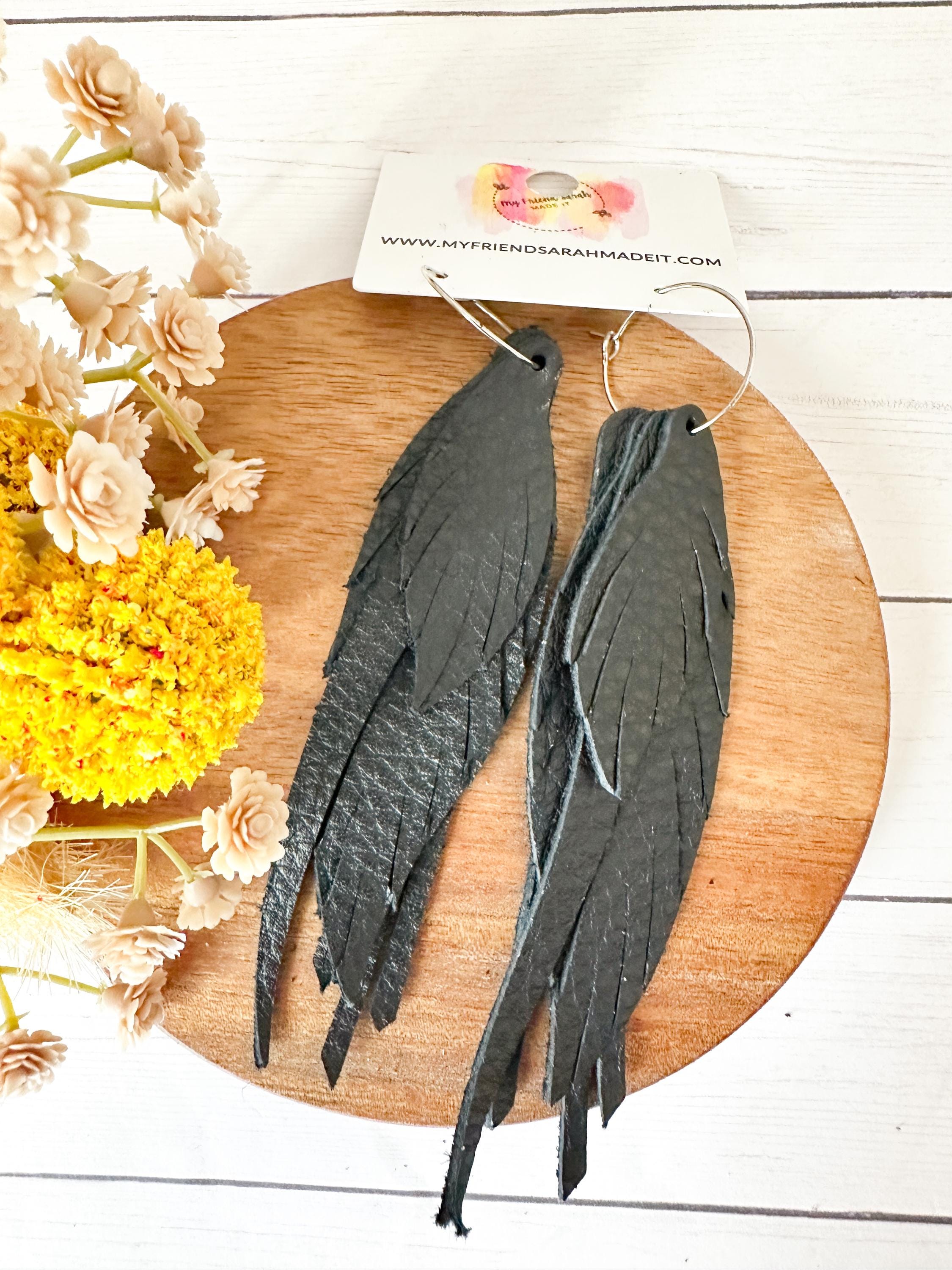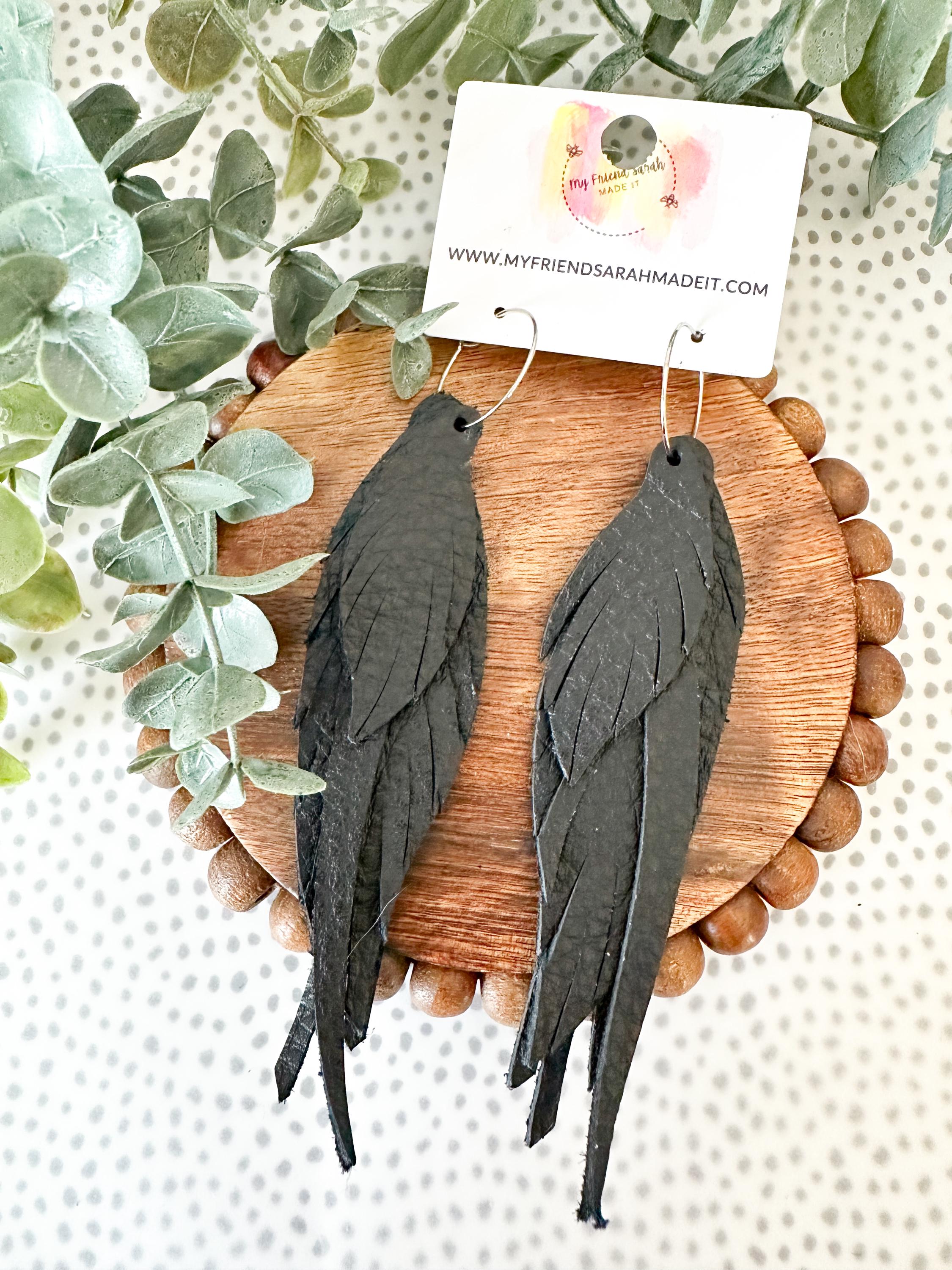 These dramatic black feathers are for the days you want to feel a little extra... in the BEST way. Soft leather layers keep them lightweight while the long fringe gives that effortless “I just threw these on and look incredible” energy. They move beautifully and go with literally everything.