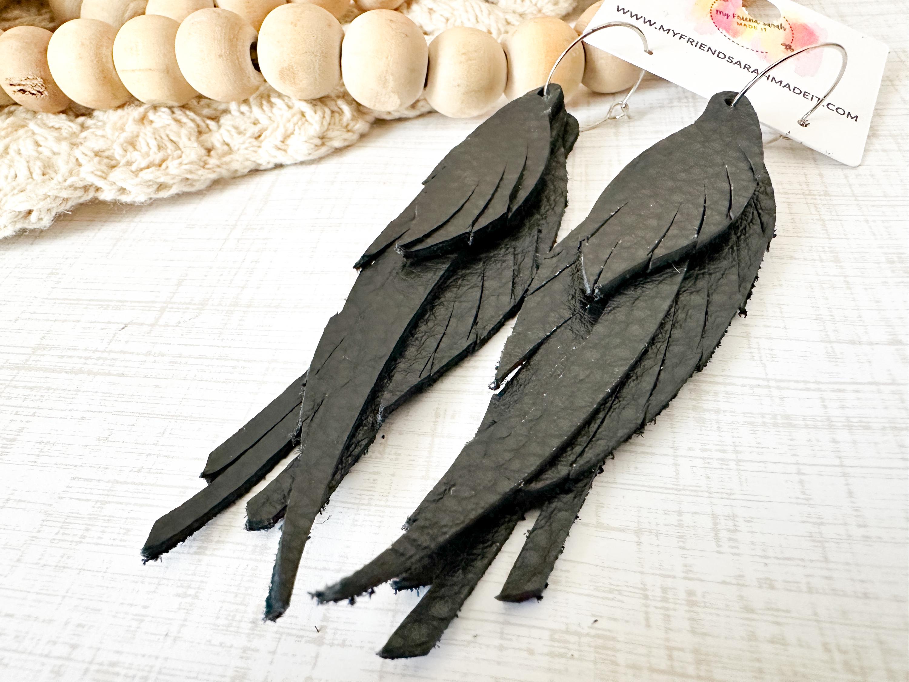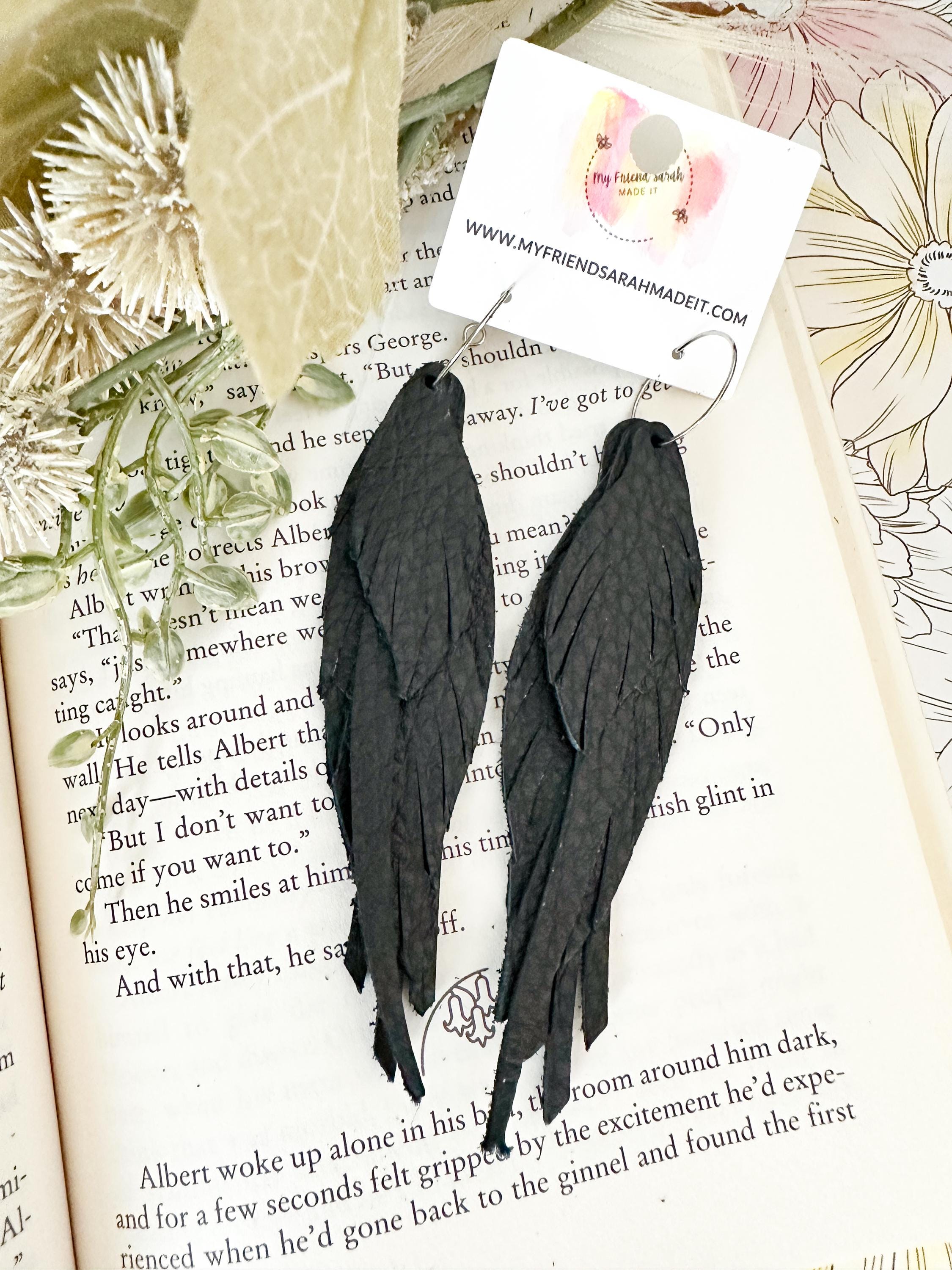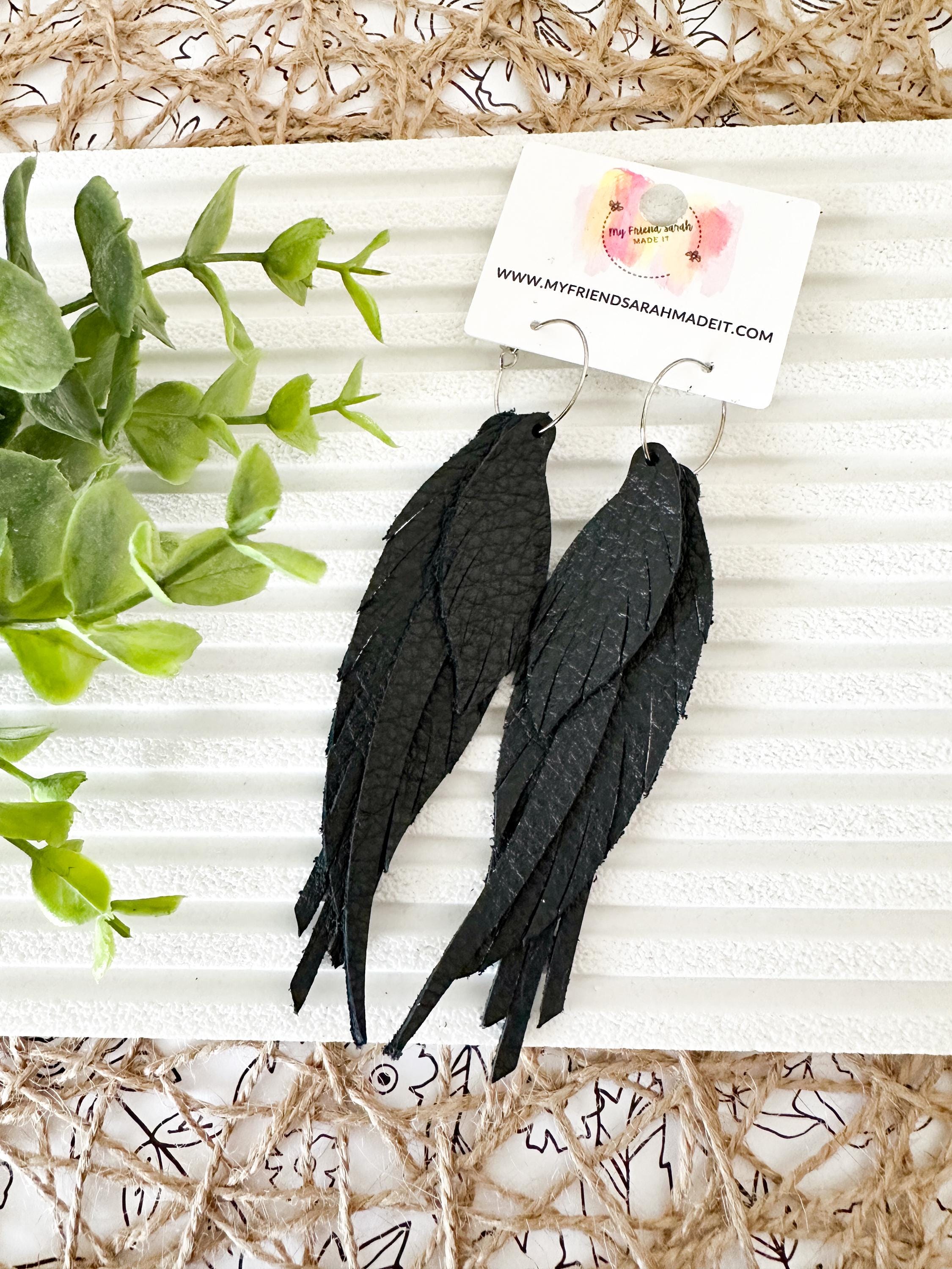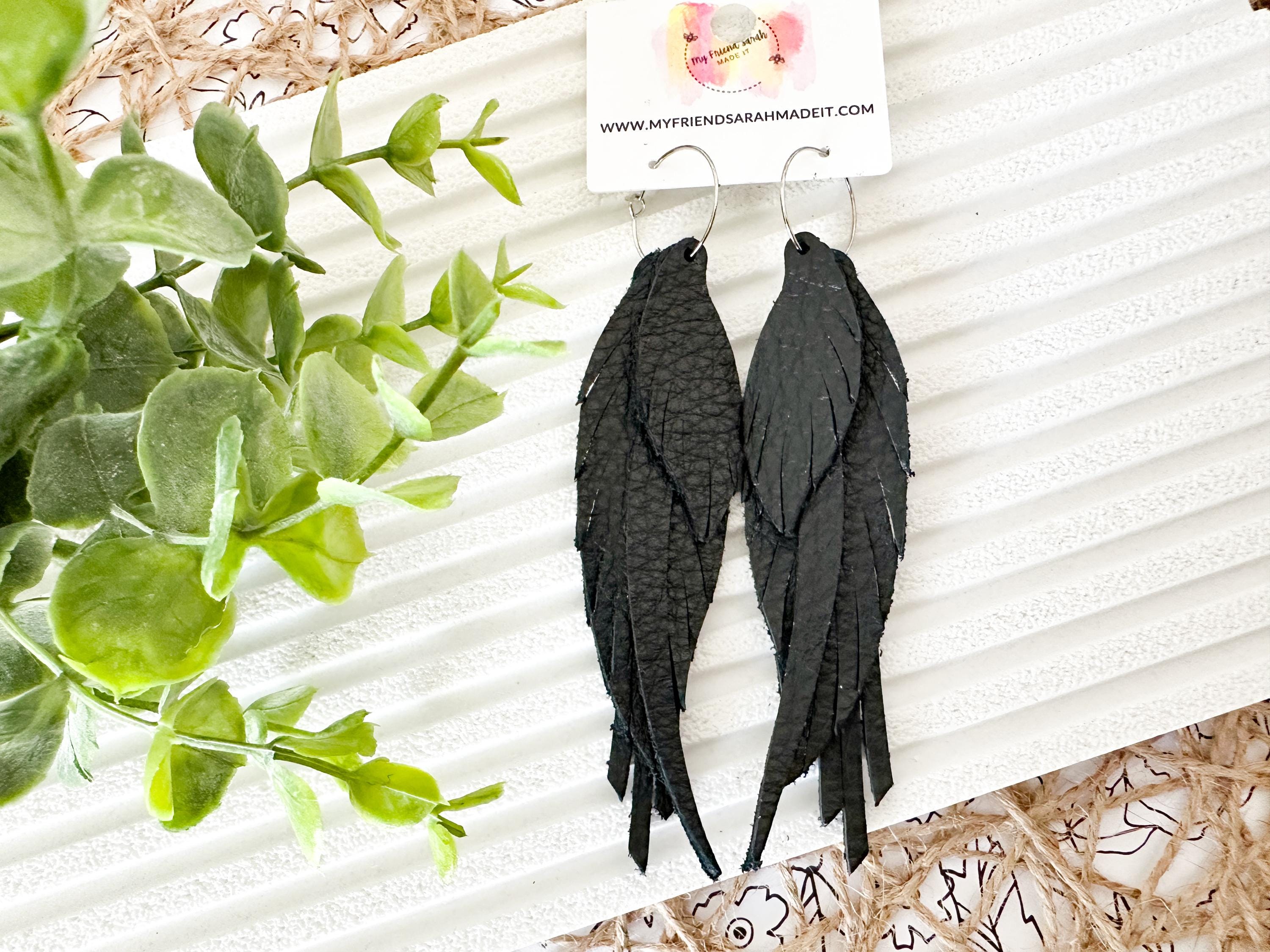 These dramatic black feathers are for the days you want to feel a little extra... in the BEST way. Soft leather layers keep them lightweight while the long fringe gives that effortless “I just threw these on and look incredible” energy. They move beautifully and go with literally everything.