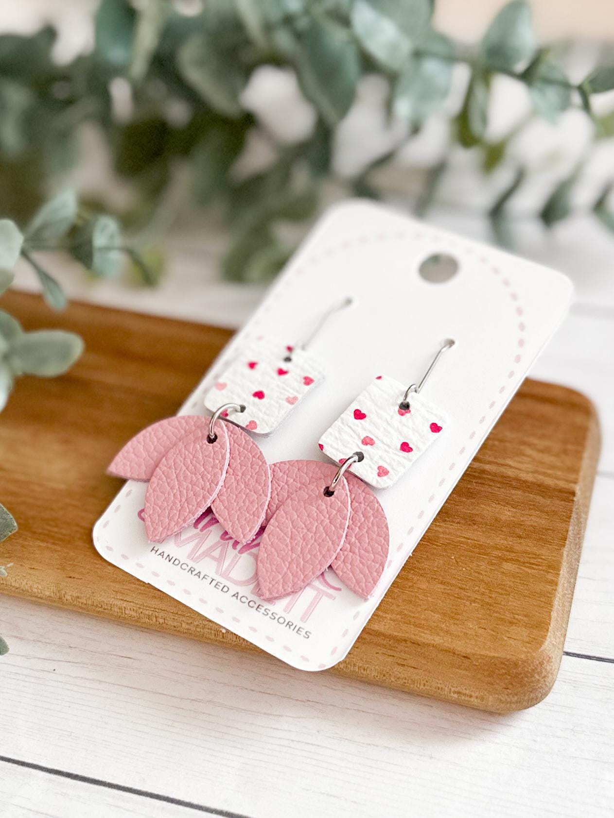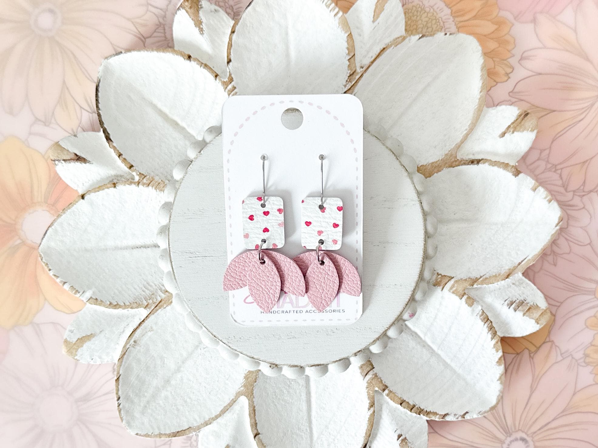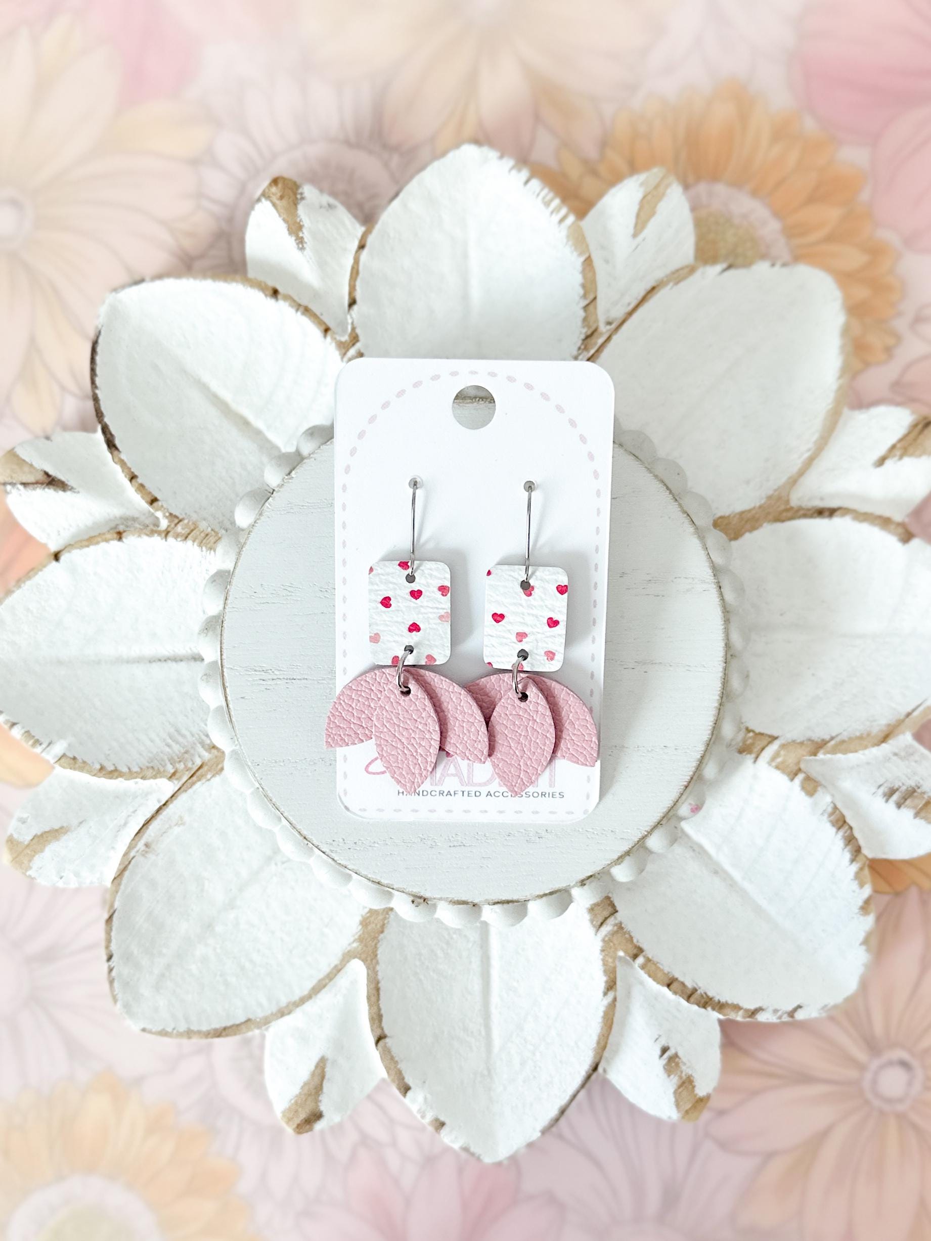 Fresh, fun, and full of color - these play confetti hearts on white leather with soft pink lotus petals beneath are a fun & flirty option for Valentine's Day or any time you want an extra dose of sweet. Lightweight and playful, they’re perfect for adding a pop of girlie energy to your day.