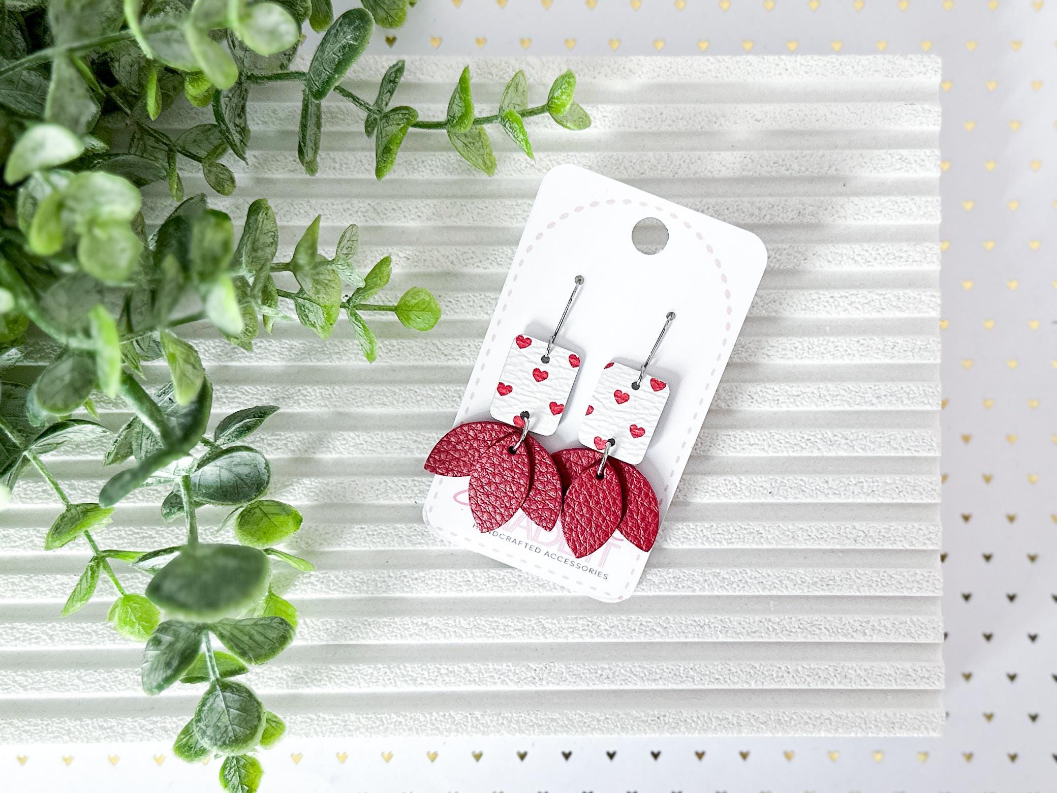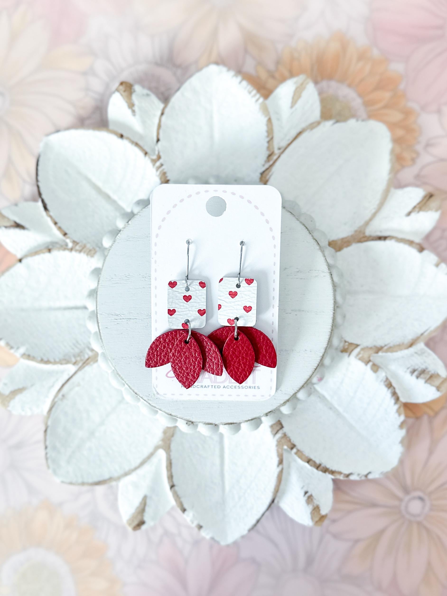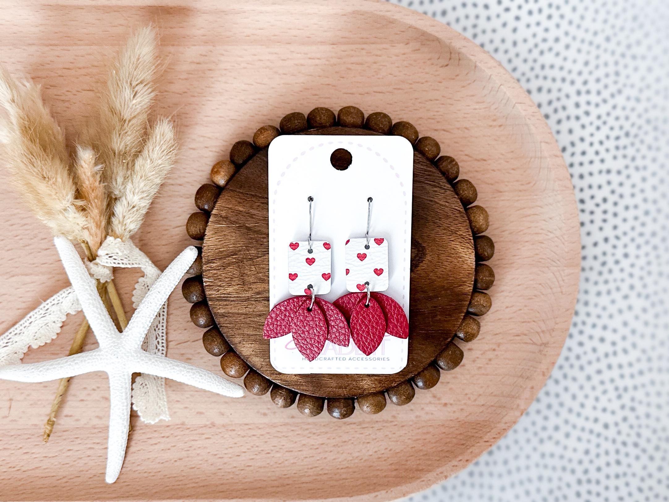 Fresh, fun, and full of color - these adorable mini hearts on white leather with red lotus petals beneath are a fun & flirty option for Valentine's Day or any time you want an extra dose of sweet. Lightweight and playful, they’re perfect for adding a pop of girlie energy to your day.