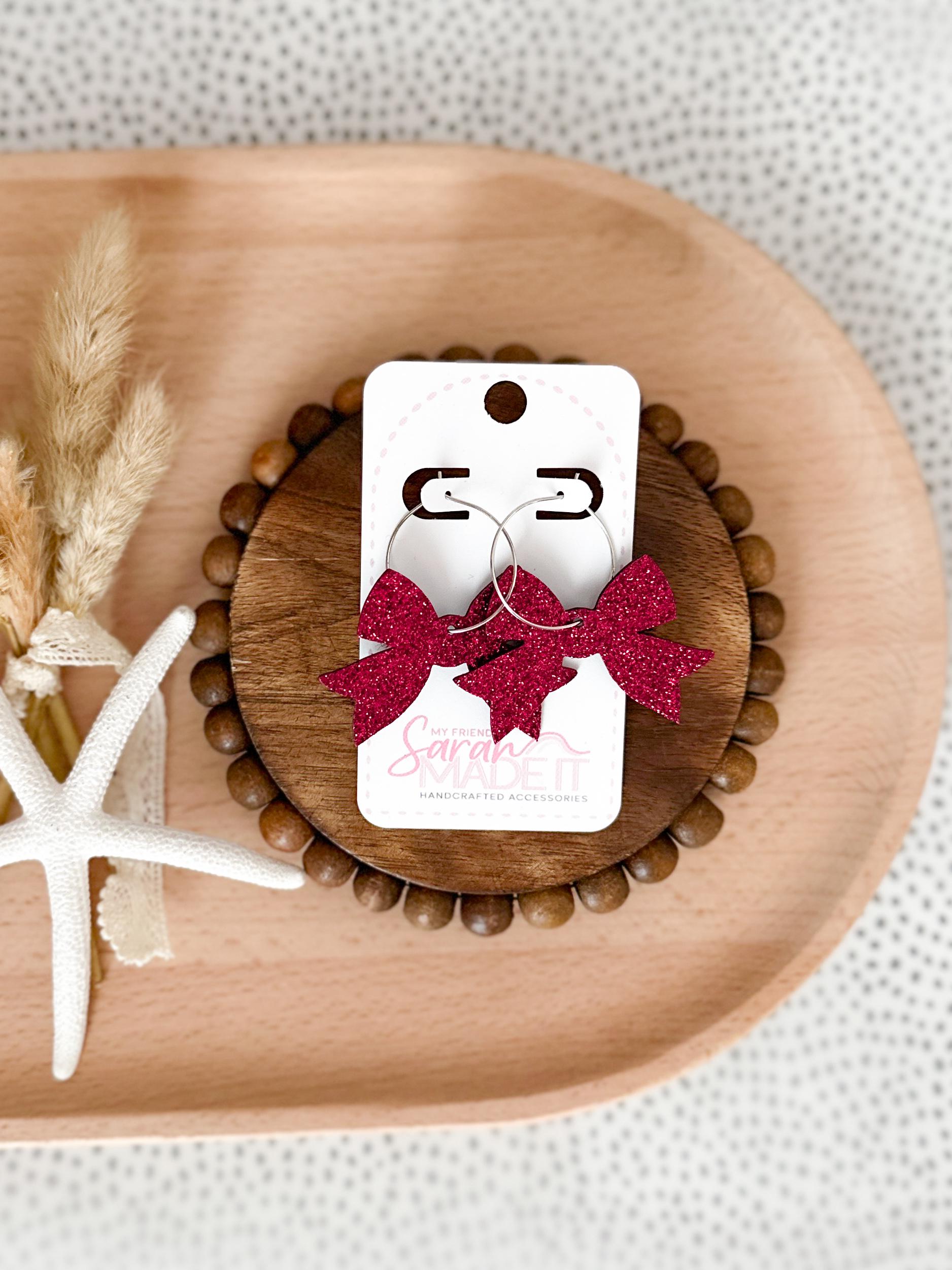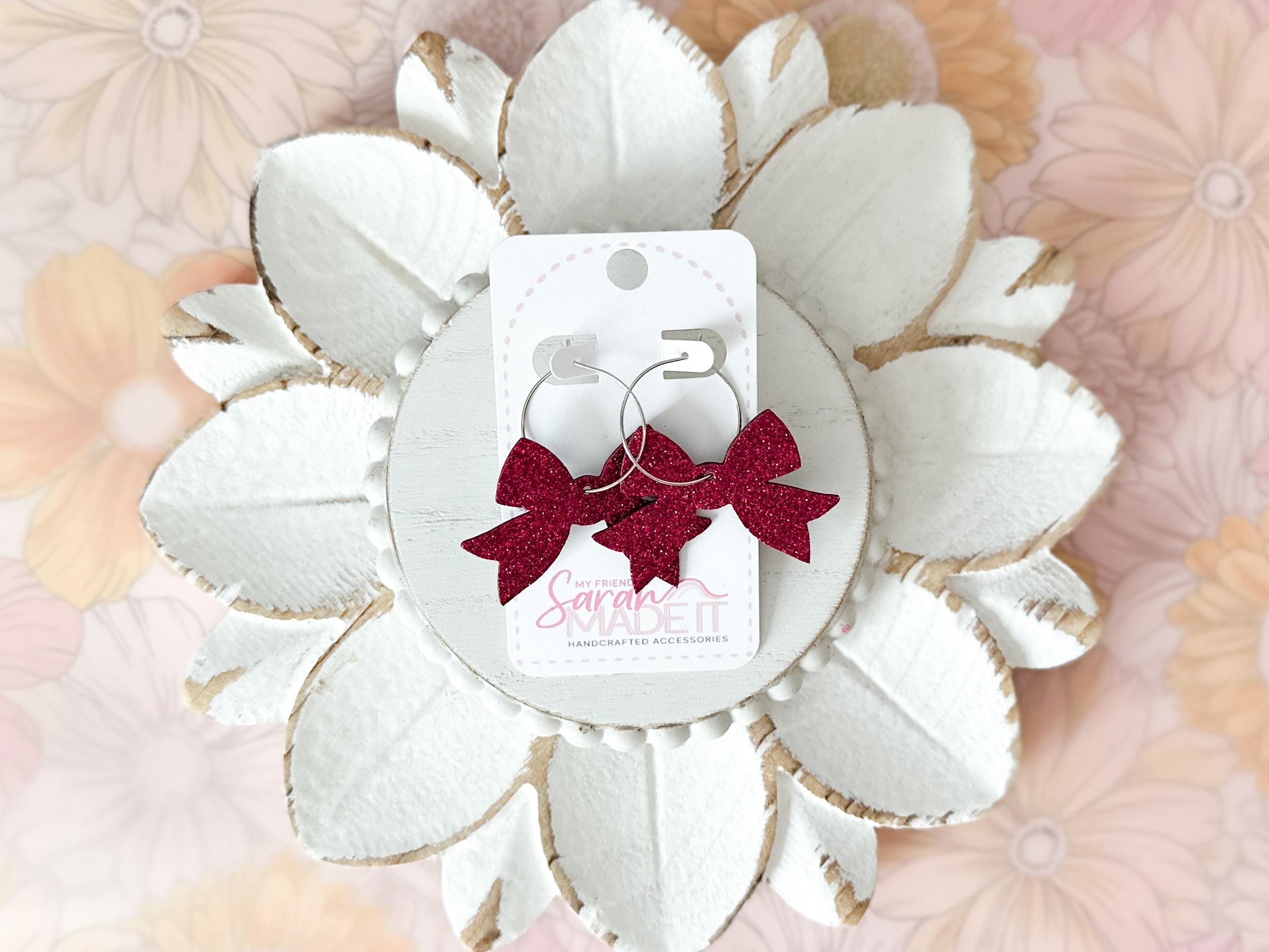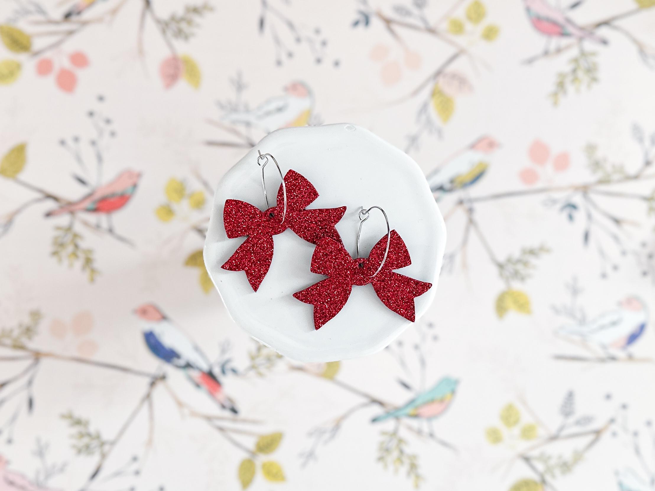Adorable, trendy, girlie, perfect. Add a pop of sweetness for ANY occasion with these sweet glitter bow hoops! Initially created as part of my Valentine Collection, these are honestly just too good to limit to only hearts & cupids. Bows + glitter = happiness in earring form, why *wouldn't* you add these to cart?