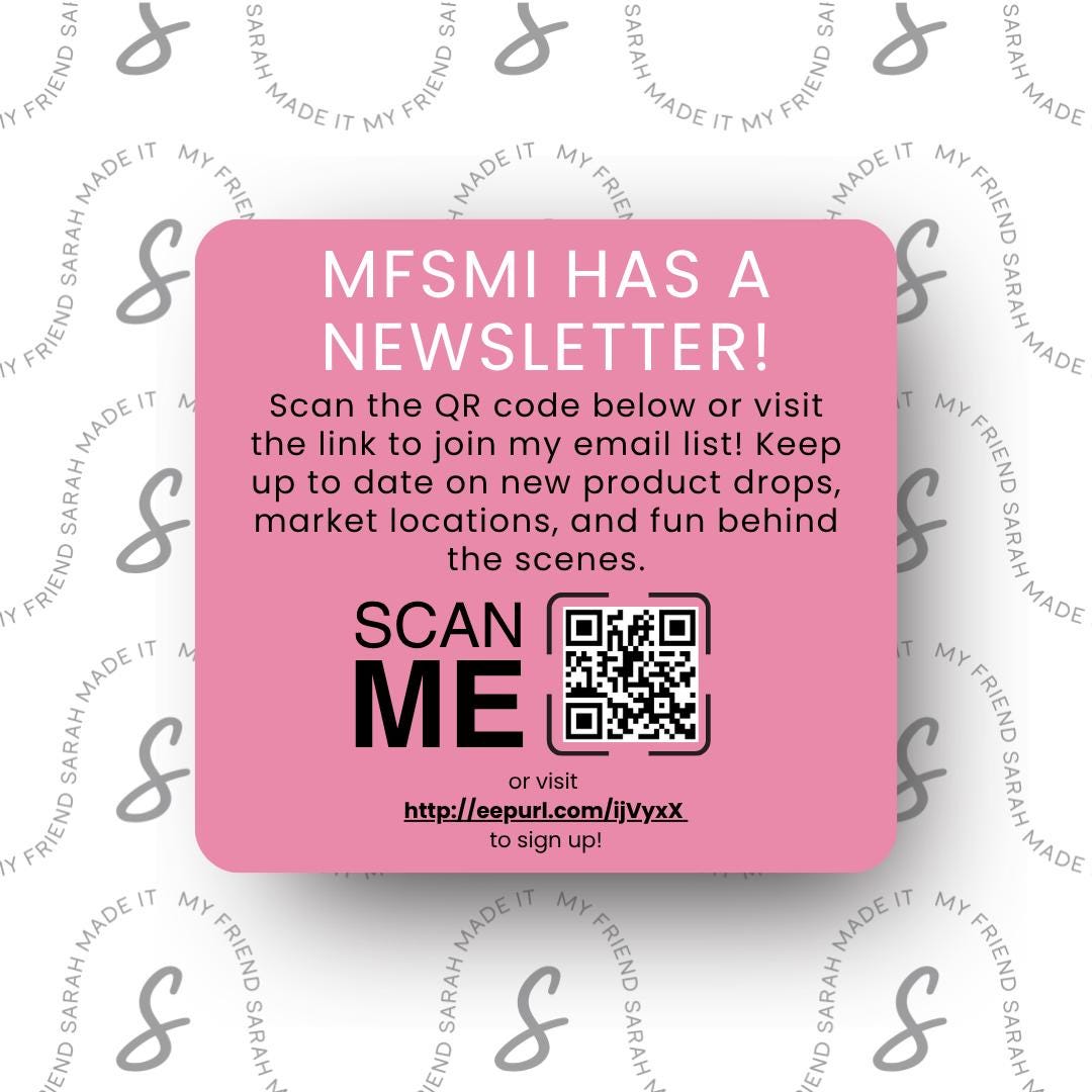 Thank you so much! Please share and tag @myfriendsarahmadeit in your pictures on social media. I'd LOVE to see them!
