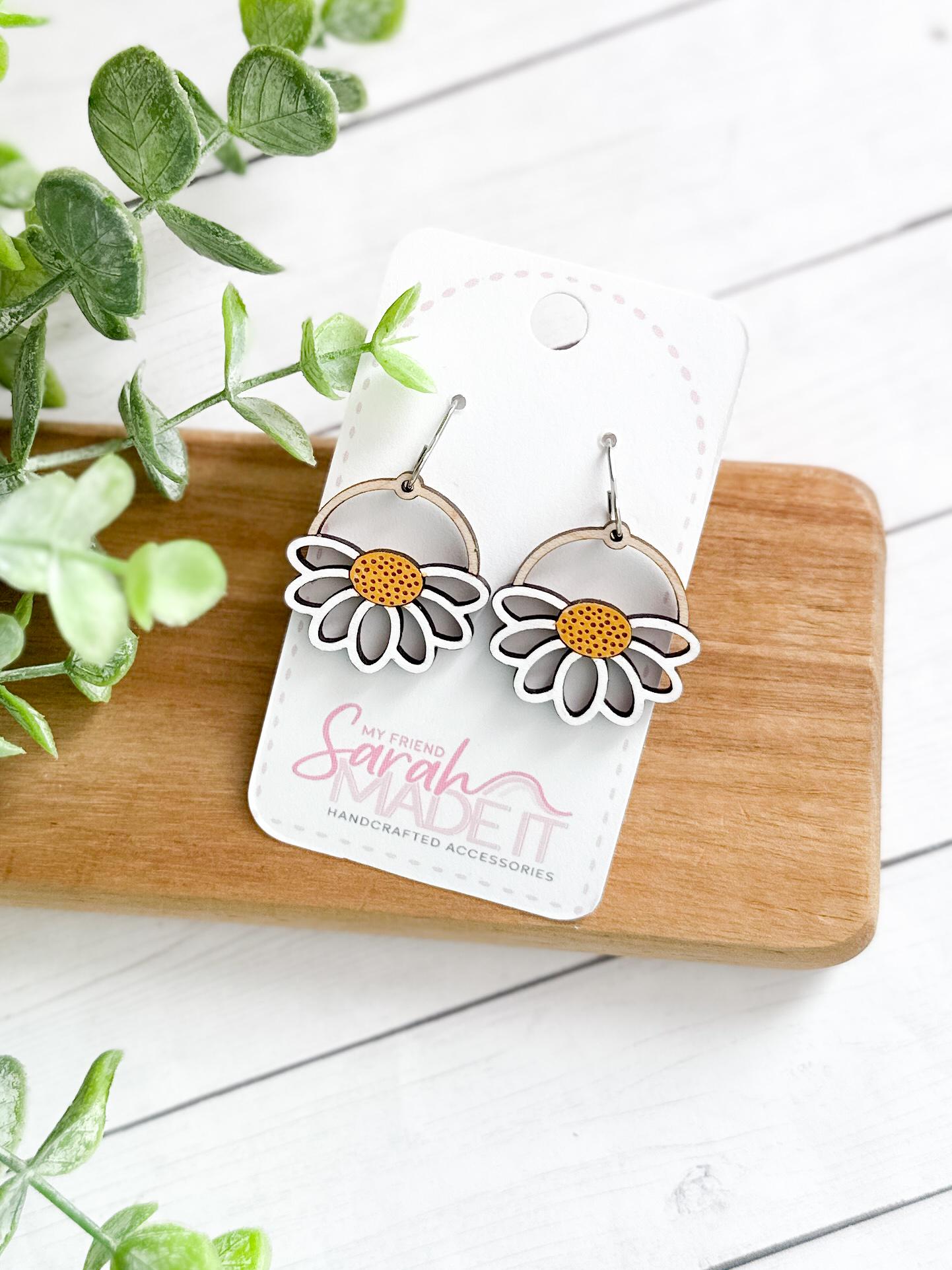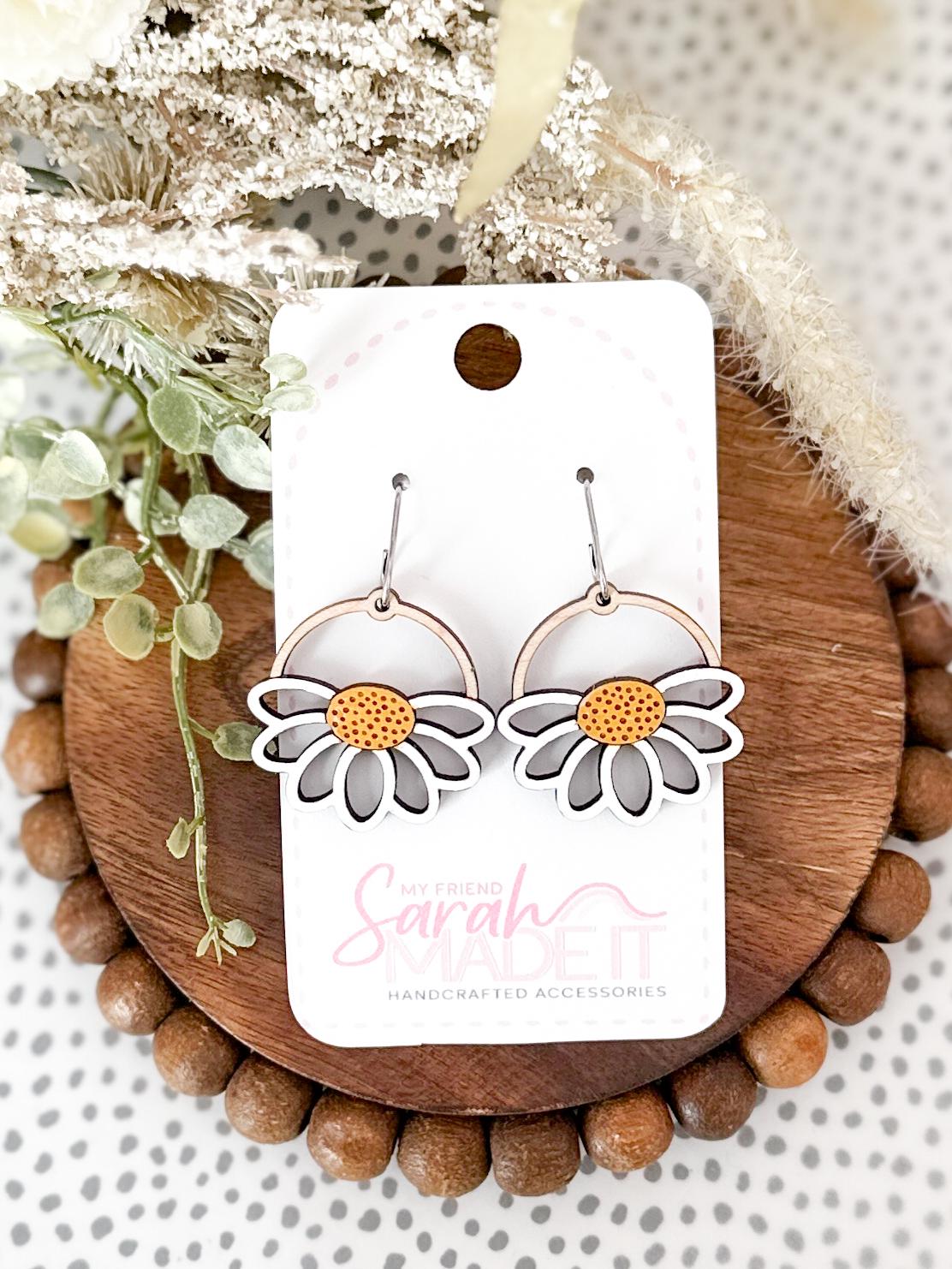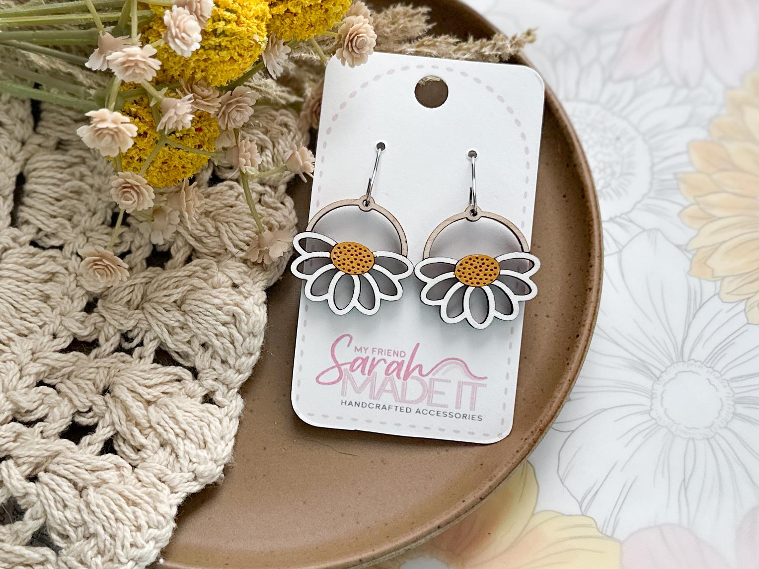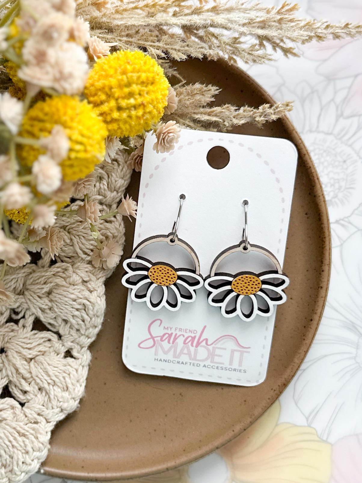 Bright, cheerful, and full of handmade charm! These daisy-inspired wooden earrings are laser-cut and hand-painted for a perfectly unique touch. Lightweight and playful, they bring a little springtime sunshine to any outfit!