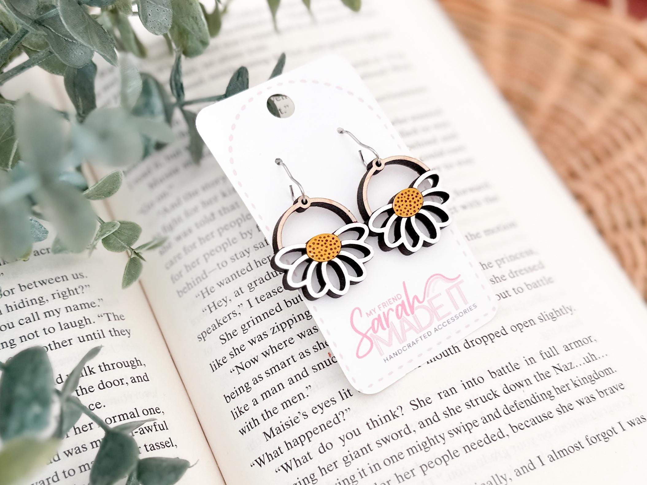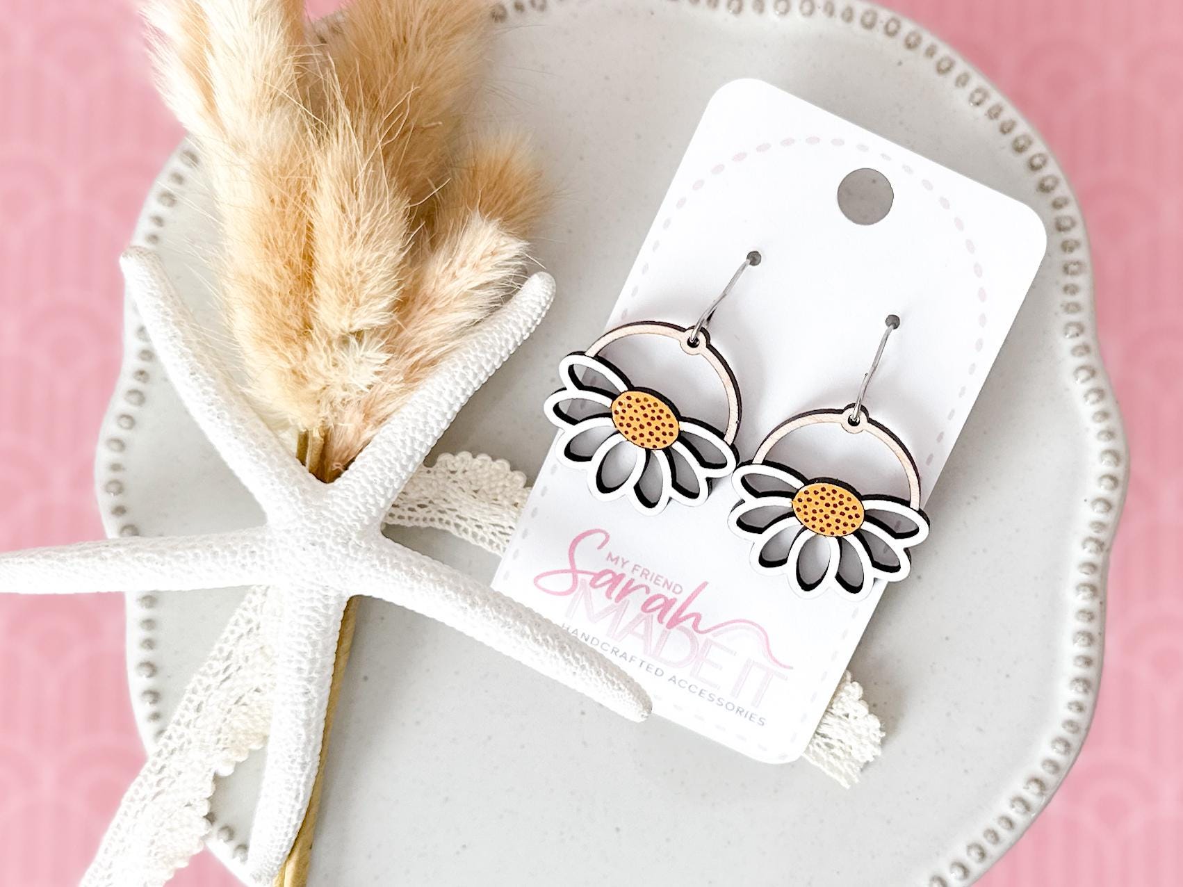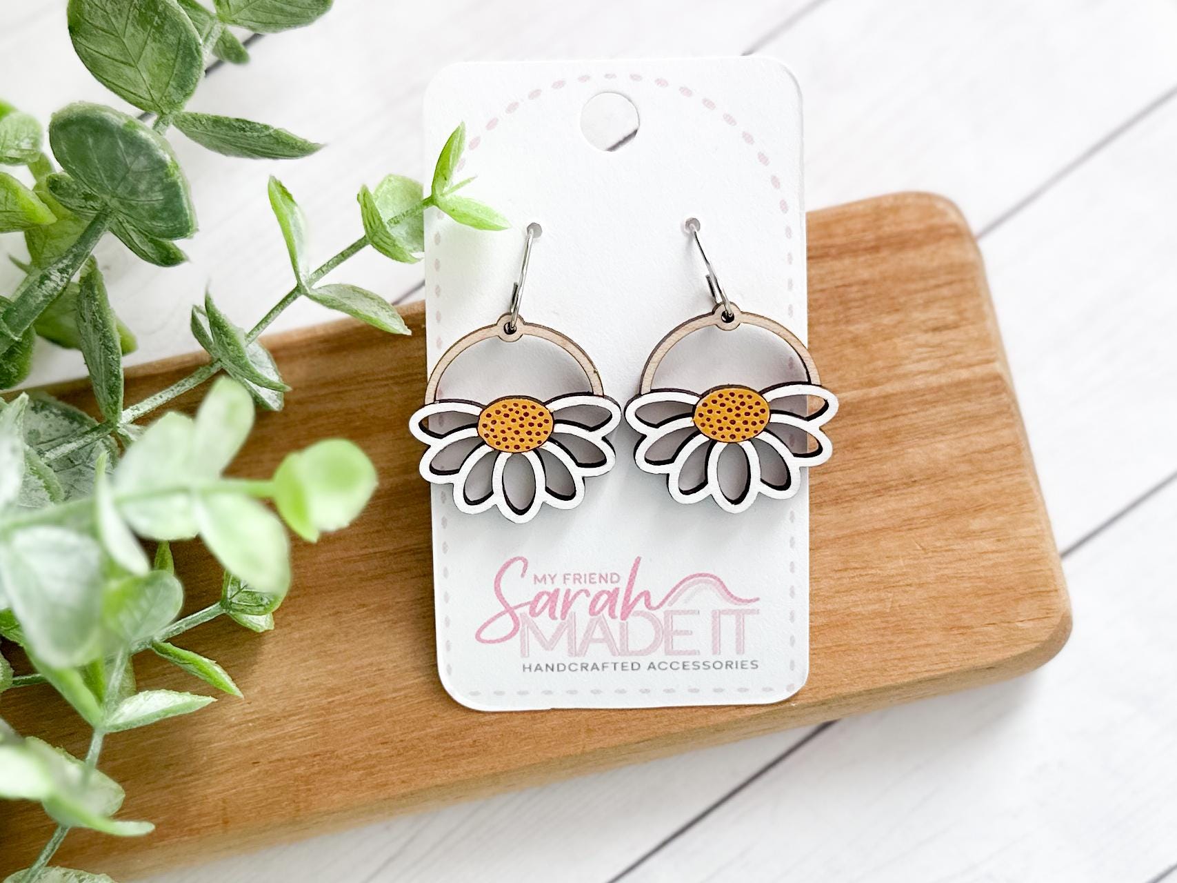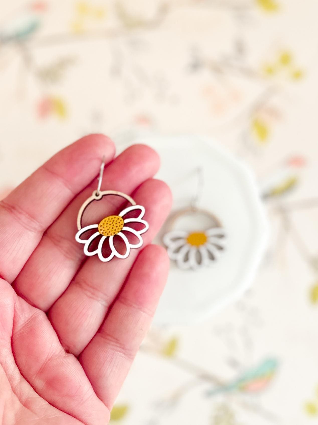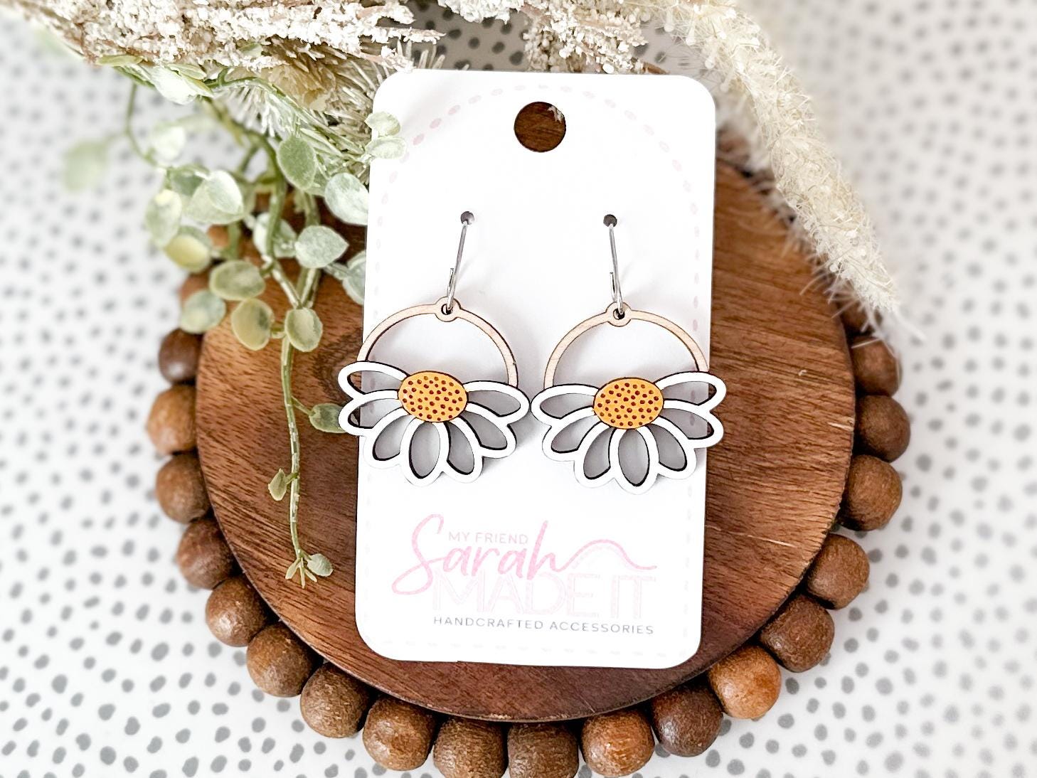 Bright, cheerful, and full of handmade charm! These daisy-inspired wooden earrings are laser-cut and hand-painted for a perfectly unique touch. Lightweight and playful, they bring a little springtime sunshine to any outfit!