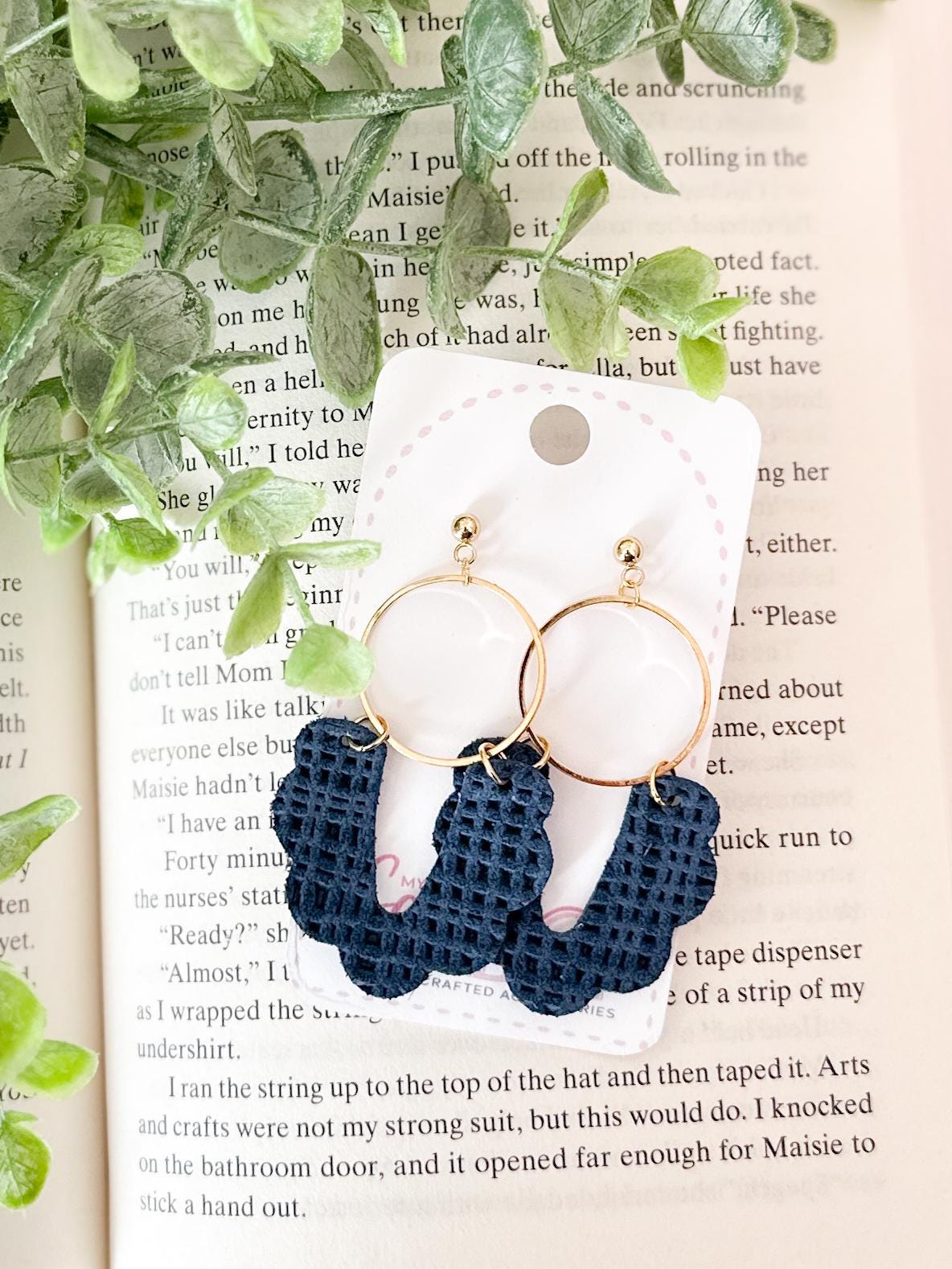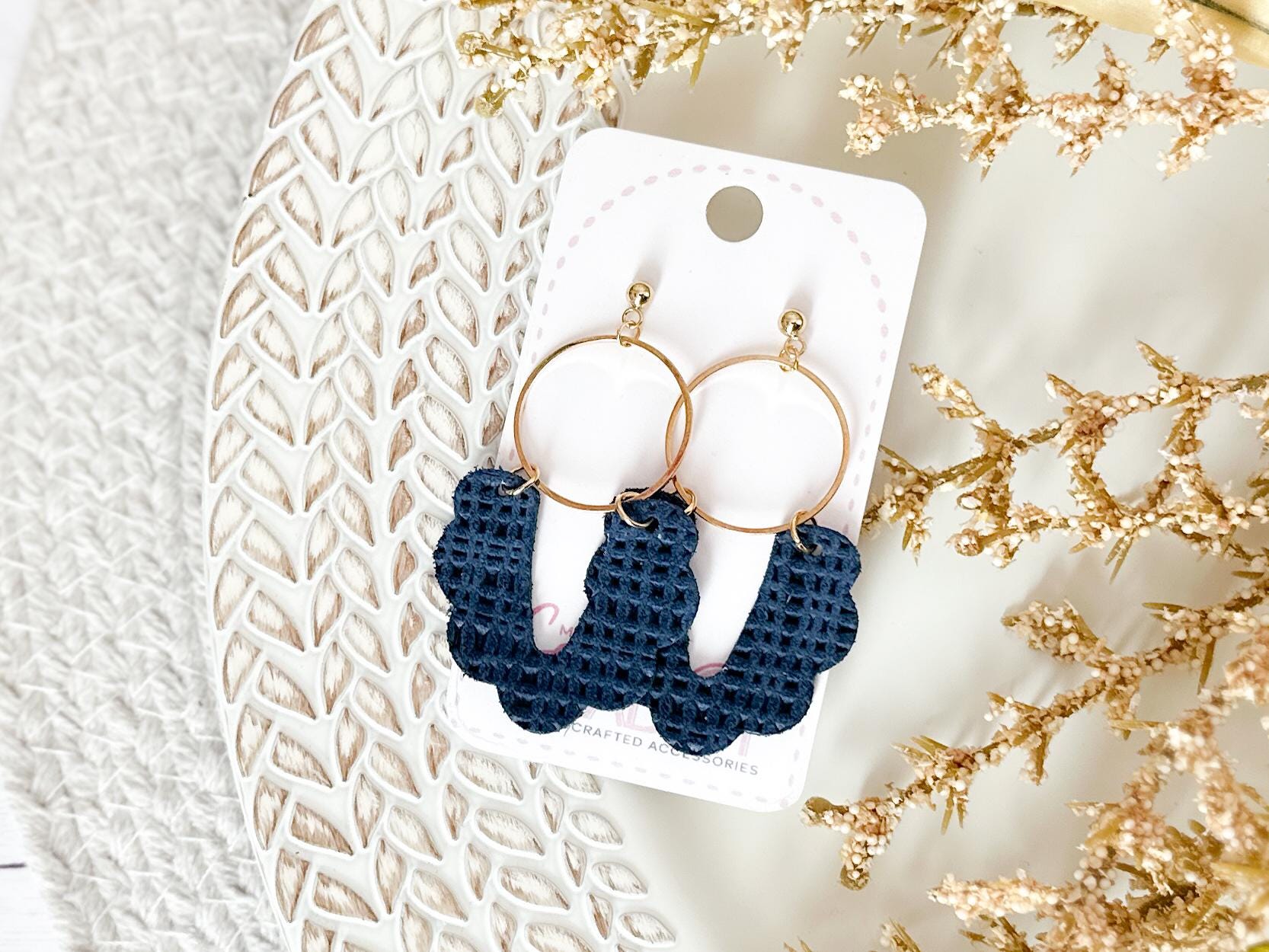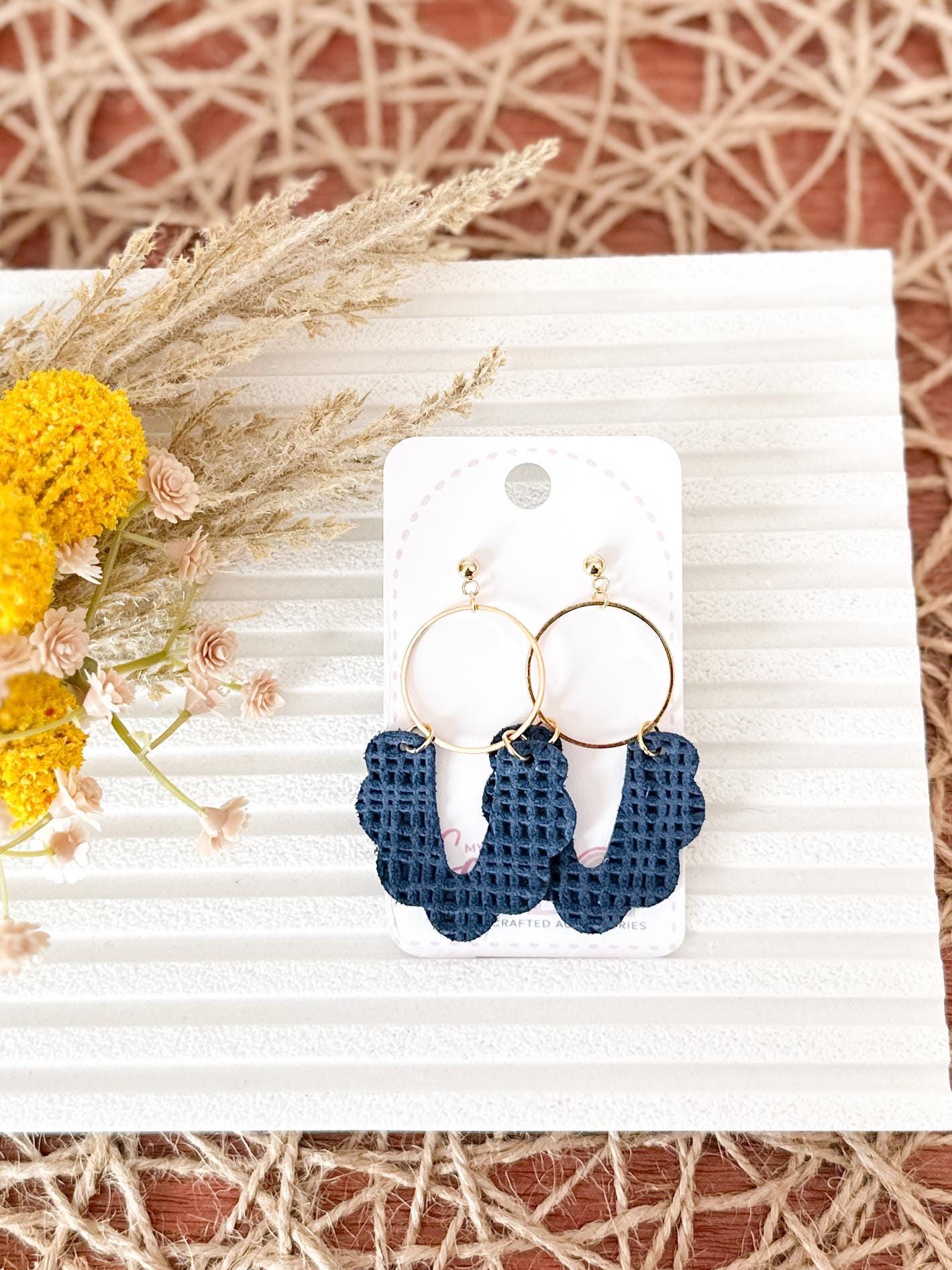 These hoop dangle earrings combine textured navy leather with gold-tone hoops for a rich, dimensional look. Lightweight and easy to wear, they add subtle movement and color while remaining effortlessly versatile. A beautiful handmade choice for everyday wear or gifting.