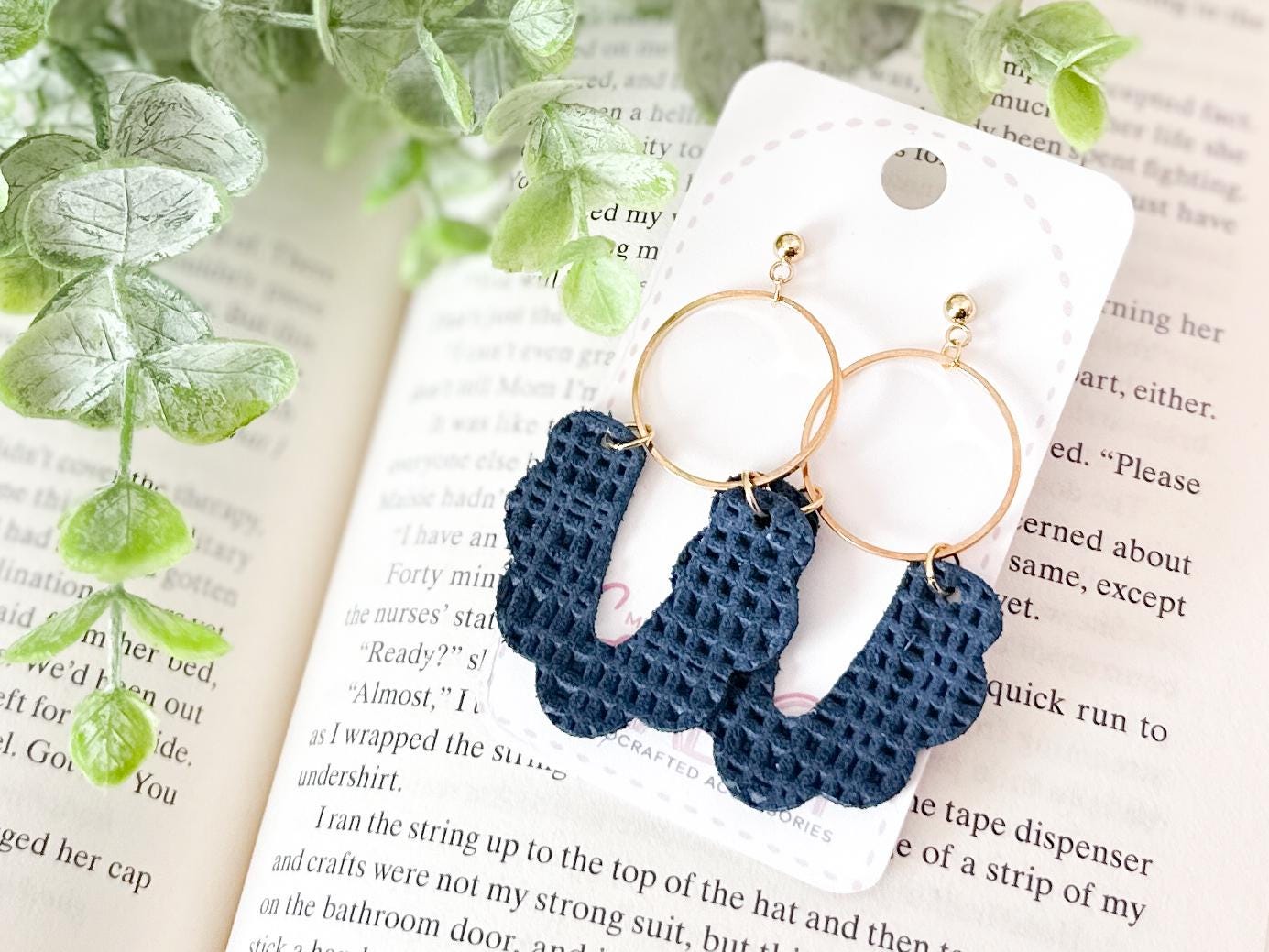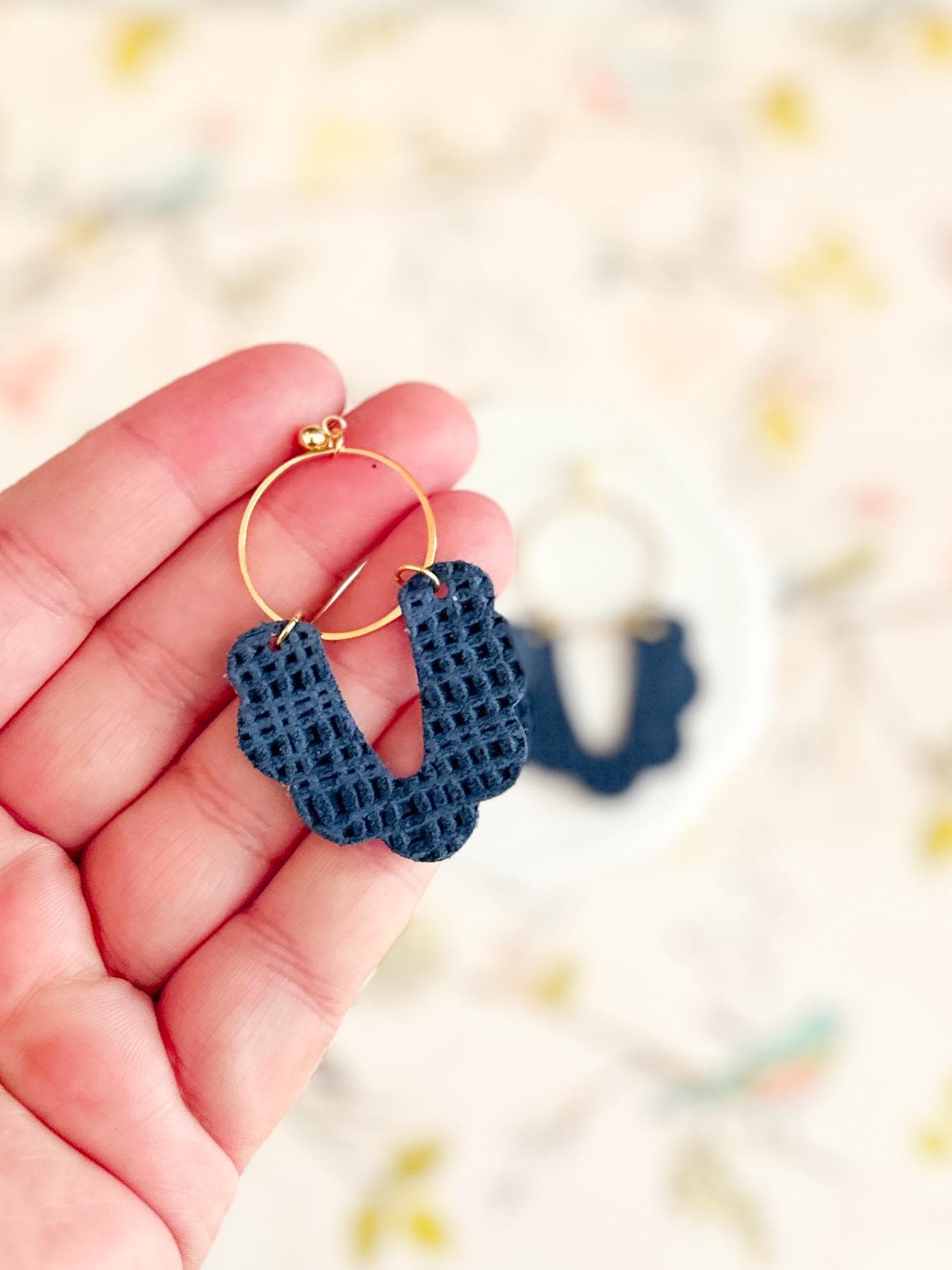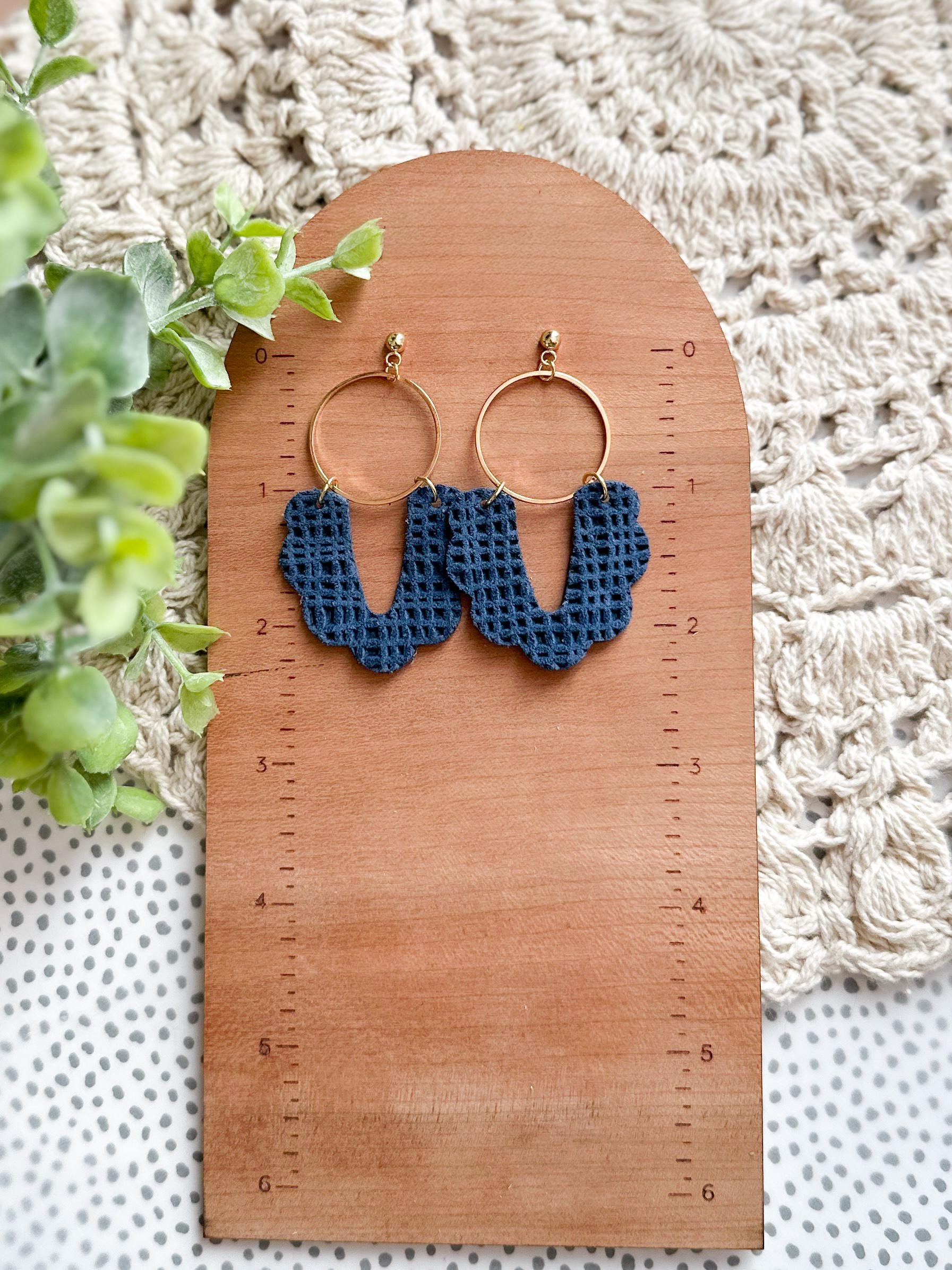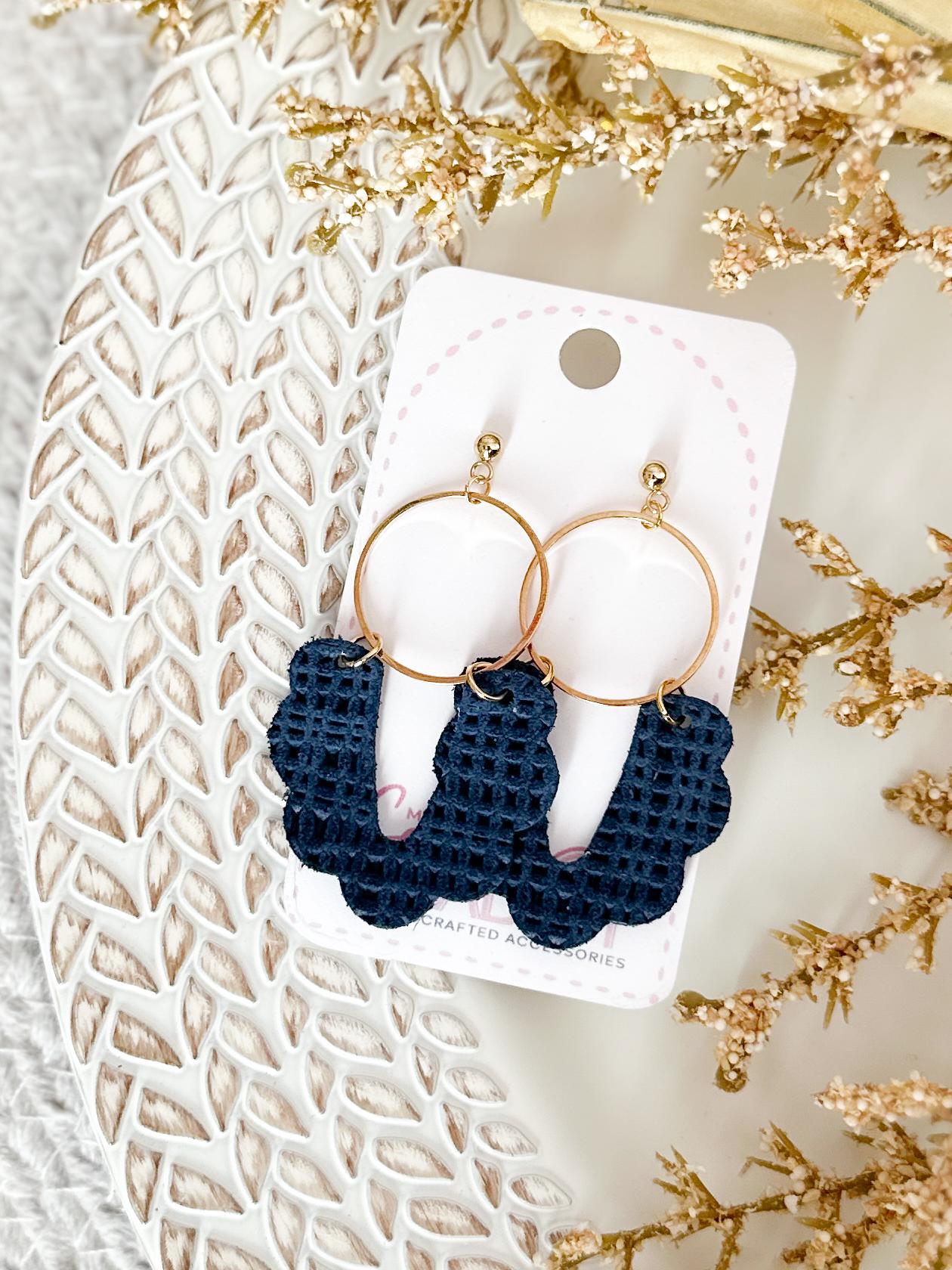These hoop dangle earrings combine textured navy leather with gold-tone hoops for a rich, dimensional look. Lightweight and easy to wear, they add subtle movement and color while remaining effortlessly versatile. A beautiful handmade choice for everyday wear or gifting.