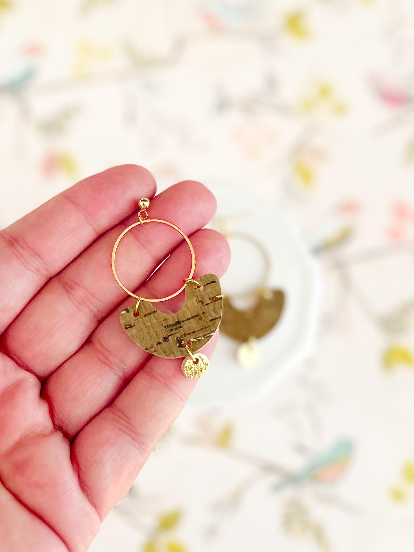 These cork-on-leather dangles feature rich green cork with natural grain variation, paired with warm gold accents for the perfect balance of organic and elevated. The lightweight gold hoop adds movement, while the gold leather detail brings just the right hint of shimmer. Theyβre the kind of earrings that work with everything - linen tops, soft knits, denim jackets, brunch dresses.