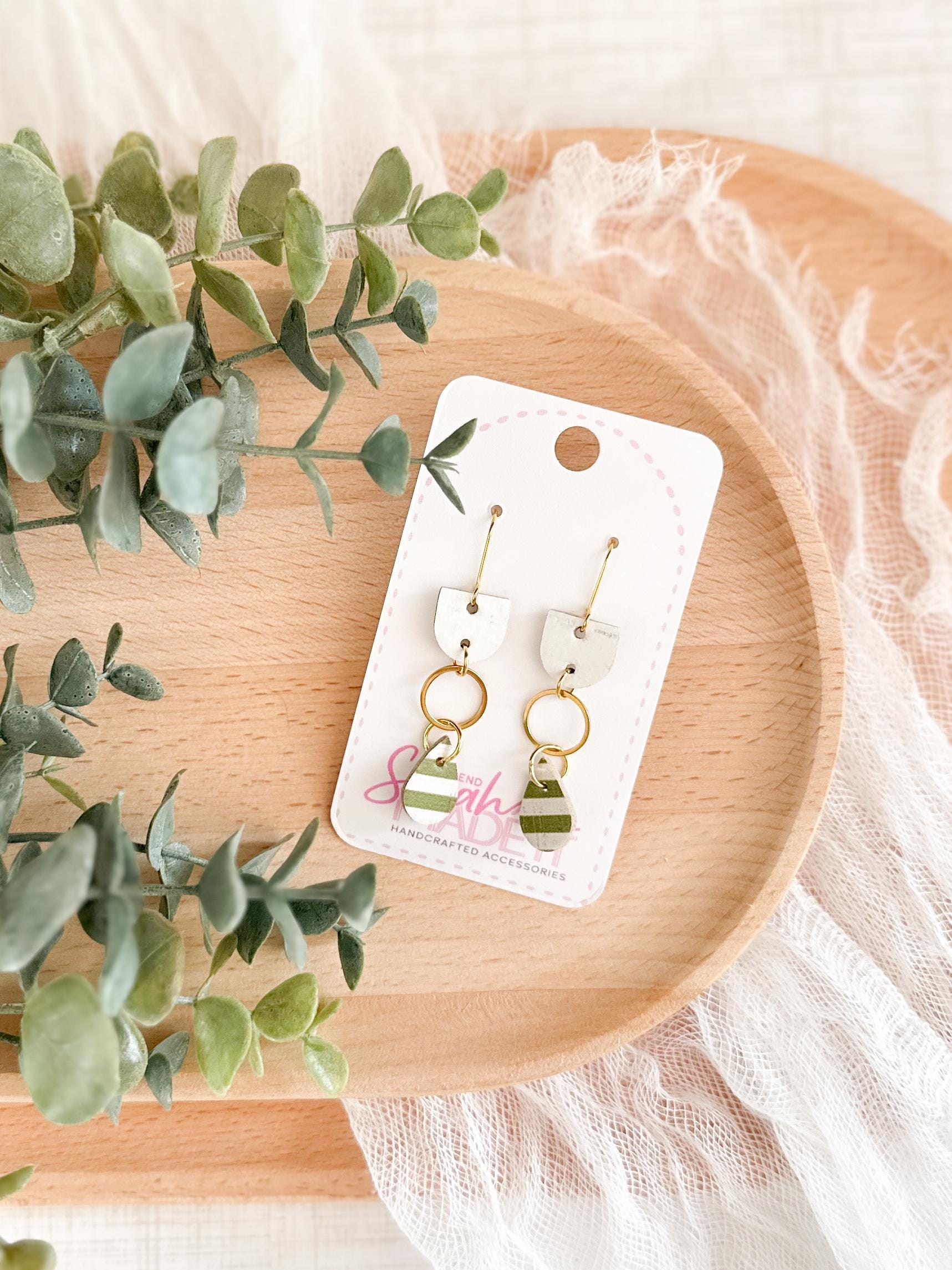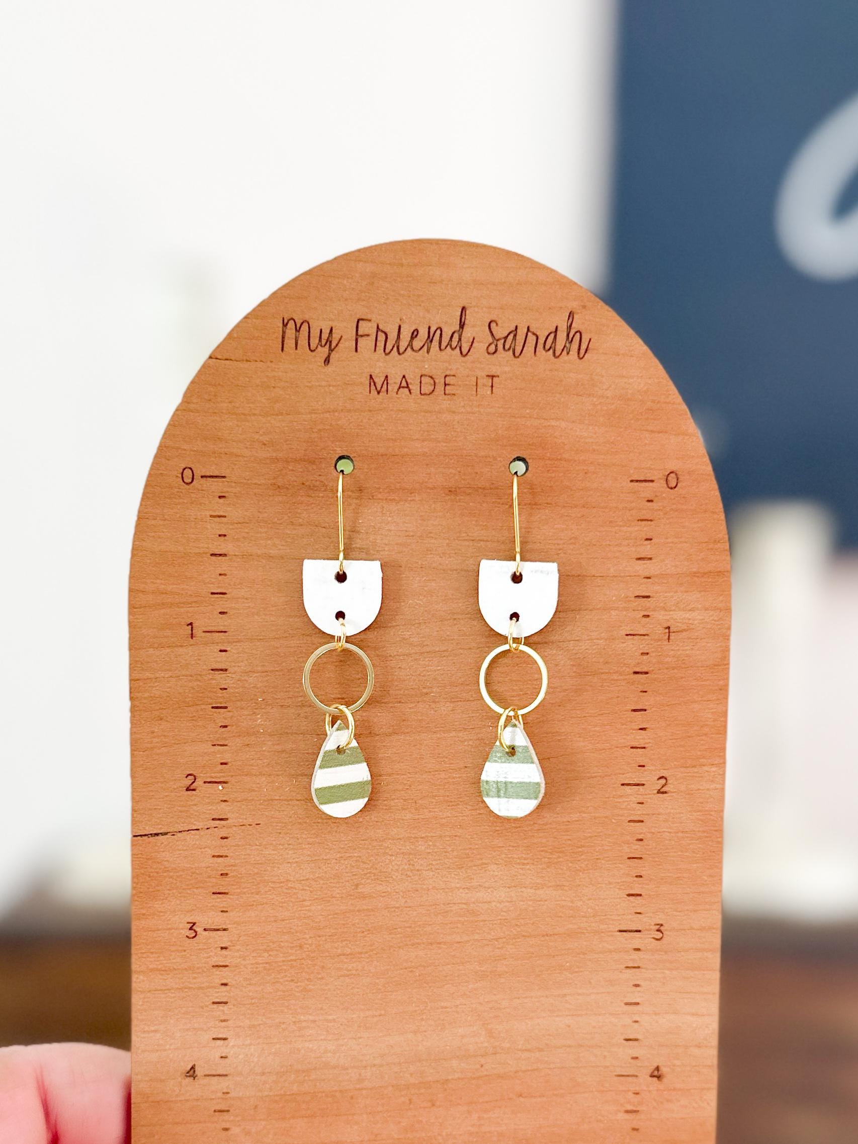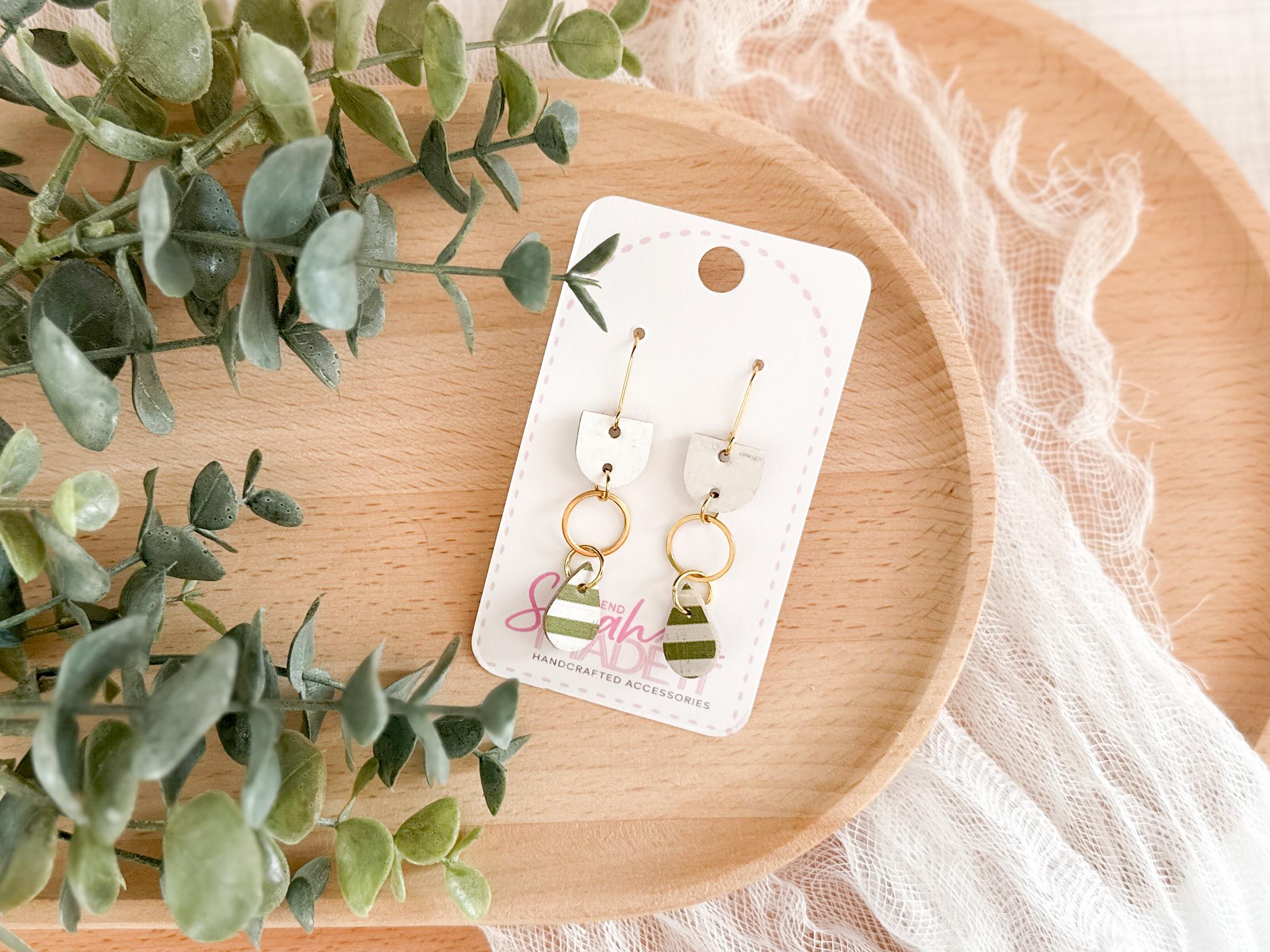 These green and white striped cork earrings are paired with warm gold accents for an earthy, easy-to-wear statement. Lightweight and comfortable, theyβre perfect for spring outfits, teacher gifts, or anyone who loves a little green without going full holiday mode. Handmade in my Florida studio from start to finish.